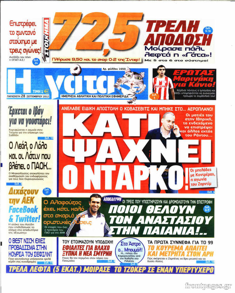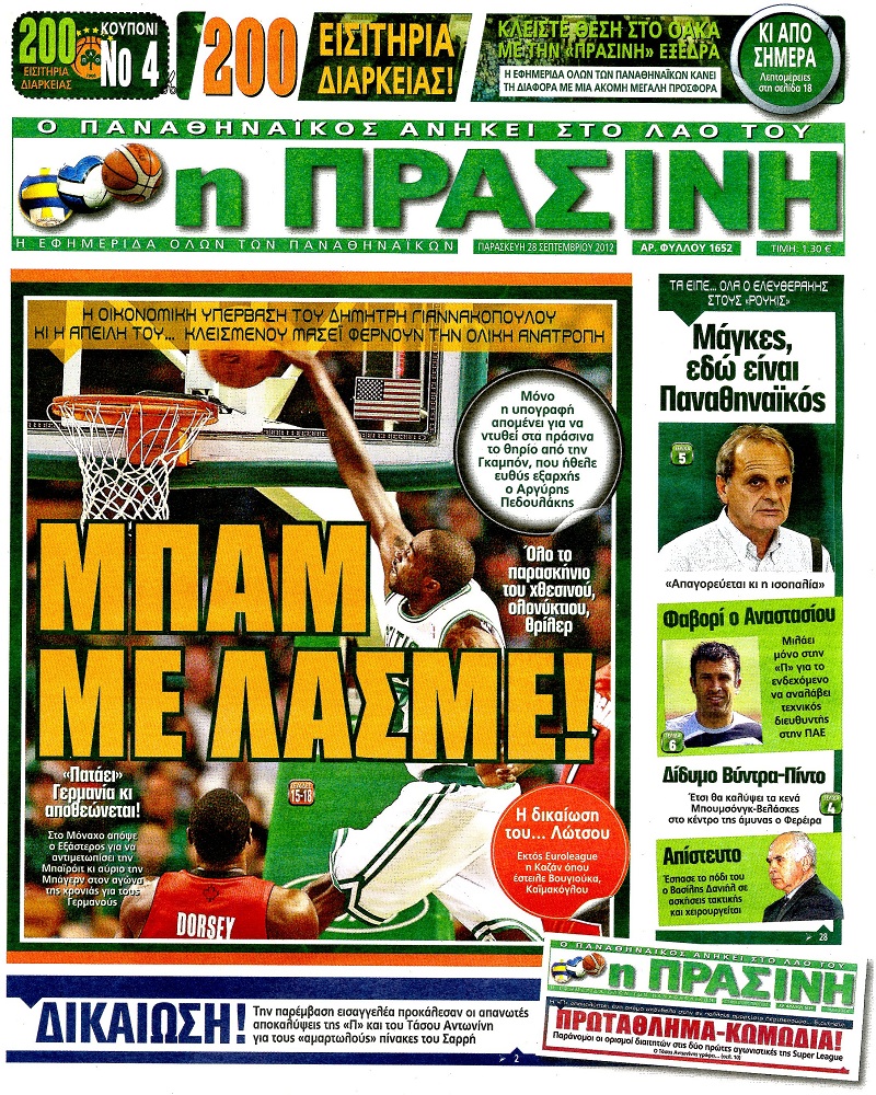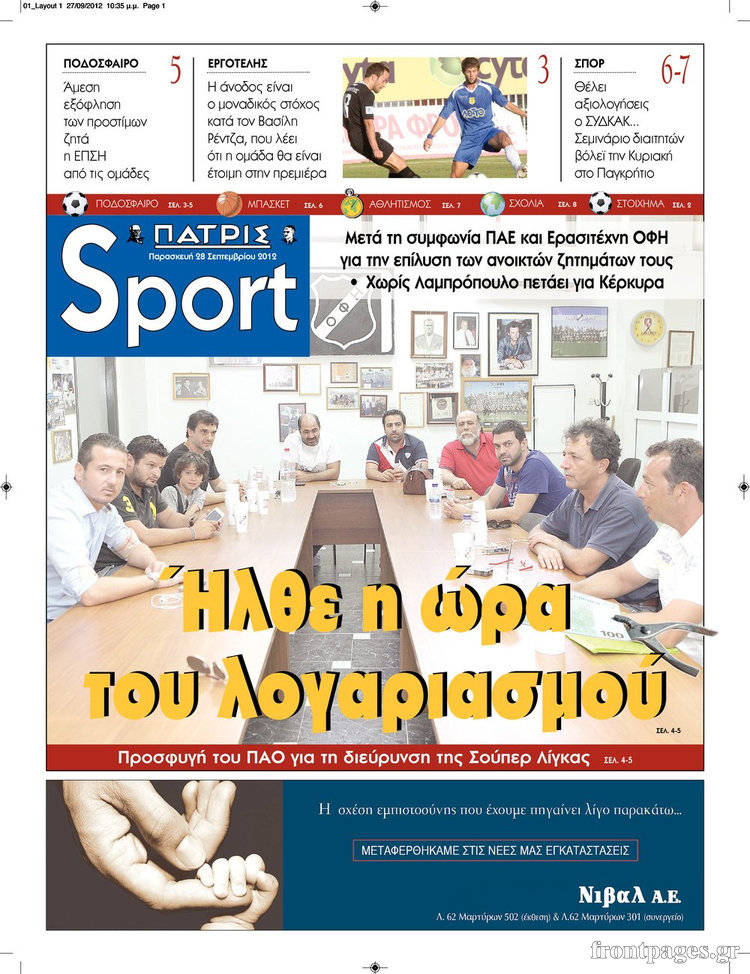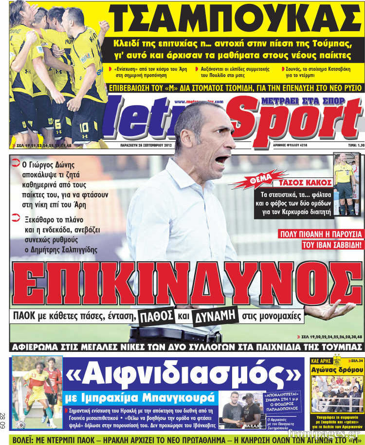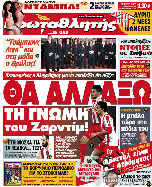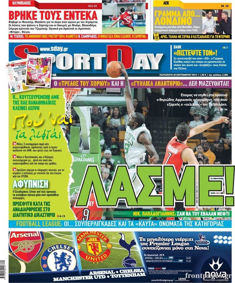 Τα σημερινά πρωτοσέλιδα των αθλητικών εφημερίδων.