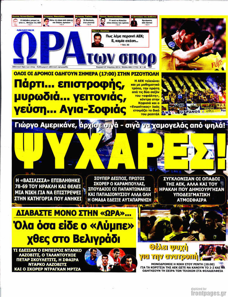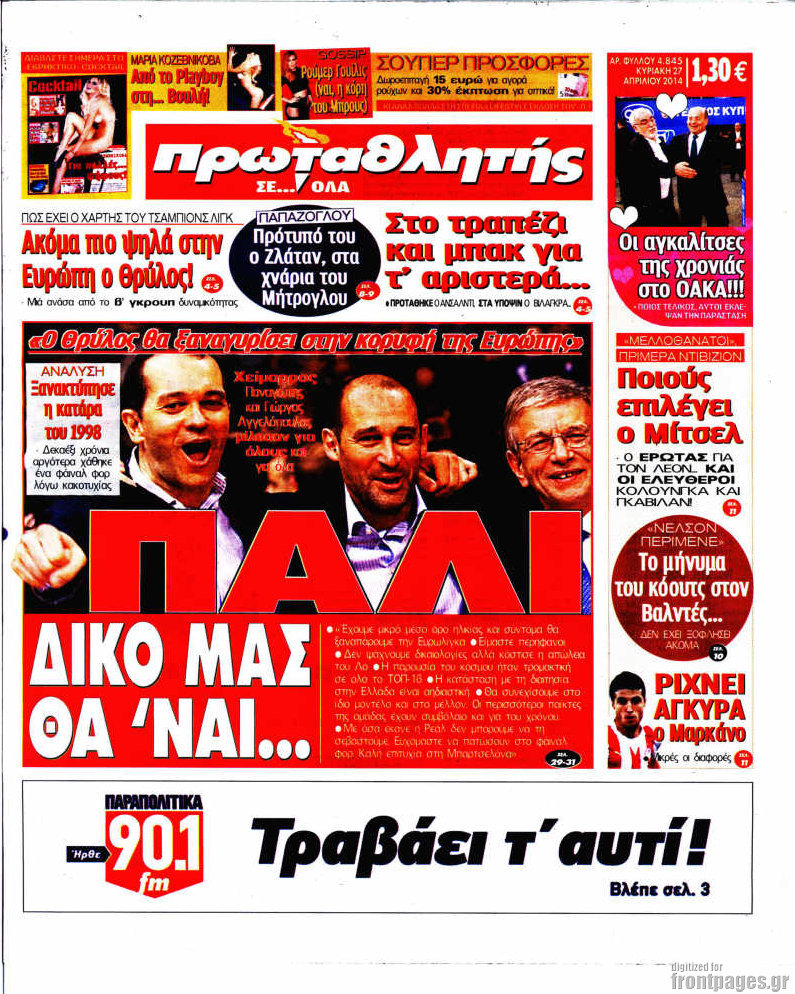 Οι αθλητικές εφημερίδες Enikos Newsroom 09:18, Κυριακή 27 Απριλίου 2014 Media Οι αθλητικές εφημερίδες ΑΘΛΗΤΙΚΕΣ ΕΦΗΜΕΡΙΔΕΣ ΕΦΗΜΕΡΙΔΕΣ Μοιράσου το: σχολίασε κι εσύ (0 σχόλια) Ακολουθήστε το enikos.gr στο Google News και μάθετε πρώτοι όλες τις ειδήσεις Δείτε όλες τις τελευταίες ειδήσεις από την Ελλάδα και τον Κόσμο στο enikos.gr Ειδήσεις Ροή Ειδήσεων 6 ώρες πριν Εκτός ευρωομάδας ΣΥΡΙΖΑ ο Νίκος Παππάς μετά την επίθεση στον δημοσιογράφο Νίκο Γιαννόπουλο – Η μήνυση και οι νέες δηλώσεις 6 ώρες πριν «Αγριεύουν» οι αγρότες: «Δεν συντρέχει λόγος συνάντησης με τον πρωθυπουργό» – Ώρα αποφάσεων στη σύσκεψη της Πέμπτης 6 ώρες πριν Κυψέλη: Χωρίς την οικογένειά της δίπλα της απολογήθηκε η 16χρονη – «Της είχε επιτεθεί κάποιος για να την βιάσει, φοβήθηκε και κυκλοφορούσε με μαχαίρι» 6 ώρες πριν Politico: Το πρόβλημα της Ευρώπης δεν είναι το Βέλγιο αλλά ο Ντόναλντ Τραμπ 8 ώρες πριν Αλεξανδρούπολη: Πολυοργανική ανεπάρκεια λόγω υποσιτισμού η αιτία θανάτου του 3χρονου αγοριού 6 ώρες πριν Μυστήριο με τεράστιες κυκλικές πέτρες 200 κιλών – Ανακαλύφθηκαν τυχαία κατά τη διάρκεια οδικών έργων και κανείς δεν ξέρει από πού προέρχονται 7 ώρες πριν Ύπνος: Ειδικός εξηγεί τον πραγματικό λόγο που ξυπνάτε στις 4 τα ξημερώματα – Ο ρόλος των ορμονών και του κιρκάδιου ρυθμού 8 ώρες πριν Αριθμολογία: Οι άνθρωποι που έχουν γεννηθεί αυτές τις 4 ημερομηνίες, είναι τρυφεροί και αγαπούν ανιδιοτελώς 20 ώρες πριν 20 χρόνια τα Χριστούγεννα ξεκινούν στα Public με μεγάλη ποικιλία σε δώρα! 5 λεπτά πριν Αυστραλία: Κυβερνητική δέσμευση για αυστηρότερα μέτρα κατά της υποκίνησης μίσους 21 λεπτά πριν Ντόναλντ Τραμπ: Παρουσίασε τα επιτεύγματα της διακυβέρνησής του – Σκληρή κριτική στον Τζο Μπάιντεν 36 λεπτά πριν Κτηνοτρόφοι: Με δάκρυα στα μάτια ζουν τον εφιάλτη των άδειων στάβλων – «Καταστράφηκαν οι ζωές μας» 51 λεπτά πριν Νέο αμερικανικό πλήγμα σε σκάφος που φέρεται να μετέφερε ναρκωτικά στον Ειρηνικό – Τέσσερις νεκροί 1 ώρα πριν Αλ Τσαντίρι Νιουζ: «Λύγισε» ο Δημήτρης Λάλος για τον Δημήτρη Ήμελλο – «Τον μνημονεύω, να ‘ναι καλά εκεί που είναι» ENIKOS NETWORK Αϋπνία: Το κόλπο που θα σας βοηθήσει να κοιμηθείτε απόψε – Είναι απλό και έχει αποτέλεσμα 2,6 εκατομμύρια πολίτες έχουν ήδη εμβολιαστεί κατά της γρίπης ΕΛΣΤΑΤ: Τι δείχνουν τα νέα στοιχεία για τις ηλεκτρονικές παραγγελίες των επιχειρήσεων ΚΕΠΕ: Οι 3 διακριτές συμβολές των ΜμΕ και της μεταποίησης στην ελληνική οικονομία Χαρτογραφώντας το «σημείο χωρίς επιστροφή»: Για πρώτη φορά αποκαλύπτεται με λεπτομέρεια το ακανθώδες όριο της ατμόσφαιρας τ... Η Google καταργεί τη λειτουργία «dark web report» – Πώς θα μπορούν οι χρήστες να διαγράφουν τα δεδομένα τους περισσότερα 02:30 , Πέμπτη 18 Δεκεμβρίου 2025 Αλ Τσαντίρι Νιουζ: Η κόρη της Πάολα στο κοινό – Η ατάκα Λαζόπουλου που την έκανε να «κοκκινήσει» Γιορτινή διάθεση και ευχάριστες στιγμές γέμισε η αποψινή, τελευταία για το 2025, εκπομπή του «... 22:24 , Τετάρτη 17 Δεκεμβρίου 2025 Το Σπίτι Δίπλα Στο Ποτάμι: Σε κίνδυνο η υγεία του Απόστολου – Τι θα δούμε απόψε “Το Σπίτι Δίπλα στο Ποτάμι” ξετυλίγει το νήμα της ζωής των πέντε αδελφών με καταισ... 21:14 , Τετάρτη 17 Δεκεμβρίου 2025 Παιχνίδια Εκδίκησης: Θα καταφέρει ο Χρήστος να κλονίσει την εμπιστοσύνη της Μάγιας απέναντι στον Άγη; Τα «Παιχνίδια Εκδίκησης» έρχονται απόψε στις 22:30, στον Αντ1, με το τελευταίο επεισόδιο της χ... 20:57 , Τετάρτη 17 Δεκεμβρίου 2025 Άγιος Έρωτας: Η Χλόη καταθέτει εναντίον του πατέρα της και ο Χάρης αποκαλύπ
