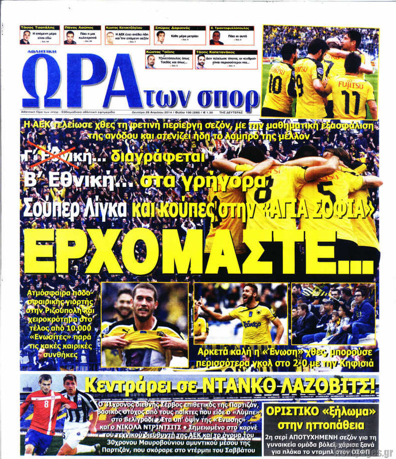 Οι αθλητικές εφημερίδες Enikos Newsroom 08:30, Δευτέρα 28 Απριλίου 2014 Media Οι αθλητικές εφημερίδες Διαβάστε τα πρωτοσέλιδα των αθλητικών εφημερίδων: ΑΘΛΗΤΙΚΕΣ ΕΦΗΜΕΡΙΔΕΣ ΕΦΗΜΕΡΙΔΕΣ ΠΡΩΤΟΣΕΛΙΔΑ Μοιράσου το: σχολίασε κι εσύ (0 σχόλια) Ακολουθήστε το enikos.gr στο Google News και μάθετε πρώτοι όλες τις ειδήσεις Δείτε όλες τις τελευταίες ειδήσεις από την Ελλάδα και τον Κόσμο στο enikos.gr Ειδήσεις Ροή Ειδήσεων 1 ώρα πριν Αυξάνουν την πίεση προς την κυβέρνηση οι αγρότες: Κλείνουν παρακαμπτήριους και ανοίγουν διόδια – Τι θα γίνει τις γιορτές 56 λεπτά πριν Φοινικούντα: Το Σάββατο απολογείται ο 30χρονος γιος γνωστού επιχειρηματία της Πλάκας που παραδόθηκε – Όσα είπε στους αστυνομικούς και ο ρόλος του στο έγκλημα 38 λεπτά πριν Μπορεί ο Μαδούρο να αντέξει τον αποκλεισμό του Τραμπ; Τι θα χρειαστεί η Ουάσινγκτον για να τον ανατρέψει 3 ώρες πριν Δημοσκόπηση Metron Analysis: Στις 10 μονάδες η διαφορά ΝΔ-ΠΑΣΟΚ, στην 3η θέση η Πλεύση Ελευθερίας – 8 στους 10 στηρίζουν τον αγώνα των αγροτών 2 ώρες πριν Πρίγκιπας Ουίλιαμ – Κέιτ: Η νέα οικογενειακή φωτογραφία για τις Χριστουγεννιάτικες κάρτες του 2025 2 ώρες πριν Ύπνος: Η απλή βραδινή ρουτίνα για να προστατεύσετε τα μαλλιά σας από το κρύο κατά τη διάρκεια του χειμώνα 3 ώρες πριν Manifesting: Πώς να συναντήσετε τον σύντροφο της ζωής σας, ανάλογα με τον μήνα γέννησής σας 2 ημέρες πριν 20 χρόνια τα Χριστούγεννα ξεκινούν στα Public με μεγάλη ποικιλία σε δώρα! 42 λεπτά πριν Αρχαιολόγοι ανακάλυψαν ρωμαϊκά τεχνουργήματα από μια πόλη που δεν υπήρξε ποτέ – Τα τρία εντυπωσιακά κτίρια και ο αμφορέας με τις… σαρδέλες 7 λεπτά πριν Αθηνά Μαξίμου: Η τρυφερή ανάρτηση για τα γενέθλια του Αιμίλιου Χειλάκη – «Είναι η εκλεκτική συγγένειά μου, η επιλογή και η ευθύνη μου» 22 λεπτά πριν Παναθηναϊκός – Χάποελ Τελ Αβίβ 93-82: Με… φόρα από την Κωνσταντινούπολη 38 λεπτά πριν Μπορεί ο Μαδούρο να αντέξει τον αποκλεισμό του Τραμπ; Τι θα χρειαστεί η Ουάσινγκτον για να τον ανατρέψει 42 λεπτά πριν Αρχαιολόγοι ανακάλυψαν ρωμαϊκά τεχνουργήματα από μια πόλη που δεν υπήρξε ποτέ – Τα τρία εντυπωσιακά κτίρια και ο αμφορέας με τις… σαρδέλες 43 λεπτά πριν Στο ΟΑΚΑ για το «Παναθηναϊκός – Χάποελ» η Κίμπερλι Γκίλφοϊλ – ΦΩΤΟ ENIKOS NETWORK Σε περίοδο αυξημένης δραστηριότητας η γρίπη στην Ελλάδα-Μέτρα προστασίας από τον ΕΟΔΥ Σκέφτεστε συνέχεια συζητήσεις που έχετε κάνει; Τι σημαίνει αυτό, σύμφωνα με ειδικό Στεγαστικό: Τι λέει η ΠΟΜΙΔΑ για τα νέα μέτρα που ανακοίνωσε ο Κυριάκος Μητσοτάκης Λαγκάρντ: Αισιόδοξη για την ανάπτυξη της Ευρωζώνης, αβέβαιη για τον πληθωρισμό Χαρτογραφώντας το «σημείο χωρίς επιστροφή»: Για πρώτη φορά αποκαλύπτεται με λεπτομέρεια το ακανθώδες όριο της ατμόσφαιρας τ... Η Google καταργεί τη λειτουργία «dark web report» – Πώς θα μπορούν οι χρήστες να διαγράφουν τα δεδομένα τους περισσότερα 17:45 , Πέμπτη 18 Δεκεμβρίου 2025 ROUK ZOUK: Εορταστικό επεισόδιο με καλεσμένους τους πρωταγωνιστές του «Γιατί ρε πατέρα» Το Σάββατο 20 Δεκεμβρίου στις 21:00, η Ζέτα Μακρυπούλια υποδέχεται εκλεκτούς ηθοποιούς που όλο... 17:20 , Πέμπτη 18 Δεκεμβρίου 2025 Άγιος έρωτας: Η Χριστίνα εξομολογείται στον πατέρα Νικόλαο, απόψε στις 21:00 στον Alpha Η Νότα αποφασίζει να εκδικηθεί τον Πέτρο και τον Στέφανο, για χάρη του Λούη, όμως τα πράγματα ... 16:50 , Πέμπτη 18 Δεκεμβρίου 2025 Να μ’ αγαπάς: Ζωή και Φωτεινή συμφιλιώνονται ως μάνα με κόρη, απόψε στις 20:00 Η ταυτότητα του Άγγελου αποκαλύπτεται στο νέο επεισόδιο της σειράς “Να μ’ αγαπάς... 15:52 , Πέμπτη 18 Δεκεμβ
