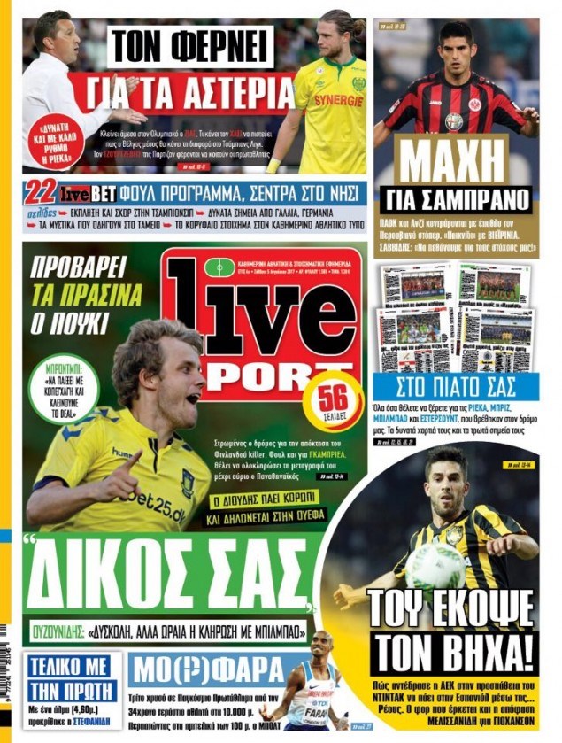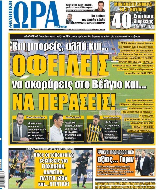 Οι αθλητικές εφημερίδες 5/8/2017 Κώστας Τεό 06:53, Σάββατο 05 Αυγούστου 2017 Media Διαβάστε τα σημερινά πρωτοσέλιδα των αθλητικών εφημερίδων: ΑΘΛΗΤΙΚΕΣ ΕΦΗΜΕΡΙΔΕΣ ΠΡΩΤΟΣΕΛΙΔΑ Μοιράσου το: σχολίασε κι εσύ (0 σχόλια) Ακολουθήστε το enikos.gr στο Google News και μάθετε πρώτοι όλες τις ειδήσεις Δείτε όλες τις τελευταίες ειδήσεις από την Ελλάδα και τον Κόσμο στο enikos.gr Ειδήσεις Ροή Ειδήσεων 3 ώρες πριν Η Ουκρανία χτύπησε τάνκερ του σκιώδους στόλου της Ρωσίας στη Μεσόγειο – Έπλεε νότια της Κρήτης 1 ώρα πριν Πούτιν: Σαρκαστικά μηνύματα, παράπονα και απρόοπτα στη συνέντευξη Τύπου – Η πρόταση γάμου on air και οι ερωτήσεις για τα αγγούρια και τους… εξωγήινους 2 ώρες πριν Η απάντηση της κυβέρνησης στα αιτήματα των αγροτών: 16+4 υλοποιούνται ή βρίσκονται υπό επεξεργασία για να βρεθεί λύση – 7 δεν μπορούν να επιλυθούν 2 ώρες πριν Θεσσαλονίκη: Στη φυλακή ο 44χρονος που κατηγορείται ότι προσπάθησε να πνίξει με κορδόνι την 34χρονη σύντροφό του 2 ώρες πριν Εξώδικο επιχειρηματία στον Γιώργο Μαζωνάκη – Τι απαντά στις καταγγελίες του τραγουδιστή 58 λεπτά πριν Τα 5 ζώδια που ευνοούνται στην ερωτική ζωή τους την επόμενη εβδομάδα – «Η ενέργεια του Αιγόκερου φέρνει αγάπη και σταθερότητα» 6 ώρες πριν Γεμάτος νεροχύτης; 5 σοβαρές ευθύνες που «φοβίζουν» όσους αφήνουν άπλυτα πιάτα 5 ώρες πριν Ειδικός μοιράζεται 6 κόλπα για να διατηρείστε σε φόρμα με πάνω από 40 ώρες εργασίας την εβδομάδα: «Προπονηθείτε πριν από τη δουλειά, όχι μετά» 2 ημέρες πριν 20 χρόνια τα Χριστούγεννα ξεκινούν στα Public με μεγάλη ποικιλία σε δώρα! 7 λεπτά πριν ΟΠΑΠ: Φρέσκια και δυναμική καμπάνια για το Υπεύθυνο Παιχνίδι με Χριστουγεννιάτικη διάθεση 10 λεπτά πριν ΟΗΕ: Δεν υπάρχει πλέον λιμός στη Γάζα αλλά η επισιτιστική ανασφάλεια παραμένει 16 λεπτά πριν Τραγωδία στη Λάρισα: Νεκρή γυναίκα που παρασύρθηκε από φορτηγό 21 λεπτά πριν Κασπία Θάλασσα: Ουκρανικά πλήγματα με drones σε ρωσική εξέδρα άντλησης πετρελαίου 26 λεπτά πριν Μαρινάκης για το «όχι» του ΠΑΣΟΚ στην ένταξη του ΟΠΕΚΕΠΕ στην ΑΑΔΕ: «Εκτεθειμένος ο κ. Ανδρουλάκης απέναντι στους αγρότες» ENIKOS NETWORK ΕΛΣΤΑΤ: Αύξηση κατά 1,7% των επαγγελματιών υγείας το 2024 Τάξη στις ιατρικές διαφημίσεις για την προστασία των πολιτών βάζει ο ΙΣΑ Παπαθανάσης για νέο Εθνικό Πρόγραμμα Ανάπτυξης 2026-2030: Είναι υπερδιπλάσιο από αυτό της προηγούμενης προγραμματικής περιό... Βουλή: Υπερψηφίστηκε το νομοσχέδιο για τη μετάβαση του ΟΠΕΚΕΠΕ στην ΑΑΔΕ Χαρτογραφώντας το «σημείο χωρίς επιστροφή»: Για πρώτη φορά αποκαλύπτεται με λεπτομέρεια το ακανθώδες όριο της ατμόσφαιρας τ... Η Google καταργεί τη λειτουργία «dark web report» – Πώς θα μπορούν οι χρήστες να διαγράφουν τα δεδομένα τους περισσότερα 15:15 , Παρασκευή 19 Δεκεμβρίου 2025 Την Κυριακή με τη Realnews: Ό,τι και αν αγοράσεις, σκανάρεις και κερδίζεις! Την Κυριακή με τη Realnews: Ό,τι και αν αγοράσεις, σκανάρεις και κερδίζεις! Με το PADU app, το... 08:00 , Παρασκευή 19 Δεκεμβρίου 2025 Την Κυριακή με τη Realnews: Δωροεπιταγή 10€ Δωροεπιταγή αξίας 10€ για αγορές άνω των 60€ από τα πολυκαταστήματα FactoryOutlet H προσφορά ι... 05:48 , Παρασκευή 19 Δεκεμβρίου 2025 Οι οικονομικές εφημερίδες 19/12/2025 Διαβάστε τα πρωτοσέλιδα από τις οικονομικές εφημερίδες, σήμερα 19/12/2025. 05:43 , Παρασκευή 19 Δεκεμβρίου 2025 Οι αθλητικές εφημερίδες 19/12/2025 Διαβάστε τα πρωτοσέλιδα από τις αθλητικές εφημερίδες, σήμερα 19/12/2025. ΤΕΛΕΥΤΑΙΕΣ ΕΙΔΗΣΕΙΣ 7 λεπτά πριν ΟΠΑΠ: Φρέσκια και δυναμική καμπάνια για το Υπεύθυνο... 10 λεπτά πριν ΟΗΕ: Δεν υπάρχει πλέον λιμός 