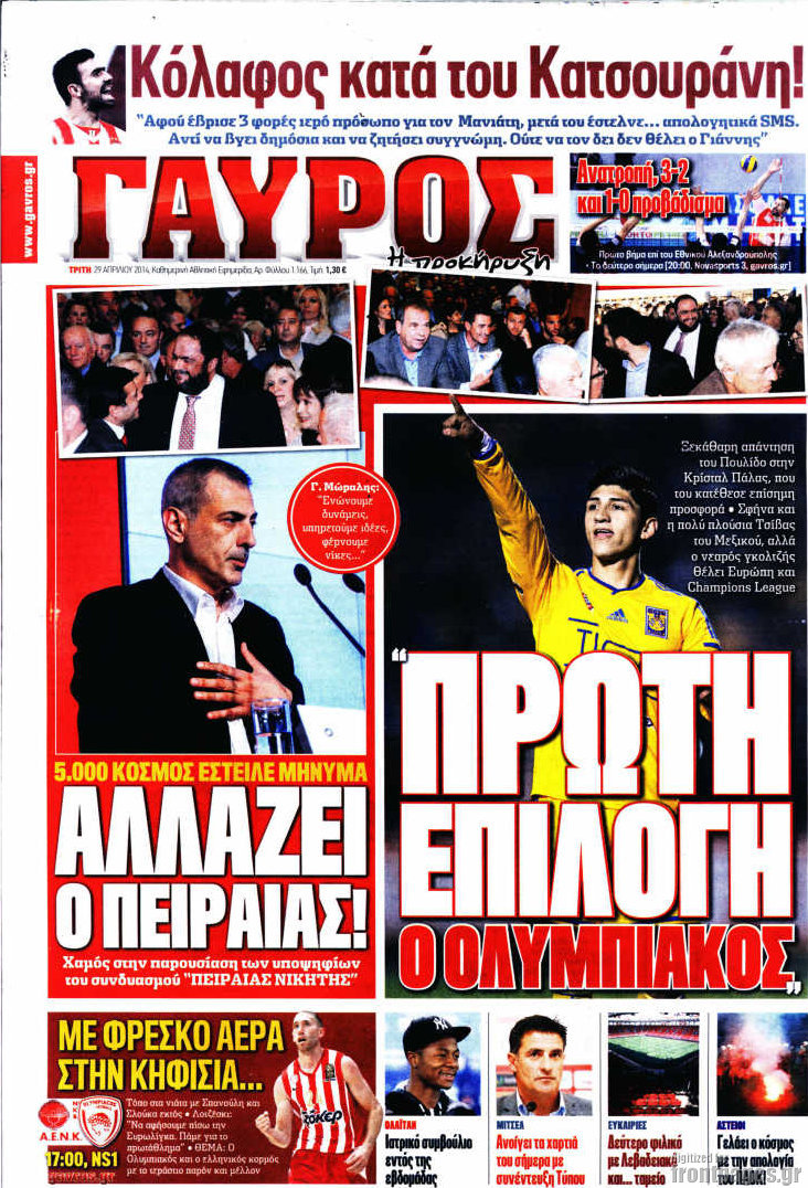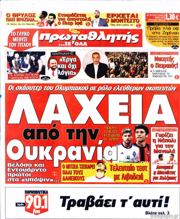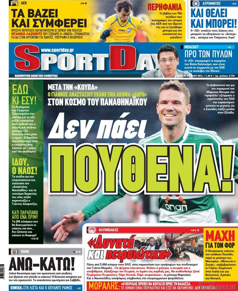 Οι αθλητικές εφημερίδες Enikos Newsroom 08:49, Τρίτη 29 Απριλίου 2014 Media Οι αθλητικές εφημερίδες Διαβάστε τα πρωτοσέλιδα των αθλητικών εφημερίδων: ΑΘΛΗΤΙΚΕΣ ΕΦΗΜΕΡΙΔΕΣ ΕΦΗΜΕΡΙΔΕΣ ΠΡΩΤΟΣΕΛΙΔΑ Μοιράσου το: σχολίασε κι εσύ (0 σχόλια) Ακολουθήστε το enikos.gr στο Google News και μάθετε πρώτοι όλες τις ειδήσεις Δείτε όλες τις τελευταίες ειδήσεις από την Ελλάδα και τον Κόσμο στο enikos.gr Ειδήσεις Ροή Ειδήσεων 5 ώρες πριν Αυξάνουν την πίεση προς την κυβέρνηση οι αγρότες: Κλείνουν παρακαμπτήριους και ανοίγουν διόδια – Τι θα γίνει τις γιορτές 4 ώρες πριν ΟΠΕΚΕΠΕ: Προφυλακιστέος ο φερόμενος αρχηγός και ο λογιστής της εγκληματικής οργάνωσης 20 λεπτά πριν Ευρωπαϊκή Ένωση: Χωρίς συμφωνία, για την μακροπρόθεσμη χρηματοδότηση της Ουκρανίας, ολοκληρώθηκε η Σύνοδος Κορυφής στις Βρυξέλλες 3 ώρες πριν ΑΕΚ – Κραϊόβα 3-2: Επική ανατροπή και πρόκριση στους «16» του Conference League η Ένωση 5 ώρες πριν Φοινικούντα: Το Σάββατο απολογείται ο 30χρονος γιος γνωστού επιχειρηματία της Πλάκας που παραδόθηκε – Όσα είπε στους αστυνομικούς και ο ρόλος του στο έγκλημα 4 ώρες πριν Αρχαιολόγοι ανακάλυψαν ρωμαϊκά τεχνουργήματα από μια πόλη που δεν υπήρξε ποτέ – Τα τρία εντυπωσιακά κτίρια και ο αμφορέας με τις… σαρδέλες 5 ώρες πριν Ύπνος: Η απλή βραδινή ρουτίνα για να προστατεύσετε τα μαλλιά σας από το κρύο κατά τη διάρκεια του χειμώνα 6 ώρες πριν Manifesting: Πώς να συναντήσετε τον σύντροφο της ζωής σας, ανάλογα με τον μήνα γέννησής σας 2 ημέρες πριν 20 χρόνια τα Χριστούγεννα ξεκινούν στα Public με μεγάλη ποικιλία σε δώρα! 20 λεπτά πριν Ευρωπαϊκή Ένωση: Χωρίς συμφωνία, για την μακροπρόθεσμη χρηματοδότηση της Ουκρανίας, ολοκληρώθηκε η Σύνοδος Κορυφής στις Βρυξέλλες 35 λεπτά πριν GNTM: «Κλείδωσαν» οι τέσσερις φιναλίστ – Μεγάλη ανατροπή στις τελευταίες αποχωρήσεις 49 λεπτά πριν Γιώργος Μαζωνάκης: Αποθεώθηκε στην πρεμιέρα του στην «Ακτή Πειραιώς» λίγες ώρες μετά τις καταγγελίες – «Είμαι αληθινός», είπε με νόημα 1 ώρα πριν Πόλεμος στην Ουκρανία: Ρωσικά drones έπληξαν την Οδησσό – Μία νεκρή και ζημιές σε ενεργειακές υποδομές 1 ώρα πριν ΑΕΚ-Κραϊόβα: Τα highlights της μυθικής ανατροπής της «Ένωσης» ENIKOS NETWORK Σε περίοδο αυξημένης δραστηριότητας η γρίπη στην Ελλάδα-Μέτρα προστασίας από τον ΕΟΔΥ Σκέφτεστε συνέχεια συζητήσεις που έχετε κάνει; Τι σημαίνει αυτό, σύμφωνα με ειδικό Στεγαστικό: Τι λέει η ΠΟΜΙΔΑ για τα νέα μέτρα που ανακοίνωσε ο Κυριάκος Μητσοτάκης Λαγκάρντ: Αισιόδοξη για την ανάπτυξη της Ευρωζώνης, αβέβαιη για τον πληθωρισμό Χαρτογραφώντας το «σημείο χωρίς επιστροφή»: Για πρώτη φορά αποκαλύπτεται με λεπτομέρεια το ακανθώδες όριο της ατμόσφαιρας τ... Η Google καταργεί τη λειτουργία «dark web report» – Πώς θα μπορούν οι χρήστες να διαγράφουν τα δεδομένα τους περισσότερα 02:50 , Παρασκευή 19 Δεκεμβρίου 2025 GNTM: «Κλείδωσαν» οι τέσσερις φιναλίστ – Μεγάλη ανατροπή στις τελευταίες αποχωρήσεις Για προτελευταία φορά εμφανίστηκαν στο πλατό του GNTM οι φιναλίστ του φετινού κύκλου, το βράδυ... 17:45 , Πέμπτη 18 Δεκεμβρίου 2025 ROUK ZOUK: Εορταστικό επεισόδιο με καλεσμένους τους πρωταγωνιστές του «Γιατί ρε πατέρα» Το Σάββατο 20 Δεκεμβρίου στις 21:00, η Ζέτα Μακρυπούλια υποδέχεται εκλεκτούς ηθοποιούς που όλο... 17:20 , Πέμπτη 18 Δεκεμβρίου 2025 Άγιος έρωτας: Η Χριστίνα εξομολογείται στον πατέρα Νικόλαο, απόψε στις 21:00 στον Alpha Η Νότα αποφασίζει να εκδικηθεί τον Πέτρο και τον Στέφανο, για χάρη του Λούη, όμως τα πράγματα ... 16:50 , Πέμπτη 18 Δεκεμβρίου 2025 Να μ’ αγαπάς: Ζωή και Φωτ