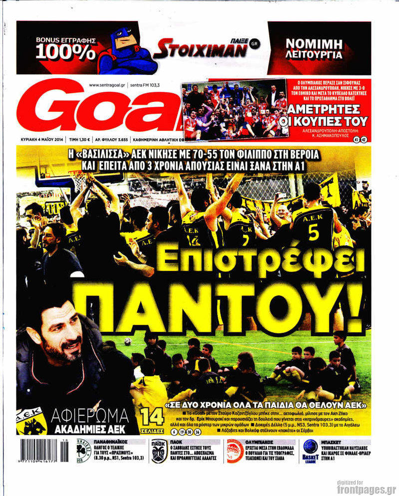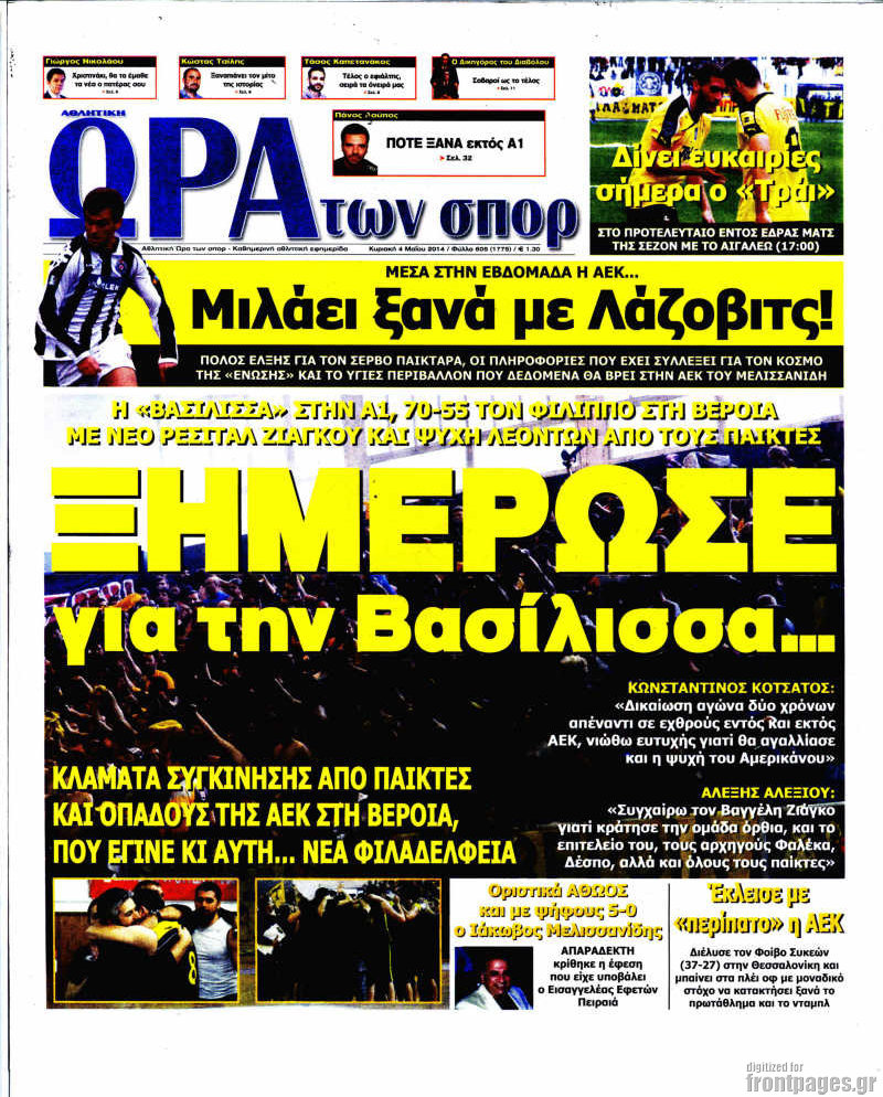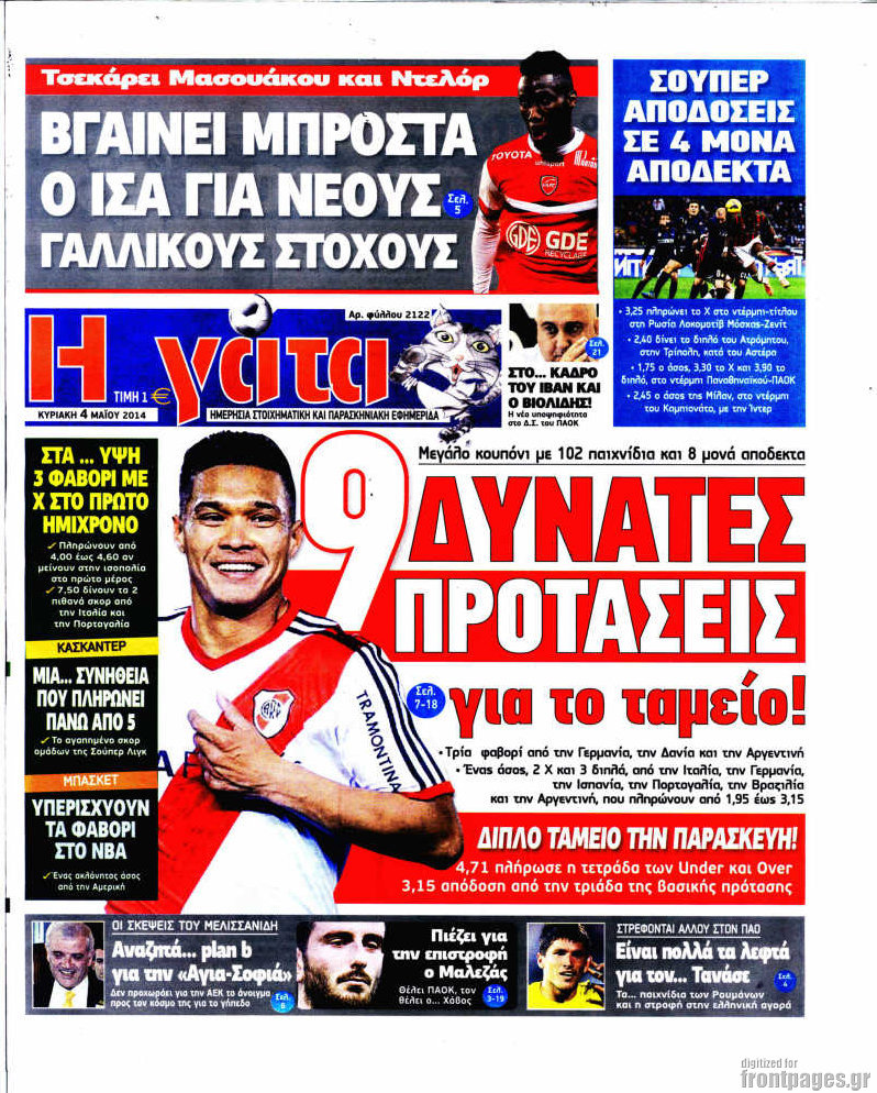 Οι αθλητικές εφημερίδες Enikos Newsroom 09:09, Κυριακή 04 Μαΐου 2014 Media Οι αθλητικές εφημερίδες Διαβάστε τα πρωτοσέλιδα των αθλητικών εφημερίδων ΑΘΛΗΤΙΚΕΣ ΕΦΗΜΕΡΙΔΕΣ ΠΡΩΤΟΣΕΛΙΔΑ Μοιράσου το: σχολίασε κι εσύ (0 σχόλια) Ακολουθήστε το enikos.gr στο Google News και μάθετε πρώτοι όλες τις ειδήσεις Δείτε όλες τις τελευταίες ειδήσεις από την Ελλάδα και τον Κόσμο στο enikos.gr Ειδήσεις Ροή Ειδήσεων 3 ώρες πριν ΣΥΡΙΖΑ: Διαγράφεται ο ευρωβουλευτής Νίκος Παππάς μετά την μήνυση δημοσιογράφου για ξυλοδαρμό 16 λεπτά πριν Δημοσκόπηση Opinion Poll: Στις 12,9 μονάδες η διαφορά ΝΔ-ΠΑΣΟΚ – Τι λένε οι πολίτες για αγρότες, ΟΠΕΚΕΠΕ, Τσίπρα και Σαμαρά 2 ώρες πριν ΟΠΕΚΕΠΕ: Ελεύθερες με όρους η σύζυγος και η αδελφή του φερόμενου αρχηγού – Τι υποστήριξαν 4 ώρες πριν Πώς στήθηκε η επιχείρηση «Ίπαλλος» που οδήγησε στη σύλληψη του «Έλληνα Εσκομπάρ» – «Ο πόλεμος ενάντια στους εμπόρους ναρκωτικών θα συνεχιστεί» 4 ώρες πριν Κυψέλη: Στη φυλακή η 16χρονη που μαχαίρωσε συμμαθήτριά της 1 ώρα πριν Οι άνθρωποι που θυμούνται τα όνειρά τους, συνήθως μοιράζονται αυτά τα 6 σπάνια χαρακτηριστικά 4 ώρες πριν Τα 3 ζώδια που θα δουν τη ζωή τους να αλλάζει ριζικά το 2026 – «Όλα γίνονται καλύτερα σταδιακά» 5 ώρες πριν Ο σπάνιος σεισμός που έλυσε τα χέρια των επιστημόνων – Αποκάλυψε ακριβώς όσα αναζητούσαν 11 ώρες πριν 20 χρόνια τα Χριστούγεννα ξεκινούν στα Public με μεγάλη ποικιλία σε δώρα! 4 λεπτά πριν «Η αξιοπρέπεια δεν είναι διαπραγματεύσιμη» έγραψε στα social media o 21χρονος που αναμένεται να καταγγείλει τον πασίγνωστο τραγουδιστή 8 λεπτά πριν Καθρέφτες μπάνιου: Το απλό κόλπο με την οδοντόκρεμα για να μην θολώνουν 13 λεπτά πριν Στη ΜΕΘ του νοσοκομείου Ζακύνθου ο Μητροπολίτης Δωδώνης 16 λεπτά πριν Δημοσκόπηση Opinion Poll: Στις 12,9 μονάδες η διαφορά ΝΔ-ΠΑΣΟΚ – Τι λένε οι πολίτες για αγρότες, ΟΠΕΚΕΠΕ, Τσίπρα και Σαμαρά 23 λεπτά πριν ΠΑΣΟΚ: Καταδικάζουμε τον ξυλοδαρμό και την τραμπούκικη συμπεριφορά του ευρωβουλευτή Νίκου Παππά σε βάρος του δημοσιογράφου Νίκου Γιαννόπουλου ENIKOS NETWORK Αϋπνία: Το κόλπο που θα σας βοηθήσει να κοιμηθείτε απόψε – Είναι απλό και έχει αποτέλεσμα 2,6 εκατομμύρια πολίτες έχουν ήδη εμβολιαστεί κατά της γρίπης Ελληνικά ομόλογα: Τι λέει η S&P Global Προκήρυξη ΑΣΕΠ για 4.276 μόνιμες προσλήψεις στο Δημόσιο: Βγήκαν τα προσωρινά αποτελέσματα – Ποιοι μπορούν να υποβάλουν ένσ... Χαρτογραφώντας το «σημείο χωρίς επιστροφή»: Για πρώτη φορά αποκαλύπτεται με λεπτομέρεια το ακανθώδες όριο της ατμόσφαιρας τ... Η Google καταργεί τη λειτουργία «dark web report» – Πώς θα μπορούν οι χρήστες να διαγράφουν τα δεδομένα τους περισσότερα 12:35 , Τετάρτη 17 Δεκεμβρίου 2025 Μίρκα Παπακωνσταντίνου: «Δεν ήμουν αισιόδοξη για τα νούμερα – Είμαι ρεαλίστρια» Στα γυρίσματα του εορταστικού επεισοδίου της αγαπημένης σειράς “Το Σόι Σου”, βρέθηκε η κάμερα ... 12:12 , Τετάρτη 17 Δεκεμβρίου 2025 Ακούστε την εκπομπή του Νίκου Χατζηνικολάου 17/12/2025 Ακούστε την εκπομπή του Νίκου Χατζηνικολάου στον ραδιοφωνικό σταθμό RealFm 97,8, την Τετάρτη 1... 11:35 , Τετάρτη 17 Δεκεμβρίου 2025 Home Alone: Το σπίτι της ταινίας θα ανακαινιστεί – Επιστροφή στην αισθητική της δεκαετίας του ’90 Οι νέοι ιδιοκτήτες του πραγματικού σπιτιού που παρουσιάζεται στην κλασική ταινία του 1990 «Hom... 11:25 , Τετάρτη 17 Δεκεμβρίου 2025 Grand Hotel: Απόψε το τελευταίο επεισόδιο της χρονιάς – Όλα τα μυστικά μένουν εδώ Το τελευταίο επεισόδιο της χρονιάς της σειράς «Grand Hotel» θα προβληθεί απόψε στις 21:00. Ο Ά... ΤΕΛΕΥΤΑΙΕΣ ΕΙΔΗΣΕΙΣ 4 λεπτά πριν «Η αξιοπ