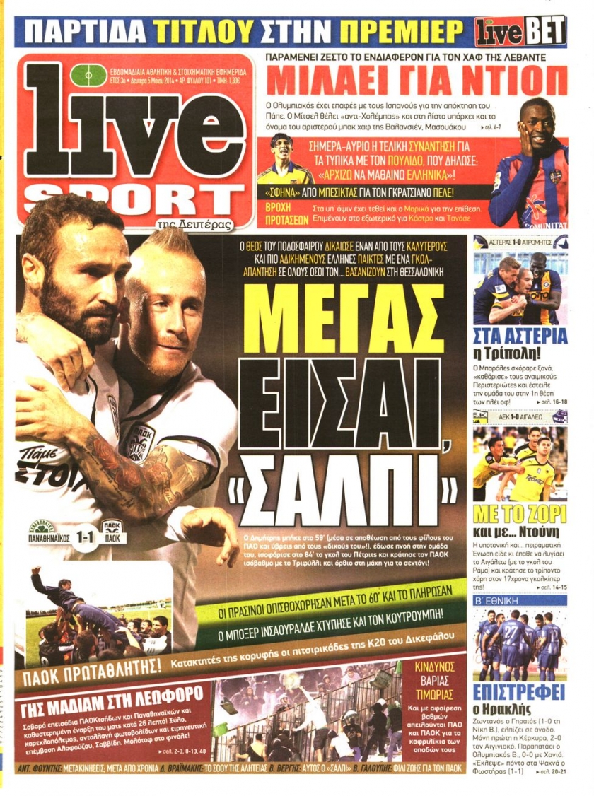 Οι αθλητικές εφημερίδες Enikos Newsroom 08:40, Δευτέρα 05 Μαΐου 2014 Media Οι αθλητικές εφημερίδες Διαβάστε τα πρωτοσέλιδα των αθλητικών εφημερίδων: ΑΘΛΗΤΙΚΕΣ ΕΦΗΜΕΡΙΔΕΣ ΕΦΗΜΕΡΙΔΕΣ ΠΡΩΤΟΣΕΛΙΔΑ Μοιράσου το: σχολίασε κι εσύ (0 σχόλια) Ακολουθήστε το enikos.gr στο Google News και μάθετε πρώτοι όλες τις ειδήσεις Δείτε όλες τις τελευταίες ειδήσεις από την Ελλάδα και τον Κόσμο στο enikos.gr Ειδήσεις Ροή Ειδήσεων 4 ώρες πριν Αγρότες: «Όχι στον διάλογο, μας εμπαίζει η κυβέρνηση» – Αποφάσισαν κλιμάκωση των κινητοποιήσεων, τι θα γίνει τα Χριστούγεννα 1 ώρα πριν Αθήνα: Εξαρθρώθηκε εγκληματική οργάνωση που διακινούσε ναρκωτικά σε μορφή σοκολάτας – Δύο τράπερ ανάμεσα στους 4 συλληφθέντες – ΒΙΝΤΕΟ 2 ώρες πριν Στη φυλακή ο «Έλληνας Εσκομπάρ» και τρεις συνεργοί του για το φορτίο με την κοκαΐνη – Τι υποστήριξε στην απολογία του 3 ώρες πριν Γιώργος Μαζωνάκης: «Έχει υποστεί ένα σωρό εκβιαστικές πρακτικές – Του είπαν ότι θα του βάλουν τον συγκεκριμένο άνθρωπο να τον καταγγείλει» 1 ώρα πριν Γεωργιάδης για Κωνσταντοπούλου: «Έχει καταφέρει να ξεπεράσει ακόμη και τον εαυτό της – Το ερώτημα είναι “γιατί τώρα;”» 5 ώρες πριν Τα 5 ζώδια που θα ευνοηθούν στα οικονομικά τους το 2026 – «Τραβούν το χρήμα σαν μαγνήτες» 2 ώρες πριν Γάμος: 11 ψυχρές αλλά ευγενικές φράσεις, που λέει ένας άνδρας όταν σκέφτεται τον χωρισμό 1 ώρα πριν Σφουγγάρισμα: Η συνήθεια που θα σας βοηθήσει να διατηρήσετε το σπίτι σας καθαρό και τακτοποιημένο 2 ημέρες πριν 20 χρόνια τα Χριστούγεννα ξεκινούν στα Public με μεγάλη ποικιλία σε δώρα! 2 λεπτά πριν Αγρότες: Άνοιξε ο μεθοριακός σταθμός του Προμαχώνα για τα φορτηγά 11 λεπτά πριν Δημοσκόπηση Metron Analysis: Στις 10 μονάδες η διαφορά ΝΔ-ΠΑΣΟΚ, στην 3η θέση η Πλεύση Ελευθερίας – 8 στους 10 στηρίζουν τον αγώνα των αγροτών 17 λεπτά πριν Ολυμπιακός: Τι ζήτησε από τον Άγιο Βασίλη ο Χοσέ Λουίς Μεντιλίμπαρ 22 λεπτά πριν Manifesting: Πώς να συναντήσετε τον σύντροφο της ζωής σας, ανάλογα με τον μήνα γέννησής σας 32 λεπτά πριν Hellenic Train: Καθυστερήσεις στον Προαστιακό λόγω φωτιάς κοντά στη σιδηροδρομική γραμμή ENIKOS NETWORK Σε περίοδο αυξημένης δραστηριότητας η γρίπη στην Ελλάδα-Μέτρα προστασίας από τον ΕΟΔΥ Σκέφτεστε συνέχεια συζητήσεις που έχετε κάνει; Τι σημαίνει αυτό, σύμφωνα με ειδικό ΕΛΣΤΑΤ: Τι δείχνουν τα νέα στοιχεία για τον μόνιμο πληθυσμό στην Ελλάδα Servicers: Μικρή μείωση στα κόκκινα δάνεια που διαχειρίζονται – Αναλυτικά τα στοιχεία Χαρτογραφώντας το «σημείο χωρίς επιστροφή»: Για πρώτη φορά αποκαλύπτεται με λεπτομέρεια το ακανθώδες όριο της ατμόσφαιρας τ... Η Google καταργεί τη λειτουργία «dark web report» – Πώς θα μπορούν οι χρήστες να διαγράφουν τα δεδομένα τους περισσότερα 17:45 , Πέμπτη 18 Δεκεμβρίου 2025 ROUK ZOUK: Εορταστικό επεισόδιο με καλεσμένους τους πρωταγωνιστές του «Γιατί ρε πατέρα» Το Σάββατο 20 Δεκεμβρίου στις 21:00, η Ζέτα Μακρυπούλια υποδέχεται εκλεκτούς ηθοποιούς που όλο... 17:20 , Πέμπτη 18 Δεκεμβρίου 2025 Άγιος έρωτας: Η Χριστίνα εξομολογείται στον πατέρα Νικόλαο, απόψε στις 21:00 στον Alpha Η Νότα αποφασίζει να εκδικηθεί τον Πέτρο και τον Στέφανο, για χάρη του Λούη, όμως τα πράγματα ... 16:50 , Πέμπτη 18 Δεκεμβρίου 2025 Να μ’ αγαπάς: Ζωή και Φωτεινή συμφιλιώνονται ως μάνα με κόρη, απόψε στις 20:00 Η ταυτότητα του Άγγελου αποκαλύπτεται στο νέο επεισόδιο της σειράς “Να μ’ αγαπάς... 15:52 , Πέμπτη 18 Δεκεμβρίου 2025 Το Σπίτι Δίπλα Στο Ποτάμι: Το καθηλωτικό τελευταίο επεισόδιο για το 2025 απόψε στις 22:30 Καθηλώνει το σημερινό επεισόδιο της σειρ