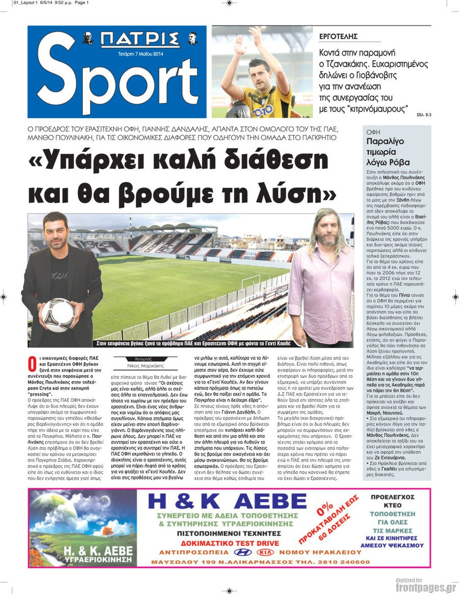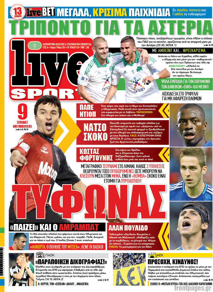 Οι αθλητικές εφημερίδες Enikos Newsroom 08:54, Τετάρτη 07 Μαΐου 2014 Media Οι αθλητικές εφημερίδες Διαβάστε τα πρωτοσέλιδα των αθλητικών εφημερίδων: ΑΘΛΗΤΙΚΕΣ ΕΦΗΜΕΡΙΔΕΣ ΠΡΩΤΟΣΕΛΙΔΑ Μοιράσου το: σχολίασε κι εσύ (0 σχόλια) Ακολουθήστε το enikos.gr στο Google News και μάθετε πρώτοι όλες τις ειδήσεις Δείτε όλες τις τελευταίες ειδήσεις από την Ελλάδα και τον Κόσμο στο enikos.gr Ειδήσεις Ροή Ειδήσεων 28 λεπτά πριν «Έλληνας Εσκομπάρ»: Φωτογραφίες με τους 4 τόνους κοκαΐνης που κατασχέθηκαν από το σκάφος «Ουρανία» 3 ώρες πριν Η Ουκρανία χτύπησε τάνκερ του σκιώδους στόλου της Ρωσίας στη Μεσόγειο – Έπλεε νότια της Κρήτης 2 ώρες πριν Πούτιν: Σαρκαστικά μηνύματα, παράπονα και απρόοπτα στη συνέντευξη Τύπου – Η πρόταση γάμου on air και οι ερωτήσεις για τα αγγούρια και τους… εξωγήινους 2 ώρες πριν Η απάντηση της κυβέρνησης στα αιτήματα των αγροτών: 16+4 υλοποιούνται ή βρίσκονται υπό επεξεργασία για να βρεθεί λύση – 7 δεν μπορούν να επιλυθούν 3 ώρες πριν Εξώδικο επιχειρηματία στον Γιώργο Μαζωνάκη – Τι απαντά στις καταγγελίες του τραγουδιστή 1 ώρα πριν Τα 5 ζώδια που ευνοούνται στην ερωτική ζωή τους την επόμενη εβδομάδα – «Η ενέργεια του Αιγόκερου φέρνει αγάπη και σταθερότητα» 6 ώρες πριν Γεμάτος νεροχύτης; 5 σοβαρές ευθύνες που «φοβίζουν» όσους αφήνουν άπλυτα πιάτα 5 ώρες πριν Ειδικός μοιράζεται 6 κόλπα για να διατηρείστε σε φόρμα με πάνω από 40 ώρες εργασίας την εβδομάδα: «Προπονηθείτε πριν από τη δουλειά, όχι μετά» 2 ημέρες πριν 20 χρόνια τα Χριστούγεννα ξεκινούν στα Public με μεγάλη ποικιλία σε δώρα! 5 λεπτά πριν ΥΠΑΑΤ: Αναστολή μέτρων αναγκαστικής εκτέλεσης για κτηνοτρόφους που πλήττονται από την ευλογιά των αιγοπροβάτων 8 λεπτά πριν Γαλλία: Ξαφνική «επίσκεψη» των αγροτών στο σπίτι του Μακρόν – Πέταξαν κοπριά, λάχανα, λάστιχα και άφησαν ένα φέρετρο – ΒΙΝΤΕΟ 15 λεπτά πριν Από το Ορμένιο ως τα Μάλγαρα κι από τη Σιάτιστα μέχρι τη Νίκαια: Μπλόκα σε όλη την Ελλάδα – Το Σάββατο ανοίγουν τα διόδια οι αγρότες 16 λεπτά πριν Ταϊβάν: 3 νεκροί έπειτα από επίθεση άνδρα με μαχαίρι – Ο δράστης σκοτώθηκε σε αστυνομική καταδίωξη – ΒΙΝΤΕΟ 19 λεπτά πριν Άρης Μουγκοπέτρος για τα προσθετικά μέλη: «Οι κόρες μου ήρθαν, μου χαϊδέψαν το χέρι και μου είπαν “μπαμπά το μιμί πέρασε”» ENIKOS NETWORK ΕΛΣΤΑΤ: Αύξηση κατά 1,7% των επαγγελματιών υγείας το 2024 Τάξη στις ιατρικές διαφημίσεις για την προστασία των πολιτών βάζει ο ΙΣΑ Μετρό: Ενισχύονται τα δρομολόγια – Δείτε ποιες ημέρες Παπαθανάσης για νέο Εθνικό Πρόγραμμα Ανάπτυξης 2026-2030: Είναι υπερδιπλάσιο από αυτό της προηγούμενης προγραμματικής περιό... Χαρτογραφώντας το «σημείο χωρίς επιστροφή»: Για πρώτη φορά αποκαλύπτεται με λεπτομέρεια το ακανθώδες όριο της ατμόσφαιρας τ... Η Google καταργεί τη λειτουργία «dark web report» – Πώς θα μπορούν οι χρήστες να διαγράφουν τα δεδομένα τους περισσότερα 15:15 , Παρασκευή 19 Δεκεμβρίου 2025 Την Κυριακή με τη Realnews: Ό,τι και αν αγοράσεις, σκανάρεις και κερδίζεις! Την Κυριακή με τη Realnews: Ό,τι και αν αγοράσεις, σκανάρεις και κερδίζεις! Με το PADU app, το... 08:00 , Παρασκευή 19 Δεκεμβρίου 2025 Την Κυριακή με τη Realnews: Δωροεπιταγή 10€ Δωροεπιταγή αξίας 10€ για αγορές άνω των 60€ από τα πολυκαταστήματα FactoryOutlet H προσφορά ι... 05:48 , Παρασκευή 19 Δεκεμβρίου 2025 Οι οικονομικές εφημερίδες 19/12/2025 Διαβάστε τα πρωτοσέλιδα από τις οικονομικές εφημερίδες, σήμερα 19/12/2025. 05:43 , Παρασκευή 19 Δεκεμβρίου 2025 Οι αθλητικές εφημερίδες 19/12/2025 Διαβάστε τα πρωτοσέλιδα από τις αθλητικές εφημερίδες, σήμ