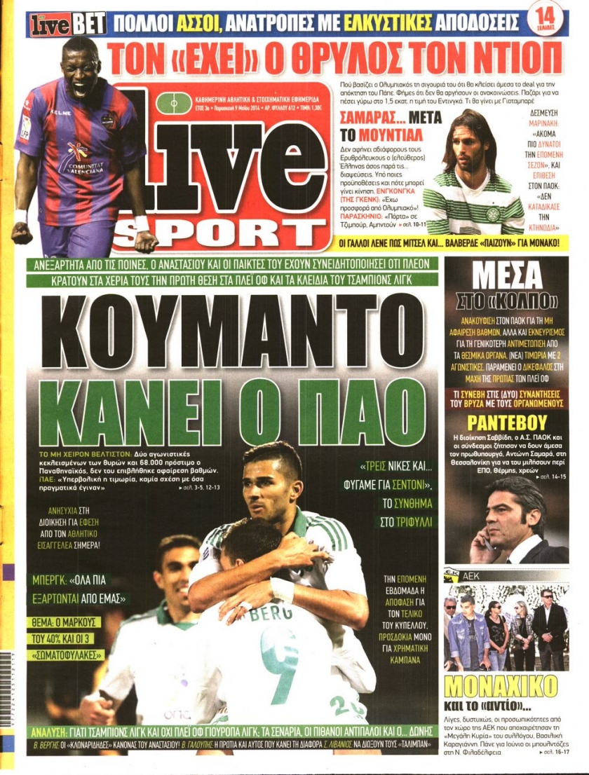 Οι αθλητικές εφημερίδες Enikos Newsroom 08:53, Παρασκευή 09 Μαΐου 2014 Media Οι αθλητικές εφημερίδες Διαβάστε τα πρωτοσέλιδα των αθλητικών εφημερίδων: ΑΘΛΗΤΙΚΕΣ ΕΦΗΜΕΡΙΔΕΣ ΕΦΗΜΕΡΙΔΕΣ ΠΡΩΤΟΣΕΛΙΔΑ Μοιράσου το: σχολίασε κι εσύ (0 σχόλια) Ακολουθήστε το enikos.gr στο Google News και μάθετε πρώτοι όλες τις ειδήσεις Δείτε όλες τις τελευταίες ειδήσεις από την Ελλάδα και τον Κόσμο στο enikos.gr Ειδήσεις Ροή Ειδήσεων 5 ώρες πριν Αγρότες: «Όχι στον διάλογο, μας εμπαίζει η κυβέρνηση» – Αποφάσισαν κλιμάκωση των κινητοποιήσεων, τι θα γίνει τα Χριστούγεννα 1 ώρα πριν Αθήνα: Εξαρθρώθηκε εγκληματική οργάνωση που διακινούσε ναρκωτικά σε μορφή σοκολάτας – Δύο τράπερ ανάμεσα στους 4 συλληφθέντες – ΒΙΝΤΕΟ 2 ώρες πριν Στη φυλακή ο «Έλληνας Εσκομπάρ» και τρεις συνεργοί του για το φορτίο με την κοκαΐνη – Τι υποστήριξε στην απολογία του 3 ώρες πριν Γιώργος Μαζωνάκης: «Έχει υποστεί ένα σωρό εκβιαστικές πρακτικές – Του είπαν ότι θα του βάλουν τον συγκεκριμένο άνθρωπο να τον καταγγείλει» 1 ώρα πριν Γεωργιάδης για Κωνσταντοπούλου: «Έχει καταφέρει να ξεπεράσει ακόμη και τον εαυτό της – Το ερώτημα είναι “γιατί τώρα;”» 5 ώρες πριν Τα 5 ζώδια που θα ευνοηθούν στα οικονομικά τους το 2026 – «Τραβούν το χρήμα σαν μαγνήτες» 2 ώρες πριν Γάμος: 11 ψυχρές αλλά ευγενικές φράσεις, που λέει ένας άνδρας όταν σκέφτεται τον χωρισμό 1 ώρα πριν Σφουγγάρισμα: Η συνήθεια που θα σας βοηθήσει να διατηρήσετε το σπίτι σας καθαρό και τακτοποιημένο 2 ημέρες πριν 20 χρόνια τα Χριστούγεννα ξεκινούν στα Public με μεγάλη ποικιλία σε δώρα! 27 δευτερόλεπτα πριν Νίκος Παππάς στον ΑΝΤ1: «Δεν κρύβομαι – Μετά το συμβάν ακολούθησα κανονικά το πρόγραμμά μου» – ΒΙΝΤΕΟ 3 λεπτά πριν Αγρότες: Άνοιξε ο μεθοριακός σταθμός του Προμαχώνα για τα φορτηγά 12 λεπτά πριν Δημοσκόπηση Metron Analysis: Στις 10 μονάδες η διαφορά ΝΔ-ΠΑΣΟΚ, στην 3η θέση η Πλεύση Ελευθερίας – 8 στους 10 στηρίζουν τον αγώνα των αγροτών 17 λεπτά πριν Ολυμπιακός: Τι ζήτησε από τον Άγιο Βασίλη ο Χοσέ Λουίς Μεντιλίμπαρ 23 λεπτά πριν Manifesting: Πώς να συναντήσετε τον σύντροφο της ζωής σας, ανάλογα με τον μήνα γέννησής σας ENIKOS NETWORK Σε περίοδο αυξημένης δραστηριότητας η γρίπη στην Ελλάδα-Μέτρα προστασίας από τον ΕΟΔΥ Σκέφτεστε συνέχεια συζητήσεις που έχετε κάνει; Τι σημαίνει αυτό, σύμφωνα με ειδικό ΕΛΣΤΑΤ: Τι δείχνουν τα νέα στοιχεία για τον μόνιμο πληθυσμό στην Ελλάδα Servicers: Μικρή μείωση στα κόκκινα δάνεια που διαχειρίζονται – Αναλυτικά τα στοιχεία Χαρτογραφώντας το «σημείο χωρίς επιστροφή»: Για πρώτη φορά αποκαλύπτεται με λεπτομέρεια το ακανθώδες όριο της ατμόσφαιρας τ... Η Google καταργεί τη λειτουργία «dark web report» – Πώς θα μπορούν οι χρήστες να διαγράφουν τα δεδομένα τους περισσότερα 17:45 , Πέμπτη 18 Δεκεμβρίου 2025 ROUK ZOUK: Εορταστικό επεισόδιο με καλεσμένους τους πρωταγωνιστές του «Γιατί ρε πατέρα» Το Σάββατο 20 Δεκεμβρίου στις 21:00, η Ζέτα Μακρυπούλια υποδέχεται εκλεκτούς ηθοποιούς που όλο... 17:20 , Πέμπτη 18 Δεκεμβρίου 2025 Άγιος έρωτας: Η Χριστίνα εξομολογείται στον πατέρα Νικόλαο, απόψε στις 21:00 στον Alpha Η Νότα αποφασίζει να εκδικηθεί τον Πέτρο και τον Στέφανο, για χάρη του Λούη, όμως τα πράγματα ... 16:50 , Πέμπτη 18 Δεκεμβρίου 2025 Να μ’ αγαπάς: Ζωή και Φωτεινή συμφιλιώνονται ως μάνα με κόρη, απόψε στις 20:00 Η ταυτότητα του Άγγελου αποκαλύπτεται στο νέο επεισόδιο της σειράς “Να μ’ αγαπάς... 15:52 , Πέμπτη 18 Δεκεμβρίου 2025 Το Σπίτι Δίπλα Στο Ποτάμι: Το καθηλωτικό τελευταίο επεισόδιο για το 2025 απόψε στις 22:30 Καθηλώνει το 