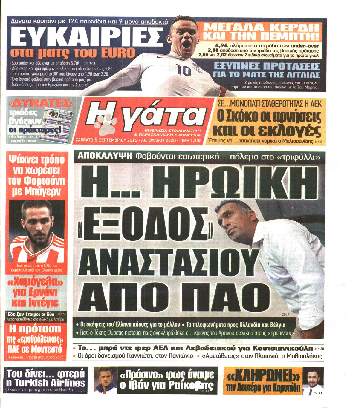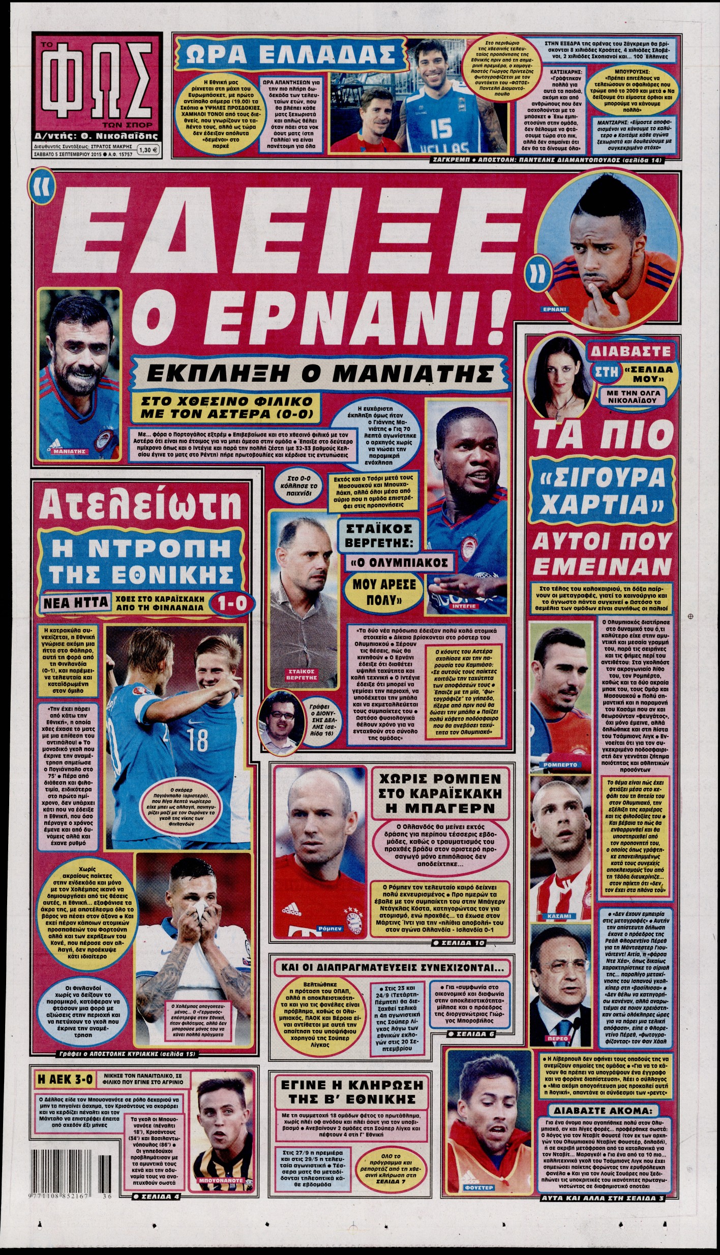 Οι αθλητικές εφημερίδες 5/9/2015 Enikos Newsroom 08:32, Σάββατο 05 Σεπτεμβρίου 2015 Media Διαβάστε τα πρωτοσέλιδα των αθλητικών εφημερίδων. ΑΘΛΗΤΙΚΕΣ ΕΦΗΜΕΡΙΔΕΣ ΠΡΩΤΟΣΕΛΙΔΑ Μοιράσου το: σχολίασε κι εσύ (0 σχόλια) Ακολουθήστε το enikos.gr στο Google News και μάθετε πρώτοι όλες τις ειδήσεις Δείτε όλες τις τελευταίες ειδήσεις από την Ελλάδα και τον Κόσμο στο enikos.gr Ειδήσεις Ροή Ειδήσεων 3 ώρες πριν Από το Ορμένιο ως τα Μάλγαρα κι από τη Σιάτιστα μέχρι τη Νίκαια: Μπλόκα σε όλη την Ελλάδα – Το Σάββατο ανοίγουν τα διόδια οι αγρότες 38 λεπτά πριν Εμπλοκή και αερομαχίες με οπλισμένα τουρκικά F-16 στο Αιγαίο 2 ώρες πριν Αττική: Θρίλερ με νεκρό βρέφος 5 μηνών – Κοιμόταν στο ίδιο κρεβάτι με τους γονείς του 28 λεπτά πριν Πούτιν: «Ναι, είμαι ερωτευμένος» – Βίντεο από τη σπάνια προσωπική παραδοχή του 2 ώρες πριν Μεσόγειος: Η διαδρομή του ρωσικού τάνκερ «Qendil» και η στοχευμένη επίθεση της Ουκρανίας με drone – Ο Πούτιν προειδοποίησε για αντίποινα 4 ώρες πριν Τα 5 ζώδια που ευνοούνται στην ερωτική ζωή τους την επόμενη εβδομάδα – «Η ενέργεια του Αιγόκερου φέρνει αγάπη και σταθερότητα» 5 ώρες πριν Αυτό το έξυπνο μαθηματικό κόλπο θα μπορούσε να αλλάξει τον τρόπο με τον οποίο οι επιστήμονες μελετούν τους σεισμούς 1 ώρα πριν Μήπως έχετε χάσει τον εαυτό σας στη σχέση σας; 7 «αθόρυβες» υποχωρήσεις που μάλλον κάνατε, χωρίς να το συνειδητοποιήσετε 3 ώρες πριν Κουίζ για την παλιά Αθήνα: Αναγνωρίζετε την περιοχή; Έχετε περάσει 100% από εκεί 54 δευτερόλεπτα πριν Νίκος Γιαννόπουλος: «Μου επιτέθηκε ο Παππάς – Ήμουν νηφάλιος, δεν τον προκάλεσα» – ΒΙΝΤΕΟ 9 λεπτά πριν Γιώργος Τράγκας: Ανατροπή από το Πριγκιπάτο του Μονακό για την υπόθεση της κληρονομιάς – Η ανακοίνωση της δικηγόρου της Μαρίας Καρρά 16 λεπτά πριν Ξεχάστε το καθάρισμα το Σαββατοκύριακο: Ο «κανόνας των 20 λεπτών» που θα σας λύσει τα χέρια 18 λεπτά πριν Αγρότες: Έκλεισαν την υψηλή γέφυρα της Χαλκίδας – ΒΙΝΤΕΟ 21 λεπτά πριν Ρούμπιο: Έχει υπάρξει πρόοδος στις συνομιλίες για την Ουκρανία – Τα τελευταία ζητήματα είναι τα πιο δύσκολα ENIKOS NETWORK Έχετε πραγματικά μεγάλη καρδιά; 10 χαρακτηριστικά όσων έχουν καλοσύνη «Η σούπερ» γρίπη εξαπλώνεται στην Ευρώπη-Στοιχεία από το ECDC για την αποτελεσματικότητα του εμβολίου Επίδομα παιδιού: Πότε ανοίγει ξανά η πλατφόρμα για τις αιτήσεις Προκήρυξη ΑΣΕΠ για 397 μόνιμες προσλήψεις στο Δημόσιο: Βγήκαν τα προσωρινά αποτελέσματα – Πότε αρχίζει η υποβολή ενστάσεων Χαρτογραφώντας το «σημείο χωρίς επιστροφή»: Για πρώτη φορά αποκαλύπτεται με λεπτομέρεια το ακανθώδες όριο της ατμόσφαιρας τ... Η Google καταργεί τη λειτουργία «dark web report» – Πώς θα μπορούν οι χρήστες να διαγράφουν τα δεδομένα τους περισσότερα 19:31 , Παρασκευή 19 Δεκεμβρίου 2025 GNTM: Απόψε ο μεγάλος τελικός για τους 4 φιναλίστ Έπειτα από μήνες γεμάτους μόδα, δημιουργία και έντονες αναμετρήσεις, το GNTM 2025 κορυφώνεται,... 18:11 , Παρασκευή 19 Δεκεμβρίου 2025 Το σόι σου: Ο Άρης έρχεται στην Ελλάδα για τις γιορτές των Χριστουγέννων – Τι θα δούμε στο αποψινό εορταστικό επεισόδιο Ένα απολαυστικό, εορταστικό επεισόδιο της σειράς “Το σόι σου”, γεμάτο ευτράπελα αλ... 15:15 , Παρασκευή 19 Δεκεμβρίου 2025 Την Κυριακή με τη Realnews: Ό,τι και αν αγοράσεις, σκανάρεις και κερδίζεις! Την Κυριακή με τη Realnews: Ό,τι και αν αγοράσεις, σκανάρεις και κερδίζεις! Με το PADU app, το... 08:00 , Παρασκευή 19 Δεκεμβρίου 2025 Την Κυριακή με τη Realnews: Δωροεπιταγή 10€ Δωροεπιταγή αξίας 10€ για αγορές άνω των 60€ από τα πολυκαταστήματα FactoryOutlet H 