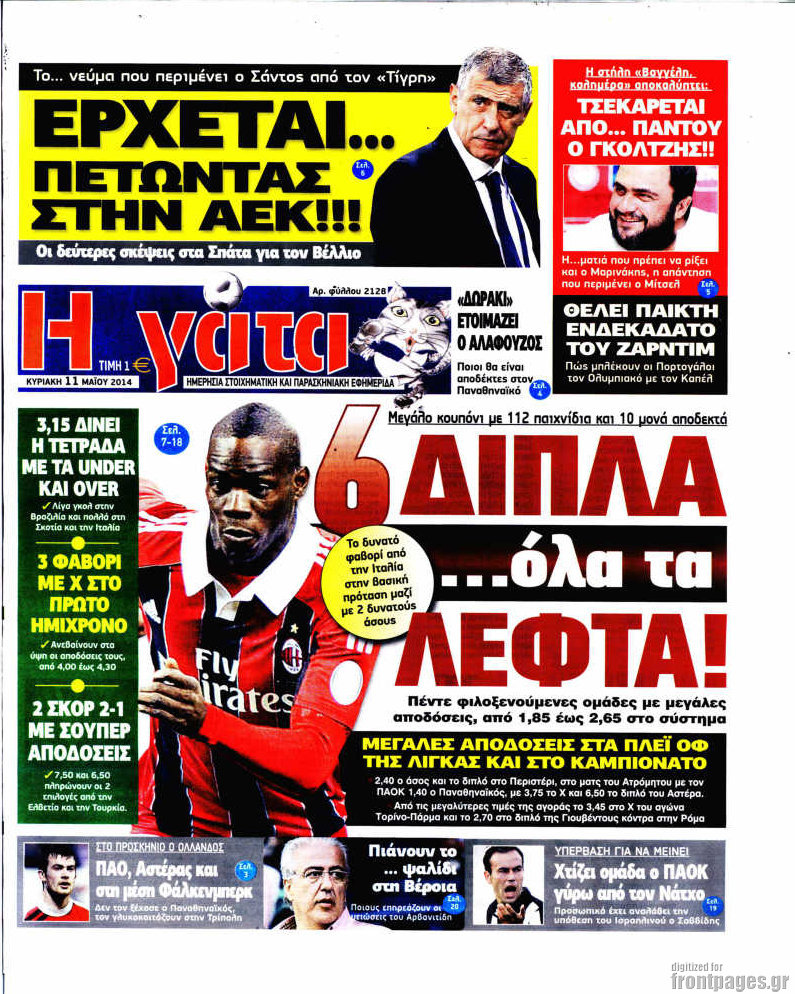 Οι αθλητικές εφημερίδες Enikos Newsroom 08:10, Κυριακή 11 Μαΐου 2014 Media Οι αθλητικές εφημερίδες ΑΘΛΗΤΙΚΕΣ ΕΦΗΜΕΡΙΔΕΣ ΕΦΗΜΕΡΙΔΕΣ ΠΡΩΤΟΣΕΛΙΔΑ Μοιράσου το: σχολίασε κι εσύ (0 σχόλια) Ακολουθήστε το enikos.gr στο Google News και μάθετε πρώτοι όλες τις ειδήσεις Δείτε όλες τις τελευταίες ειδήσεις από την Ελλάδα και τον Κόσμο στο enikos.gr Ειδήσεις Ροή Ειδήσεων 4 ώρες πριν Δολοφονία στη Νέα Πέραμο: Με 10 σφαίρες πισώπλατα εκτέλεσαν τον 27χρονο – Τον κράτησαν 6 μέρες όμηρο; 1 ώρα πριν Αγιόκαμπος: «Μια στιγμή μπορεί να σε τελειώσει για μια ζωή» λέει ο ιδιοκτήτης του παντοπωλείου που «χτυπήθηκε» για τρίτη φορά από την κακοκαιρία – «Είχα όνειρα, όλα κατέρρευσαν» 3 ώρες πριν Βουλή: Ξεκινούν οι εσωκομματικές διεργασίες για την Αναθεώρηση του Συντάγματος – Οι κοινοβουλευτικές διαδικασίες που προβλέπονται 49 λεπτά πριν Δημοσκόπηση Alco: Στις 13 μονάδες η διαφορά ΝΔ-ΠΑΣΟΚ – Πώς αξιολογούν οι πολίτες τις νέες πολιτικές κινήσεις; 3 ώρες πριν Τέμπη: Το πόρισμα του ΕΟΔΑΣΑΑΜ για τα καθίσματα της επιβατικής αμαξοστοιχίας – Δεν πληρούσαν τις προδιαγραφές πυραντοχής 43 λεπτά πριν Oι άνθρωποι που δεν αλλάζουν ποτέ κούρεμα, συνήθως διαθέτουν αυτά τα 9 σπάνια χαρακτηριστικά 5 ώρες πριν Τα 3 ζώδια που θα έχουν την τύχη με το μέρος τους έως τις 8 Φεβρουαρίου – «Αρπάξτε τις ευκαιρίες για το επόμενο βήμα στη ζωή σας» 6 ώρες πριν Ο φλοιός της Γης αψηφά τους κανόνες και οι επιστήμονες μόλις ανακάλυψαν τον λόγο 2 ώρες πριν Λευκές περσίδες ξανά: Η απλή μέθοδος για να εξαφανίσετε την κιτρινίλα χωρίς τρίψιμο 1 λεπτό πριν Eurostat: Το 9,2% του πληθυσμού της ΕΕ δυσκολεύεται να διατηρήσει το σπίτι του ζεστό 6 λεπτά πριν ΑΕΚ: Εξέδωσε ανακοίνωση για τη διαιτησία του Μάκελι στο ντέρμπι με τον Ολυμπιακό – «21 σοβαρά λάθη εις βάρος μας» 12 λεπτά πριν Εξαφανίστηκε 16χρονη από χώρο φιλοξενίας ανηλίκων στη Νέα Σμύρνη – Η ανακοίνωση από το «Χαμόγελο του Παιδιού» 18 λεπτά πριν Βουλή-Πλεύρης: Δύο προσωρινές και μία μόνιμη δομή μεταναστών στην Κρήτη 23 λεπτά πριν Μεγάλη άνοδος για την ενημέρωση του OPEN και τον Ιανουάριο του 2026 ENIKOS NETWORK 5 πράγματα που κάνουν μαζί τα ευτυχισμένα ζευγάρια Δύο παιδιά με γρίπη στις ΜΕΘ – Συνεχίζεται η απειλή των εποχικών λοιμώξεων Προκήρυξη ΑΣΕΠ για 132 μόνιμες προσλήψεις: Ανακοινώθηκαν τα προσωρινά αποτελέσματα – Πότε αρχίζει η υποβολή ενστάσεων Σημαντικά κέρδη στο Χρηματιστήριο – Έκλεισε με άνοδο 1,38% Ευπάθεια στο moltbook ai αποκαλύπτει email, tokens σύνδεσης και api keys Αυτός είναι ο ρόλος της μικρής τρύπας στους νυχοκόπτες – «Είμαι ο μόνος που δεν το ήξερε;»» περισσότερα 18:18 , Δευτέρα 02 Φεβρουαρίου 2026 Άγιος Έρωτας: Η μικρή Ελευθερία δεν θέλει τους νέους της γονείς και η Χλόη καταφεύγει στον πατέρα Νικόλαο Όσα θα δούμε απόψε στο νέο επεισόδιο της σειράς “Άγιος Έρωτας” στις 22:00 στον Alp... 18:07 , Δευτέρα 02 Φεβρουαρίου 2026 MasterChef 10: Το πρώτο Mystery Box έχει την παιχνιδιάρικη υπογραφή του Πάνου Ιωαννίδη Μετά τις πρώτες εβδομάδες και τις διαδικασίες, που προηγήθηκαν, 14 διαγωνιζόμενοι της πρώτης μ... 17:45 , Δευτέρα 02 Φεβρουαρίου 2026 Grand Hotel: Ο Πέτρος και η Αλίκη είναι και πάλι μαζί Καταιγιστικές οι εξελίξεις στο νέο διπλό επεισόδιο της σειράς “Grand Hotel” στις 2... 17:15 , Δευτέρα 02 Φεβρουαρίου 2026 Να μ’ αγαπάς: Η Φωτεινή ανακοινώνει στη Ζωή πως είναι έγκυος, απόψε στις 20:00, με διπλό επεισόδιο Ο Θεόφιλος λαμβάνει τα αποτελέσματα του τεστ DΝA, στο νέο διπλό επεισόδιο της σειράς “Να... ΤΕΛΕΥΤΑΙΕΣ ΕΙΔΗΣΕΙΣ 6 λεπτά πριν ΑΕΚ: Εξέδωσε ανακοίνωση για τη δι