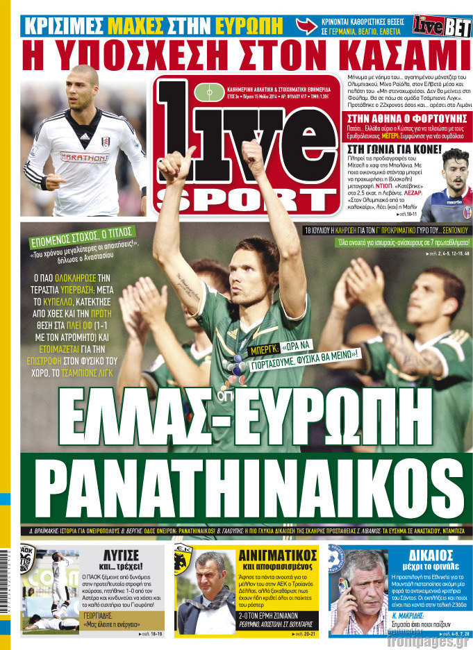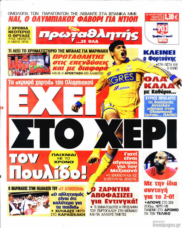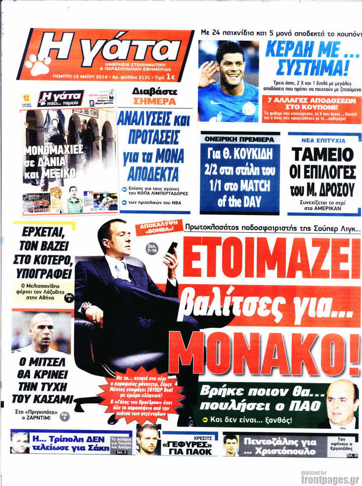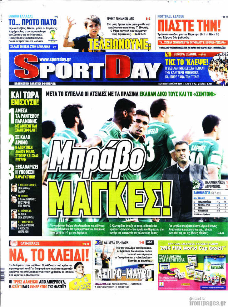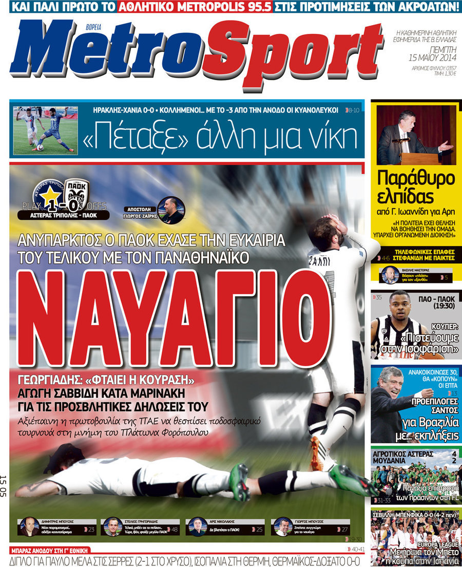 Οι αθλητικές εφημερίδες Enikos Newsroom 08:37, Πέμπτη 15 Μαΐου 2014 Media Οι αθλητικές εφημερίδες Διαβάστε τα πρωτοσέλιδα των αθλητικών εφημερίδων: ΑΘΛΗΤΙΚΕΣ ΕΦΗΜΕΡΙΔΕΣ ΕΦΗΜΕΡΙΔΕΣ ΠΡΩΤΟΣΕΛΙΔΑ Μοιράσου το: σχολίασε κι εσύ (0 σχόλια) Ακολουθήστε το enikos.gr στο Google News και μάθετε πρώτοι όλες τις ειδήσεις Δείτε όλες τις τελευταίες ειδήσεις από την Ελλάδα και τον Κόσμο στο enikos.gr Ειδήσεις Ροή Ειδήσεων 33 λεπτά πριν Live streaming – Ο Μάκης Βορίδης στο στούντιο του Realfm 97,8 σε μια εφ’ όλης της ύλης συνέντευξη στον Νίκο Χατζηνικολάου 59 λεπτά πριν Κατρίνης: «Ο μικρός μου γιος οδηγούσε χωρίς δίπλωμα, πράξη αδικαιολόγητη και παράνομη – Ο νόμος ισχύει για όλους» 48 λεπτά πριν ΕΕ: Η Κομισιόν παρουσιάζει σήμερα σχέδιο για την αντιμετώπιση της στεγαστικής κρίσης – Προτείνει πλαφόν στα Airbnb 1 ώρα πριν Κυβέρνηση: Αγώνας για γιορτές χωρίς μπλόκα – Τι συζητά και τι απορρίπτει το Μαξίμου 18 λεπτά πριν Βίντεο: Κατέρρευσε άγαλμα στη Βραζιλία λόγω ισχυρών ανέμων – Καρέ καρέ η δραματική πτώση του 2 ώρες πριν Τέλος η μοναξιά για 3 ζώδια μετά τις 16 Δεκεμβρίου – «Ξαναβρίσκετε τον εαυτό σας» 4 ώρες πριν Ανακαλύφθηκε περίτεχνη μαρμάρινη μπανιέρα που επαναχρησιμοποιήθηκε ως κρήνη 3 ώρες πριν Η πεθερά της την κατηγορεί πως δεν την ταΐζει σωστά – «Δεν παραπονιέται όμως στον γιο της» 43 λεπτά πριν Οι άνθρωποι που φαίνονται «τυχεροί» στη ζωή τους, συνήθως έχουν αυτές τις 8 αθόρυβες συνήθειες 3 λεπτά πριν WSJ: Η Ευρώπη προετοιμάζει τους πολίτες της για πόλεμο με τη Ρωσία – Η «γκρίζα ζώνη» της Μόσχας και το τέλος του εφησυχασμού 8 λεπτά πριν Χάος σε σχολείο της Γλυφάδας: Βάζουν φωτιά σε αίθουσες και πετάνε θρανία από σκάλες – ΒΙΝΤΕΟ 13 λεπτά πριν ΔΥΠΑ: Από αύριο η προπληρωμή επιδομάτων, παροχών και Δώρου Χριστουγέννων 18 λεπτά πριν Βίντεο: Κατέρρευσε άγαλμα στη Βραζιλία λόγω ισχυρών ανέμων – Καρέ καρέ η δραματική πτώση του 23 λεπτά πριν Αγρότες στα τελωνεία: Μπλόκο σε δύο φάσεις στους Ευζώνους – Πολύωροι αποκλεισμοί σε Νίκη, Προμαχώνα και Εξοχή ENIKOS NETWORK Οι ρίζες της άνοιας ίσως βρίσκονται στην παιδική ηλικία – Τι έδειξαν πρόσφατες μελέτες Όμιλος ΠΡΟΣΥΦΑΠΕ: Επιστρέφει στην κοινωνία τμήμα της υπεραξίας που παράγει Βουλή: Σήμερα η ψήφιση του προϋπολογισμού με τα νέα μέτρα για τη στέγη – Ποιοι είναι οι δημοσιονομικοί και αναπτυξιακοί στ... Επιδόματα της ΔΥΠΑ και Δώρο Χριστουγέννων: Από αύριο η προπληρωμή τους Σύγχρονος Νοστράδαμος: Προειδοποιεί για «μεγάλο γεγονός» τους επόμενους μήνες που θα συγκλονίσει τη Βρετανία και τον κόσμο Τεστ παρατηρητικότητας: Μπορείτε να βρείτε τις 3 διαφορές στις εικόνες με έναν πιγκουίνο σε 14 δευτερόλεπτα περισσότερα 09:58 , Τρίτη 16 Δεκεμβρίου 2025 LIVE – Ακούστε την εκπομπή του Νίκου Χατζηνικολάου 16/12/2025 Ακούστε την εκπομπή του Νίκου Χατζηνικολάου, στον Realfm 97,8. Ακούστε LIVE εδώ 09:26 , Τρίτη 16 Δεκεμβρίου 2025 Τηλεθέαση (15/12): Τα νούμερα για την prime time – Ποιες σειρές ξεχώρισαν Ξεκάθαρη πρωτιά στην τηλεθέαση κατέκτησε η σειρά «Μια νύχτα μόνο», η οποία βρέθηκε στην κορυφή... 08:00 , Τρίτη 16 Δεκεμβρίου 2025 Την Κυριακή με τη Realnews: Δωροεπιταγή 10€ Δωροεπιταγή αξίας 10€ για αγορές άνω των 60€ από τα πολυκαταστήματα FactoryOutlet H προσφορά ι... 05:48 , Τρίτη 16 Δεκεμβρίου 2025 Οι οικονομικές εφημερίδες 16/12/2025 Διαβάστε τα πρωτοσέλιδα από τις οικονομικές εφημερίδες, σήμερα 16/12/2025. ΤΕΛΕΥΤΑΙΕΣ ΕΙΔΗΣΕΙΣ 3 λεπτά πριν WSJ: Η Ευρώπη προετοιμάζει τους πολίτες της για πόλεμο... 8 λεπτά πριν Χάος σε σχολείο της Γλυφάδας: Βάζουν φωτιά 