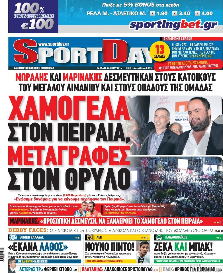 Οι αθλητικές εφημερίδες Enikos Newsroom 07:55, Σάββατο 24 Μαΐου 2014 Media Οι αθλητικές εφημερίδες ΑΘΛΗΤΙΚΕΣ ΕΦΗΜΕΡΙΔΕΣ ΕΦΗΜΕΡΙΔΕΣ Μοιράσου το: σχολίασε κι εσύ (0 σχόλια) Ακολουθήστε το enikos.gr στο Google News και μάθετε πρώτοι όλες τις ειδήσεις Δείτε όλες τις τελευταίες ειδήσεις από την Ελλάδα και τον Κόσμο στο enikos.gr Ειδήσεις Ροή Ειδήσεων 1 ώρα πριν Αυξάνουν την πίεση προς την κυβέρνηση οι αγρότες: Κλείνουν παρακαμπτήριους και ανοίγουν διόδια – Τι θα γίνει τις γιορτές 51 λεπτά πριν Φοινικούντα: Το Σάββατο απολογείται ο 30χρονος γιος γνωστού επιχειρηματία της Πλάκας που παραδόθηκε – Όσα είπε στους αστυνομικούς και ο ρόλος του στο έγκλημα 33 λεπτά πριν Μπορεί ο Μαδούρο να αντέξει τον αποκλεισμό του Τραμπ; Τι θα χρειαστεί η Ουάσινγκτον για να τον ανατρέψει 2 ώρες πριν Δημοσκόπηση Metron Analysis: Στις 10 μονάδες η διαφορά ΝΔ-ΠΑΣΟΚ, στην 3η θέση η Πλεύση Ελευθερίας – 8 στους 10 στηρίζουν τον αγώνα των αγροτών 2 ώρες πριν Πρίγκιπας Ουίλιαμ – Κέιτ: Η νέα οικογενειακή φωτογραφία για τις Χριστουγεννιάτικες κάρτες του 2025 2 ώρες πριν Ύπνος: Η απλή βραδινή ρουτίνα για να προστατεύσετε τα μαλλιά σας από το κρύο κατά τη διάρκεια του χειμώνα 3 ώρες πριν Manifesting: Πώς να συναντήσετε τον σύντροφο της ζωής σας, ανάλογα με τον μήνα γέννησής σας 2 ημέρες πριν 20 χρόνια τα Χριστούγεννα ξεκινούν στα Public με μεγάλη ποικιλία σε δώρα! 36 λεπτά πριν Αρχαιολόγοι ανακάλυψαν ρωμαϊκά τεχνουργήματα από μια πόλη που δεν υπήρξε ποτέ – Τα τρία εντυπωσιακά κτίρια και ο αμφορέας με τις… σαρδέλες 2 λεπτά πριν Αθηνά Μαξίμου: Η τρυφερή ανάρτηση για τα γενέθλια του Αιμίλιου Χειλάκη – «Είναι η εκλεκτική συγγένειά μου, η επιλογή και η ευθύνη μου» 17 λεπτά πριν Παναθηναϊκός – Χάποελ Τελ Αβίβ 93-82: Με… φόρα από την Κωνσταντινούπολη 33 λεπτά πριν Μπορεί ο Μαδούρο να αντέξει τον αποκλεισμό του Τραμπ; Τι θα χρειαστεί η Ουάσινγκτον για να τον ανατρέψει 36 λεπτά πριν Αρχαιολόγοι ανακάλυψαν ρωμαϊκά τεχνουργήματα από μια πόλη που δεν υπήρξε ποτέ – Τα τρία εντυπωσιακά κτίρια και ο αμφορέας με τις… σαρδέλες 38 λεπτά πριν Στο ΟΑΚΑ για το «Παναθηναϊκός – Χάποελ» η Κίμπερλι Γκίλφοϊλ – ΦΩΤΟ ENIKOS NETWORK Σε περίοδο αυξημένης δραστηριότητας η γρίπη στην Ελλάδα-Μέτρα προστασίας από τον ΕΟΔΥ Σκέφτεστε συνέχεια συζητήσεις που έχετε κάνει; Τι σημαίνει αυτό, σύμφωνα με ειδικό Στεγαστικό: Τι λέει η ΠΟΜΙΔΑ για τα νέα μέτρα που ανακοίνωσε ο Κυριάκος Μητσοτάκης Λαγκάρντ: Αισιόδοξη για την ανάπτυξη της Ευρωζώνης, αβέβαιη για τον πληθωρισμό Χαρτογραφώντας το «σημείο χωρίς επιστροφή»: Για πρώτη φορά αποκαλύπτεται με λεπτομέρεια το ακανθώδες όριο της ατμόσφαιρας τ... Η Google καταργεί τη λειτουργία «dark web report» – Πώς θα μπορούν οι χρήστες να διαγράφουν τα δεδομένα τους περισσότερα 17:45 , Πέμπτη 18 Δεκεμβρίου 2025 ROUK ZOUK: Εορταστικό επεισόδιο με καλεσμένους τους πρωταγωνιστές του «Γιατί ρε πατέρα» Το Σάββατο 20 Δεκεμβρίου στις 21:00, η Ζέτα Μακρυπούλια υποδέχεται εκλεκτούς ηθοποιούς που όλο... 17:20 , Πέμπτη 18 Δεκεμβρίου 2025 Άγιος έρωτας: Η Χριστίνα εξομολογείται στον πατέρα Νικόλαο, απόψε στις 21:00 στον Alpha Η Νότα αποφασίζει να εκδικηθεί τον Πέτρο και τον Στέφανο, για χάρη του Λούη, όμως τα πράγματα ... 16:50 , Πέμπτη 18 Δεκεμβρίου 2025 Να μ’ αγαπάς: Ζωή και Φωτεινή συμφιλιώνονται ως μάνα με κόρη, απόψε στις 20:00 Η ταυτότητα του Άγγελου αποκαλύπτεται στο νέο επεισόδιο της σειράς “Να μ’ αγαπάς... 15:52 , Πέμπτη 18 Δεκεμβρίου 2025 Το Σπίτι Δίπλα Στο Ποτάμι: Το καθηλωτικό τελευταίο επεισόδ
