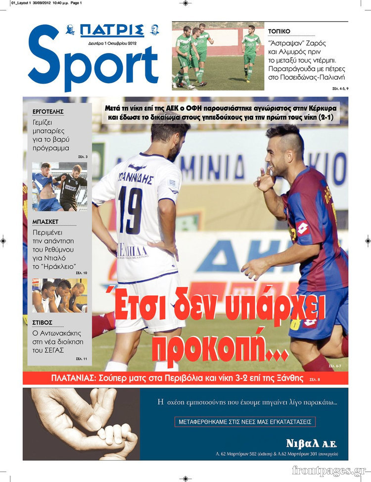 Διαβάστε τα σημερινά πρωτοσέλιδα των αθλητικών εφημερίδων.