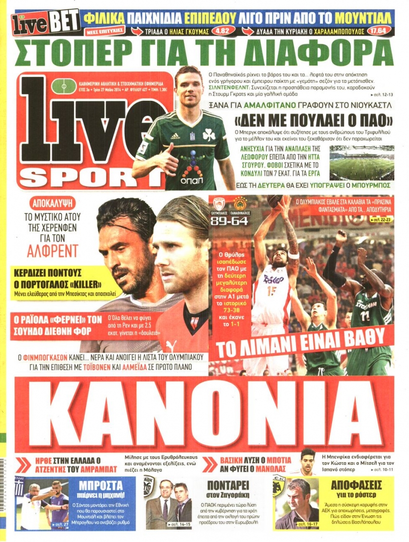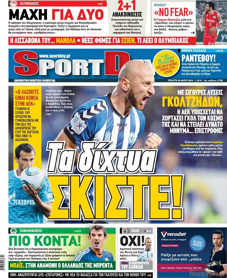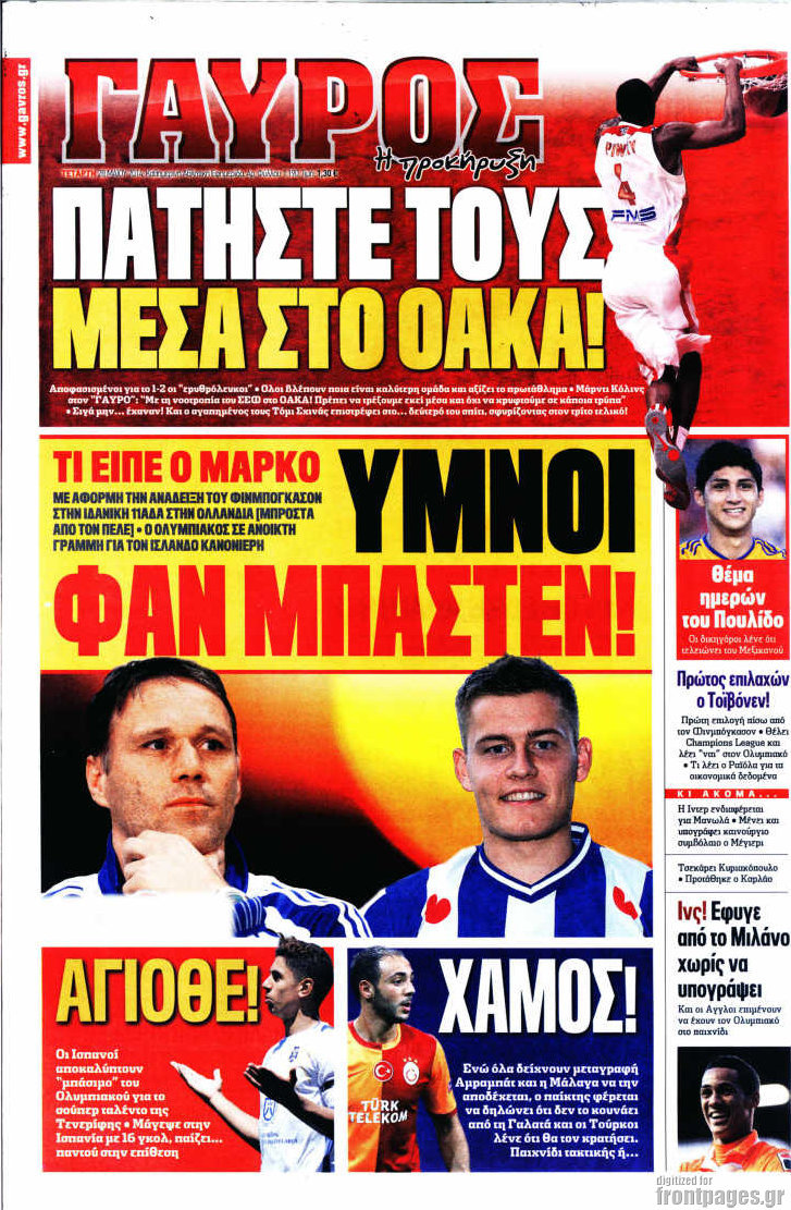 Οι αθλητικές εφημερίδες Enikos Newsroom 08:35, Τετάρτη 28 Μαΐου 2014 Media Οι αθλητικές εφημερίδες Διαβάστε τα πρωτοσέλιδα των αθλητικών εφημερίδων: ΑΘΛΗΤΙΚΕΣ ΕΦΗΜΕΡΙΔΕΣ ΕΦΗΜΕΡΙΔΕΣ ΠΡΩΤΟΣΕΛΙΔΑ Μοιράσου το: σχολίασε κι εσύ (0 σχόλια) Ακολουθήστε το enikos.gr στο Google News και μάθετε πρώτοι όλες τις ειδήσεις Δείτε όλες τις τελευταίες ειδήσεις από την Ελλάδα και τον Κόσμο στο enikos.gr Ειδήσεις Ροή Ειδήσεων 5 ώρες πριν Εκτός ευρωομάδας ΣΥΡΙΖΑ ο Νίκος Παππάς μετά την επίθεση στον δημοσιογράφο Νίκο Γιαννόπουλο – Η μήνυση και οι νέες δηλώσεις 5 ώρες πριν «Αγριεύουν» οι αγρότες: «Δεν συντρέχει λόγος συνάντησης με τον πρωθυπουργό» – Ώρα αποφάσεων στη σύσκεψη της Πέμπτης 5 ώρες πριν Κυψέλη: Χωρίς την οικογένειά της δίπλα της απολογήθηκε η 16χρονη – «Της είχε επιτεθεί κάποιος για να την βιάσει, φοβήθηκε και κυκλοφορούσε με μαχαίρι» 5 ώρες πριν Politico: Το πρόβλημα της Ευρώπης δεν είναι το Βέλγιο αλλά ο Ντόναλντ Τραμπ 6 ώρες πριν Αλεξανδρούπολη: Πολυοργανική ανεπάρκεια λόγω υποσιτισμού η αιτία θανάτου του 3χρονου αγοριού 5 ώρες πριν Μυστήριο με τεράστιες κυκλικές πέτρες 200 κιλών – Ανακαλύφθηκαν τυχαία κατά τη διάρκεια οδικών έργων και κανείς δεν ξέρει από πού προέρχονται 6 ώρες πριν Ύπνος: Ειδικός εξηγεί τον πραγματικό λόγο που ξυπνάτε στις 4 τα ξημερώματα – Ο ρόλος των ορμονών και του κιρκάδιου ρυθμού 7 ώρες πριν Αριθμολογία: Οι άνθρωποι που έχουν γεννηθεί αυτές τις 4 ημερομηνίες, είναι τρυφεροί και αγαπούν ανιδιοτελώς 19 ώρες πριν 20 χρόνια τα Χριστούγεννα ξεκινούν στα Public με μεγάλη ποικιλία σε δώρα! 11 λεπτά πριν GNTM: Με δάκρυα τον αποχαιρέτησε η Ηλιάνα Παπαγεωργίου πριν από τον ημιτελικό – «Αισθάνομαι πολύ παράξενα» 26 λεπτά πριν Αμερικανικά στρατεύματα στον Ισημερινό για «προσωρινή» επιχείρηση κατά των ναρκωτικών 42 λεπτά πριν Βραζιλία: Το Κογκρέσο ενέκρινε σχέδιο νόμου για τη μείωση της ποινής του πρώην προέδρου Μπολσονάρου 56 λεπτά πριν Ένταση στο περιφερειακό συμβούλιο Δυτικής Μακεδονίας: Φωνές, σπρωξιές και διακοπή – Δείτε βίντεο 1 ώρα πριν Σουδάν: Επιδρομή drone σε χωριό του Νότιου Κορντοφάν – Οκτώ νεκροί ENIKOS NETWORK Αϋπνία: Το κόλπο που θα σας βοηθήσει να κοιμηθείτε απόψε – Είναι απλό και έχει αποτέλεσμα 2,6 εκατομμύρια πολίτες έχουν ήδη εμβολιαστεί κατά της γρίπης ΕΛΣΤΑΤ: Τι δείχνουν τα νέα στοιχεία για τις ηλεκτρονικές παραγγελίες των επιχειρήσεων ΚΕΠΕ: Οι 3 διακριτές συμβολές των ΜμΕ και της μεταποίησης στην ελληνική οικονομία Χαρτογραφώντας το «σημείο χωρίς επιστροφή»: Για πρώτη φορά αποκαλύπτεται με λεπτομέρεια το ακανθώδες όριο της ατμόσφαιρας τ... Η Google καταργεί τη λειτουργία «dark web report» – Πώς θα μπορούν οι χρήστες να διαγράφουν τα δεδομένα τους περισσότερα 02:30 , Πέμπτη 18 Δεκεμβρίου 2025 Αλ Τσαντίρι Νιουζ: Η κόρη της Πάολα στο κοινό – Η ατάκα Λαζόπουλου που την έκανε να «κοκκινήσει» Γιορτινή διάθεση και ευχάριστες στιγμές γέμισε η αποψινή, τελευταία για το 2025, εκπομπή του «... 22:24 , Τετάρτη 17 Δεκεμβρίου 2025 Το Σπίτι Δίπλα Στο Ποτάμι: Σε κίνδυνο η υγεία του Απόστολου – Τι θα δούμε απόψε “Το Σπίτι Δίπλα στο Ποτάμι” ξετυλίγει το νήμα της ζωής των πέντε αδελφών με καταισ... 21:14 , Τετάρτη 17 Δεκεμβρίου 2025 Παιχνίδια Εκδίκησης: Θα καταφέρει ο Χρήστος να κλονίσει την εμπιστοσύνη της Μάγιας απέναντι στον Άγη; Τα «Παιχνίδια Εκδίκησης» έρχονται απόψε στις 22:30, στον Αντ1, με το τελευταίο επεισόδιο της χ... 20:57 , Τετάρτη 17 Δεκεμβρίου 2025 Άγιος Έρωτας: Η Χλόη καταθέτει εναντίον του πατέρα της 