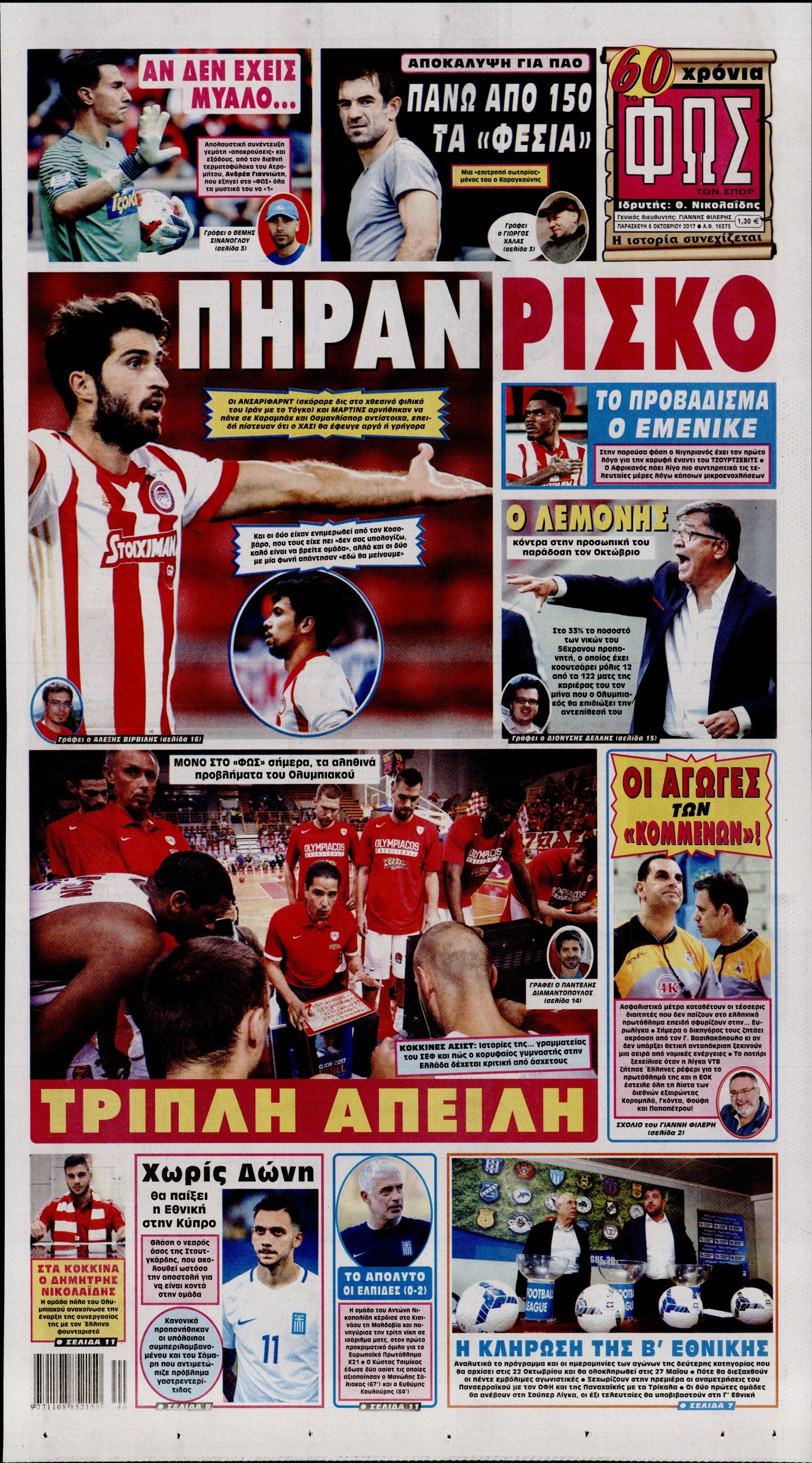 Οι αθλητικές εφημερίδες 6/10/2017 Enikos Newsroom 07:36, Παρασκευή 06 Οκτωβρίου 2017 Media Διαβάστε τα σημερινά πρωτοσέλιδα των αθλητικών εφημερίδων: ΑΘΛΗΤΙΚΕΣ ΕΦΗΜΕΡΙΔΕΣ ΠΡΩΤΟΣΕΛΙΔΑ Μοιράσου το: σχολίασε κι εσύ (0 σχόλια) Ακολουθήστε το enikos.gr στο Google News και μάθετε πρώτοι όλες τις ειδήσεις Δείτε όλες τις τελευταίες ειδήσεις από την Ελλάδα και τον Κόσμο στο enikos.gr Ειδήσεις Ροή Ειδήσεων 2 ώρες πριν Αγρότες: Πολύωροι αποκλεισμοί στα τελωνεία Προμαχώνα, Εξοχής, Ευζώνων και Νίκης – Κλείνουν τον κόμβο Φιλώτα οι παραγωγοί στη Δυτική Μακεδονία 1 ώρα πριν Νίκος Παππάς: Ζητώ συγγνώμη για αυτό το επεισόδιο – Δεν τον γρονθοκόπησα 3 ώρες πριν Ευρωπαϊκό Συμβούλιο: Όλες οι λεπτομέρειες για το δάνειο των 90 δισ. ευρώ στην Ουκρανία – Τα συμπεράσματα της Συνόδου Κορυφής 3 ώρες πριν Αίγιο: 22χρονη κατήγγειλε ότι έπεσε θύμα βιασμού και ληστείας από συγγενικά της πρόσωπα 1 ώρα πριν Τρομακτικό βίντεο: Η στιγμή της έκρηξης στο τζετ που μετέφερε τον οδηγό του NASCAR, Γκρεγκ Μπιφλ και την οικογένειά του 2 ώρες πριν Αλλαγή σελίδας για 3 ζώδια – «Μία δύσκολη περίοδος φτάνει στο τέλος της» 2 ημέρες πριν 20 χρόνια τα Χριστούγεννα ξεκινούν στα Public με μεγάλη ποικιλία σε δώρα! 3 ώρες πριν Ο σύζυγός της συμπεριφέρεται όπως το παιδί τους – «Χρησιμοποιεί αστείες δικαιολογίες για να μην κάνει δουλειές και να ξοδεύει λεφτά» 51 λεπτά πριν Γεμάτος νεροχύτης; 5 σοβαρές ευθύνες που «φοβίζουν» όσους αφήνουν άπλυτα πιάτα 4 λεπτά πριν Πούτιν: Η Ουκρανία δεν είναι έτοιμη για ειρηνευτικές συνομιλίες – ο ρωσικός στρατός προελαύνει σε όλα τα μέτωπα 10 λεπτά πριν Βουλή: Αποσύρθηκε προσθήκη για έργα του Ταμειακού Προγράμματος Ανάπτυξης της Γ.Γ. Αθλητισμού μετά τις αντιδράσεις της αντιπολίτευσης 15 λεπτά πριν Νορβηγία: Η πριγκίπισσα Μέτε-Μάριτ πιθανότατα θα υποβληθεί σε μεταμόσχευση πνεύμονα 26 λεπτά πριν Ενίσχυση δρομολογίων του Μετρό τις Κυριακές 21 και 28 Δεκεμβρίου – Κυκλοφοριακές ρυθμίσεις αύριο στη Γραμμή 7 του τραμ λόγω εορταστικών εκδηλώσεων 30 λεπτά πριν Βλαντίμιρ Πούτιν: LIVE η συνέντευξη Τύπου για τον απολογισμό της χρονιάς ENIKOS NETWORK Καρκίνος του πνεύμονα: Έως 8.000 ζωές μπορούν να σωθούν με την έγκαιρη διάγνωση Καρδιοπαθείς: Οι νέες συστάσεις για τα εμβόλια που πρέπει να κάνουν τον χειμώνα Επιδόματα και παροχές από τον ΟΠΕΚΑ: Τι πιστώνεται σήμερα στους τραπεζικούς λογαριασμούς Απειλή για τον Προϋπολογισμό τα ληξιπρόθεσμα χρέη των ιδιωτών προς την εφορία – Τι δείχνουν τα στοιχεία Χαρτογραφώντας το «σημείο χωρίς επιστροφή»: Για πρώτη φορά αποκαλύπτεται με λεπτομέρεια το ακανθώδες όριο της ατμόσφαιρας τ... Η Google καταργεί τη λειτουργία «dark web report» – Πώς θα μπορούν οι χρήστες να διαγράφουν τα δεδομένα τους περισσότερα 08:00 , Παρασκευή 19 Δεκεμβρίου 2025 Την Κυριακή με τη Realnews: Δωροεπιταγή 10€ Δωροεπιταγή αξίας 10€ για αγορές άνω των 60€ από τα πολυκαταστήματα FactoryOutlet H προσφορά ι... 05:48 , Παρασκευή 19 Δεκεμβρίου 2025 Οι οικονομικές εφημερίδες 19/12/2025 Διαβάστε τα πρωτοσέλιδα από τις οικονομικές εφημερίδες, σήμερα 19/12/2025. 05:43 , Παρασκευή 19 Δεκεμβρίου 2025 Οι αθλητικές εφημερίδες 19/12/2025 Διαβάστε τα πρωτοσέλιδα από τις αθλητικές εφημερίδες, σήμερα 19/12/2025. 05:38 , Παρασκευή 19 Δεκεμβρίου 2025 Οι πολιτικές εφημερίδες 19/12/2025 Διαβάστε τα πρωτοσέλιδα από τις πολιτικές εφημερίδες, σήμερα 19/12/2025. ΤΕΛΕΥΤΑΙΕΣ ΕΙΔΗΣΕΙΣ 4 λεπτά πριν Πούτιν: Η Ουκρανία δεν είναι έτοιμη για ειρηνευτικές... 10 λεπτά πριν Βουλή: Αποσύρθηκε προσθήκη για έργα του Ταμειακού...