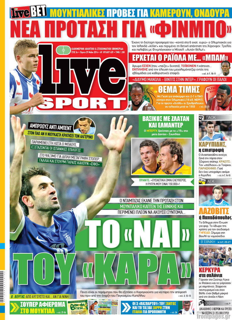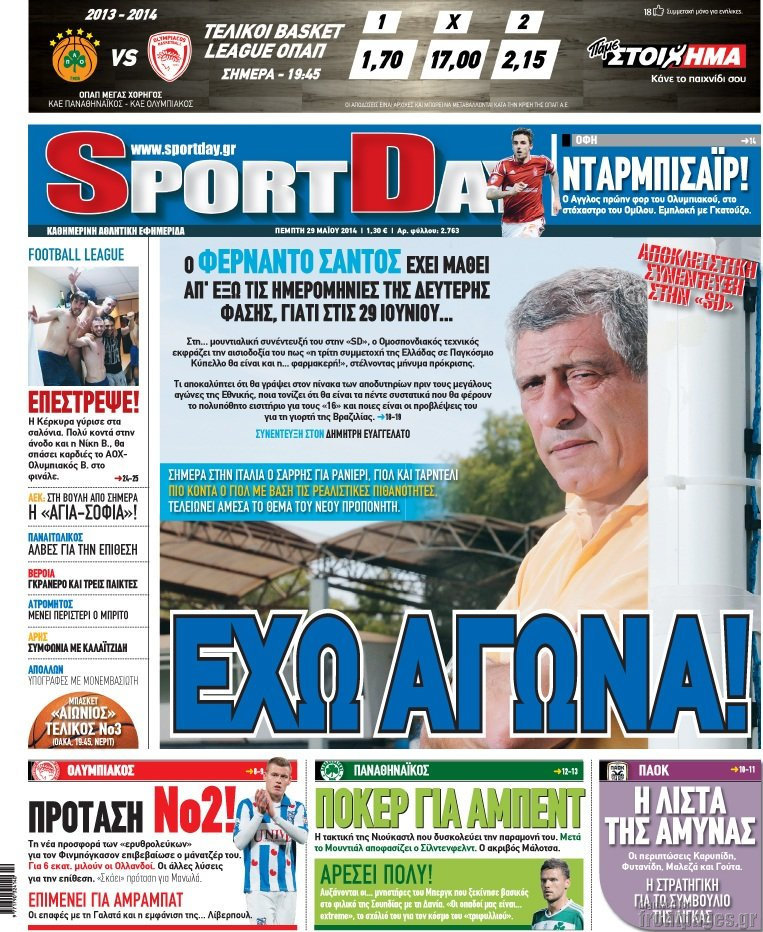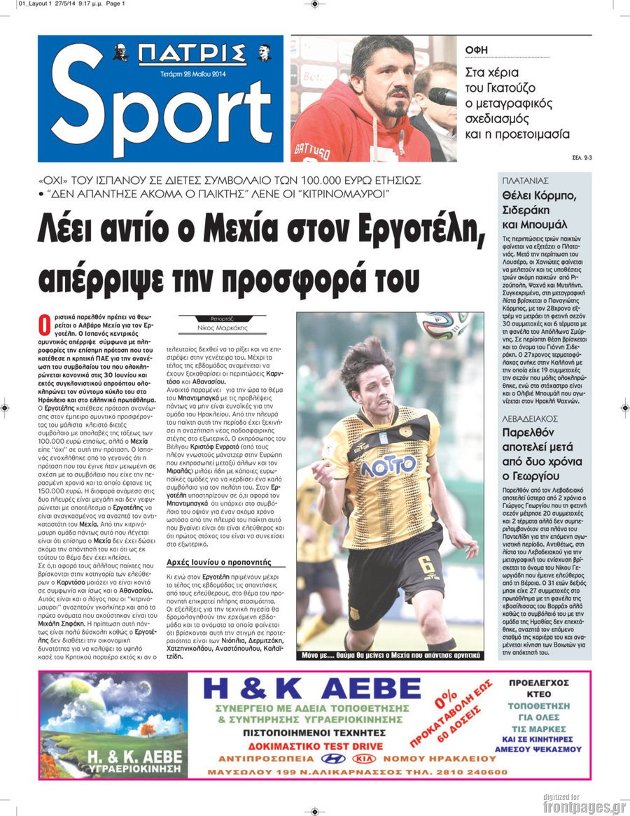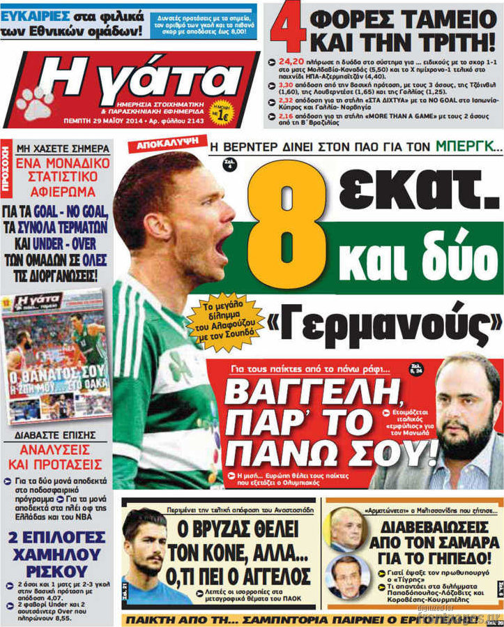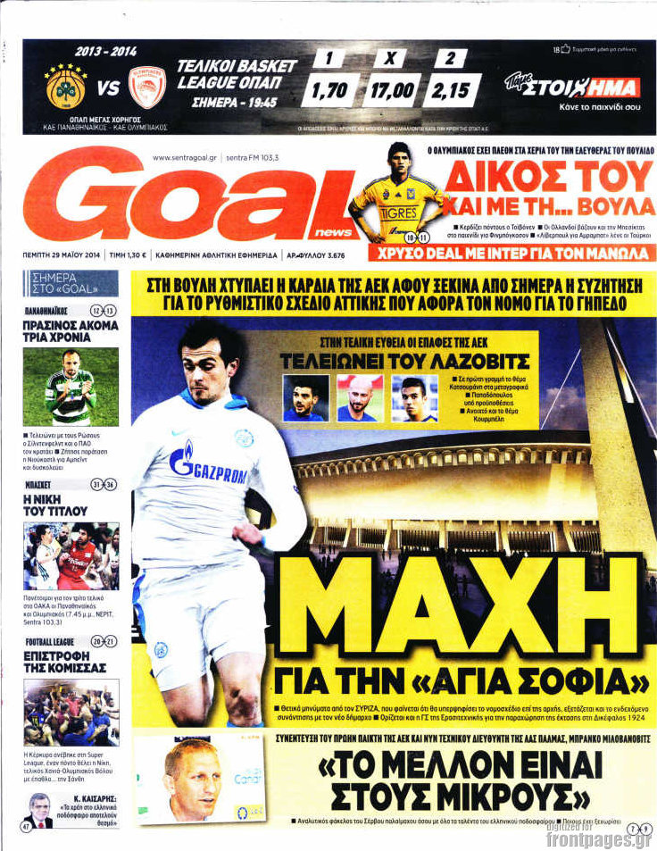 Οι αθλητικές εφημερίδες Enikos Newsroom 07:51, Πέμπτη 29 Μαΐου 2014 Media Οι αθλητικές εφημερίδες Διαβάστε τα πρωτοσέλιδα των αθλητικών εφημερίδων. ΑΘΛΗΤΙΚΕΣ ΕΦΗΜΕΡΙΔΕΣ ΠΡΩΤΟΣΕΛΙΔΑ Μοιράσου το: σχολίασε κι εσύ (0 σχόλια) Ακολουθήστε το enikos.gr στο Google News και μάθετε πρώτοι όλες τις ειδήσεις Δείτε όλες τις τελευταίες ειδήσεις από την Ελλάδα και τον Κόσμο στο enikos.gr Ειδήσεις Ροή Ειδήσεων 14 λεπτά πριν ΣΥΡΙΖΑ: Διέγραψε τον ευρωβουλευτή Νίκο Παππά μετά την μήνυση δημοσιογράφου για ξυλοδαρμό 1 ώρα πριν Πώς στήθηκε η επιχείρηση «Ίπαλλος» που οδήγησε στη σύλληψη του «Έλληνα Εσκομπάρ» – «Ο πόλεμος ενάντια στους εμπόρους ναρκωτικών θα συνεχιστεί» 57 λεπτά πριν Δίκη Χρυσής Αυγής: Την ενοχή και των 42 κατηγορουμένων ζητά η εισαγγελέας 1 ώρα πριν Κυψέλη: Στη φυλακή η 16χρονη που μαχαίρωσε συμμαθήτριά της 4 ώρες πριν Αμοργός: «Θα προσπαθήσω να το κάνω κάθε μέρα» – Ποιος είναι ο αγρότης που έστησε μόνος του το πρώτο μπλόκο στο νησί 1 ώρα πριν Τα 3 ζώδια που θα δουν τη ζωή τους να αλλάζει ριζικά το 2026 – «Όλα γίνονται καλύτερα σταδιακά» 6 ώρες πριν «Δεν είχα κλάψει από τότε που διαγνώστηκα με καρκίνο, ώσπου ένα τηλεφώνημα με έκανε να λυγίσω» – Η συγκλονιστική εξομολόγηση ενός άνδρα 2 ώρες πριν Ο σπάνιος σεισμός που έλυσε τα χέρια των επιστημόνων – Αποκάλυψε ακριβώς όσα αναζητούσαν 8 ώρες πριν 20 χρόνια τα Χριστούγεννα ξεκινούν στα Public με μεγάλη ποικιλία σε δώρα! 2 λεπτά πριν Ρόδος: Ανήλικος που βρισκόταν σε σχολική εκδρομή μεταφέρθηκε μεθυσμένος στο νοσοκομείο – 2 συλλήψεις 9 λεπτά πριν Γέννησε η Ευάννα Ζουμπούρογλου: «Είμαστε και οι δύο πολύ καλά – Είναι η πιο όμορφη όλου του κόσμου» 14 λεπτά πριν ΣΥΡΙΖΑ: Διέγραψε τον ευρωβουλευτή Νίκο Παππά μετά την μήνυση δημοσιογράφου για ξυλοδαρμό 15 λεπτά πριν Απολαυστικό «Ρουκ…Σουτ» με παίκτες του Παναθηναϊκού AKTOR – ΒΙΝΤΕΟ 19 λεπτά πριν Κουίζ για την παλιά Αθήνα: Αναγνωρίζετε την οδό; Είναι από τις πιο γνωστές ENIKOS NETWORK Γιατί αναζητούμε τα Χριστούγεννα όλο και νωρίτερα; Ποιοι οι ψυχολογικοί και οι συναισθηματικοί λόγοι Σοβαροί κίνδυνοι από τη λάθος χορήγηση φαρμάκου για τις αιμορραγίες-Συστάσεις προς τους γιατρούς Δάνεια σε ελβετικό φράγκο: Αύριο η κατάθεση της τροπολογίας στη Βουλή – Όλες οι λεπτομέρειες Επίδομα παιδιού: Πότε θα δοθεί η τελευταία δόση για το 2025 από τον ΟΠΕΚΑ και τι πρέπει να γνωρίζετε Χαρτογραφώντας το «σημείο χωρίς επιστροφή»: Για πρώτη φορά αποκαλύπτεται με λεπτομέρεια το ακανθώδες όριο της ατμόσφαιρας τ... Η Google καταργεί τη λειτουργία «dark web report» – Πώς θα μπορούν οι χρήστες να διαγράφουν τα δεδομένα τους περισσότερα 12:35 , Τετάρτη 17 Δεκεμβρίου 2025 Μίρκα Παπακωνσταντίνου: «Δεν ήμουν αισιόδοξη για τα νούμερα – Είμαι ρεαλίστρια» Στα γυρίσματα του εορταστικού επεισοδίου της αγαπημένης σειράς “Το Σόι Σου”, βρέθηκε η κάμερα ... 12:12 , Τετάρτη 17 Δεκεμβρίου 2025 Ακούστε την εκπομπή του Νίκου Χατζηνικολάου 17/12/2025 Ακούστε την εκπομπή του Νίκου Χατζηνικολάου στον ραδιοφωνικό σταθμό RealFm 97,8, την Τετάρτη 1... 11:35 , Τετάρτη 17 Δεκεμβρίου 2025 Home Alone: Το σπίτι της ταινίας θα ανακαινιστεί – Επιστροφή στην αισθητική της δεκαετίας του ’90 Οι νέοι ιδιοκτήτες του πραγματικού σπιτιού που παρουσιάζεται στην κλασική ταινία του 1990 «Hom... 11:25 , Τετάρτη 17 Δεκεμβρίου 2025 Grand Hotel: Απόψε το τελευταίο επεισόδιο της χρονιάς – Όλα τα μυστικά μένουν εδώ Το τελευταίο επεισόδιο της χρονιάς της σειράς «Grand Hotel» θα προβληθεί απόψε στις 21:00. Ο Ά... ΤΕΛΕΥΤΑΙΕΣ ΕΙΔΗΣΕΙΣ 2 λε