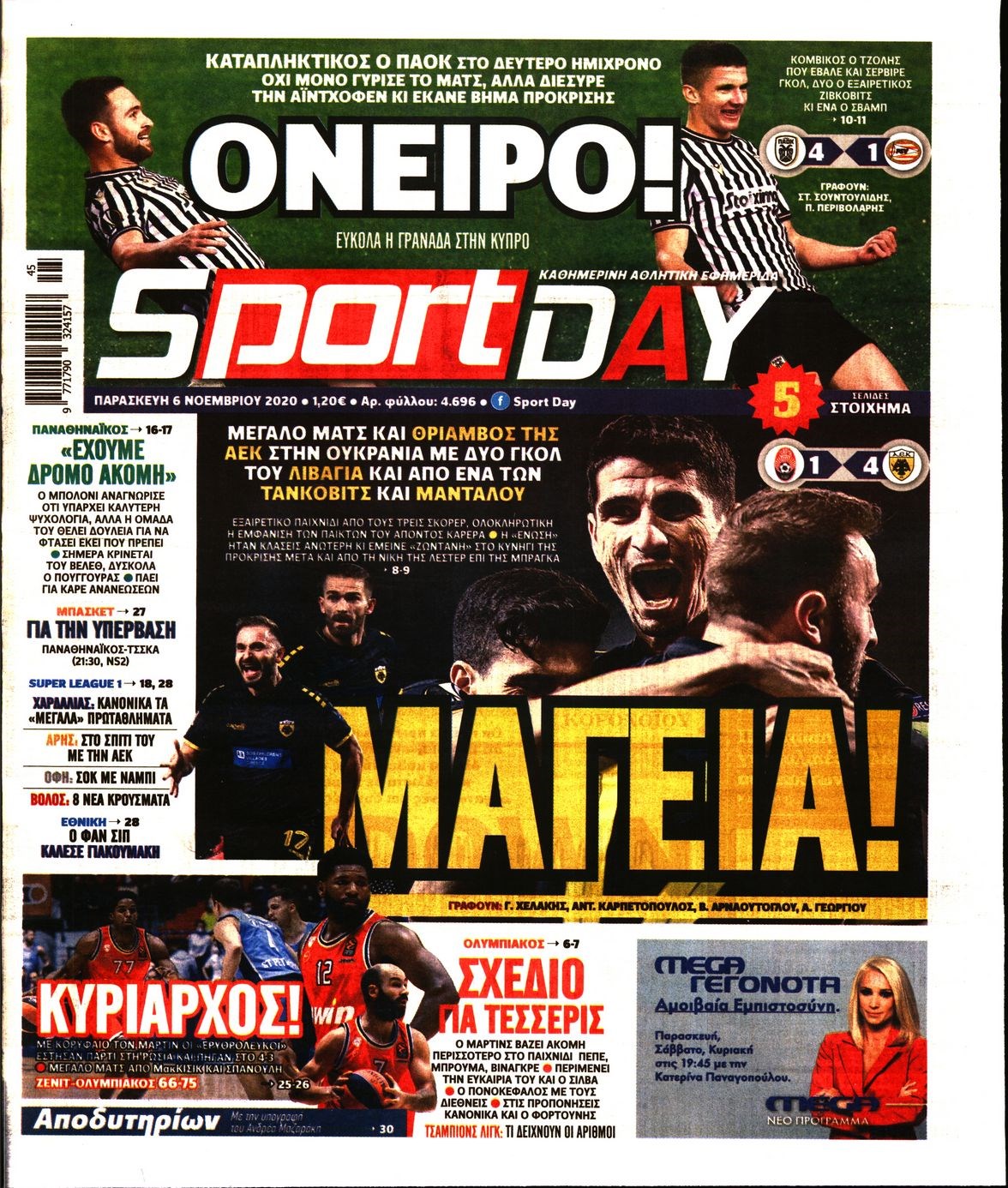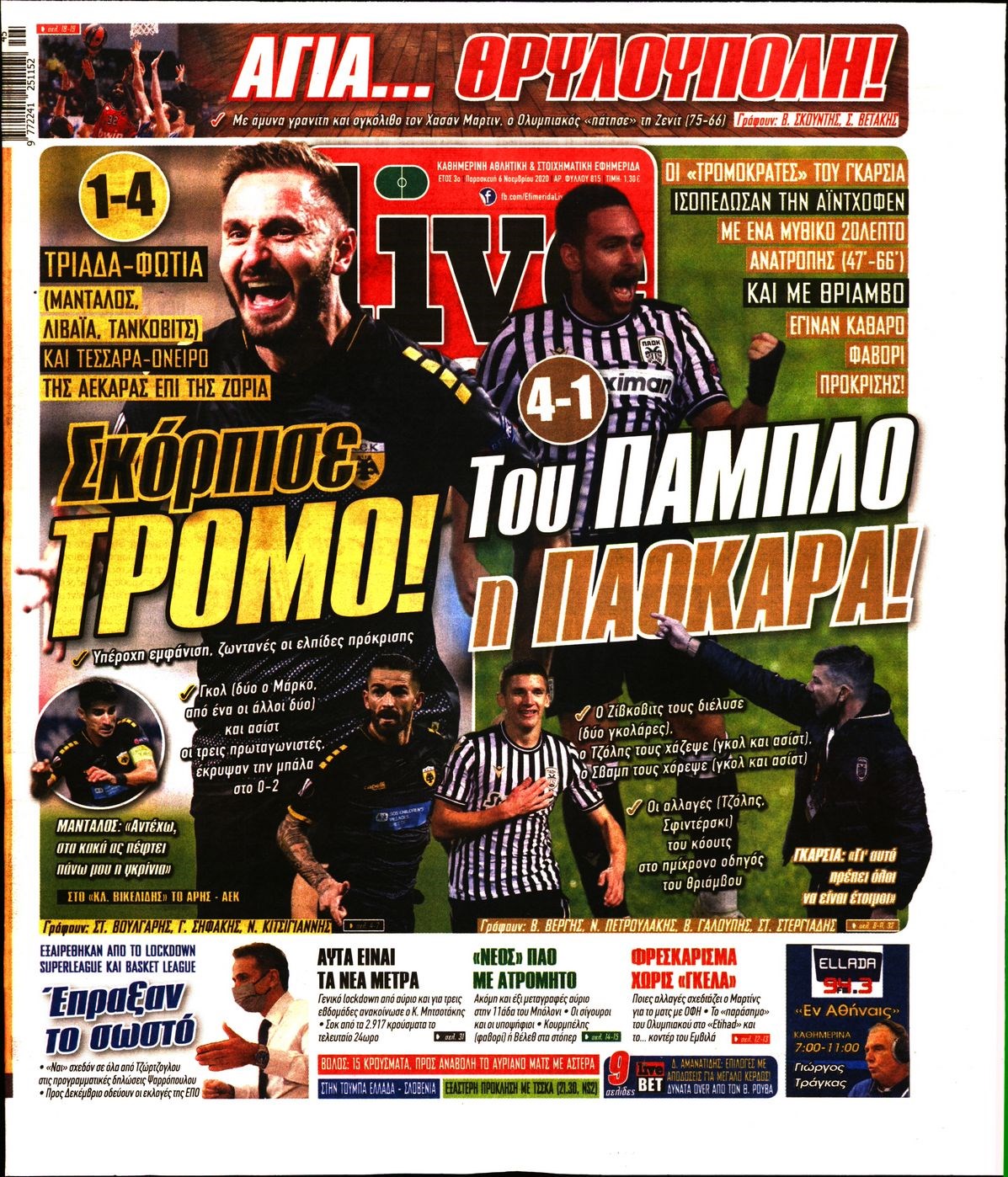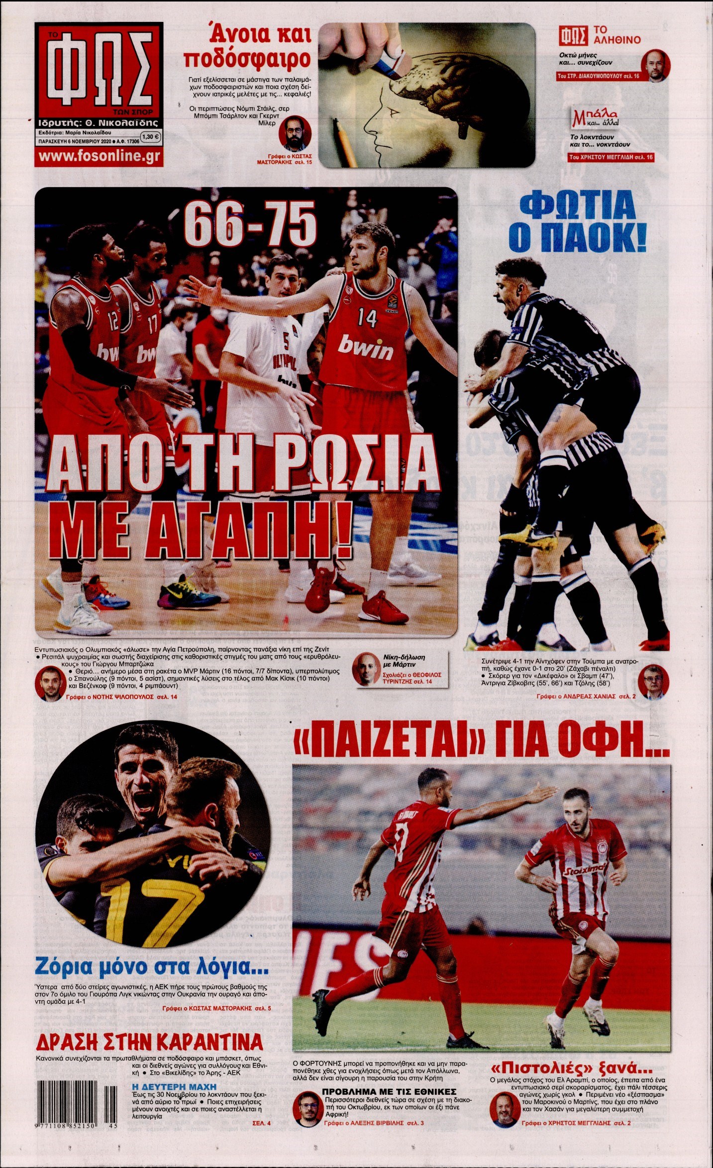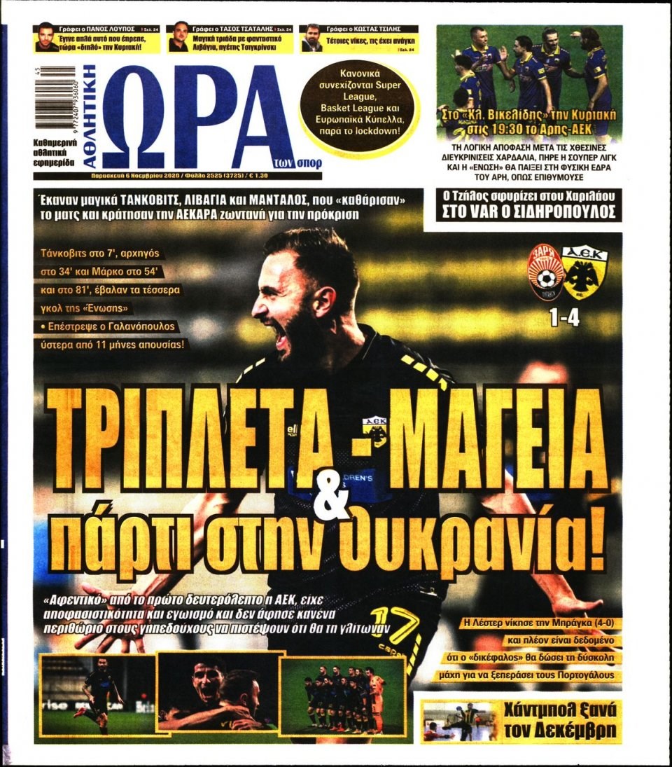 Οι αθλητικές εφημερίδες 6/11/2020 Διονύσης Νίκκας 06:50, Παρασκευή 06 Νοεμβρίου 2020 Media Διαβάστε τα πρωτοσέλιδα των αθλητικών εφημερίδων… ΑΘΛΗΤΙΚΕΣ ΕΦΗΜΕΡΙΔΕΣ Μοιράσου το: σχολίασε κι εσύ (0 σχόλια) Ακολουθήστε το enikos.gr στο Google News και μάθετε πρώτοι όλες τις ειδήσεις Δείτε όλες τις τελευταίες ειδήσεις από την Ελλάδα και τον Κόσμο στο enikos.gr Ειδήσεις Ροή Ειδήσεων 1 ώρα πριν Χριστούγεννα στα μπλόκα: Επιμένουν στις κινητοποιήσεις τους οι αγρότες – Ανοίγουν τα διόδια το Σαββατοκύριακο 2 ώρες πριν Ουκρανία: Η άνευ προηγουμένου επίθεση σε ρωσικό τάνκερ στη Μεσόγειο και το μήνυμα προς στον Πούτιν – Το «μακρύ χέρι» του Κιέβου 46 λεπτά πριν Πούτιν: Τα μηνύματα σε Ευρώπη και ΝΑΤΟ από το μαραθώνιο «σόου» του – Η απαίτηση για «σεβασμό» και η ειρήνη «με τους όρους» της Μόσχας 2 ώρες πριν Τραμπ: Δεν αποκλείει την πιθανότητα ενός πολέμου στη Βενεζουέλα – «Ο Μαδούρο ξέρει καλύτερα από τον καθένα τι ακριβώς θέλω» 2 ώρες πριν Συνεχίζει να προκαλεί ο Μίτσκοσκι: «Για μένα το όνομα Μακεδονία είναι ιερό» 47 λεπτά πριν Ανακαλύφθηκαν αρχαία χρυσά νομίσματα 2.200 ετών που απεικονίζουν τον θεό Απόλλωνα – Η άγνωστη σύνδεση με τον Φίλιππο Β΄ της Μακεδονίας 2 ώρες πριν Ύπνος: Μια κρυφή κατάσταση του εγκεφάλου πριν από τον ύπνο μπορεί να είναι το “κλειδί” για υψηλή ευφυΐα και δημιουργικότητα 3 ώρες πριν Αριθμολογία: Οι άνθρωποι που έχουν γεννηθεί αυτές τις 4 ημερομηνίες, συχνά παρεξηγούνται – «Η καλοσύνη τους κρύβει τεράστια δύναμη» 4 ώρες πριν Ξεχάστε το καθάρισμα το Σαββατοκύριακο: Ο «κανόνας των 20 λεπτών» που θα σας λύσει τα χέρια 1 λεπτό πριν Σάμος: Άνοιξε το μπλόκο των αγροτών στον κόμβο Κοκκαρίου – Σε νέα συνεδρίαση θα καθορίσουν την στάση τους 9 λεπτά πριν Άνω Λιόσια: Πυροβολισμοί σε επιχείρηση με χαλιά – Εντοπίστηκαν 10 κάλυκες 17 λεπτά πριν Γάζα: Ισραηλινό πλήγμα σε σχολείο που είχαν καταφύγει εκτοπισμένοι – Τουλάχιστον έξι νεκροί 31 λεπτά πριν Ολυμπιακός – Βιλερμπάν 107-84: Επιστροφή στις νίκες με… προπόνηση 37 λεπτά πριν Νέος Κόσμος: Συνελήφθη 41χρονος με ένταλμα από την Τουρκία για εμπόριο ναρκωτικών και ληστεία ENIKOS NETWORK Το ΕΚΑΒ τιμήθηκε από την Ακαδημία Αθηνών για τα 40 χρόνια προσφοράς του Έχετε πραγματικά μεγάλη καρδιά; 10 χαρακτηριστικά όσων έχουν καλοσύνη Αναστολή μέτρων αναγκαστικής εκτέλεσης για κτηνοτρόφους που πλήττονται από την ευλογιά των αιγοπροβάτων Πλήρης επάρκεια προϊόντων στις λαϊκές της Αττικής, παρά τις αγροτικές κινητοποιήσεις – Τι απαντούν οι πωλητές Χαρτογραφώντας το «σημείο χωρίς επιστροφή»: Για πρώτη φορά αποκαλύπτεται με λεπτομέρεια το ακανθώδες όριο της ατμόσφαιρας τ... Η Google καταργεί τη λειτουργία «dark web report» – Πώς θα μπορούν οι χρήστες να διαγράφουν τα δεδομένα τους περισσότερα 22:42 , Παρασκευή 19 Δεκεμβρίου 2025 Γιώργος Γιαννόπουλος για “Το σόι σου”: “Είναι ευτυχία και ευλογία αυτή η σειρά” «Είναι ευτυχία και ευλογία η συγκυρία αυτής της σειράς», θα πει ο Γιώργος Γιαννόπουλος -ο αγαπ... 20:37 , Παρασκευή 19 Δεκεμβρίου 2025 Don’t Forget The Lyrics: Η Έλλη Κοκκίνου υποδέχεται 4 παίκτες που θα κάνουν τα πάντα για να μη χάσουν ούτε… μισή λέξη από τους στίχους Το «Don’t Forget The Lyrics» επιστρέφει απόψε, Παρασκευή 19 Δεκεμβρίου, στις 21:00 με νέο επει... 19:31 , Παρασκευή 19 Δεκεμβρίου 2025 GNTM: Απόψε ο μεγάλος τελικός για τους 4 φιναλίστ Έπειτα από μήνες γεμάτους μόδα, δημιουργία και έντονες αναμετρήσεις, το GNTM 2025 κορυφώνεται,... 18:11 , Παρασκευή 19 Δεκεμβρίου 2025 Το σόι σου: Ο Άρης έρχεται σ