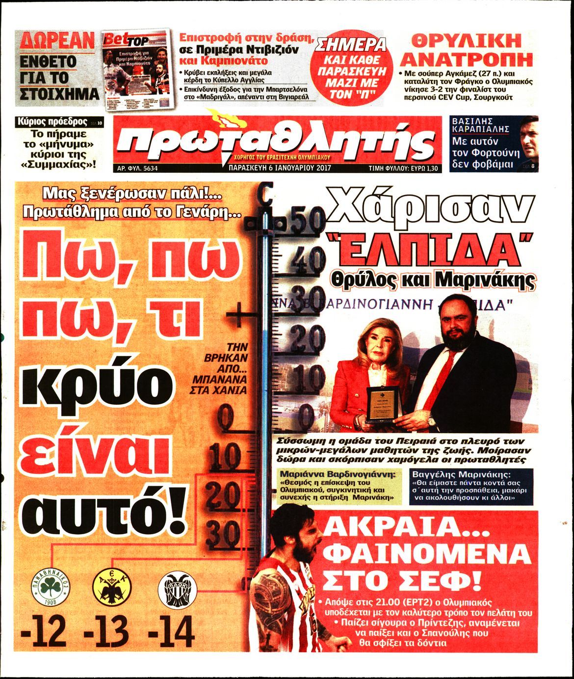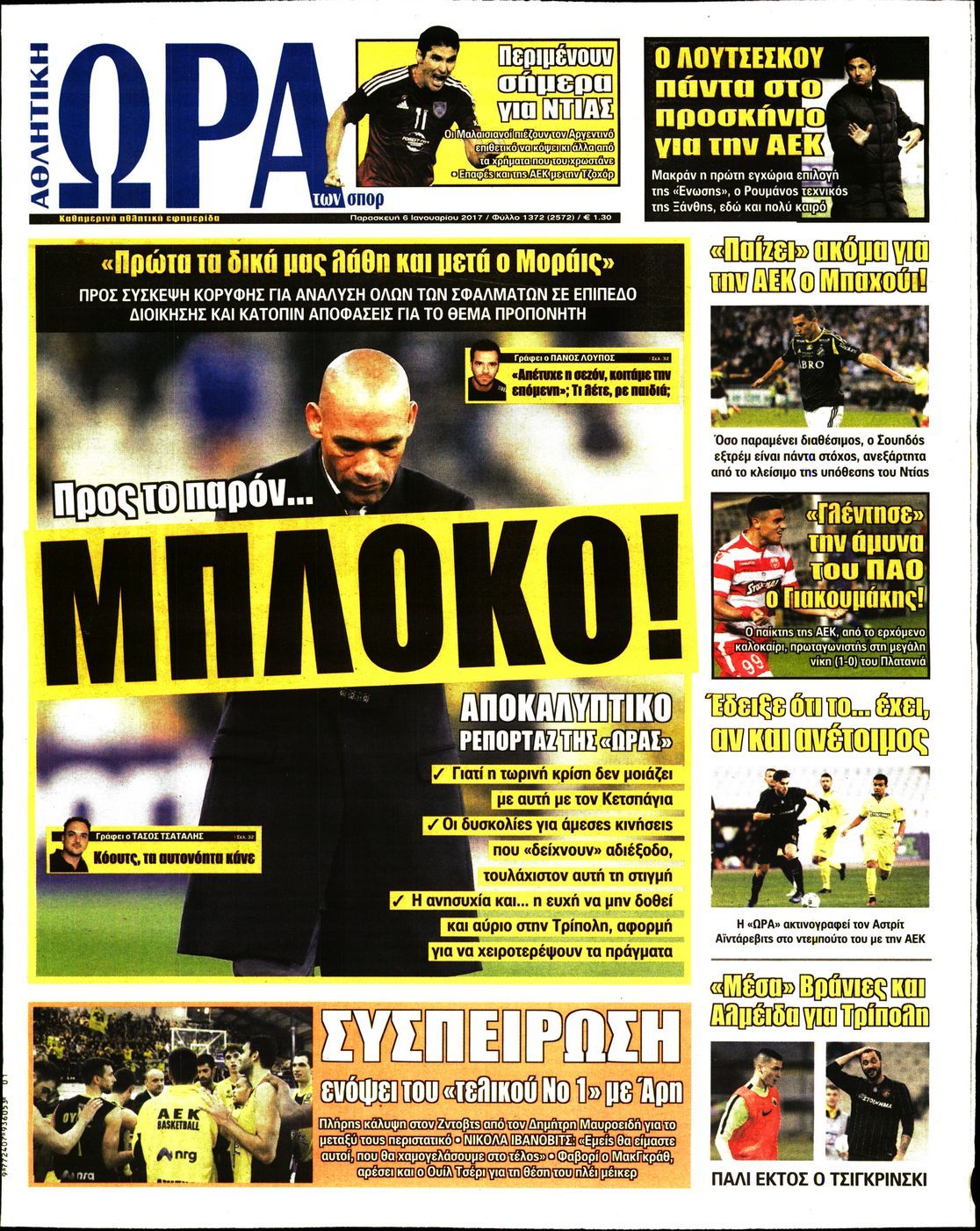 Οι αθλητικές εφημερίδες 6/1/2017 Enikos Newsroom 01:21, Παρασκευή 06 Ιανουαρίου 2017 Media Διαβάστε τα σημερινά πρωτοσέλιδα των αθλητικών εφημερίδων: ΑΘΛΗΤΙΚΕΣ ΕΦΗΜΕΡΙΔΕΣ ΠΡΩΤΟΣΕΛΙΔΑ Μοιράσου το: σχολίασε κι εσύ (0 σχόλια) Ακολουθήστε το enikos.gr στο Google News και μάθετε πρώτοι όλες τις ειδήσεις Δείτε όλες τις τελευταίες ειδήσεις από την Ελλάδα και τον Κόσμο στο enikos.gr Ειδήσεις Ροή Ειδήσεων 46 λεπτά πριν Ευρωπαϊκή Ένωση: Συμφωνία για δάνειο 90 δισ. ευρώ στην Ουκρανία τη διετία 2026-2027 5 ώρες πριν ΟΠΕΚΕΠΕ: Προφυλακιστέος ο φερόμενος αρχηγός και ο λογιστής της εγκληματικής οργάνωσης 6 ώρες πριν Αυξάνουν την πίεση προς την κυβέρνηση οι αγρότες: Κλείνουν παρακαμπτήριους και ανοίγουν διόδια – Τι θα γίνει τις γιορτές 6 ώρες πριν Φοινικούντα: Το Σάββατο απολογείται ο 30χρονος γιος γνωστού επιχειρηματία της Πλάκας που παραδόθηκε – Όσα είπε στους αστυνομικούς και ο ρόλος του στο έγκλημα 5 ώρες πριν ΑΕΚ – Κραϊόβα 3-2: Επική ανατροπή και πρόκριση στους «16» του Conference League η Ένωση 6 ώρες πριν Αρχαιολόγοι ανακάλυψαν ρωμαϊκά τεχνουργήματα από μια πόλη που δεν υπήρξε ποτέ – Τα τρία εντυπωσιακά κτίρια και ο αμφορέας με τις… σαρδέλες 7 ώρες πριν Ύπνος: Η απλή βραδινή ρουτίνα για να προστατεύσετε τα μαλλιά σας από το κρύο κατά τη διάρκεια του χειμώνα 8 ώρες πριν Manifesting: Πώς να συναντήσετε τον σύντροφο της ζωής σας, ανάλογα με τον μήνα γέννησής σας 2 ημέρες πριν 20 χρόνια τα Χριστούγεννα ξεκινούν στα Public με μεγάλη ποικιλία σε δώρα! 9 λεπτά πριν Αυστραλία: Κήρυξε την Κυριακή (21/12) ημέρα εθνικού πένθους για τη φονική επίθεση στην παραλία Μπόνταϊ 19 λεπτά πριν Ρόδος: Δάσκαλος καράτε καταδικάστηκε για ασέλγεια σε ανήλικες αθλήτριες – Μαρτυρίες για αγγίγματα σε ευαίσθητα σημεία 34 λεπτά πριν Γουατεμάλα: Εξαρθρώθηκε κύκλωμα διακίνησης μεταναστών προς τις ΗΠΑ – Συνελήφθησαν 14 άτομα 38 λεπτά πριν Βουλγαρία: Χιλιάδες πολίτες στους δρόμους κατά της απερχόμενης κυβέρνησης και της διαφθοράς 46 λεπτά πριν Ευρωπαϊκή Ένωση: Συμφωνία για δάνειο 90 δισ. ευρώ στην Ουκρανία τη διετία 2026-2027 ENIKOS NETWORK Σε περίοδο αυξημένης δραστηριότητας η γρίπη στην Ελλάδα-Μέτρα προστασίας από τον ΕΟΔΥ Σκέφτεστε συνέχεια συζητήσεις που έχετε κάνει; Τι σημαίνει αυτό, σύμφωνα με ειδικό Στεγαστικό: Τι λέει η ΠΟΜΙΔΑ για τα νέα μέτρα που ανακοίνωσε ο Κυριάκος Μητσοτάκης Λαγκάρντ: Αισιόδοξη για την ανάπτυξη της Ευρωζώνης, αβέβαιη για τον πληθωρισμό Χαρτογραφώντας το «σημείο χωρίς επιστροφή»: Για πρώτη φορά αποκαλύπτεται με λεπτομέρεια το ακανθώδες όριο της ατμόσφαιρας τ... Η Google καταργεί τη λειτουργία «dark web report» – Πώς θα μπορούν οι χρήστες να διαγράφουν τα δεδομένα τους περισσότερα 02:50 , Παρασκευή 19 Δεκεμβρίου 2025 GNTM: «Κλείδωσαν» οι τέσσερις φιναλίστ – Μεγάλη ανατροπή στις τελευταίες αποχωρήσεις Για προτελευταία φορά εμφανίστηκαν στο πλατό του GNTM οι φιναλίστ του φετινού κύκλου, το βράδυ... 17:45 , Πέμπτη 18 Δεκεμβρίου 2025 ROUK ZOUK: Εορταστικό επεισόδιο με καλεσμένους τους πρωταγωνιστές του «Γιατί ρε πατέρα» Το Σάββατο 20 Δεκεμβρίου στις 21:00, η Ζέτα Μακρυπούλια υποδέχεται εκλεκτούς ηθοποιούς που όλο... 17:20 , Πέμπτη 18 Δεκεμβρίου 2025 Άγιος έρωτας: Η Χριστίνα εξομολογείται στον πατέρα Νικόλαο, απόψε στις 21:00 στον Alpha Η Νότα αποφασίζει να εκδικηθεί τον Πέτρο και τον Στέφανο, για χάρη του Λούη, όμως τα πράγματα ... 16:50 , Πέμπτη 18 Δεκεμβρίου 2025 Να μ’ αγαπάς: Ζωή και Φωτεινή συμφιλιώνονται ως μάνα με κόρη, απόψε στις 20:00 Η ταυτότητα του Άγγελου αποκαλύπτεται στ