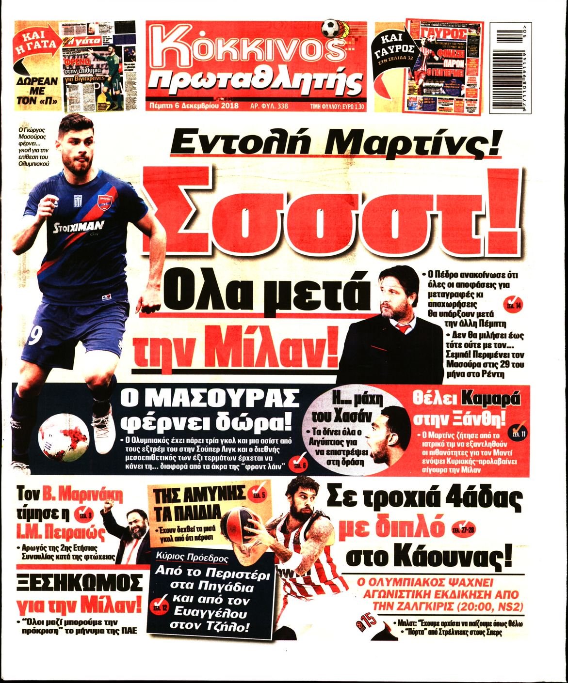 Οι αθλητικές εφημερίδες 6/12/18 Enikos Newsroom 06:30, Πέμπτη 06 Δεκεμβρίου 2018 Media Διαβάστε τα πρωτοσέλιδα: ΑΘΛΗΤΙΚΕΣ ΕΦΗΜΕΡΙΔΕΣ ΠΡΩΤΟΣΕΛΙΔΑ Μοιράσου το: σχολίασε κι εσύ (0 σχόλια) Ακολουθήστε το enikos.gr στο Google News και μάθετε πρώτοι όλες τις ειδήσεις Δείτε όλες τις τελευταίες ειδήσεις από την Ελλάδα και τον Κόσμο στο enikos.gr Ειδήσεις Ροή Ειδήσεων 3 ώρες πριν Μεσόγειος: Η διαδρομή του ρωσικού τάνκερ «Qendil» και η στοχευμένη επίθεση της Ουκρανίας με drone – Ο Πούτιν προειδοποίησε για αντίποινα 4 λεπτά πριν Αγρότες: Έκλεισαν την παρακαμπτήρια της Ιόνιας Οδού στη θέση Χαλίκι 2 ώρες πριν Εμπλοκή και αερομαχίες με οπλισμένα τουρκικά F-16 στο Αιγαίο 3 ώρες πριν Αττική: Θρίλερ με νεκρό βρέφος 5 μηνών – Κοιμόταν στο ίδιο κρεβάτι με τους γονείς του 1 ώρα πριν Πούτιν: «Ναι, είμαι ερωτευμένος» – Βίντεο από τη σπάνια προσωπική παραδοχή του 18 λεπτά πριν Αριθμολογία: Οι άνθρωποι που έχουν γεννηθεί αυτές τις 4 ημερομηνίες, συχνά παρεξηγούνται – «Η καλοσύνη τους κρύβει τεράστια δύναμη» 2 ώρες πριν Μήπως έχετε χάσει τον εαυτό σας στη σχέση σας; 7 «αθόρυβες» υποχωρήσεις που μάλλον κάνατε, χωρίς να το συνειδητοποιήσετε 1 ώρα πριν Ξεχάστε το καθάρισμα το Σαββατοκύριακο: Ο «κανόνας των 20 λεπτών» που θα σας λύσει τα χέρια 4 ώρες πριν Κουίζ για την παλιά Αθήνα: Αναγνωρίζετε την περιοχή; Έχετε περάσει 100% από εκεί 4 λεπτά πριν Αγρότες: Έκλεισαν την παρακαμπτήρια της Ιόνιας Οδού στη θέση Χαλίκι 8 λεπτά πριν Ανδρέας Λυκουρέντζος: Υπέβαλε την παραίτησή του ο πρόεδρος του ΕΛΓΑ – Δεν έγινε δεκτή από την κυβέρνηση – ΒΙΝΤΕΟ 12 λεπτά πριν Ηράκλειο: «Ιπτάμενοι» Άγιοι Βασίληδες μοίρασαν δώρα και χαμόγελα στα παιδιά στο ΠΑΓΝΗ – Δείτε βίντεο 18 λεπτά πριν Αριθμολογία: Οι άνθρωποι που έχουν γεννηθεί αυτές τις 4 ημερομηνίες, συχνά παρεξηγούνται – «Η καλοσύνη τους κρύβει τεράστια δύναμη» 24 λεπτά πριν Ρύθμιση του ΥΠΑΑΤ για τους αγρότες που δεν έλαβαν τη βασική ενίσχυση λόγω εκκρεμοτήτων στο Κτηματολόγιο ENIKOS NETWORK Το ΕΚΑΒ τιμήθηκε από την Ακαδημία Αθηνών για τα 40 χρόνια προσφοράς του Έχετε πραγματικά μεγάλη καρδιά; 10 χαρακτηριστικά όσων έχουν καλοσύνη Έρχονται νέες προσλήψεις σε Δήμο – Όλες οι λεπτομέρειες Επίδομα παιδιού: Πότε ανοίγει ξανά η πλατφόρμα για τις αιτήσεις Χαρτογραφώντας το «σημείο χωρίς επιστροφή»: Για πρώτη φορά αποκαλύπτεται με λεπτομέρεια το ακανθώδες όριο της ατμόσφαιρας τ... Η Google καταργεί τη λειτουργία «dark web report» – Πώς θα μπορούν οι χρήστες να διαγράφουν τα δεδομένα τους περισσότερα 20:37 , Παρασκευή 19 Δεκεμβρίου 2025 Don’t Forget The Lyrics: Η Έλλη Κοκκίνου υποδέχεται 4 παίκτες που θα κάνουν τα πάντα για να μη χάσουν ούτε… μισή λέξη από τους στίχους Το «Don’t Forget The Lyrics» επιστρέφει απόψε, Παρασκευή 19 Δεκεμβρίου, στις 21:00 με νέο επει... 19:31 , Παρασκευή 19 Δεκεμβρίου 2025 GNTM: Απόψε ο μεγάλος τελικός για τους 4 φιναλίστ Έπειτα από μήνες γεμάτους μόδα, δημιουργία και έντονες αναμετρήσεις, το GNTM 2025 κορυφώνεται,... 18:11 , Παρασκευή 19 Δεκεμβρίου 2025 Το σόι σου: Ο Άρης έρχεται στην Ελλάδα για τις γιορτές των Χριστουγέννων – Τι θα δούμε στο αποψινό εορταστικό επεισόδιο Ένα απολαυστικό, εορταστικό επεισόδιο της σειράς “Το σόι σου”, γεμάτο ευτράπελα αλ... 15:15 , Παρασκευή 19 Δεκεμβρίου 2025 Την Κυριακή με τη Realnews: Ό,τι και αν αγοράσεις, σκανάρεις και κερδίζεις! Την Κυριακή με τη Realnews: Ό,τι και αν αγοράσεις, σκανάρεις και κερδίζεις! Με το PADU app, το... ΤΕΛΕΥΤΑΙΕΣ ΕΙΔΗΣΕΙΣ 4 λεπτά πριν Αγρότες: Έκλεισαν την παρακαμπτήρια της Ιόνιας Οδού... 