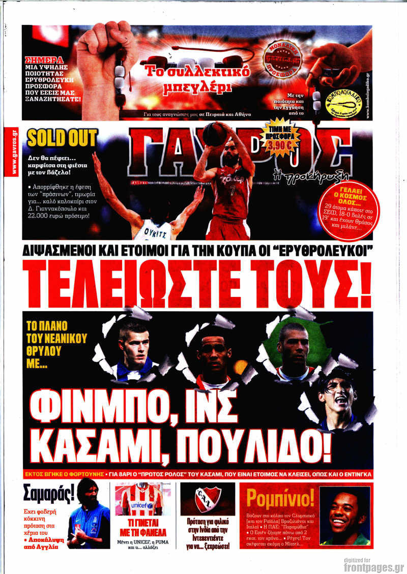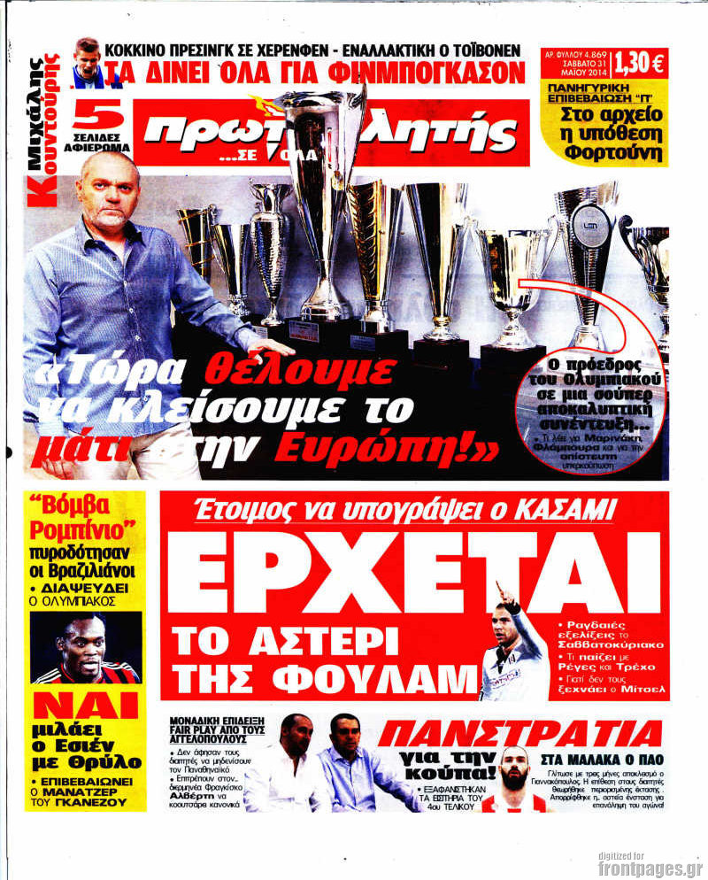 Οι αθλητικές εφημερίδες Enikos Newsroom 08:39, Σάββατο 31 Μαΐου 2014 Media Οι αθλητικές εφημερίδες Διαβάστε τα πρωτοσέλιδα των αθλητικών εφημερίδων: ΑΘΛΗΤΙΚΕΣ ΕΦΗΜΕΡΙΔΕΣ ΠΡΩΤΟΣΕΛΙΔΑ ΣΑΒΒΑΤΟ Μοιράσου το: σχολίασε κι εσύ (0 σχόλια) Ακολουθήστε το enikos.gr στο Google News και μάθετε πρώτοι όλες τις ειδήσεις Δείτε όλες τις τελευταίες ειδήσεις από την Ελλάδα και τον Κόσμο στο enikos.gr Ειδήσεις Ροή Ειδήσεων 2 ώρες πριν Σίδνεϊ: Τουλάχιστον 10 νεκροί και 16 τραυματίες σε ένοπλη επίθεση – Βίντεο από «ήρωα» περαστικό που αφόπλισε έναν δράστη 2 ώρες πριν Σκληραίνουν τη στάση τους οι αγρότες: Αποφασίζουν τις δράσεις της εβδομάδας – Αύριο το συλλαλητήριο στα δικαστήρια της Λάρισας 2 ώρες πριν Στιγμές τρόμου για επιβάτες λεωφορείου στη Θεσσαλονίκη: Ο οδηγός πέρασε με κόκκινο σε σιδηροδρομική διάβαση ενώ ερχόταν τρένο και έσπασε την μπάρα 4 ώρες πριν Κυριάκος Μητσοτάκης μετά το «όχι» των αγροτών: Διάλογος δεν γίνεται με τελεσίγραφα και οι λύσεις προκύπτουν μόνο από συζήτηση 6 ώρες πριν ΟΠΕΚΕΠΕ – Κρήτη: Στην Ευρωπαϊκή Εισαγγελία οι 15 από τους 16 συλληφθέντες για τις παράνομες επιδοτήσεις 2 ώρες πριν Προπονήτρια ευεξίας που έχασε 24 κιλά αποκαλύπτει: «Αυτά είναι τα 6 ανησυχητικά σημάδια της υψηλής κορτιζόλης» 4 ώρες πριν Η ζωή γίνεται πολύ καλύτερη για 3 ζώδια – «Ίσως έχει έρθει η ώρα να κάνετε μια πραγματική και μόνιμη αλλαγή» 3 ώρες πριν Τα 8 πράγματα που τα ευτυχισμένα ζευγάρια δεν κάνουν ποτέ μπροστά στα παιδιά τους 5 ώρες πριν Ξέσπασε σε κλάματα με το χριστουγεννιάτικο δώρο του άνδρα της – «Μου είπε ότι είμαι το πιο αχάριστο άτομο που έχει γνωρίσει» 8 λεπτά πριν Βουλή – Βελόπουλος προς κυβέρνηση: Είστε μπλεγμένοι μέχρι τον λαιμό στο σκάνδαλο του ΟΠΕΚΕΠΕ 16 λεπτά πριν ΣΥΡΙΖΑ για ανάρτηση Μητσοτάκη: «Φωνάζει ο αρχηγός των γαλάζιων ακρίδων, για να φοβηθούν οι αγρότες» 24 λεπτά πριν Ηλεία: Σοκ στην Οινόη με τον θάνατο 33χρονου – Εντοπίστηκε νεκρός στην αυλή του σπιτιού του 32 λεπτά πριν Ισραήλ: Κατηγορεί την κυβέρνηση της Αυστραλίας ότι δεν προστάτευσε την εβραϊκή κοινότητα – «Τους είχαμε προειδοποιήσει για πιθανές επιθέσεις» 43 λεπτά πριν Γιάννης Μπρατάκος: «Ο διάλογος δεν είναι επιλογή, είναι ευθύνη» ENIKOS NETWORK Σπλαχνικό λίπος: 3 υδατάνθρακες που μπορεί να σας βοηθήσουν να το χάσετε, σύμφωνα με ειδικό «Πίσω από τις ειδήσεις υπάρχουν άνθρωποι»- Η υπόθεση του δότη σπέρματος και το όριο της ενημέρωσης Ψηφιακό δελτίο αποστολής ελαιοκάρπου – Η νέα ημερομηνία έναρξης Επενδυτική έκρηξη στον κλάδο των Σούπερ Μάρκετ – Τι σχεδιάζουν οι «μεγάλοι» της αγοράς Σύγχρονος Νοστράδαμος: Προειδοποιεί για «μεγάλο γεγονός» τους επόμενους μήνες που θα συγκλονίσει τη Βρετανία και τον κόσμο Τεστ παρατηρητικότητας: Μπορείτε να βρείτε τις 3 διαφορές στις εικόνες με έναν πιγκουίνο σε 14 δευτερόλεπτα περισσότερα 12:46 , Κυριακή 14 Δεκεμβρίου 2025 Η Realnews στο www.pressreader.com Διαβάστε την ψηφιακή έκδοση της εφημερίδας στην οθόνη του κινητού, του tablet και του υπολογισ... 10:07 , Κυριακή 14 Δεκεμβρίου 2025 Η γη της ελιάς: Η αρχή του τέλους του Δημοσθένη πλησιάζει Η δραματική σειρά του MEGA «Η γη της ελιάς» επιφυλάσσει ακόμα μεγαλύτερες ανατροπές. Κάθε επει... 08:15 , Κυριακή 14 Δεκεμβρίου 2025 Σήμερα με τη Realnews: Food & Travel μαζί Beaute και Μαστορέματα Σήμερα με τη Realnews: Food & Travel μαζί Beaute και Μαστορέματα Food & Travel Ετοιμάζ... 07:46 , Κυριακή 14 Δεκεμβρίου 2025 Σήμερα με τη Realnews: Σκάναρε & κέρδισε με το PaduApp Τo κορυφαίο app επιβράβευσης στην Ελλάδα που σε ανταμείβει