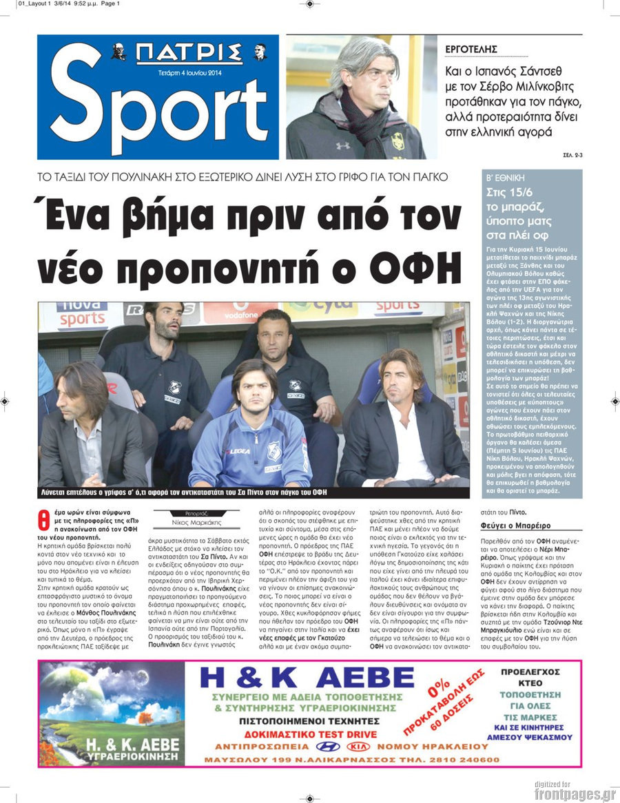 Οι αθλητικές εφημερίδες Enikos Newsroom 07:52, Πέμπτη 05 Ιουνίου 2014 Media Οι αθλητικές εφημερίδες Διαβάστε τα πρωτοσέλιδα των αθλητικών εφημερίδων. ΑΘΛΗΤΙΚΕΣ ΕΦΗΜΕΡΙΔΕΣ ΠΡΩΤΟΣΕΛΙΔΑ Μοιράσου το: σχολίασε κι εσύ (0 σχόλια) Ακολουθήστε το enikos.gr στο Google News και μάθετε πρώτοι όλες τις ειδήσεις Δείτε όλες τις τελευταίες ειδήσεις από την Ελλάδα και τον Κόσμο στο enikos.gr Ειδήσεις Ροή Ειδήσεων 50 λεπτά πριν Δημοσκόπηση Metron Analysis: Στις 10 μονάδες η διαφορά ΝΔ-ΠΑΣΟΚ, στην 3η θέση η Πλεύση Ελευθερίας – 8 στους 10 στηρίζουν τον αγώνα των αγροτών 5 ώρες πριν Αγρότες: «Όχι στον διάλογο, μας εμπαίζει η κυβέρνηση» – Αποφάσισαν κλιμάκωση των κινητοποιήσεων, τι θα γίνει τα Χριστούγεννα 38 λεπτά πριν Νίκος Παππάς στον ΑΝΤ1: «Δεν κρύβομαι – Μετά το συμβάν ακολούθησα κανονικά το πρόγραμμά μου» – ΒΙΝΤΕΟ 2 ώρες πριν Αθήνα: Εξαρθρώθηκε εγκληματική οργάνωση που διακινούσε ναρκωτικά σε μορφή σοκολάτας – Δύο τράπερ ανάμεσα στους 4 συλληφθέντες – ΒΙΝΤΕΟ 30 λεπτά πριν Διαμαντής Καραναστάσης: Οδηγούσε υπό την επήρεια αλκοόλ – Του αφαιρέθηκε το δίπλωμα και του επιβλήθηκε πρόστιμο 350 ευρώ 1 ώρα πριν Manifesting: Πώς να συναντήσετε τον σύντροφο της ζωής σας, ανάλογα με τον μήνα γέννησής σας 3 ώρες πριν Γάμος: 11 ψυχρές αλλά ευγενικές φράσεις, που λέει ένας άνδρας όταν σκέφτεται τον χωρισμό 2 ώρες πριν Σφουγγάρισμα: Η συνήθεια που θα σας βοηθήσει να διατηρήσετε το σπίτι σας καθαρό και τακτοποιημένο 2 ημέρες πριν 20 χρόνια τα Χριστούγεννα ξεκινούν στα Public με μεγάλη ποικιλία σε δώρα! 1 λεπτό πριν Ύπνος: Η απλή βραδινή ρουτίνα για να προστατεύσετε τα μαλλιά σας από το κρύο κατά τη διάρκεια του χειμώνα 9 λεπτά πριν Κατερίνα Καινούργιου: «Δεν θα αφήσω κανέναν να χαλάσει τη ζαχαρένια μου στην ομορφότερη περίοδο της ζωής μου» 15 λεπτά πριν Θεσσαλονίκη: Προθεσμία για την επόμενη εβδομάδα έλαβαν οι συλληφθέντες για το κύκλωμα trafficking – Οι οίκοι ανοχής, τα «φρουτάκια» και οι ρόλοι 23 λεπτά πριν Πρίγκιπας Ουίλιαμ – Κέιτ: Η νέα οικογενειακή φωτογραφία για τις Χριστουγεννιάτικες κάρτες του 2025 30 λεπτά πριν Διαμαντής Καραναστάσης: Οδηγούσε υπό την επήρεια αλκοόλ – Του αφαιρέθηκε το δίπλωμα και του επιβλήθηκε πρόστιμο 350 ευρώ ENIKOS NETWORK Σε περίοδο αυξημένης δραστηριότητας η γρίπη στην Ελλάδα-Μέτρα προστασίας από τον ΕΟΔΥ Σκέφτεστε συνέχεια συζητήσεις που έχετε κάνει; Τι σημαίνει αυτό, σύμφωνα με ειδικό ΕΛΤΑ: Αυτό είναι το νέο σχέδιο μετασχηματισμού του Οργανισμού- Τι δήλωσαν Πιερρακάκης και Παπαστεργίου ΕΛΣΤΑΤ: Τι δείχνουν τα νέα στοιχεία για τον μόνιμο πληθυσμό στην Ελλάδα Χαρτογραφώντας το «σημείο χωρίς επιστροφή»: Για πρώτη φορά αποκαλύπτεται με λεπτομέρεια το ακανθώδες όριο της ατμόσφαιρας τ... Η Google καταργεί τη λειτουργία «dark web report» – Πώς θα μπορούν οι χρήστες να διαγράφουν τα δεδομένα τους περισσότερα 17:45 , Πέμπτη 18 Δεκεμβρίου 2025 ROUK ZOUK: Εορταστικό επεισόδιο με καλεσμένους τους πρωταγωνιστές του «Γιατί ρε πατέρα» Το Σάββατο 20 Δεκεμβρίου στις 21:00, η Ζέτα Μακρυπούλια υποδέχεται εκλεκτούς ηθοποιούς που όλο... 17:20 , Πέμπτη 18 Δεκεμβρίου 2025 Άγιος έρωτας: Η Χριστίνα εξομολογείται στον πατέρα Νικόλαο, απόψε στις 21:00 στον Alpha Η Νότα αποφασίζει να εκδικηθεί τον Πέτρο και τον Στέφανο, για χάρη του Λούη, όμως τα πράγματα ... 16:50 , Πέμπτη 18 Δεκεμβρίου 2025 Να μ’ αγαπάς: Ζωή και Φωτεινή συμφιλιώνονται ως μάνα με κόρη, απόψε στις 20:00 Η ταυτότητα του Άγγελου αποκαλύπτεται στο νέο επεισόδιο της σειράς “Να μ’ αγαπάς... 15:52 , Πέμπτη 18 Δεκεμβρ