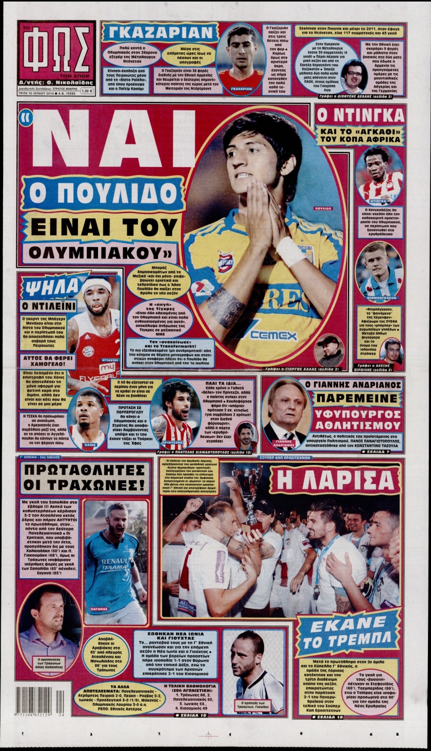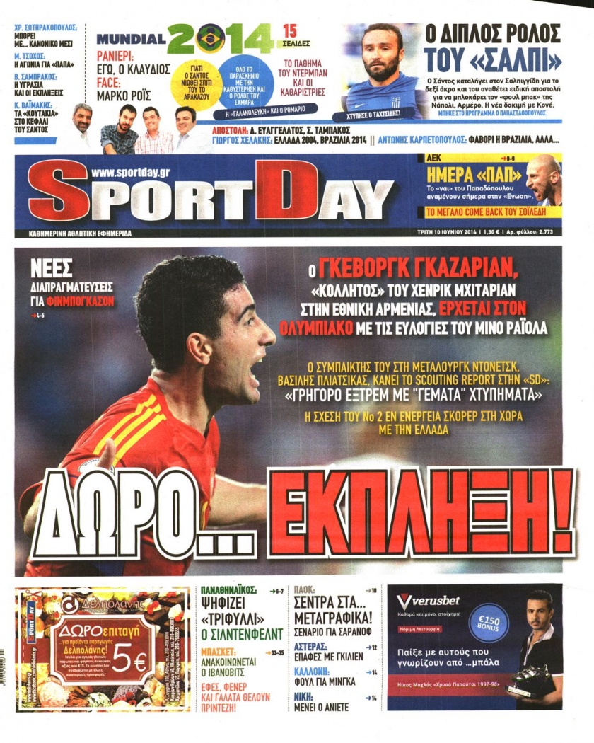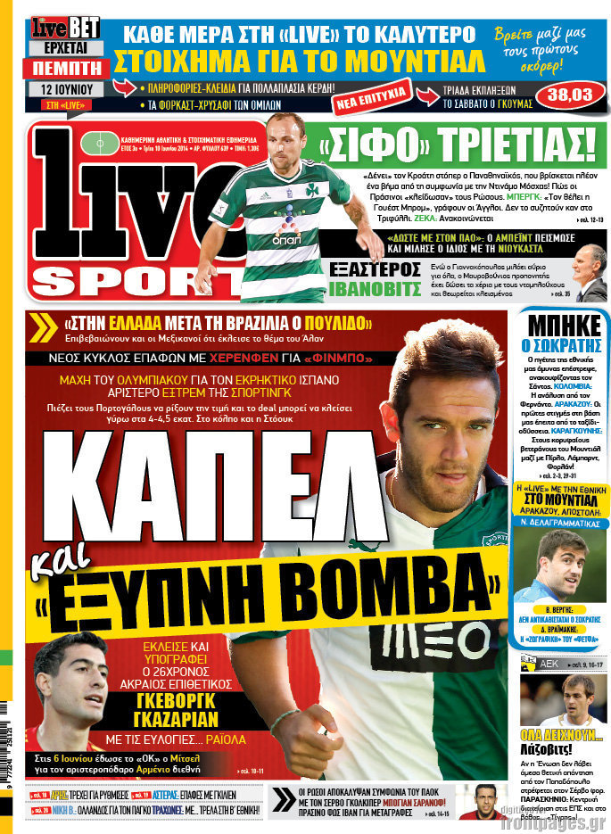 Οι αθλητικές εφημερίδες Enikos Newsroom 08:33, Τρίτη 10 Ιουνίου 2014 Media Οι αθλητικές εφημερίδες Διαβάστε τα πρωτοσέλιδα των αθλητικών εφημερίδων: ΑΘΛΗΤΙΚΕΣ ΕΦΗΜΕΡΙΔΕΣ ΕΦΗΜΕΡΙΔΕΣ ΠΡΩΤΟΣΕΛΙΔΑ Μοιράσου το: σχολίασε κι εσύ (0 σχόλια) Ακολουθήστε το enikos.gr στο Google News και μάθετε πρώτοι όλες τις ειδήσεις Δείτε όλες τις τελευταίες ειδήσεις από την Ελλάδα και τον Κόσμο στο enikos.gr Ειδήσεις Ροή Ειδήσεων 48 λεπτά πριν Κλιμακώνουν από σήμερα τις κινητοποιήσεις οι αγρότες: Νέα μπλόκα, κλείσιμο παρακαμπτηρίων και άνοιγμα διοδίων – Το νέο μήνυμα Μητσοτάκη 1 ώρα πριν Συντάξεις: Οι κερδισμένοι και οι χαμένοι από τις αυξήσεις – Αναλυτικός οδηγός και παραδείγματα 4 ώρες πριν Ευρωπαϊκή Ένωση: Συμφωνία για δάνειο 90 δισ. ευρώ στην Ουκρανία τη διετία 2026-2027 – Μητσοτάκης: Η λύση που προκρίθηκε είναι η ενδεδειγμένη 2 ώρες πριν Θανατηφόρο τροχαίο στη Νέα Φιλαδέλφεια: Νεκρός 27χρονος οδηγός μηχανής ύστερα από σύγκρουση με τρόλεϊ 41 λεπτά πριν Πανεπιστήμιο Μπράουν: Νεκρός ο ύποπτος για την επίθεση 3 ώρες πριν Κρύα χέρια και πόδια: Γιατρός εξηγεί ποια είναι η αίτια και πότε πρέπει να ανησυχήσετε 3 ώρες πριν Τα ζώδια σήμερα, Παρασκευή 19 Δεκεμβρίου: Τοξότες, με τη Νέα Σελήνη έρχεται η προσωπική ανανέωσή σας 29 λεπτά πριν Πώς το αρχαίο DNA του κυνηγού – συλλέκτη ξεκλείδωσε τα μυστικά της μακροζωίας 2 ημέρες πριν 20 χρόνια τα Χριστούγεννα ξεκινούν στα Public με μεγάλη ποικιλία σε δώρα! 5 λεπτά πριν Συνταγή για χριστουγεννιάτικη ψητή γαλοπούλα – Θα είναι το αστέρι του εορταστικού τραπεζιού 13 λεπτά πριν Προβληματισμός στο Μαξίμου για τα αγροτικά μπλόκα ενόψει Χριστουγέννων – Τι συζητήθηκε σε κυβερνητική σύσκεψη 18 λεπτά πριν Κίνηση: «Ασφυξία» στον Κηφισό και στο λιμάνι του Πειραιά – Καθυστερήσεις 25 λεπτών στην Αττική Οδό 23 λεπτά πριν Εξαφάνιση γιατρού στην Κρήτη – Σήμερα η δίκη του 54χρονου που κατηγορείται ότι εξαπάτησε τους γονείς του 33χρονου 29 λεπτά πριν Πώς το αρχαίο DNA του κυνηγού – συλλέκτη ξεκλείδωσε τα μυστικά της μακροζωίας ENIKOS NETWORK Άνοια: Ειδικοί προειδοποιούν για 5 κοινές συνήθειες που μπορεί να αυξήσουν τον κίνδυνο 6 Χριστουγεννιάτικα δώρα για όσους τα έχουν όλα – Θα τους εκπλήξουν Συντάξεις: Οι κερδισμένοι και οι χαμένοι από τις αυξήσεις – Αναλυτικός οδηγός Στεγαστικό: Τι λέει η ΠΟΜΙΔΑ για τα νέα μέτρα που ανακοίνωσε ο Κυριάκος Μητσοτάκης Χαρτογραφώντας το «σημείο χωρίς επιστροφή»: Για πρώτη φορά αποκαλύπτεται με λεπτομέρεια το ακανθώδες όριο της ατμόσφαιρας τ... Η Google καταργεί τη λειτουργία «dark web report» – Πώς θα μπορούν οι χρήστες να διαγράφουν τα δεδομένα τους περισσότερα 08:00 , Παρασκευή 19 Δεκεμβρίου 2025 Την Κυριακή με τη Realnews: Δωροεπιταγή 10€ Δωροεπιταγή αξίας 10€ για αγορές άνω των 60€ από τα πολυκαταστήματα FactoryOutlet H προσφορά ι... 05:48 , Παρασκευή 19 Δεκεμβρίου 2025 Οι οικονομικές εφημερίδες 19/12/2025 Διαβάστε τα πρωτοσέλιδα από τις οικονομικές εφημερίδες, σήμερα 19/12/2025. 05:43 , Παρασκευή 19 Δεκεμβρίου 2025 Οι αθλητικές εφημερίδες 19/12/2025 Διαβάστε τα πρωτοσέλιδα από τις αθλητικές εφημερίδες, σήμερα 19/12/2025. 05:38 , Παρασκευή 19 Δεκεμβρίου 2025 Οι πολιτικές εφημερίδες 19/12/2025 Διαβάστε τα πρωτοσέλιδα από τις πολιτικές εφημερίδες, σήμερα 19/12/2025. ΤΕΛΕΥΤΑΙΕΣ ΕΙΔΗΣΕΙΣ 5 λεπτά πριν Συνταγή για χριστουγεννιάτικη ψητή γαλοπούλα – Θα... 13 λεπτά πριν Προβληματισμός στο Μαξίμου για τα αγροτικά μπλόκα... 18 λεπτά πριν Κίνηση: «Ασφυξία» στον Κηφισό και στο λιμάνι του... 23 λεπτά πριν Εξαφάνιση γιατρού στην Κρήτη – Σήμερα