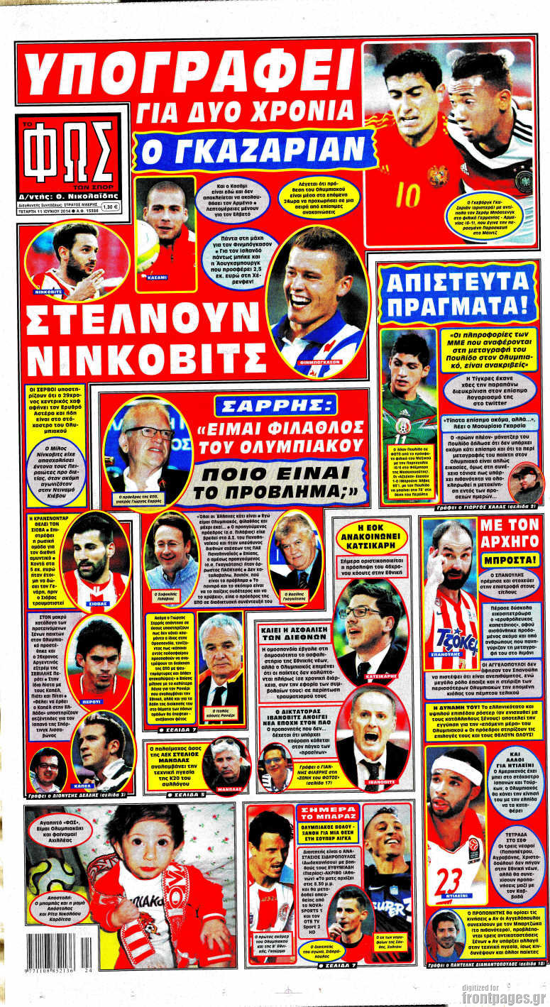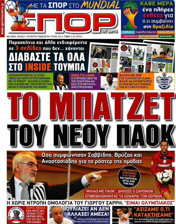 Οι αθλητικές εφημερίδες Enikos Newsroom 08:36, Τετάρτη 11 Ιουνίου 2014 Media Οι αθλητικές εφημερίδες Διαβάστε τα πρωτοσέλιδα των αθλητικών εφημερίδων: ΑΘΛΗΤΙΚΕΣ ΕΦΗΜΕΡΙΔΕΣ ΕΦΗΜΕΡΙΔΕΣ ΠΡΩΤΟΣΕΛΙΔΑ Μοιράσου το: σχολίασε κι εσύ (0 σχόλια) Ακολουθήστε το enikos.gr στο Google News και μάθετε πρώτοι όλες τις ειδήσεις Δείτε όλες τις τελευταίες ειδήσεις από την Ελλάδα και τον Κόσμο στο enikos.gr Ειδήσεις Ροή Ειδήσεων 2 ώρες πριν Εκτός ευρωομάδας ΣΥΡΙΖΑ ο Νίκος Παππάς μετά την επίθεση στον δημοσιογράφο Νίκο Γιαννόπουλο – Η μήνυση και οι νέες δηλώσεις 2 ώρες πριν «Αγριεύουν» οι αγρότες: «Δεν συντρέχει λόγος συνάντησης με τον πρωθυπουργό» – Ώρα αποφάσεων στη σύσκεψη της Πέμπτης 2 ώρες πριν Κυψέλη: Χωρίς την οικογένειά της δίπλα της απολογήθηκε η 16χρονη – «Της είχε επιτεθεί κάποιος για να την βιάσει, φοβήθηκε και κυκλοφορούσε με μαχαίρι» 2 ώρες πριν Politico: Το πρόβλημα της Ευρώπης δεν είναι το Βέλγιο αλλά ο Ντόναλντ Τραμπ 4 ώρες πριν Αλεξανδρούπολη: Πολυοργανική ανεπάρκεια λόγω υποσιτισμού η αιτία θανάτου του 3χρονου αγοριού 2 ώρες πριν Μυστήριο με τεράστιες κυκλικές πέτρες 200 κιλών – Ανακαλύφθηκαν τυχαία κατά τη διάρκεια οδικών έργων και κανείς δεν ξέρει από πού προέρχονται 3 ώρες πριν Ύπνος: Ειδικός εξηγεί τον πραγματικό λόγο που ξυπνάτε στις 4 τα ξημερώματα – Ο ρόλος των ορμονών και του κιρκάδιου ρυθμού 4 ώρες πριν Αριθμολογία: Οι άνθρωποι που έχουν γεννηθεί αυτές τις 4 ημερομηνίες, είναι τρυφεροί και αγαπούν ανιδιοτελώς 16 ώρες πριν 20 χρόνια τα Χριστούγεννα ξεκινούν στα Public με μεγάλη ποικιλία σε δώρα! 4 λεπτά πριν Σάρα Εσκενάζυ: Η πρώτη ανάρτηση για το θάνατο του πατέρα της, Αλμπέρτο Εσκενάζυ και η επιθυμία της οικογένειας 20 λεπτά πριν Παρί Σεν Ζερμέν – Φλαμένγκο 2-1 πεν. (1-1 κ.δ.): Οι Γάλλοι σήκωσαν και το Διηπειρωτικό με ήρωα τον Σαφόνοφ που έπιασε 4 πέναλτι 35 λεπτά πριν Βέλγους πολιτικούς και επικεφαλής χρηματοπιστωτικών ιδρυμάτων στοχοποιεί η Μόσχα για τα κατασχεθέντα περιουσιακά στοιχεία 50 λεπτά πριν ΗΠΑ: Αναζητείται δεύτερος ύποπτος για την επίθεση στο πανεπιστήμιο Μπράουν 1 ώρα πριν Λεωφόρος Αλεξάνδρας: Δεν εντοπίστηκε βόμβα έξω από το κολλέγιο – Προσήχθη άνδρας για το προειδοποιητικό σημείωμα ENIKOS NETWORK Αϋπνία: Το κόλπο που θα σας βοηθήσει να κοιμηθείτε απόψε – Είναι απλό και έχει αποτέλεσμα 2,6 εκατομμύρια πολίτες έχουν ήδη εμβολιαστεί κατά της γρίπης ΕΛΣΤΑΤ: Τι δείχνουν τα νέα στοιχεία για τις ηλεκτρονικές παραγγελίες των επιχειρήσεων ΚΕΠΕ: Οι 3 διακριτές συμβολές των ΜμΕ και της μεταποίησης στην ελληνική οικονομία Χαρτογραφώντας το «σημείο χωρίς επιστροφή»: Για πρώτη φορά αποκαλύπτεται με λεπτομέρεια το ακανθώδες όριο της ατμόσφαιρας τ... Η Google καταργεί τη λειτουργία «dark web report» – Πώς θα μπορούν οι χρήστες να διαγράφουν τα δεδομένα τους περισσότερα 22:24 , Τετάρτη 17 Δεκεμβρίου 2025 Το Σπίτι Δίπλα Στο Ποτάμι: Σε κίνδυνο η υγεία του Απόστολου – Τι θα δούμε απόψε “Το Σπίτι Δίπλα στο Ποτάμι” ξετυλίγει το νήμα της ζωής των πέντε αδελφών με καταισ... 21:14 , Τετάρτη 17 Δεκεμβρίου 2025 Παιχνίδια Εκδίκησης: Θα καταφέρει ο Χρήστος να κλονίσει την εμπιστοσύνη της Μάγιας απέναντι στον Άγη; Τα «Παιχνίδια Εκδίκησης» έρχονται απόψε στις 22:30, στον Αντ1, με το τελευταίο επεισόδιο της χ... 20:57 , Τετάρτη 17 Δεκεμβρίου 2025 Άγιος Έρωτας: Η Χλόη καταθέτει εναντίον του πατέρα της και ο Χάρης αποκαλύπτει στον Κλεάνθη ότι δεν είναι ο βιολογικός του πατέρας. Γεμάτο αποκαλύψεις είναι το νέο επεισόδιο της σει