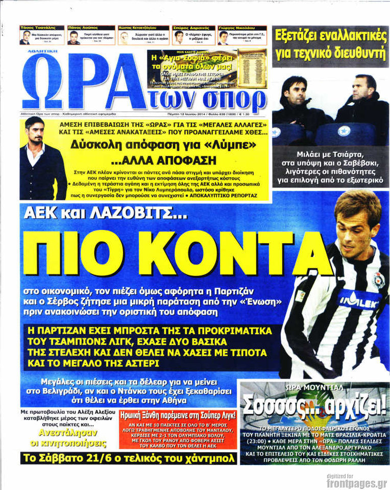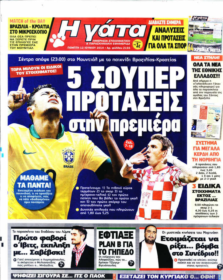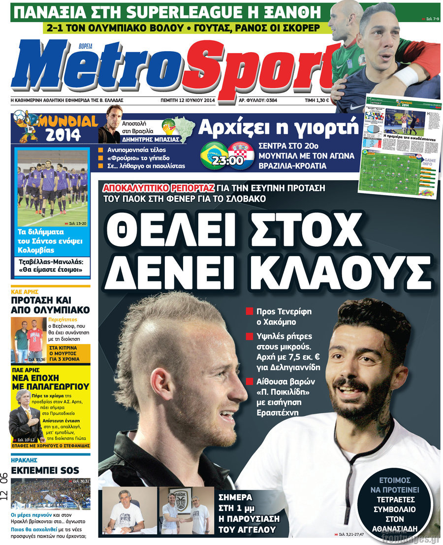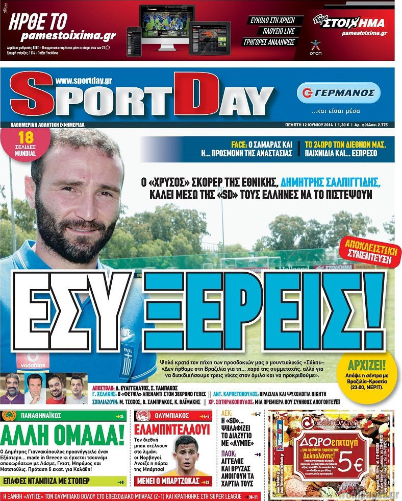 Οι αθλητικές εφημερίδες Enikos Newsroom 08:38, Πέμπτη 12 Ιουνίου 2014 Media Οι αθλητικές εφημερίδες Διαβάστε τα πρωτοσέλιδα των αθλητικών εφημερίδων: ΑΘΛΗΤΙΚΕΣ ΕΦΗΜΕΡΙΔΕΣ ΕΦΗΜΕΡΙΔΕΣ ΠΡΩΤΟΣΕΛΙΔΑ Μοιράσου το: σχολίασε κι εσύ (0 σχόλια) Ακολουθήστε το enikos.gr στο Google News και μάθετε πρώτοι όλες τις ειδήσεις Δείτε όλες τις τελευταίες ειδήσεις από την Ελλάδα και τον Κόσμο στο enikos.gr Ειδήσεις Ροή Ειδήσεων 21 λεπτά πριν ΣΥΡΙΖΑ: Διέγραψε τον ευρωβουλευτή Νίκο Παππά μετά την μήνυση δημοσιογράφου για ξυλοδαρμό 1 ώρα πριν Πώς στήθηκε η επιχείρηση «Ίπαλλος» που οδήγησε στη σύλληψη του «Έλληνα Εσκομπάρ» – «Ο πόλεμος ενάντια στους εμπόρους ναρκωτικών θα συνεχιστεί» 1 ώρα πριν Δίκη Χρυσής Αυγής: Την ενοχή και των 42 κατηγορουμένων ζητά η εισαγγελέας 1 ώρα πριν Κυψέλη: Στη φυλακή η 16χρονη που μαχαίρωσε συμμαθήτριά της 4 ώρες πριν Αμοργός: «Θα προσπαθήσω να το κάνω κάθε μέρα» – Ποιος είναι ο αγρότης που έστησε μόνος του το πρώτο μπλόκο στο νησί 1 ώρα πριν Τα 3 ζώδια που θα δουν τη ζωή τους να αλλάζει ριζικά το 2026 – «Όλα γίνονται καλύτερα σταδιακά» 6 ώρες πριν «Δεν είχα κλάψει από τότε που διαγνώστηκα με καρκίνο, ώσπου ένα τηλεφώνημα με έκανε να λυγίσω» – Η συγκλονιστική εξομολόγηση ενός άνδρα 2 ώρες πριν Ο σπάνιος σεισμός που έλυσε τα χέρια των επιστημόνων – Αποκάλυψε ακριβώς όσα αναζητούσαν 8 ώρες πριν 20 χρόνια τα Χριστούγεννα ξεκινούν στα Public με μεγάλη ποικιλία σε δώρα! 4 λεπτά πριν Μαργαρίτα Θεοδωράκη για Γιώργο Χατζιδάκι: Προσβλητικό το εξώδικο – Ο Μίκης έγραψε «απαγορεύεται το απαγορεύεται» 10 λεπτά πριν Ρόδος: Ανήλικος που βρισκόταν σε σχολική εκδρομή μεταφέρθηκε μεθυσμένος στο νοσοκομείο – 2 συλλήψεις 16 λεπτά πριν Γέννησε η Ευάννα Ζουμπούρογλου: «Είμαστε και οι δύο πολύ καλά – Είναι η πιο όμορφη όλου του κόσμου» 21 λεπτά πριν ΣΥΡΙΖΑ: Διέγραψε τον ευρωβουλευτή Νίκο Παππά μετά την μήνυση δημοσιογράφου για ξυλοδαρμό 22 λεπτά πριν Απολαυστικό «Ρουκ…Σουτ» με παίκτες του Παναθηναϊκού AKTOR – ΒΙΝΤΕΟ ENIKOS NETWORK Γιατί αναζητούμε τα Χριστούγεννα όλο και νωρίτερα; Ποιοι οι ψυχολογικοί και οι συναισθηματικοί λόγοι Σοβαροί κίνδυνοι από τη λάθος χορήγηση φαρμάκου για τις αιμορραγίες-Συστάσεις προς τους γιατρούς Δάνεια σε ελβετικό φράγκο: Αύριο η κατάθεση της τροπολογίας στη Βουλή – Όλες οι λεπτομέρειες Επίδομα παιδιού: Πότε θα δοθεί η τελευταία δόση για το 2025 από τον ΟΠΕΚΑ και τι πρέπει να γνωρίζετε Χαρτογραφώντας το «σημείο χωρίς επιστροφή»: Για πρώτη φορά αποκαλύπτεται με λεπτομέρεια το ακανθώδες όριο της ατμόσφαιρας τ... Η Google καταργεί τη λειτουργία «dark web report» – Πώς θα μπορούν οι χρήστες να διαγράφουν τα δεδομένα τους περισσότερα 12:35 , Τετάρτη 17 Δεκεμβρίου 2025 Μίρκα Παπακωνσταντίνου: «Δεν ήμουν αισιόδοξη για τα νούμερα – Είμαι ρεαλίστρια» Στα γυρίσματα του εορταστικού επεισοδίου της αγαπημένης σειράς “Το Σόι Σου”, βρέθηκε η κάμερα ... 12:12 , Τετάρτη 17 Δεκεμβρίου 2025 Ακούστε την εκπομπή του Νίκου Χατζηνικολάου 17/12/2025 Ακούστε την εκπομπή του Νίκου Χατζηνικολάου στον ραδιοφωνικό σταθμό RealFm 97,8, την Τετάρτη 1... 11:35 , Τετάρτη 17 Δεκεμβρίου 2025 Home Alone: Το σπίτι της ταινίας θα ανακαινιστεί – Επιστροφή στην αισθητική της δεκαετίας του ’90 Οι νέοι ιδιοκτήτες του πραγματικού σπιτιού που παρουσιάζεται στην κλασική ταινία του 1990 «Hom... 11:25 , Τετάρτη 17 Δεκεμβρίου 2025 Grand Hotel: Απόψε το τελευταίο επεισόδιο της χρονιάς – Όλα τα μυστικά μένουν εδώ Το τελευταίο επεισόδιο της χρονιάς της σειράς «Grand Hotel» θα π