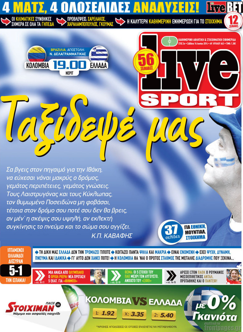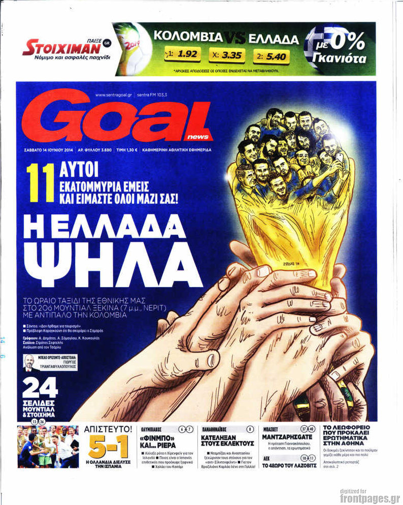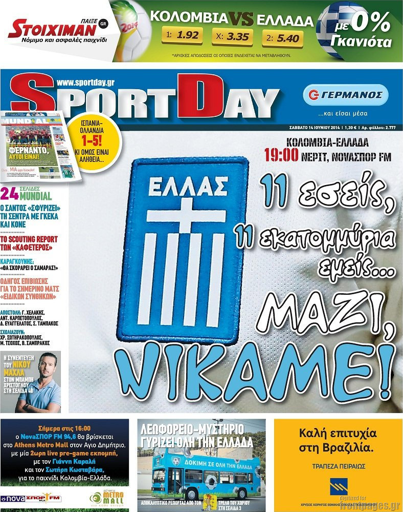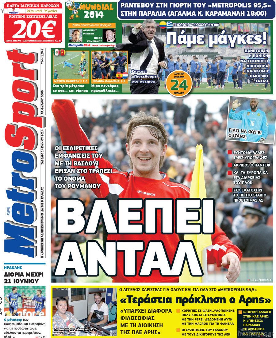 Οι αθλητικές εφημερίδες Enikos Newsroom 08:07, Σάββατο 14 Ιουνίου 2014 Media Οι αθλητικές εφημερίδες Διαβάστε τα πρωτοσέλιδα των αθλητικών εφημερίδων: ΑΘΛΗΤΙΚΕΣ ΕΦΗΜΕΡΙΔΕΣ ΕΦΗΜΕΡΙΔΕΣ ΠΡΩΤΟΣΕΛΙΔΑ Μοιράσου το: σχολίασε κι εσύ (0 σχόλια) Ακολουθήστε το enikos.gr στο Google News και μάθετε πρώτοι όλες τις ειδήσεις Δείτε όλες τις τελευταίες ειδήσεις από την Ελλάδα και τον Κόσμο στο enikos.gr Ειδήσεις Ροή Ειδήσεων 34 λεπτά πριν Μητσοτάκης σε αγρότες: Είμαστε ανοιχτοί στον διάλογο, αλλά όχι στο παράλογο – Η διεκδίκηση αιτημάτων οφείλει να γίνεται με σεβασμό στο κοινωνικό σύνολο 50 λεπτά πριν Γρίπη: «Καμπανάκι» από τους επιστήμονες για έξαρση κρουσμάτων στις γιορτές – Ποιοι κινδυνεύουν και πώς προστατευόμαστε 2 ώρες πριν Γαλλία: Έτοιμοι για Χριστούγεννα στους δρόμους οι αγρότες – «Οι δεσμεύσεις της κυβέρνησης δεν είναι αρκετές» 2 ώρες πριν Φοροδιαφυγή και «κενό ΦΠΑ»: Πώς τα ψηφιακά εργαλεία έφεραν δισεκατομμύρια στα ταμεία του Δημοσίου 3 ώρες πριν Τζορτζ Κλούνεϊ: Πέθανε η αδελφή του, Άντα Ζάιντλερ – «Η ηρωίδα μου» 43 λεπτά πριν Τα άστρα ευνοούν σκανδαλωδώς 4 ζώδια – «Εμφανίζονται ξαφνικά ευκαιρίες γιατί αποφασίζετε να αφήσετε πίσω το παρελθόν» 2 ώρες πριν Οι γονείς της θέλουν να έχουν πρόσβαση στον τραπεζικό της λογαριασμό – «Επιμένουν πως στις οικογένειες δεν υπάρχουν μυστικά» 2 ώρες πριν Αρχαιολόγοι ανακάλυψαν κάτι που δεν περίμεναν: Τα μαθηματικά υπήρχαν πριν από τους αριθμούς – Το μυστικό που κρύβεται πίσω από περίεργα αγγεία 8.000 ετών 1 ημέρα πριν Enerwave: Το νέο «ρεύμα» στη λιανική ενέργειας που αλλάζει την εμπειρία του καταναλωτή 9 λεπτά πριν Τηλεθέαση (20/12): Πρωτιά για το The Voice στην prime time – Τα ποσοστά στο δυναμικό και στο γενικό σύνολο 14 λεπτά πριν Συναγερμός στην Σκύρο – Ακυβέρνητο δεξαμενόπλοιο λόγω μπλακ άουτ 17 λεπτά πριν Σοκ στις Πινακάτες: Νεκρός ο πρόεδρος του χωριού Νίκος Παππάς – Κατέρρευσε μπροστά στη σύζυγο και τα παιδιά του 26 λεπτά πριν Πώς «ακούγονται» το Δέλτα του Αξιού και η λίμνη Ορεστιάδα; Οι πρώτες ηχογραφήσεις των επιστημόνων δείχνουν κάτι απρόσμενο 34 λεπτά πριν Μητσοτάκης σε αγρότες: Είμαστε ανοιχτοί στον διάλογο, αλλά όχι στο παράλογο – Η διεκδίκηση αιτημάτων οφείλει να γίνεται με σεβασμό στο κοινωνικό σύνολο ENIKOS NETWORK Έχετε καταρροή και φαγούρα στα μάτια στις γιορτές; Μπορεί να ευθύνεται το σύνδρομο χριστουγεννιάτικου δέντρου Η Danielle Fishel μετά τη διάγνωση καρκίνου του μαστού: «Είμαι καλά και νιώθω ευγνωμοσύνη» Ανοιχτά τα καταστήματα σήμερα – Μέχρι τι ώρα μπορείτε να κάνετε τις αγορές σας Πρωτοχρονιά 2026: Πόσο θα κοστίσει φέτος η βασιλόπιτα – Οι τιμές σε ζαχαροπλαστεία, φούρνους και σούπερ μάρκετ Χαρτογραφώντας το «σημείο χωρίς επιστροφή»: Για πρώτη φορά αποκαλύπτεται με λεπτομέρεια το ακανθώδες όριο της ατμόσφαιρας τ... Η Google καταργεί τη λειτουργία «dark web report» – Πώς θα μπορούν οι χρήστες να διαγράφουν τα δεδομένα τους περισσότερα 09:43 , Κυριακή 21 Δεκεμβρίου 2025 Το λάθος στην ταινία Die Hard που άφησε άναυδους τους θαυμαστές του Μπρους Γουίλις Ένας φανατικός των ταινιών άφησε άναυδους τους θαυμαστές του Die Hard, επισημαίνοντας τρία βασ... 08:13 , Κυριακή 21 Δεκεμβρίου 2025 Άγιος έρωτας: Ένας καταστροφικός σεισμός χτυπά τη Στέρνα Καταιγιστικές είναι οι εξελίξεις στα δυο τελευταία, συγκλονιστικά επεισόδια του 2025 της σειρά... 08:00 , Κυριακή 21 Δεκεμβρίου 2025 Σήμερα με τη Realnews: Ό,τι και αν αγοράσεις, σκανάρεις και κερδίζεις! Σήμερα με τη Realnews: Ό,τι και αν αγοράσεις, σ