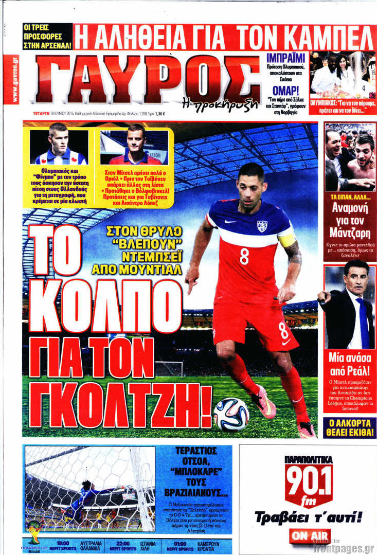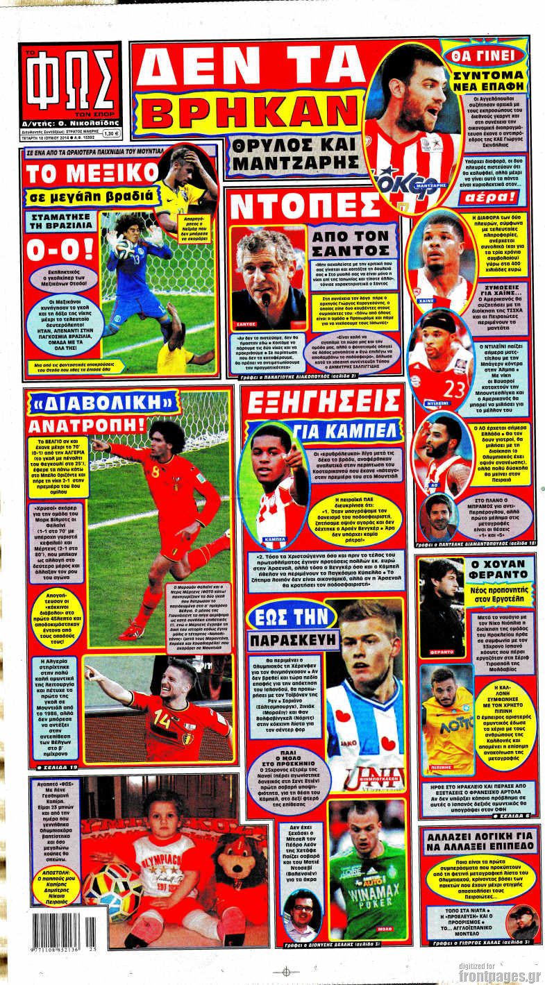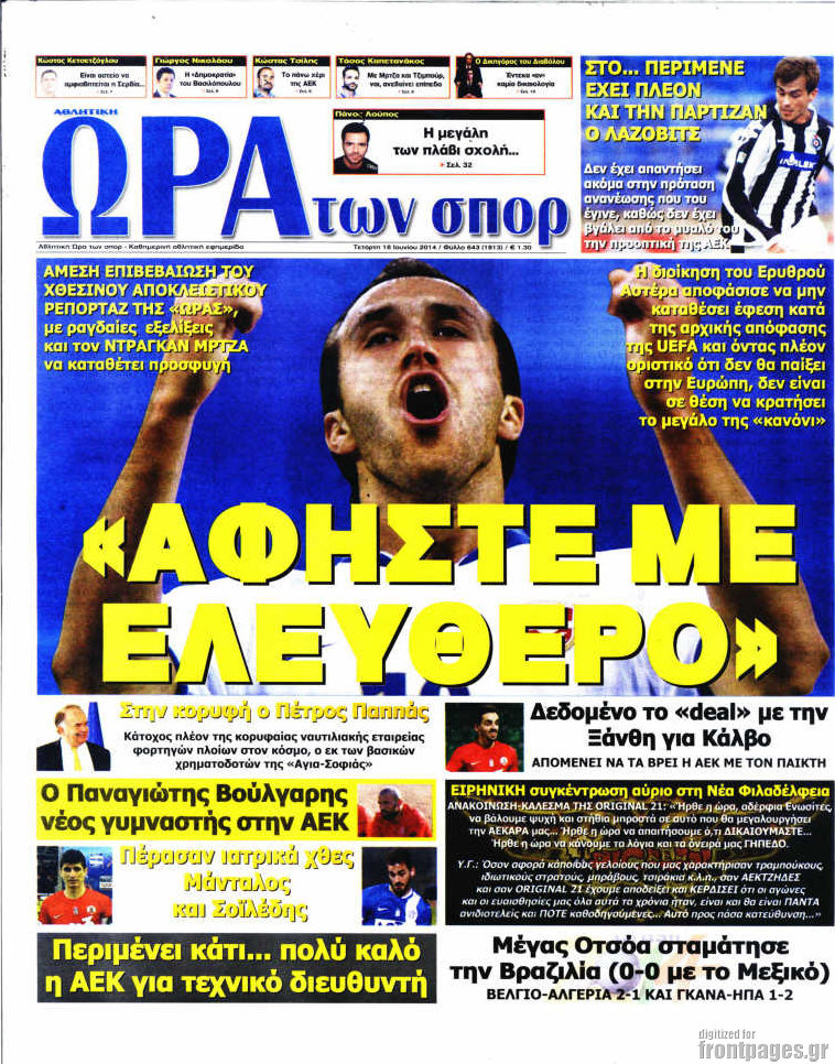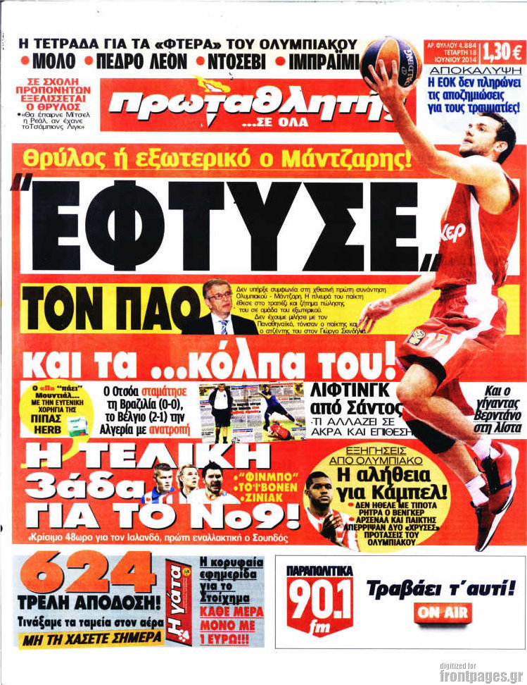 Οι αθλητικές εφημερίδες Enikos Newsroom 08:29, Τετάρτη 18 Ιουνίου 2014 Media Οι αθλητικές εφημερίδες Διαβάστε τα πρωτοσέλιδα των αθλητικών εφημερίδων: ΑΘΛΗΤΙΚΕΣ ΕΦΗΜΕΡΙΔΕΣ ΕΦΗΜΕΡΙΔΕΣ ΠΡΩΤΟΣΕΛΙΔΑ Μοιράσου το: σχολίασε κι εσύ (0 σχόλια) Ακολουθήστε το enikos.gr στο Google News και μάθετε πρώτοι όλες τις ειδήσεις Δείτε όλες τις τελευταίες ειδήσεις από την Ελλάδα και τον Κόσμο στο enikos.gr Ειδήσεις Ροή Ειδήσεων 15 λεπτά πριν Ευρωπαϊκή Ένωση: Συμφωνία για δάνειο 90 δισ. ευρώ στην Ουκρανία τη διετία 2026-2027 5 ώρες πριν ΟΠΕΚΕΠΕ: Προφυλακιστέος ο φερόμενος αρχηγός και ο λογιστής της εγκληματικής οργάνωσης 6 ώρες πριν Αυξάνουν την πίεση προς την κυβέρνηση οι αγρότες: Κλείνουν παρακαμπτήριους και ανοίγουν διόδια – Τι θα γίνει τις γιορτές 6 ώρες πριν Φοινικούντα: Το Σάββατο απολογείται ο 30χρονος γιος γνωστού επιχειρηματία της Πλάκας που παραδόθηκε – Όσα είπε στους αστυνομικούς και ο ρόλος του στο έγκλημα 4 ώρες πριν ΑΕΚ – Κραϊόβα 3-2: Επική ανατροπή και πρόκριση στους «16» του Conference League η Ένωση 5 ώρες πριν Αρχαιολόγοι ανακάλυψαν ρωμαϊκά τεχνουργήματα από μια πόλη που δεν υπήρξε ποτέ – Τα τρία εντυπωσιακά κτίρια και ο αμφορέας με τις… σαρδέλες 7 ώρες πριν Ύπνος: Η απλή βραδινή ρουτίνα για να προστατεύσετε τα μαλλιά σας από το κρύο κατά τη διάρκεια του χειμώνα 7 ώρες πριν Manifesting: Πώς να συναντήσετε τον σύντροφο της ζωής σας, ανάλογα με τον μήνα γέννησής σας 2 ημέρες πριν 20 χρόνια τα Χριστούγεννα ξεκινούν στα Public με μεγάλη ποικιλία σε δώρα! 3 λεπτά πριν Γουατεμάλα: Εξαρθρώθηκε κύκλωμα διακίνησης μεταναστών προς τις ΗΠΑ – Συνελήφθησαν 14 άτομα 7 λεπτά πριν Βουλγαρία: Χιλιάδες πολίτες στους δρόμους κατά της απερχόμενης κυβέρνησης και της διαφθοράς 15 λεπτά πριν Ευρωπαϊκή Ένωση: Συμφωνία για δάνειο 90 δισ. ευρώ στην Ουκρανία τη διετία 2026-2027 38 λεπτά πριν Αιματηρή βομβιστική επίθεση στην Υεμένη: Τουλάχιστον τρεις νεκροί και 13 τραυματίες 41 λεπτά πριν Στη Φλόριντα σήμερα οι διαβουλεύσεις σχετικά με τα επόμενα στάδια για τη Λωρίδα της Γάζας ENIKOS NETWORK Σε περίοδο αυξημένης δραστηριότητας η γρίπη στην Ελλάδα-Μέτρα προστασίας από τον ΕΟΔΥ Σκέφτεστε συνέχεια συζητήσεις που έχετε κάνει; Τι σημαίνει αυτό, σύμφωνα με ειδικό Στεγαστικό: Τι λέει η ΠΟΜΙΔΑ για τα νέα μέτρα που ανακοίνωσε ο Κυριάκος Μητσοτάκης Λαγκάρντ: Αισιόδοξη για την ανάπτυξη της Ευρωζώνης, αβέβαιη για τον πληθωρισμό Χαρτογραφώντας το «σημείο χωρίς επιστροφή»: Για πρώτη φορά αποκαλύπτεται με λεπτομέρεια το ακανθώδες όριο της ατμόσφαιρας τ... Η Google καταργεί τη λειτουργία «dark web report» – Πώς θα μπορούν οι χρήστες να διαγράφουν τα δεδομένα τους περισσότερα 02:50 , Παρασκευή 19 Δεκεμβρίου 2025 GNTM: «Κλείδωσαν» οι τέσσερις φιναλίστ – Μεγάλη ανατροπή στις τελευταίες αποχωρήσεις Για προτελευταία φορά εμφανίστηκαν στο πλατό του GNTM οι φιναλίστ του φετινού κύκλου, το βράδυ... 17:45 , Πέμπτη 18 Δεκεμβρίου 2025 ROUK ZOUK: Εορταστικό επεισόδιο με καλεσμένους τους πρωταγωνιστές του «Γιατί ρε πατέρα» Το Σάββατο 20 Δεκεμβρίου στις 21:00, η Ζέτα Μακρυπούλια υποδέχεται εκλεκτούς ηθοποιούς που όλο... 17:20 , Πέμπτη 18 Δεκεμβρίου 2025 Άγιος έρωτας: Η Χριστίνα εξομολογείται στον πατέρα Νικόλαο, απόψε στις 21:00 στον Alpha Η Νότα αποφασίζει να εκδικηθεί τον Πέτρο και τον Στέφανο, για χάρη του Λούη, όμως τα πράγματα ... 16:50 , Πέμπτη 18 Δεκεμβρίου 2025 Να μ’ αγαπάς: Ζωή και Φωτεινή συμφιλιώνονται ως μάνα με κόρη, απόψε στις 20:00 Η ταυτότητα του Άγγελου αποκαλύπτεται στο νέο επεισόδιο της σειράς “Ν