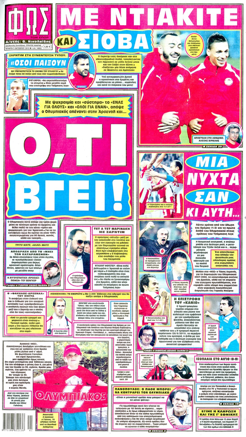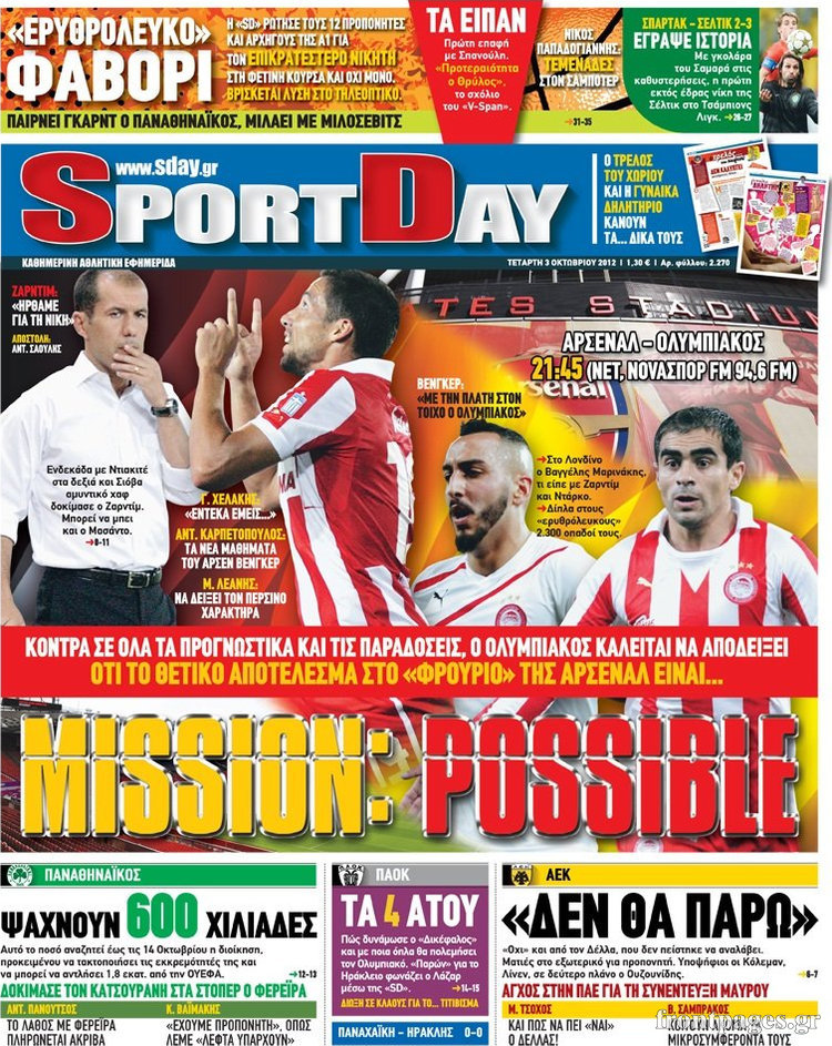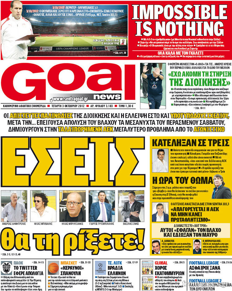 Τα πρωτοσέλιδα των αθλητικών εφημερίδων.