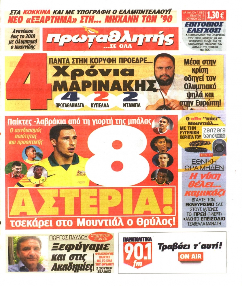Οι αθλητικές εφημερίδες Enikos Newsroom 08:10, Πέμπτη 19 Ιουνίου 2014 Media Οι αθλητικές εφημερίδες Διαβάστε τα πρωτοσέλιδα των αθλητικών εφημερίδων: ΑΘΛΗΤΙΚΕΣ ΕΦΗΜΕΡΙΔΕΣ ΕΦΗΜΕΡΙΔΕΣ ΠΡΩΤΟΣΕΛΙΔΑ Μοιράσου το: σχολίασε κι εσύ (0 σχόλια) Ακολουθήστε το enikos.gr στο Google News και μάθετε πρώτοι όλες τις ειδήσεις Δείτε όλες τις τελευταίες ειδήσεις από την Ελλάδα και τον Κόσμο στο enikos.gr Ειδήσεις Ροή Ειδήσεων 2 ώρες πριν Γιορτές με μπλόκα για τους αγρότες: Ανοίγουν διόδια και μοιράζουν προϊόντα στους ταξιδιώτες 10 λεπτά πριν Τσιάρας για αγρότες: Ικανοποιείται το αίτημα για αφορολόγητο πετρέλαιο στη μάνικα, πρόθεσή μας να μειωθεί ακόμη περισσότερο η τιμή στο ρεύμα 25 λεπτά πριν Αρχεία Έπσταϊν: Οι συγκλονιστικές φωτογραφίες – Ο Μάικλ Τζάκσον, ο Μικ Τζάγκερ και ο Κέβιν Σπέισι ανάμεσα στους διάσημους που απεικονίζονται 2 ώρες πριν Νέες ταυτότητες: Μεγάλη αναμονή για ραντεβού στην Αττική – Τέλος τα ταξίδια εκτός Ελλάδος από τον Αύγουστο για όσους δεν έχουν αλλάξει 56 λεπτά πριν Ινδία: Επτά ελέφαντες σκοτώθηκαν κατά τη σύγκρουση επιβατικού τρένου με κοπάδι 3 ώρες πριν Μία νέα «χρυσή» περίοδος αρχίζει για 3 ζώδια από σήμερα – «Μία αναπάντεχη ευκαιρία οδηγεί στην επιτυχία» 5 ώρες πριν Αρχαιολόγοι ανακάλυψαν σε χωράφι απεικόνιση 600 ετών ενός Αγίου – Τα στοιχεία που δείχνουν ότι μαρτύρησε 4 ώρες πριν Αγχώνεται για το χριστουγεννιάτικο δώρο που πήρε στην πλούσια σύντροφό του – «Φοβάμαι πως θα το βρει φθηνιάρικο, φοράει βραχιόλια Cartier» 54 λεπτά πριν Διαιτολόγος αποκαλύπτει 9 πρωινές συνήθειες που «λιώνουν» το κοιλιακό λίπος – «Υποστηρίζουν την υγιεινή απώλεια βάρους» 10 λεπτά πριν Τσιάρας για αγρότες: Ικανοποιείται το αίτημα για αφορολόγητο πετρέλαιο στη μάνικα, πρόθεσή μας να μειωθεί ακόμη περισσότερο η τιμή στο ρεύμα 17 λεπτά πριν Η Ζιζέλ Μπούντχεν παντρεύτηκε τον δάσκαλο ζίου-ζίτσου, Χοακίμ Βαλέντε 25 λεπτά πριν Αρχεία Έπσταϊν: Οι συγκλονιστικές φωτογραφίες – Ο Μάικλ Τζάκσον, ο Μικ Τζάγκερ και ο Κέβιν Σπέισι ανάμεσα στους διάσημους που απεικονίζονται 33 λεπτά πριν Χρήστος Μάντακας: «Θα μπορούσα να είχα φύγει από τη ζωή, δεν μπορούσα να περπατήσω…» 40 λεπτά πριν Εντυπωσιακό βίντεο από «τσουνάμι» πάγου στη Σιβηρία – Πώς προκαλείται το σπάνιο φαινόμενο ENIKOS NETWORK Είστε μόνιμα απρόσεκτοι; 3 σημάδια που δείχνουν ότι μπορεί να είναι σύμπτωμα πάθησης Πόσα κιλά παίρνουμε πραγματικά τα Χριστούγεννα, σύμφωνα με την επιστήμη – Πώς να το αποτρέψουμε; Χρήστος Δήμας: Στα 2,5 εκατ. ευρώ την ημέρα το κόστος από το άνοιγμα των διοδίων από τους αγρότες – Θα αξιώσουν αποζημίωση ... Χριστούγεννα και Πρωτοχρονιά: Πώς αμείβονται όσοι εργαστούν Χαρτογραφώντας το «σημείο χωρίς επιστροφή»: Για πρώτη φορά αποκαλύπτεται με λεπτομέρεια το ακανθώδες όριο της ατμόσφαιρας τ... Η Google καταργεί τη λειτουργία «dark web report» – Πώς θα μπορούν οι χρήστες να διαγράφουν τα δεδομένα τους περισσότερα 11:41 , Σάββατο 20 Δεκεμβρίου 2025 «Η αγάπη δεν χάνεται ποτέ»: Η μικρού μήκους ταινία κινουμένων σχεδίων που θέτει ερωτήματα για τη ζωή και τον θάνατο Ο θάνατος είναι ένα από τα πιο σκληρά θέματα που καλείται να διαχειριστεί κάποιος στη διάρκεια... 09:30 , Σάββατο 20 Δεκεμβρίου 2025 «Porto Leone: Στη γειτονιά με τα κόκκινα φανάρια» – Ο Χρόνης αποκαλύπτει στην Αλεξάνδρα το μυστικό για το παιδί της Λένας Η μεγάλη δραματική σειρά του Apha «Porto Leone: Στη γειτονιά με τα κόκκινα φανάρια» μας μεταφέ... 08:14 , Σάββατο 20 Δεκεμβρίου 2025 Τρομεροί γονείς: Η Μαρ
