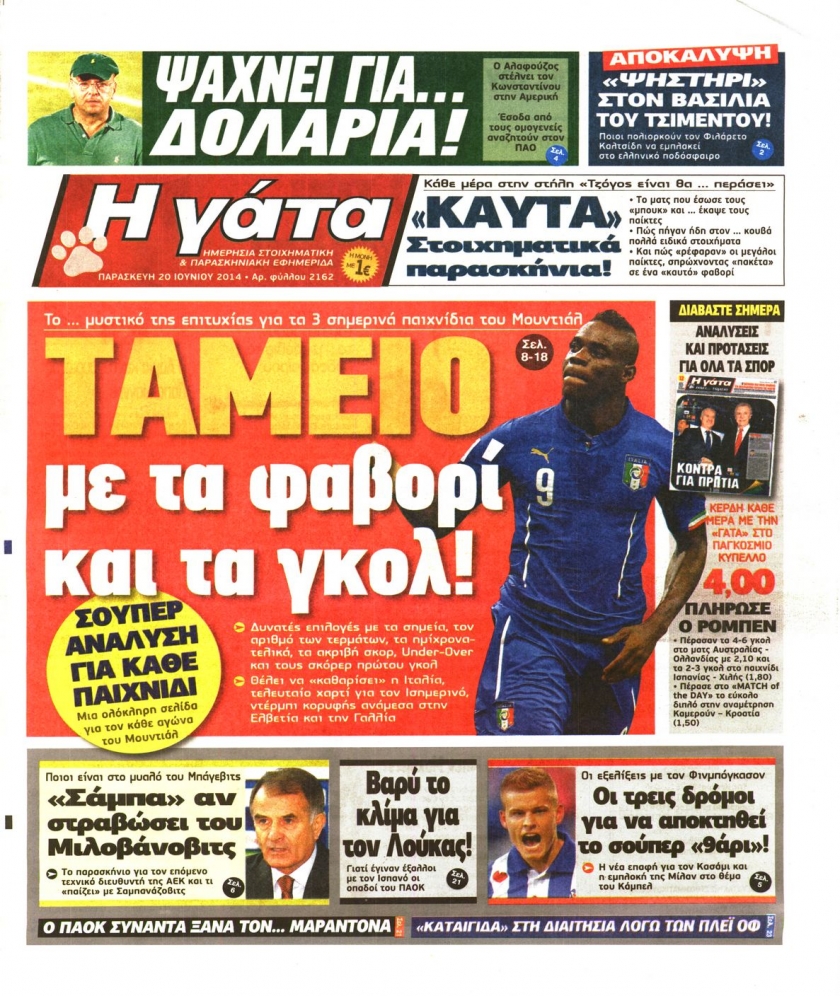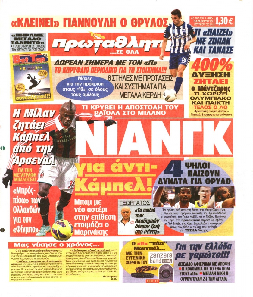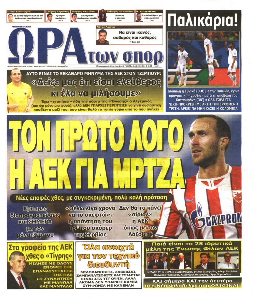 Οι αθλητικές εφημερίδες Enikos Newsroom 08:37, Παρασκευή 20 Ιουνίου 2014 Media Οι αθλητικές εφημερίδες Διαβάστε τα πρωτοσέλιδα των αθλητικών εφημερίδων: ΑΘΛΗΤΙΚΕΣ ΕΦΗΜΕΡΙΔΕΣ ΕΦΗΜΕΡΙΔΕΣ ΠΡΩΤΟΣΕΛΙΔΑ Μοιράσου το: σχολίασε κι εσύ (0 σχόλια) Ακολουθήστε το enikos.gr στο Google News και μάθετε πρώτοι όλες τις ειδήσεις Δείτε όλες τις τελευταίες ειδήσεις από την Ελλάδα και τον Κόσμο στο enikos.gr Ειδήσεις Ροή Ειδήσεων 8 ώρες πριν Μητσοτάκης: Αναγκαία η μεταρρύθμιση του πρωτογενούς τομέα – Τα 6 νέα μέτρα για το στεγαστικό και οι αναφορές σε «Ιθάκη» και «πολιτικούς του καναπέ» 7 ώρες πριν Δάνεια σε ελβετικό φράγκο: Τα βασικά σημεία της ρύθμισης – ανάσας για 40.000 δανειολήπτες – Αναλυτικός οδηγός με ερωτήσεις και απαντήσεις 7 ώρες πριν Κυψέλη: Εξιτήριο πήρε η 14χρονη μαθήτρια που μαχαιρώθηκε από την 16χρονη σε σχολείο – «Θέλω να βοηθήσω το παιδί, έχει μπλέξει με κακές παρέες» 7 ώρες πριν Τραμπ: Γιατί κατέθεσε τώρα την αγωγή κατά του BBC – Πώς η κίνησή του εξυπηρετεί το νέο δόγμα του για «αντίσταση» στην Ευρώπη, υπέρ των συντηρητικών 8 ώρες πριν ΟΠΕΚΕΠΕ – Παράνομες επιδοτήσεις: Ελεύθεροι με περιοριστικούς όρους και οι 7 κατηγορούμενοι που απολογήθηκαν σήμερα 7 ώρες πριν Ανακαλύφθηκε βυθισμένη πέτρινη κατασκευή ανοιχτά της Κριμαίας – Αποτελεί μέρος αρχαίας ελληνικής αποικίας 8 ώρες πριν Ύπνος: Αυτό μπορεί να είναι το χειρότερο λάθος για το βιολογικό ρολόι σας, σύμφωνα με ειδικό 9 ώρες πριν Αριθμολογία: Οι άνθρωποι που έχουν γεννηθεί αυτές τις 3 ημερομηνίες, προσελκύουν μεγάλη τύχη πριν από το τέλος του 2025 11 ώρες πριν Οι 7 συμπεριφορές που μαρτυρούν ότι ένας άνδρας επενδύει μακροπρόθεσμα σε μια σχέση 2 λεπτά πριν Σαν σήμερα 17 Δεκεμβρίου: Τα σημαντικότερα γεγονότα της ημέρας 8 λεπτά πριν Οι οικονομικές εφημερίδες 17/12/2025 13 λεπτά πριν Οι αθλητικές εφημερίδες 17/12/2025 18 λεπτά πριν Οι πολιτικές εφημερίδες 17/12/2025 26 λεπτά πριν Τα ζώδια σήμερα, Τετάρτη 17 Δεκεμβρίου: Κριοί, η αυτοπεποίθησή σας ενισχύεται ENIKOS NETWORK Αίτημα ΙΣΑ για την εξαίρεση των προσωπικών γιατρών από τις κατ’ οίκον επισκέψεις Η σκανδιναβική μέθοδος στον ύπνο που μπορεί να σώσει έναν γάμο Πιερρακάκης: Ο προϋπολογισμός συμβάλλει ουσιαστικά στην ενίσχυση της αγοραστικής δύναμης της πλειονότητας των εργαζομένων e-ΕΦΚΑ: Παρατείνεται η προθεσμία για την υποβολή ΑΠΔ – Ποιους αφορά Σύγχρονος Νοστράδαμος: Προειδοποιεί για «μεγάλο γεγονός» τους επόμενους μήνες που θα συγκλονίσει τη Βρετανία και τον κόσμο Τεστ παρατηρητικότητας: Μπορείτε να βρείτε τις 3 διαφορές στις εικόνες με έναν πιγκουίνο σε 14 δευτερόλεπτα περισσότερα 05:48 , Τετάρτη 17 Δεκεμβρίου 2025 Οι οικονομικές εφημερίδες 17/12/2025 Διαβάστε τα πρωτοσέλιδα από τις οικονομικές εφημερίδες, σήμερα 17/12/2025. 05:43 , Τετάρτη 17 Δεκεμβρίου 2025 Οι αθλητικές εφημερίδες 17/12/2025 Διαβάστε τα πρωτοσέλιδα από τις αθλητικές εφημερίδες, σήμερα 17/12/2025. 05:38 , Τετάρτη 17 Δεκεμβρίου 2025 Οι πολιτικές εφημερίδες 17/12/2025 Διαβάστε τα πρωτοσέλιδα από τις πολιτικές εφημερίδες, σήμερα 17/12/2025. 20:06 , Τρίτη 16 Δεκεμβρίου 2025 Ο ΣΚΑΙ καταγγέλλει τον ΕΚΚΟΜΕΔ Επιστολή με την οποία καταγράφει την έντονη διαμαρτυρία του προς τον διευθύνοντα σύμβουλο του... ΤΕΛΕΥΤΑΙΕΣ ΕΙΔΗΣΕΙΣ 2 λεπτά πριν Σαν σήμερα 17 Δεκεμβρίου: Τα σημαντικότερα γεγονότα... 8 λεπτά πριν Οι οικονομικές εφημερίδες 17/12/2025 13 λεπτά πριν Οι αθλητικές εφημερίδες 17/12/2025 18 λεπτά πριν Οι πολιτικές εφημερίδες 17/12/2025 26 λεπτά πριν Τα ζώδια σήμερα, Τετάρτη 17 Δεκεμβρίου: Κριοί, η... 34 λ