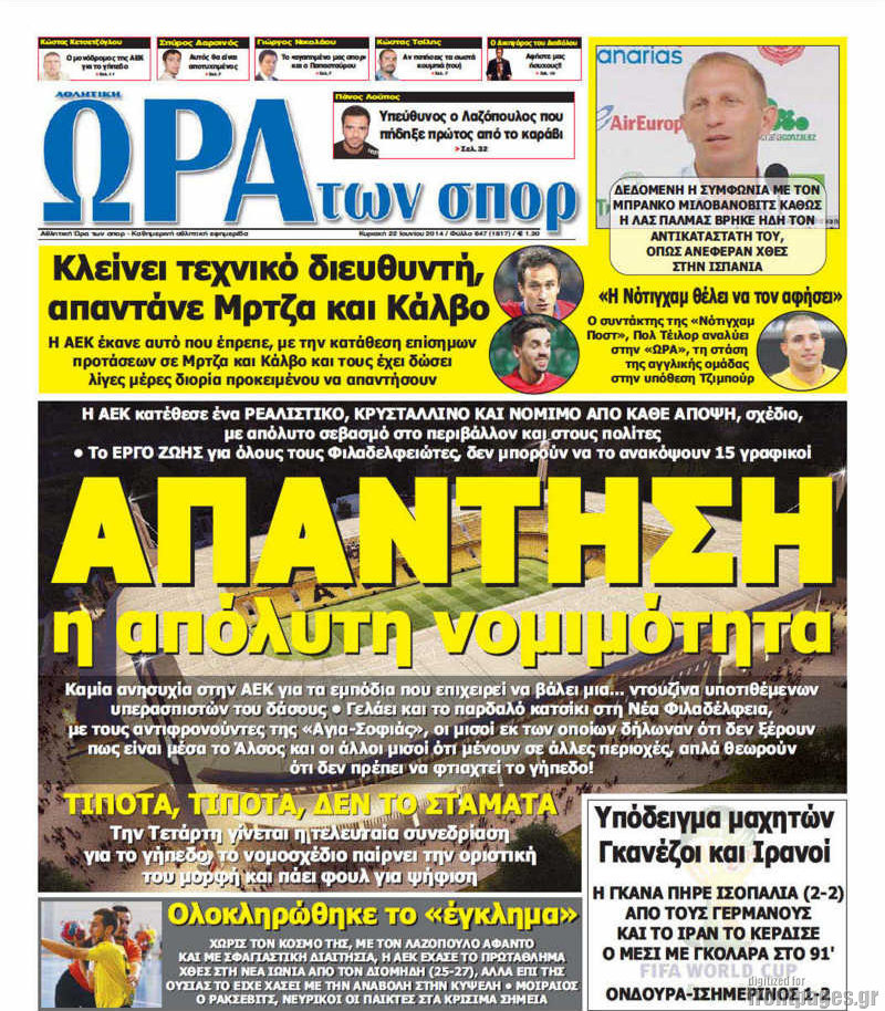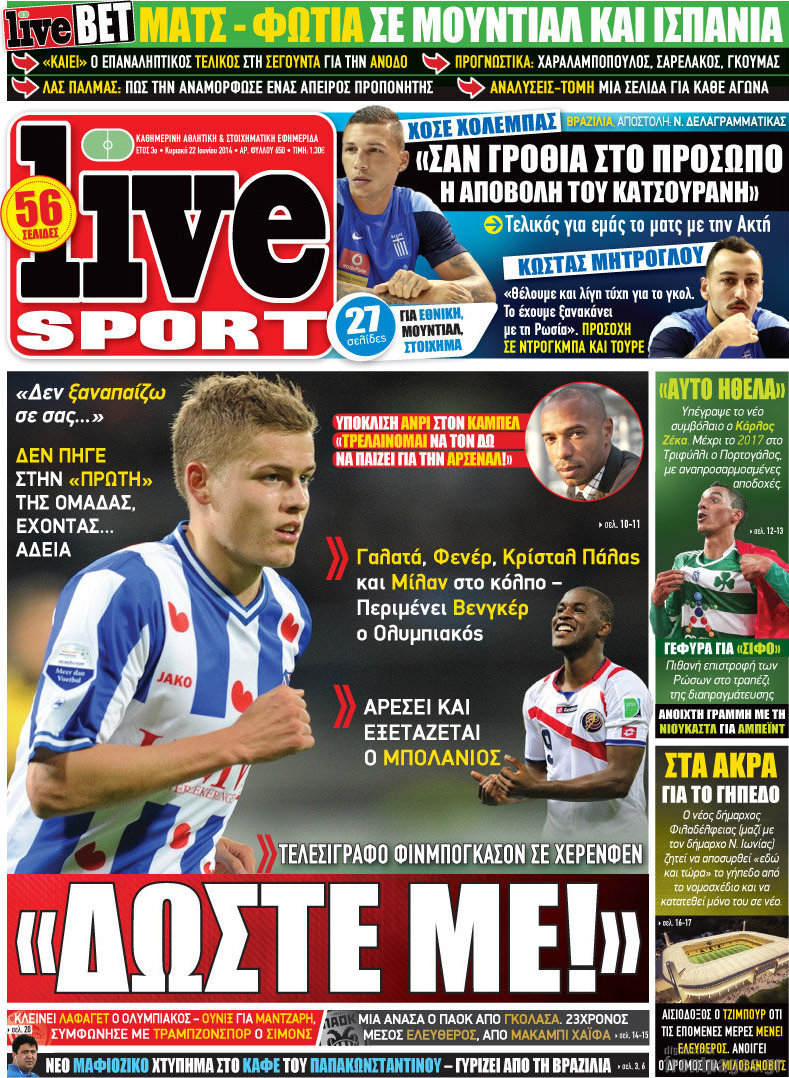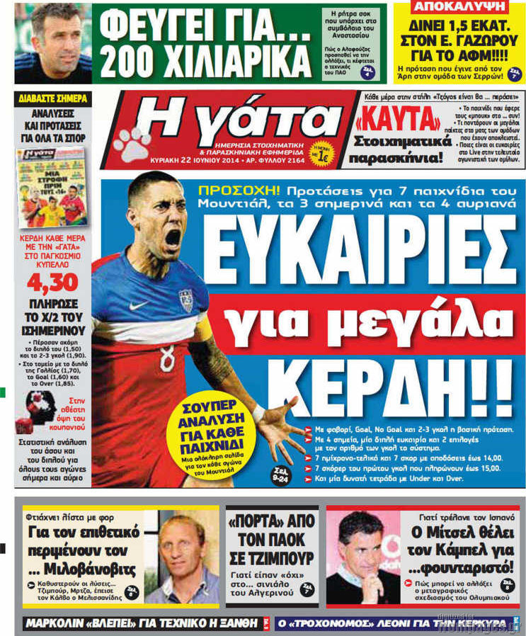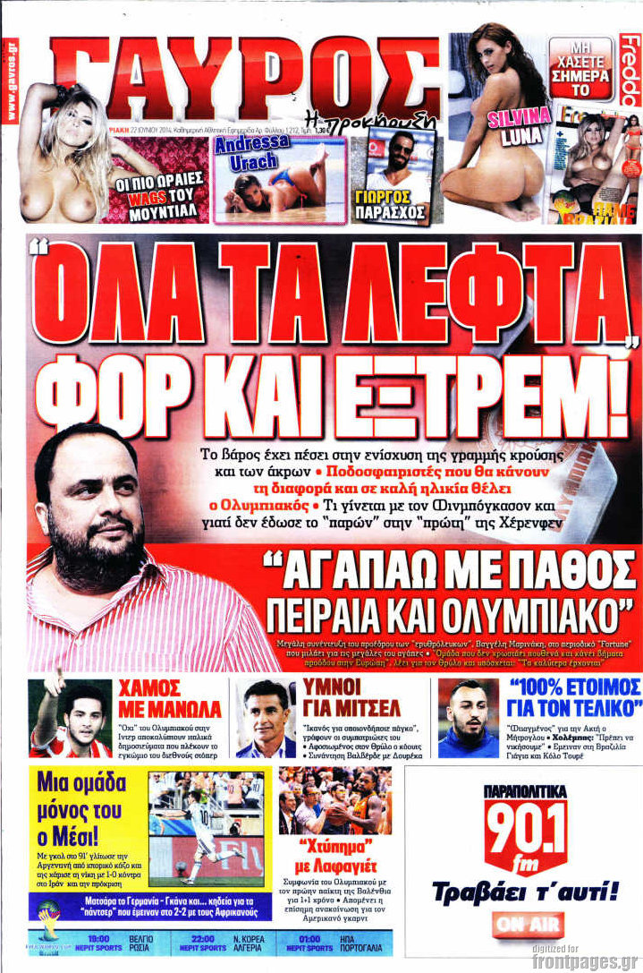 Οι αθλητικές εφημερίδες Enikos Newsroom 09:06, Κυριακή 22 Ιουνίου 2014 Media Οι αθλητικές εφημερίδες Διαβάστε τα πρωτοσέλιδα των αθλητικών εφημερίδων: Διαβάστε επίσης: Οι πολιτικές εφημερίδες Οι αθλητικές μεταδόσεις της ημέρας ΑΘΛΗΤΙΚΕΣ ΕΦΗΜΕΡΙΔΕΣ ΠΡΩΤΟΣΕΛΙΔΑ Μοιράσου το: σχολίασε κι εσύ (0 σχόλια) Ακολουθήστε το enikos.gr στο Google News και μάθετε πρώτοι όλες τις ειδήσεις Δείτε όλες τις τελευταίες ειδήσεις από την Ελλάδα και τον Κόσμο στο enikos.gr Ειδήσεις Ροή Ειδήσεων 24 λεπτά πριν Ευρωπαϊκή Ένωση: Συμφωνία για δάνειο 90 δισ. ευρώ στην Ουκρανία τη διετία 2026-2027 5 ώρες πριν ΟΠΕΚΕΠΕ: Προφυλακιστέος ο φερόμενος αρχηγός και ο λογιστής της εγκληματικής οργάνωσης 6 ώρες πριν Αυξάνουν την πίεση προς την κυβέρνηση οι αγρότες: Κλείνουν παρακαμπτήριους και ανοίγουν διόδια – Τι θα γίνει τις γιορτές 6 ώρες πριν Φοινικούντα: Το Σάββατο απολογείται ο 30χρονος γιος γνωστού επιχειρηματία της Πλάκας που παραδόθηκε – Όσα είπε στους αστυνομικούς και ο ρόλος του στο έγκλημα 5 ώρες πριν ΑΕΚ – Κραϊόβα 3-2: Επική ανατροπή και πρόκριση στους «16» του Conference League η Ένωση 6 ώρες πριν Αρχαιολόγοι ανακάλυψαν ρωμαϊκά τεχνουργήματα από μια πόλη που δεν υπήρξε ποτέ – Τα τρία εντυπωσιακά κτίρια και ο αμφορέας με τις… σαρδέλες 7 ώρες πριν Ύπνος: Η απλή βραδινή ρουτίνα για να προστατεύσετε τα μαλλιά σας από το κρύο κατά τη διάρκεια του χειμώνα 8 ώρες πριν Manifesting: Πώς να συναντήσετε τον σύντροφο της ζωής σας, ανάλογα με τον μήνα γέννησής σας 2 ημέρες πριν 20 χρόνια τα Χριστούγεννα ξεκινούν στα Public με μεγάλη ποικιλία σε δώρα! 12 λεπτά πριν Γουατεμάλα: Εξαρθρώθηκε κύκλωμα διακίνησης μεταναστών προς τις ΗΠΑ – Συνελήφθησαν 14 άτομα 17 λεπτά πριν Βουλγαρία: Χιλιάδες πολίτες στους δρόμους κατά της απερχόμενης κυβέρνησης και της διαφθοράς 24 λεπτά πριν Ευρωπαϊκή Ένωση: Συμφωνία για δάνειο 90 δισ. ευρώ στην Ουκρανία τη διετία 2026-2027 48 λεπτά πριν Αιματηρή βομβιστική επίθεση στην Υεμένη: Τουλάχιστον τρεις νεκροί και 13 τραυματίες 51 λεπτά πριν Στη Φλόριντα σήμερα οι διαβουλεύσεις σχετικά με τα επόμενα στάδια για τη Λωρίδα της Γάζας ENIKOS NETWORK Σε περίοδο αυξημένης δραστηριότητας η γρίπη στην Ελλάδα-Μέτρα προστασίας από τον ΕΟΔΥ Σκέφτεστε συνέχεια συζητήσεις που έχετε κάνει; Τι σημαίνει αυτό, σύμφωνα με ειδικό Στεγαστικό: Τι λέει η ΠΟΜΙΔΑ για τα νέα μέτρα που ανακοίνωσε ο Κυριάκος Μητσοτάκης Λαγκάρντ: Αισιόδοξη για την ανάπτυξη της Ευρωζώνης, αβέβαιη για τον πληθωρισμό Χαρτογραφώντας το «σημείο χωρίς επιστροφή»: Για πρώτη φορά αποκαλύπτεται με λεπτομέρεια το ακανθώδες όριο της ατμόσφαιρας τ... Η Google καταργεί τη λειτουργία «dark web report» – Πώς θα μπορούν οι χρήστες να διαγράφουν τα δεδομένα τους περισσότερα 02:50 , Παρασκευή 19 Δεκεμβρίου 2025 GNTM: «Κλείδωσαν» οι τέσσερις φιναλίστ – Μεγάλη ανατροπή στις τελευταίες αποχωρήσεις Για προτελευταία φορά εμφανίστηκαν στο πλατό του GNTM οι φιναλίστ του φετινού κύκλου, το βράδυ... 17:45 , Πέμπτη 18 Δεκεμβρίου 2025 ROUK ZOUK: Εορταστικό επεισόδιο με καλεσμένους τους πρωταγωνιστές του «Γιατί ρε πατέρα» Το Σάββατο 20 Δεκεμβρίου στις 21:00, η Ζέτα Μακρυπούλια υποδέχεται εκλεκτούς ηθοποιούς που όλο... 17:20 , Πέμπτη 18 Δεκεμβρίου 2025 Άγιος έρωτας: Η Χριστίνα εξομολογείται στον πατέρα Νικόλαο, απόψε στις 21:00 στον Alpha Η Νότα αποφασίζει να εκδικηθεί τον Πέτρο και τον Στέφανο, για χάρη του Λούη, όμως τα πράγματα ... 16:50 , Πέμπτη 18 Δεκεμβρίου 2025 Να μ’ αγαπάς: Ζωή και Φωτεινή συμφιλιώνονται ως μάνα με κόρη, απόψε στις 20:00 Η τα