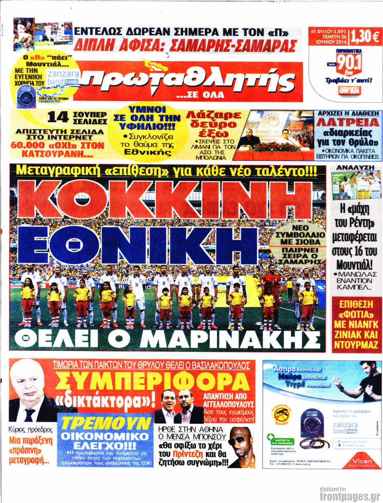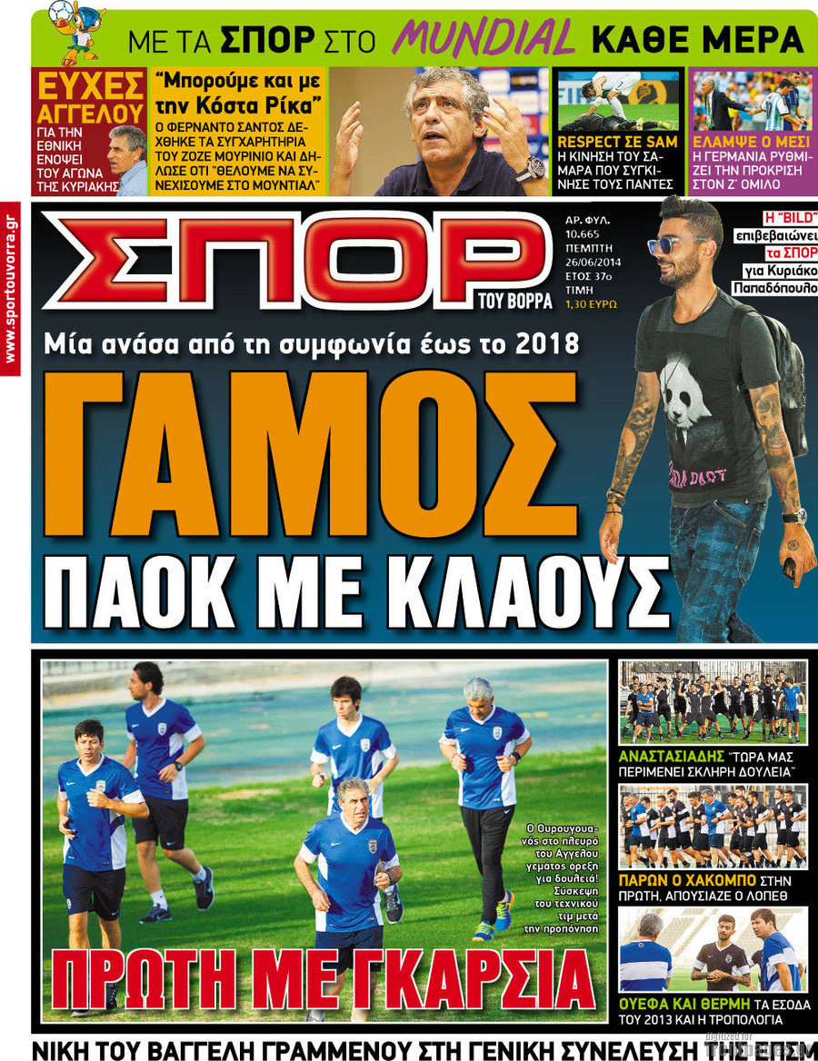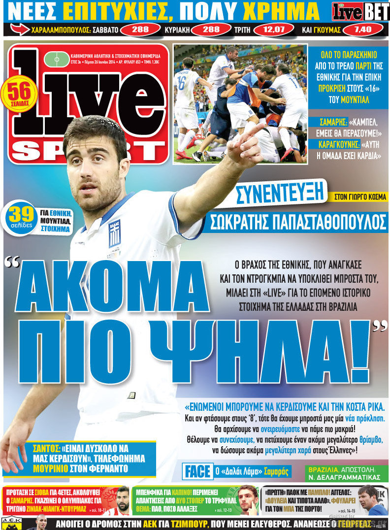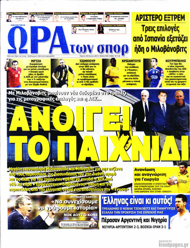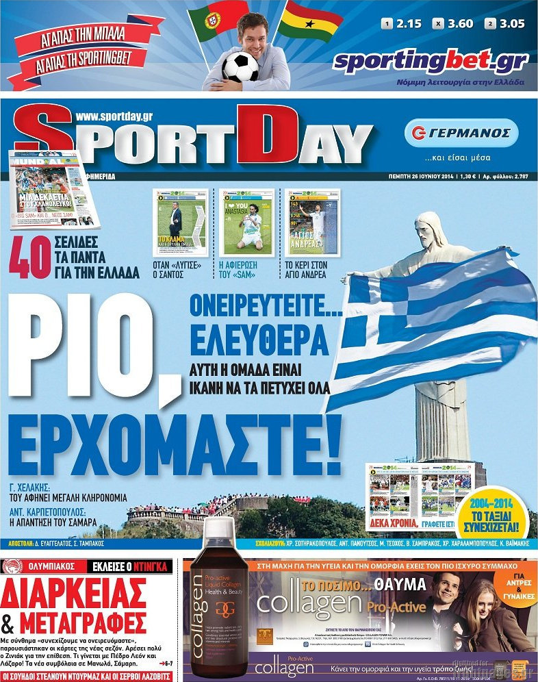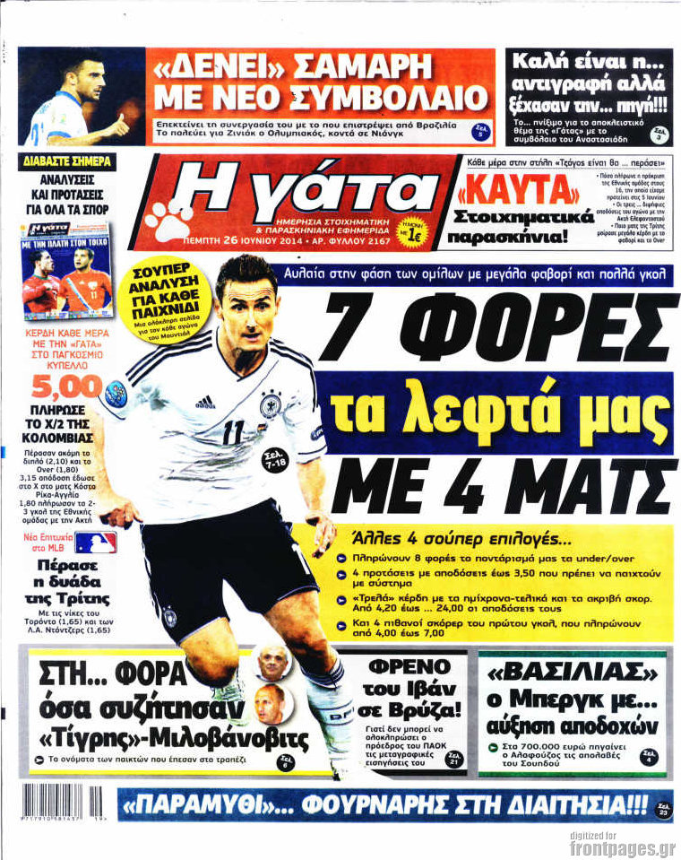 Οι αθλητικές εφημερίδες Enikos Newsroom 08:23, Πέμπτη 26 Ιουνίου 2014 Media Οι αθλητικές εφημερίδες Διαβάστε τα πρωτοσέλιδα των αθλητικών εφημερίδων: ΑΘΛΗΤΙΚΕΣ ΕΦΗΜΕΡΙΔΕΣ ΕΦΗΜΕΡΙΔΕΣ ΠΡΩΤΟΣΕΛΙΔΑ Μοιράσου το: σχολίασε κι εσύ (0 σχόλια) Ακολουθήστε το enikos.gr στο Google News και μάθετε πρώτοι όλες τις ειδήσεις Δείτε όλες τις τελευταίες ειδήσεις από την Ελλάδα και τον Κόσμο στο enikos.gr Ειδήσεις Ροή Ειδήσεων 58 λεπτά πριν Μεσόγειος: Η διαδρομή του ρωσικού τάνκερ «Qendil» και η στοχευμένη επίθεση της Ουκρανίας με drone – Ο Πούτιν προειδοποίησε για αντίποινα 52 λεπτά πριν Αττική: Θρίλερ με νεκρό βρέφος 5 μηνών – Κοιμόταν στο ίδιο κρεβάτι με τους γονείς του 2 ώρες πριν Από το Ορμένιο ως τα Μάλγαρα κι από τη Σιάτιστα μέχρι τη Νίκαια: Μπλόκα σε όλη την Ελλάδα – Το Σάββατο ανοίγουν τα διόδια οι αγρότες 2 ώρες πριν «Έλληνας Εσκομπάρ»: Φωτογραφίες με τους 4 τόνους κοκαΐνης που κατασχέθηκαν από το σκάφος «Ουρανία» 3 ώρες πριν Πούτιν: Σαρκαστικά μηνύματα, παράπονα και απρόοπτα στη συνέντευξη Τύπου – Η πρόταση γάμου on air και οι ερωτήσεις για τα αγγούρια και τους… εξωγήινους 3 ώρες πριν Τα 5 ζώδια που ευνοούνται στην ερωτική ζωή τους την επόμενη εβδομάδα – «Η ενέργεια του Αιγόκερου φέρνει αγάπη και σταθερότητα» 7 ώρες πριν Ειδικός μοιράζεται 6 κόλπα για να διατηρείστε σε φόρμα με πάνω από 40 ώρες εργασίας την εβδομάδα: «Προπονηθείτε πριν από τη δουλειά, όχι μετά» 4 ώρες πριν Αυτό το έξυπνο μαθηματικό κόλπο θα μπορούσε να αλλάξει τον τρόπο με τον οποίο οι επιστήμονες μελετούν τους σεισμούς 2 ώρες πριν Κουίζ για την παλιά Αθήνα: Αναγνωρίζετε την περιοχή; Έχετε περάσει 100% από εκεί 4 λεπτά πριν Τέμπη: Διεκόπη για τις 9 Ιανουαρίου η δίκη για τα χαμένα βίντεο της εμπορικής αμαξοστοιχίας – «Απαιτούμε να μας σέβονται» 9 λεπτά πριν Hellenic Train: Αλλαγές και καταργήσεις δρομολογίων λεωφορείων λόγω των αγροτικών κινητοποιήσεων 15 λεπτά πριν Ζελένσκι: «Δεν χρειάζεται αναθεώρηση του Συντάγματος» για να εγκαταλείψει η Ουκρανία τον στόχο ένταξης στο ΝΑΤΟ 20 λεπτά πριν Παναγιώτα Βλαντή: Η τρυφερή εξομολόγηση για τον σύζυγό της – «Πραγματικά ήταν για μένα αυτό που ήθελα σε όλη μου τη ζωή» 27 λεπτά πριν Επίσημη η «βόμβα»: Ο ΠΑΟΚ ανακοίνωσε την απόκτηση του Πάτρικ Μπέβερλι ENIKOS NETWORK «Η σούπερ» γρίπη εξαπλώνεται στην Ευρώπη-Στοιχεία για την αποτελεσματικότητα του εμβολίου από το ECDC ΕΛΣΤΑΤ: Αύξηση κατά 1,7% των επαγγελματιών υγείας το 2024 Η απάντηση της κυβέρνησης στα αιτήματα των αγροτών: 16 έχουν ικανοποιηθεί, 4 βρίσκονται υπό επεξεργασία και 7 δεν είναι εφι... Μισθολογική διαφάνεια: Το 68% των εργαζομένων αγνοεί τη νέα οδηγία – Αναλυτικά τα στοιχεία έρευνας Χαρτογραφώντας το «σημείο χωρίς επιστροφή»: Για πρώτη φορά αποκαλύπτεται με λεπτομέρεια το ακανθώδες όριο της ατμόσφαιρας τ... Η Google καταργεί τη λειτουργία «dark web report» – Πώς θα μπορούν οι χρήστες να διαγράφουν τα δεδομένα τους περισσότερα 18:11 , Παρασκευή 19 Δεκεμβρίου 2025 Το σόι σου: Ο Άρης έρχεται στην Ελλάδα για τις γιορτές των Χριστουγέννων – Τι θα δούμε στο αποψινό εορταστικό επεισόδιο Ένα απολαυστικό, εορταστικό επεισόδιο της σειράς “Το σόι σου”, γεμάτο ευτράπελα αλ... 15:15 , Παρασκευή 19 Δεκεμβρίου 2025 Την Κυριακή με τη Realnews: Ό,τι και αν αγοράσεις, σκανάρεις και κερδίζεις! Την Κυριακή με τη Realnews: Ό,τι και αν αγοράσεις, σκανάρεις και κερδίζεις! Με το PADU app, το... 08:00 , Παρασκευή 19 Δεκεμβρίου 2025 Την Κυριακή με τη Realnews: Δωροεπιταγή 10€ Δωροεπιταγή αξίας 10€ για αγορές άνω των 60