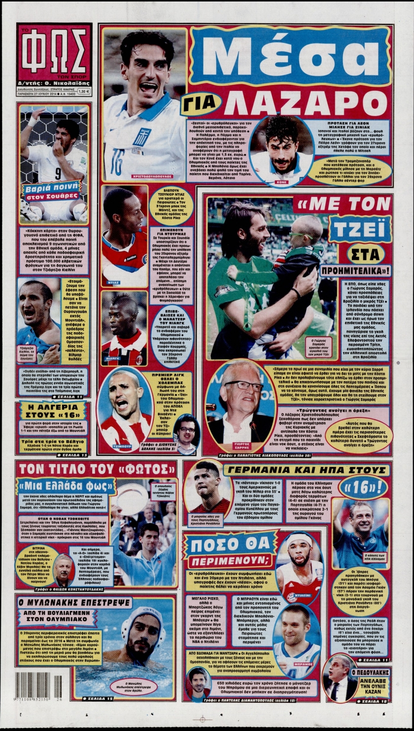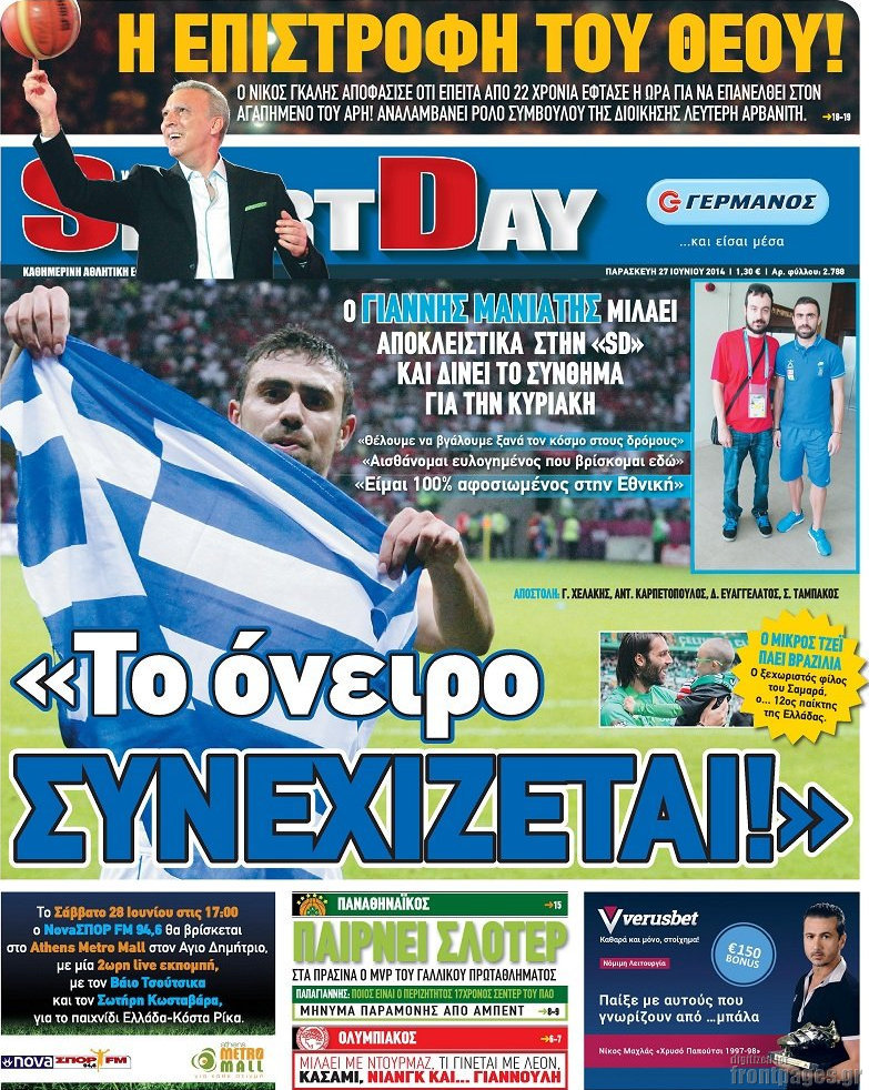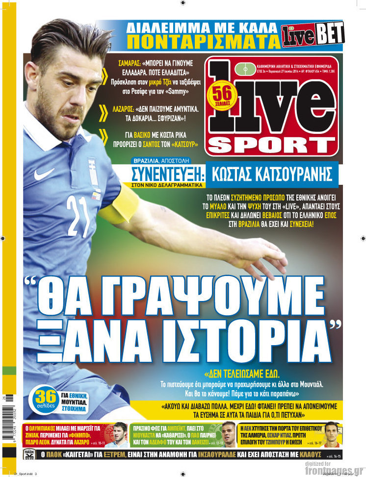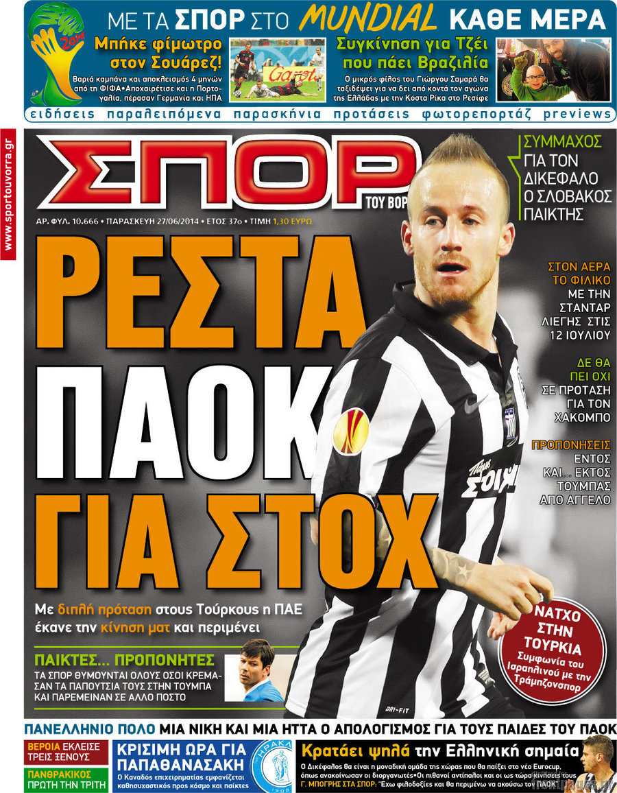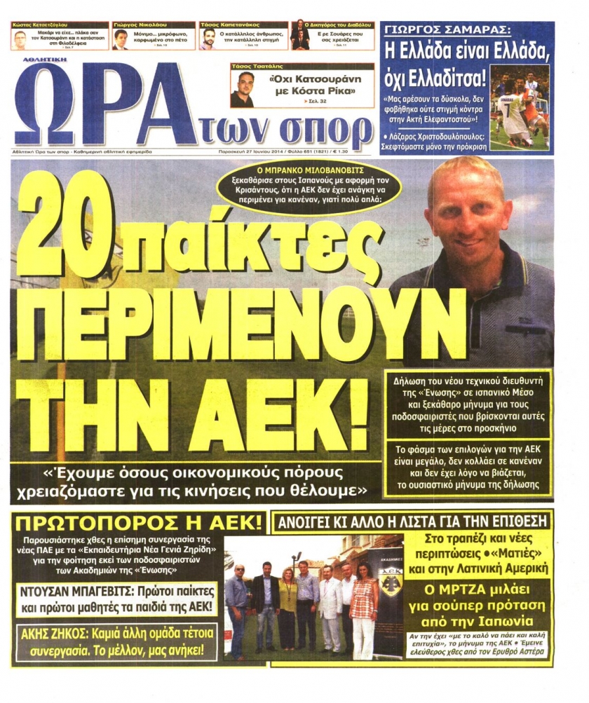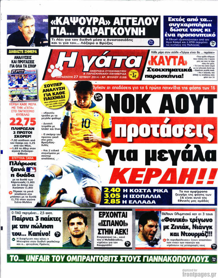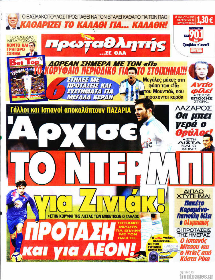 Οι αθλητικές εφημερίδες Enikos Newsroom 08:25, Παρασκευή 27 Ιουνίου 2014 Media Οι αθλητικές εφημερίδες Διαβάστε τα πρωτοσέλιδα των αθλητικών εφημερίδων: ΑΘΛΗΤΙΚΕΣ ΕΦΗΜΕΡΙΔΕΣ ΕΦΗΜΕΡΙΔΕΣ ΠΡΩΤΟΣΕΛΙΔΑ Μοιράσου το: σχολίασε κι εσύ (0 σχόλια) Ακολουθήστε το enikos.gr στο Google News και μάθετε πρώτοι όλες τις ειδήσεις Δείτε όλες τις τελευταίες ειδήσεις από την Ελλάδα και τον Κόσμο στο enikos.gr Ειδήσεις Ροή Ειδήσεων 5 λεπτά πριν Πώς στήθηκε η επιχείρηση «Ίπαλλος» που οδήγησε στη σύλληψη του «Έλληνα Εσκομπάρ» – «Ο πόλεμος ενάντια στους εμπόρους ναρκωτικών θα συνεχιστεί» 2 ώρες πριν Πούτιν: «Ανοησίες» και «υστερίες» οι ισχυρισμοί της Ευρώπης για πιθανή σύγκρουση με τη Ρωσία – «Κάνουν πλύση εγκεφάλου» 3 ώρες πριν Αμοργός: «Θα προσπαθήσω να το κάνω κάθε μέρα» – Ποιος είναι ο αγρότης που έστησε μόνος του το πρώτο μπλόκο στο νησί 10 λεπτά πριν Κυψέλη: Στη φυλακή η 16χρονη που μαχαίρωσε συμμαθήτριά της 1 ώρα πριν Τραγωδία στην Αλεξανδρούπολη: Παιδάκι 3 ετών μεταφέρθηκε νεκρό από τη μητέρα του στο νοσοκομείο 16 λεπτά πριν Τα 3 ζώδια που θα δουν τη ζωή τους να αλλάζει ριζικά το 2026 – «Όλα γίνονται καλύτερα σταδιακά» 5 ώρες πριν «Δεν είχα κλάψει από τότε που διαγνώστηκα με καρκίνο, ώσπου ένα τηλεφώνημα με έκανε να λυγίσω» – Η συγκλονιστική εξομολόγηση ενός άνδρα 1 ώρα πριν Ο σπάνιος σεισμός που έλυσε τα χέρια των επιστημόνων – Αποκάλυψε ακριβώς όσα αναζητούσαν 7 ώρες πριν 20 χρόνια τα Χριστούγεννα ξεκινούν στα Public με μεγάλη ποικιλία σε δώρα! 5 λεπτά πριν Πώς στήθηκε η επιχείρηση «Ίπαλλος» που οδήγησε στη σύλληψη του «Έλληνα Εσκομπάρ» – «Ο πόλεμος ενάντια στους εμπόρους ναρκωτικών θα συνεχιστεί» 10 λεπτά πριν Κυψέλη: Στη φυλακή η 16χρονη που μαχαίρωσε συμμαθήτριά της 16 λεπτά πριν Τα 3 ζώδια που θα δουν τη ζωή τους να αλλάζει ριζικά το 2026 – «Όλα γίνονται καλύτερα σταδιακά» 19 λεπτά πριν Νέο επεισόδιο στην Εξεταστική ανάμεσα σε Κωνσταντοπούλου και Συρεγγέλα – Διακόπηκε προσωρινά η συνεδρίαση 26 λεπτά πριν Εξαφάνιση 33χρονου γιατρού στην Κρήτη: Για απάτη κατηγορείται ο ιδιωτικός ερευνητής που συνελήφθη ENIKOS NETWORK 5 πράγματα που αποφεύγει γαστρεντερολόγος για να μειώσει τον κίνδυνο καρκίνου του εντέρου Ανησυχητική αύξηση της υπέρτασης στα παιδιά – Πώς θα τα προστατέψουμε; Συντάξεις Ιανουαρίου 2026: Σε ποιους θα πιστωθούν την Πέμπτη τα χρήματα και τι αυξήσεις θα δοθούν – Δείτε αναλυτικά παραδεί... ΕΛΕΤΑΕΝ: Πόσα χρήματα θα δοθούν σε δήμους και νοικοκυριά από τις ΑΠΕ Σύγχρονος Νοστράδαμος: Προειδοποιεί για «μεγάλο γεγονός» τους επόμενους μήνες που θα συγκλονίσει τη Βρετανία και τον κόσμο Τεστ παρατηρητικότητας: Μπορείτε να βρείτε τις 3 διαφορές στις εικόνες με έναν πιγκουίνο σε 14 δευτερόλεπτα περισσότερα 12:35 , Τετάρτη 17 Δεκεμβρίου 2025 Μίρκα Παπακωνσταντίνου: «Δεν ήμουν αισιόδοξη για τα νούμερα – Είμαι ρεαλίστρια» Στα γυρίσματα του εορταστικού επεισοδίου της αγαπημένης σειράς “Το Σόι Σου”, βρέθηκε η κάμερα ... 12:12 , Τετάρτη 17 Δεκεμβρίου 2025 Ακούστε την εκπομπή του Νίκου Χατζηνικολάου 17/12/2025 Ακούστε την εκπομπή του Νίκου Χατζηνικολάου στον ραδιοφωνικό σταθμό RealFm 97,8, την Τετάρτη 1... 11:35 , Τετάρτη 17 Δεκεμβρίου 2025 Home Alone: Το σπίτι της ταινίας θα ανακαινιστεί – Επιστροφή στην αισθητική της δεκαετίας του ’90 Οι νέοι ιδιοκτήτες του πραγματικού σπιτιού που παρουσιάζεται στην κλασική ταινία του 1990 «Hom... 11:25 , Τετάρτη 17 Δεκεμβρίου 2025 Grand Hotel: Απόψε το τελευταίο επεισόδιο της χρονιάς – Όλα τα μυστικά μένουν εδ