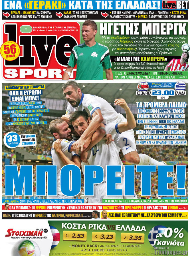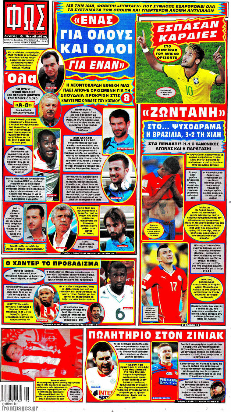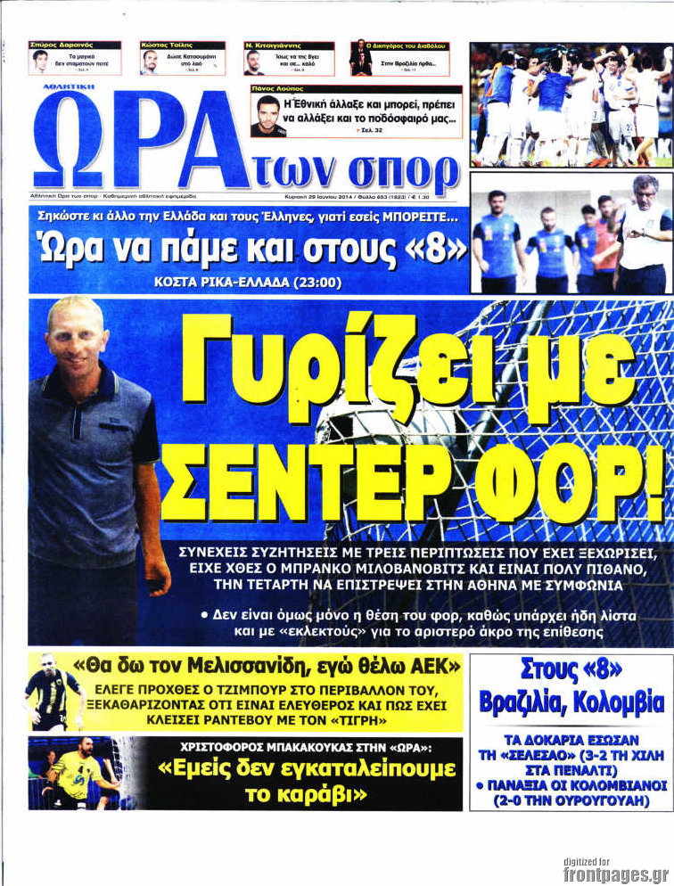 Οι αθλητικές εφημερίδες Enikos Newsroom 08:51, Κυριακή 29 Ιουνίου 2014 Media Οι αθλητικές εφημερίδες Διαβάστε τα πρωτοσέλιδα των αθλητικών εφημερίδων: ΑΘΛΗΤΙΚΕΣ ΕΦΗΜΕΡΙΔΕΣ ΠΡΩΤΟΣΕΛΙΔΑ Μοιράσου το: σχολίασε κι εσύ (0 σχόλια) Ακολουθήστε το enikos.gr στο Google News και μάθετε πρώτοι όλες τις ειδήσεις Δείτε όλες τις τελευταίες ειδήσεις από την Ελλάδα και τον Κόσμο στο enikos.gr Ειδήσεις Ροή Ειδήσεων 3 ώρες πριν Αυξάνουν την πίεση προς την κυβέρνηση οι αγρότες: Κλείνουν παρακαμπτήριους και ανοίγουν διόδια – Τι θα γίνει τις γιορτές 2 ώρες πριν ΟΠΕΚΕΠΕ: Προφυλακιστέος ο φερόμενος αρχηγός και ο λογιστής της εγκληματικής οργάνωσης 3 ώρες πριν Φοινικούντα: Το Σάββατο απολογείται ο 30χρονος γιος γνωστού επιχειρηματία της Πλάκας που παραδόθηκε – Όσα είπε στους αστυνομικούς και ο ρόλος του στο έγκλημα 3 ώρες πριν Μπορεί ο Μαδούρο να αντέξει τον αποκλεισμό του Τραμπ; Τι θα χρειαστεί η Ουάσινγκτον για να τον ανατρέψει 4 ώρες πριν Πρίγκιπας Ουίλιαμ – Κέιτ: Η νέα οικογενειακή φωτογραφία για τις Χριστουγεννιάτικες κάρτες του 2025 4 ώρες πριν Ύπνος: Η απλή βραδινή ρουτίνα για να προστατεύσετε τα μαλλιά σας από το κρύο κατά τη διάρκεια του χειμώνα 5 ώρες πριν Manifesting: Πώς να συναντήσετε τον σύντροφο της ζωής σας, ανάλογα με τον μήνα γέννησής σας 2 ημέρες πριν 20 χρόνια τα Χριστούγεννα ξεκινούν στα Public με μεγάλη ποικιλία σε δώρα! 3 ώρες πριν Αρχαιολόγοι ανακάλυψαν ρωμαϊκά τεχνουργήματα από μια πόλη που δεν υπήρξε ποτέ – Τα τρία εντυπωσιακά κτίρια και ο αμφορέας με τις… σαρδέλες 16 λεπτά πριν Μάρκο Νίκολιτς: «Είμαι περήφανος για τους παίκτες μου, όποιος αντίπαλος και να έρθει θα προετοιμαστούμε» 25 λεπτά πριν ΟΗΕ: Την εκλογή του νέου ύπατου αρμοστή για τους Πρόσφυγες Μπαρχάμ Άχμεντ Σαλίχ χαιρέτησε ο Αντόνιο Γκουτέρες 29 λεπτά πριν Σύνοδος Κορυφής στις Βρυξέλλες: Ακόμη πιο κοντά σε διέξοδο για τη χρηματοδότηση της Ουκρανίας 38 λεπτά πριν ΟΗΕ: Iστορική επίσκεψη του Συμβουλίου Ασφαλείας στη Δαμασκό – Mήνυμα Ελλάδας για συμπερίληψη και λογοδοσία 45 λεπτά πριν Νέος πρέσβης της Μεγάλης Βρετανίας στις ΗΠΑ ο Κρίστιαν Τέρνερ ENIKOS NETWORK Σε περίοδο αυξημένης δραστηριότητας η γρίπη στην Ελλάδα-Μέτρα προστασίας από τον ΕΟΔΥ Σκέφτεστε συνέχεια συζητήσεις που έχετε κάνει; Τι σημαίνει αυτό, σύμφωνα με ειδικό Στεγαστικό: Τι λέει η ΠΟΜΙΔΑ για τα νέα μέτρα που ανακοίνωσε ο Κυριάκος Μητσοτάκης Λαγκάρντ: Αισιόδοξη για την ανάπτυξη της Ευρωζώνης, αβέβαιη για τον πληθωρισμό Χαρτογραφώντας το «σημείο χωρίς επιστροφή»: Για πρώτη φορά αποκαλύπτεται με λεπτομέρεια το ακανθώδες όριο της ατμόσφαιρας τ... Η Google καταργεί τη λειτουργία «dark web report» – Πώς θα μπορούν οι χρήστες να διαγράφουν τα δεδομένα τους περισσότερα 17:45 , Πέμπτη 18 Δεκεμβρίου 2025 ROUK ZOUK: Εορταστικό επεισόδιο με καλεσμένους τους πρωταγωνιστές του «Γιατί ρε πατέρα» Το Σάββατο 20 Δεκεμβρίου στις 21:00, η Ζέτα Μακρυπούλια υποδέχεται εκλεκτούς ηθοποιούς που όλο... 17:20 , Πέμπτη 18 Δεκεμβρίου 2025 Άγιος έρωτας: Η Χριστίνα εξομολογείται στον πατέρα Νικόλαο, απόψε στις 21:00 στον Alpha Η Νότα αποφασίζει να εκδικηθεί τον Πέτρο και τον Στέφανο, για χάρη του Λούη, όμως τα πράγματα ... 16:50 , Πέμπτη 18 Δεκεμβρίου 2025 Να μ’ αγαπάς: Ζωή και Φωτεινή συμφιλιώνονται ως μάνα με κόρη, απόψε στις 20:00 Η ταυτότητα του Άγγελου αποκαλύπτεται στο νέο επεισόδιο της σειράς “Να μ’ αγαπάς... 15:52 , Πέμπτη 18 Δεκεμβρίου 2025 Το Σπίτι Δίπλα Στο Ποτάμι: Το καθηλωτικό τελευταίο επεισόδιο για το 2025 απόψε στις 22:30 Καθη
