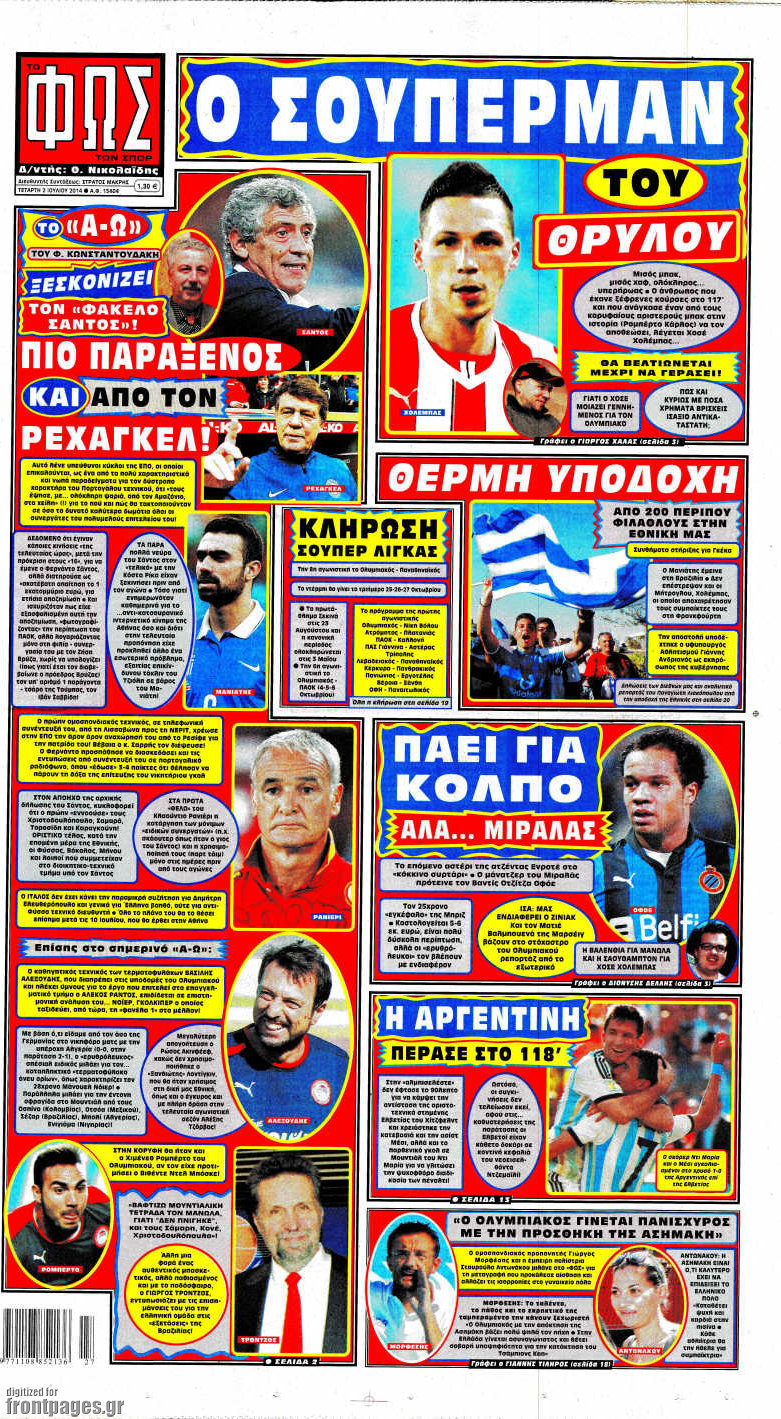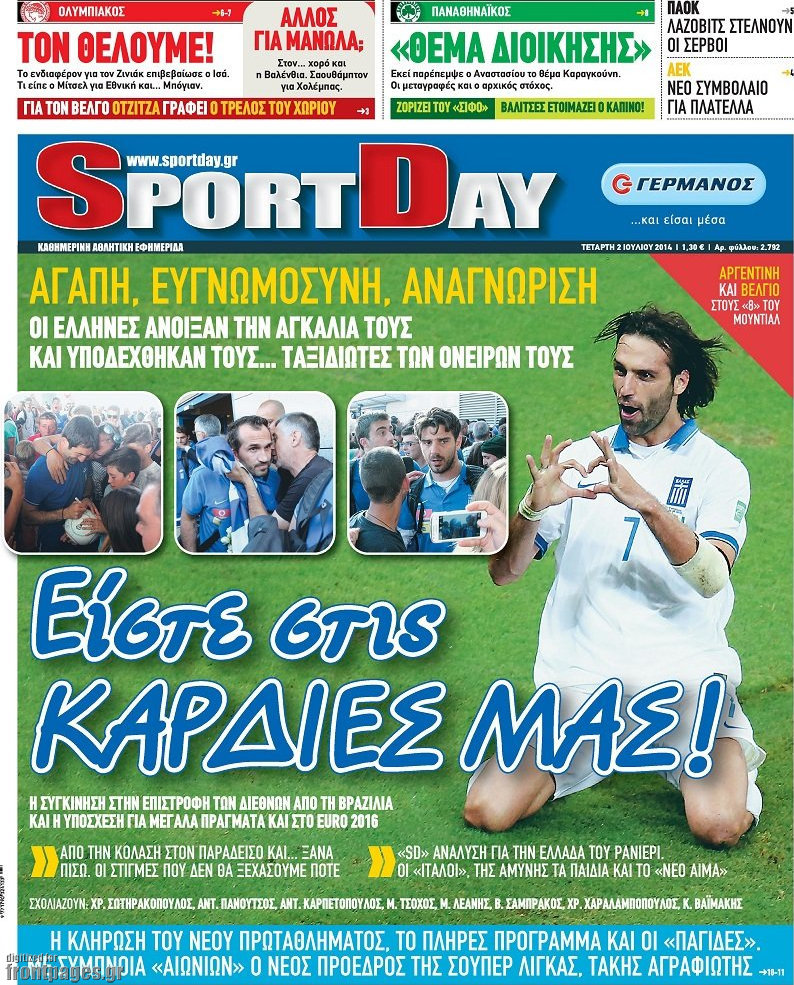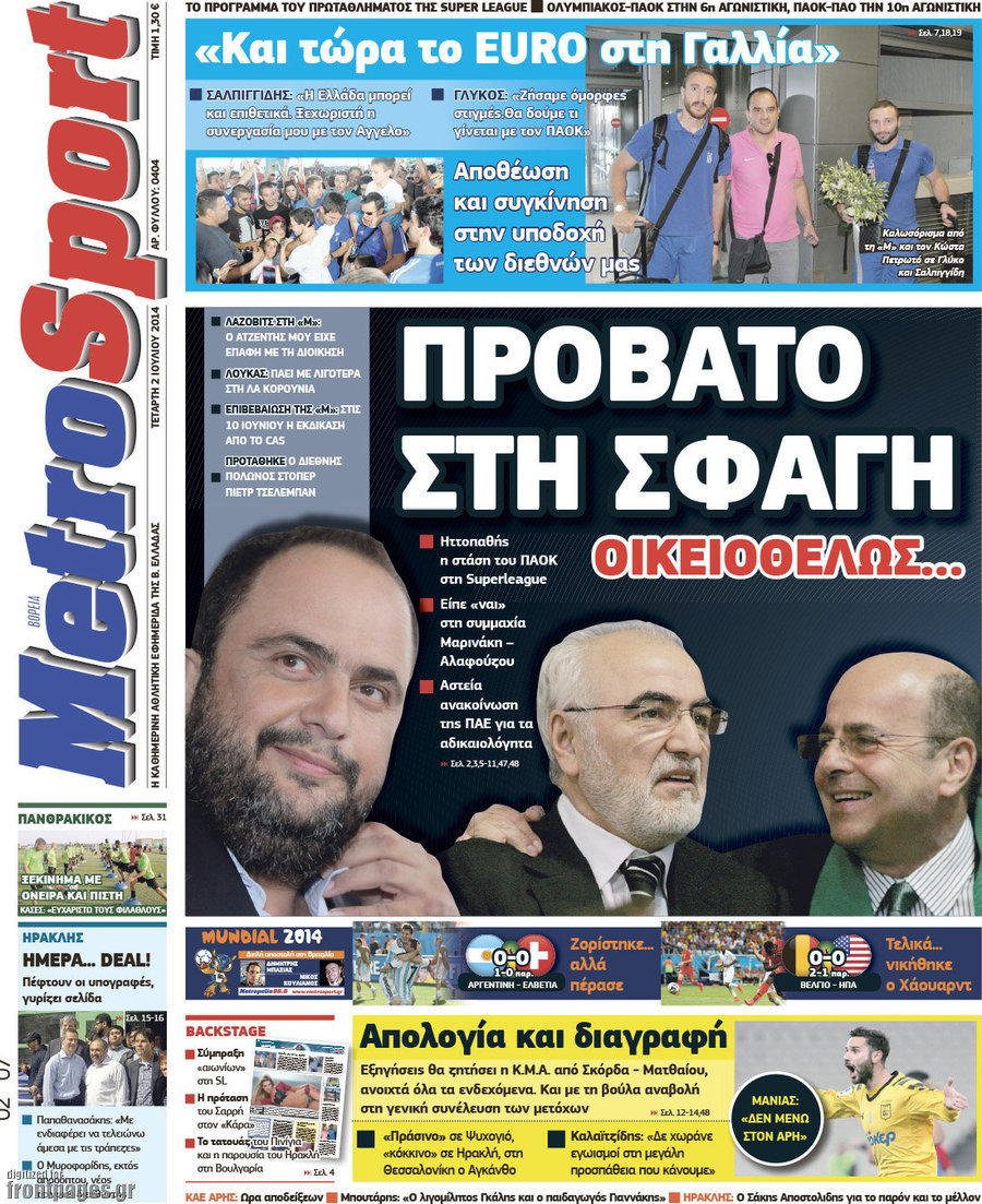 Οι αθλητικές εφημερίδες Enikos Newsroom 08:22, Τετάρτη 02 Ιουλίου 2014 Media Οι αθλητικές εφημερίδες Διαβάστε τα πρωτοσέλιδα των αθλητικών εφημερίδων: ΑΘΛΗΤΙΚΕΣ ΕΦΗΜΕΡΙΔΕΣ ΕΦΗΜΕΡΙΔΕΣ ΠΡΩΤΟΣΕΛΙΔΑ Μοιράσου το: σχολίασε κι εσύ (0 σχόλια) Ακολουθήστε το enikos.gr στο Google News και μάθετε πρώτοι όλες τις ειδήσεις Δείτε όλες τις τελευταίες ειδήσεις από την Ελλάδα και τον Κόσμο στο enikos.gr Ειδήσεις Ροή Ειδήσεων 17 λεπτά πριν ΣΥΡΙΖΑ: Διέγραψε τον ευρωβουλευτή Νίκο Παππά μετά την μήνυση δημοσιογράφου για ξυλοδαρμό 1 ώρα πριν Πώς στήθηκε η επιχείρηση «Ίπαλλος» που οδήγησε στη σύλληψη του «Έλληνα Εσκομπάρ» – «Ο πόλεμος ενάντια στους εμπόρους ναρκωτικών θα συνεχιστεί» 1 ώρα πριν Δίκη Χρυσής Αυγής: Την ενοχή και των 42 κατηγορουμένων ζητά η εισαγγελέας 1 ώρα πριν Κυψέλη: Στη φυλακή η 16χρονη που μαχαίρωσε συμμαθήτριά της 4 ώρες πριν Αμοργός: «Θα προσπαθήσω να το κάνω κάθε μέρα» – Ποιος είναι ο αγρότης που έστησε μόνος του το πρώτο μπλόκο στο νησί 1 ώρα πριν Τα 3 ζώδια που θα δουν τη ζωή τους να αλλάζει ριζικά το 2026 – «Όλα γίνονται καλύτερα σταδιακά» 6 ώρες πριν «Δεν είχα κλάψει από τότε που διαγνώστηκα με καρκίνο, ώσπου ένα τηλεφώνημα με έκανε να λυγίσω» – Η συγκλονιστική εξομολόγηση ενός άνδρα 2 ώρες πριν Ο σπάνιος σεισμός που έλυσε τα χέρια των επιστημόνων – Αποκάλυψε ακριβώς όσα αναζητούσαν 8 ώρες πριν 20 χρόνια τα Χριστούγεννα ξεκινούν στα Public με μεγάλη ποικιλία σε δώρα! 6 λεπτά πριν Ρόδος: Ανήλικος που βρισκόταν σε σχολική εκδρομή μεταφέρθηκε μεθυσμένος στο νοσοκομείο – 2 συλλήψεις 13 λεπτά πριν Γέννησε η Ευάννα Ζουμπούρογλου: «Είμαστε και οι δύο πολύ καλά – Είναι η πιο όμορφη όλου του κόσμου» 17 λεπτά πριν ΣΥΡΙΖΑ: Διέγραψε τον ευρωβουλευτή Νίκο Παππά μετά την μήνυση δημοσιογράφου για ξυλοδαρμό 19 λεπτά πριν Απολαυστικό «Ρουκ…Σουτ» με παίκτες του Παναθηναϊκού AKTOR – ΒΙΝΤΕΟ 23 λεπτά πριν Κουίζ για την παλιά Αθήνα: Αναγνωρίζετε την οδό; Είναι από τις πιο γνωστές ENIKOS NETWORK Γιατί αναζητούμε τα Χριστούγεννα όλο και νωρίτερα; Ποιοι οι ψυχολογικοί και οι συναισθηματικοί λόγοι Σοβαροί κίνδυνοι από τη λάθος χορήγηση φαρμάκου για τις αιμορραγίες-Συστάσεις προς τους γιατρούς Δάνεια σε ελβετικό φράγκο: Αύριο η κατάθεση της τροπολογίας στη Βουλή – Όλες οι λεπτομέρειες Επίδομα παιδιού: Πότε θα δοθεί η τελευταία δόση για το 2025 από τον ΟΠΕΚΑ και τι πρέπει να γνωρίζετε Χαρτογραφώντας το «σημείο χωρίς επιστροφή»: Για πρώτη φορά αποκαλύπτεται με λεπτομέρεια το ακανθώδες όριο της ατμόσφαιρας τ... Η Google καταργεί τη λειτουργία «dark web report» – Πώς θα μπορούν οι χρήστες να διαγράφουν τα δεδομένα τους περισσότερα 12:35 , Τετάρτη 17 Δεκεμβρίου 2025 Μίρκα Παπακωνσταντίνου: «Δεν ήμουν αισιόδοξη για τα νούμερα – Είμαι ρεαλίστρια» Στα γυρίσματα του εορταστικού επεισοδίου της αγαπημένης σειράς “Το Σόι Σου”, βρέθηκε η κάμερα ... 12:12 , Τετάρτη 17 Δεκεμβρίου 2025 Ακούστε την εκπομπή του Νίκου Χατζηνικολάου 17/12/2025 Ακούστε την εκπομπή του Νίκου Χατζηνικολάου στον ραδιοφωνικό σταθμό RealFm 97,8, την Τετάρτη 1... 11:35 , Τετάρτη 17 Δεκεμβρίου 2025 Home Alone: Το σπίτι της ταινίας θα ανακαινιστεί – Επιστροφή στην αισθητική της δεκαετίας του ’90 Οι νέοι ιδιοκτήτες του πραγματικού σπιτιού που παρουσιάζεται στην κλασική ταινία του 1990 «Hom... 11:25 , Τετάρτη 17 Δεκεμβρίου 2025 Grand Hotel: Απόψε το τελευταίο επεισόδιο της χρονιάς – Όλα τα μυστικά μένουν εδώ Το τελευταίο επεισόδιο της χρονιάς της σειράς «Grand Hotel» θα προβληθεί απόψε στις 21:00. Ο Ά... ΤΕΛΕΥΤΑΙΕΣ 