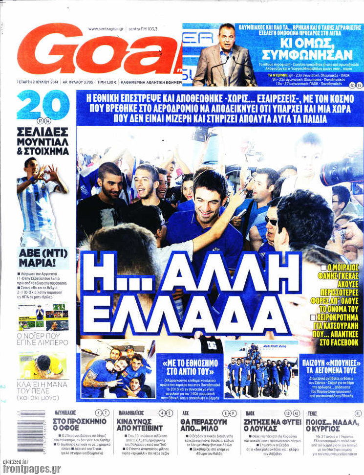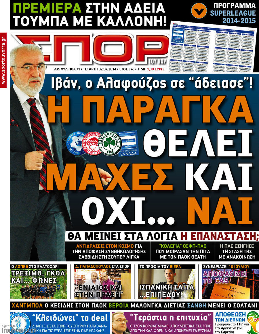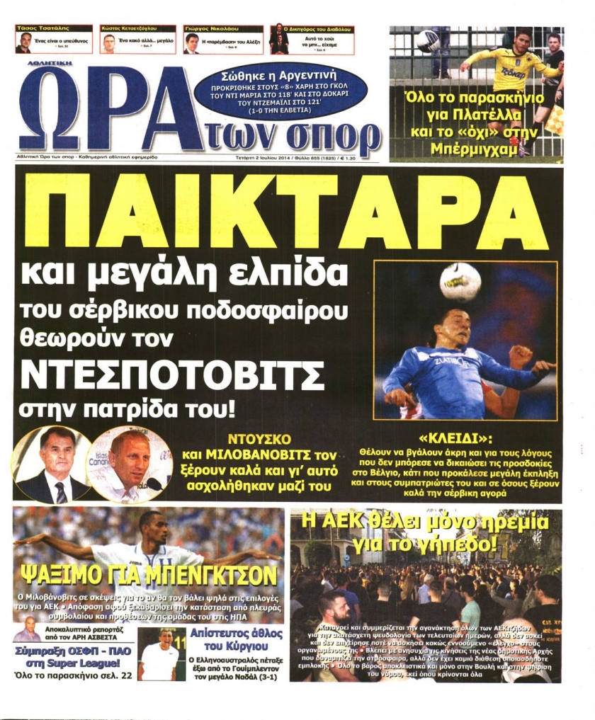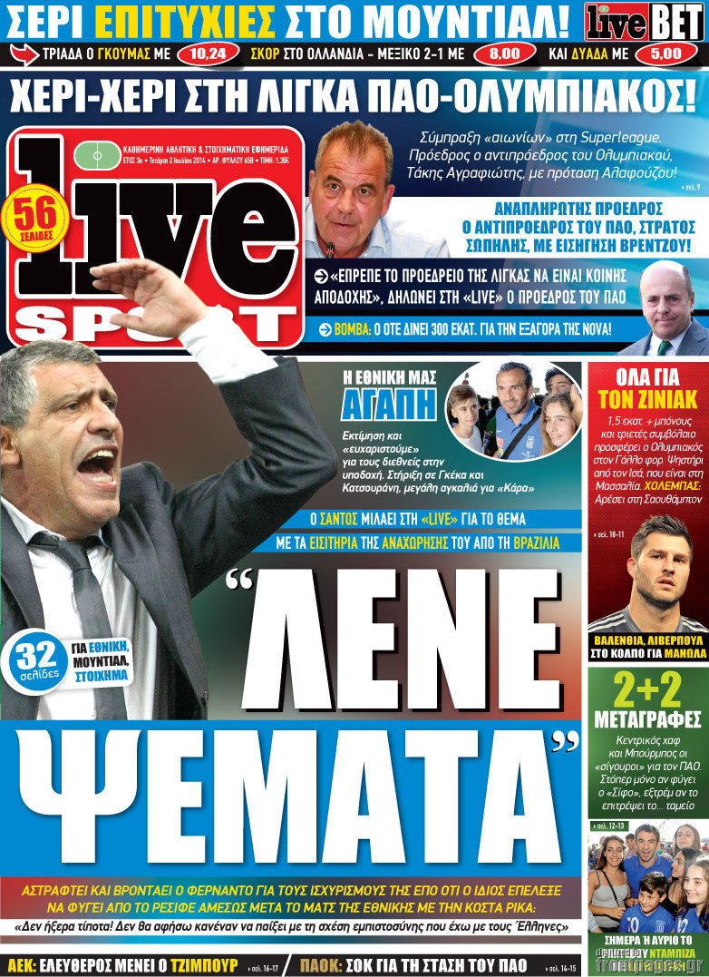 Οι αθλητικές εφημερίδες Enikos Newsroom 08:22, Τετάρτη 02 Ιουλίου 2014 Media Οι αθλητικές εφημερίδες Διαβάστε τα πρωτοσέλιδα των αθλητικών εφημερίδων: ΑΘΛΗΤΙΚΕΣ ΕΦΗΜΕΡΙΔΕΣ ΕΦΗΜΕΡΙΔΕΣ ΠΡΩΤΟΣΕΛΙΔΑ Μοιράσου το: σχολίασε κι εσύ (0 σχόλια) Ακολουθήστε το enikos.gr στο Google News και μάθετε πρώτοι όλες τις ειδήσεις Δείτε όλες τις τελευταίες ειδήσεις από την Ελλάδα και τον Κόσμο στο enikos.gr Ειδήσεις Ροή Ειδήσεων 17 λεπτά πριν ΣΥΡΙΖΑ: Διέγραψε τον ευρωβουλευτή Νίκο Παππά μετά την μήνυση δημοσιογράφου για ξυλοδαρμό 1 ώρα πριν Πώς στήθηκε η επιχείρηση «Ίπαλλος» που οδήγησε στη σύλληψη του «Έλληνα Εσκομπάρ» – «Ο πόλεμος ενάντια στους εμπόρους ναρκωτικών θα συνεχιστεί» 1 ώρα πριν Δίκη Χρυσής Αυγής: Την ενοχή και των 42 κατηγορουμένων ζητά η εισαγγελέας 1 ώρα πριν Κυψέλη: Στη φυλακή η 16χρονη που μαχαίρωσε συμμαθήτριά της 4 ώρες πριν Αμοργός: «Θα προσπαθήσω να το κάνω κάθε μέρα» – Ποιος είναι ο αγρότης που έστησε μόνος του το πρώτο μπλόκο στο νησί 1 ώρα πριν Τα 3 ζώδια που θα δουν τη ζωή τους να αλλάζει ριζικά το 2026 – «Όλα γίνονται καλύτερα σταδιακά» 6 ώρες πριν «Δεν είχα κλάψει από τότε που διαγνώστηκα με καρκίνο, ώσπου ένα τηλεφώνημα με έκανε να λυγίσω» – Η συγκλονιστική εξομολόγηση ενός άνδρα 2 ώρες πριν Ο σπάνιος σεισμός που έλυσε τα χέρια των επιστημόνων – Αποκάλυψε ακριβώς όσα αναζητούσαν 8 ώρες πριν 20 χρόνια τα Χριστούγεννα ξεκινούν στα Public με μεγάλη ποικιλία σε δώρα! 6 λεπτά πριν Ρόδος: Ανήλικος που βρισκόταν σε σχολική εκδρομή μεταφέρθηκε μεθυσμένος στο νοσοκομείο – 2 συλλήψεις 13 λεπτά πριν Γέννησε η Ευάννα Ζουμπούρογλου: «Είμαστε και οι δύο πολύ καλά – Είναι η πιο όμορφη όλου του κόσμου» 17 λεπτά πριν ΣΥΡΙΖΑ: Διέγραψε τον ευρωβουλευτή Νίκο Παππά μετά την μήνυση δημοσιογράφου για ξυλοδαρμό 19 λεπτά πριν Απολαυστικό «Ρουκ…Σουτ» με παίκτες του Παναθηναϊκού AKTOR – ΒΙΝΤΕΟ 23 λεπτά πριν Κουίζ για την παλιά Αθήνα: Αναγνωρίζετε την οδό; Είναι από τις πιο γνωστές ENIKOS NETWORK Γιατί αναζητούμε τα Χριστούγεννα όλο και νωρίτερα; Ποιοι οι ψυχολογικοί και οι συναισθηματικοί λόγοι Σοβαροί κίνδυνοι από τη λάθος χορήγηση φαρμάκου για τις αιμορραγίες-Συστάσεις προς τους γιατρούς Δάνεια σε ελβετικό φράγκο: Αύριο η κατάθεση της τροπολογίας στη Βουλή – Όλες οι λεπτομέρειες Επίδομα παιδιού: Πότε θα δοθεί η τελευταία δόση για το 2025 από τον ΟΠΕΚΑ και τι πρέπει να γνωρίζετε Χαρτογραφώντας το «σημείο χωρίς επιστροφή»: Για πρώτη φορά αποκαλύπτεται με λεπτομέρεια το ακανθώδες όριο της ατμόσφαιρας τ... Η Google καταργεί τη λειτουργία «dark web report» – Πώς θα μπορούν οι χρήστες να διαγράφουν τα δεδομένα τους περισσότερα 12:35 , Τετάρτη 17 Δεκεμβρίου 2025 Μίρκα Παπακωνσταντίνου: «Δεν ήμουν αισιόδοξη για τα νούμερα – Είμαι ρεαλίστρια» Στα γυρίσματα του εορταστικού επεισοδίου της αγαπημένης σειράς “Το Σόι Σου”, βρέθηκε η κάμερα ... 12:12 , Τετάρτη 17 Δεκεμβρίου 2025 Ακούστε την εκπομπή του Νίκου Χατζηνικολάου 17/12/2025 Ακούστε την εκπομπή του Νίκου Χατζηνικολάου στον ραδιοφωνικό σταθμό RealFm 97,8, την Τετάρτη 1... 11:35 , Τετάρτη 17 Δεκεμβρίου 2025 Home Alone: Το σπίτι της ταινίας θα ανακαινιστεί – Επιστροφή στην αισθητική της δεκαετίας του ’90 Οι νέοι ιδιοκτήτες του πραγματικού σπιτιού που παρουσιάζεται στην κλασική ταινία του 1990 «Hom... 11:25 , Τετάρτη 17 Δεκεμβρίου 2025 Grand Hotel: Απόψε το τελευταίο επεισόδιο της χρονιάς – Όλα τα μυστικά μένουν εδώ Το τελευταίο επεισόδιο της χρονιάς της σειράς «Grand Hotel» θα προβληθεί απόψε στις 21:00. Ο Ά... ΤΕΛΕΥΤΑΙΕΣ 