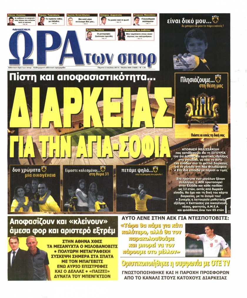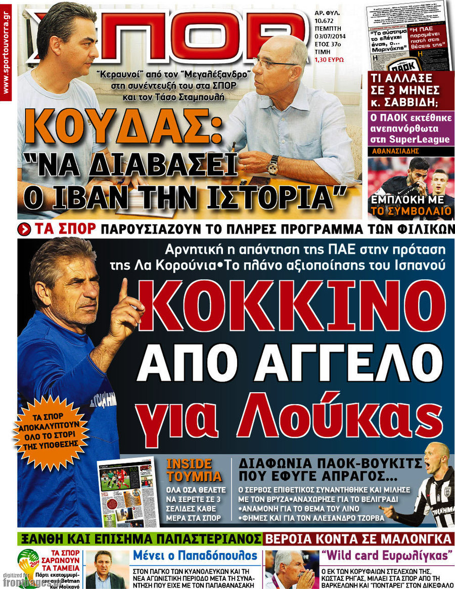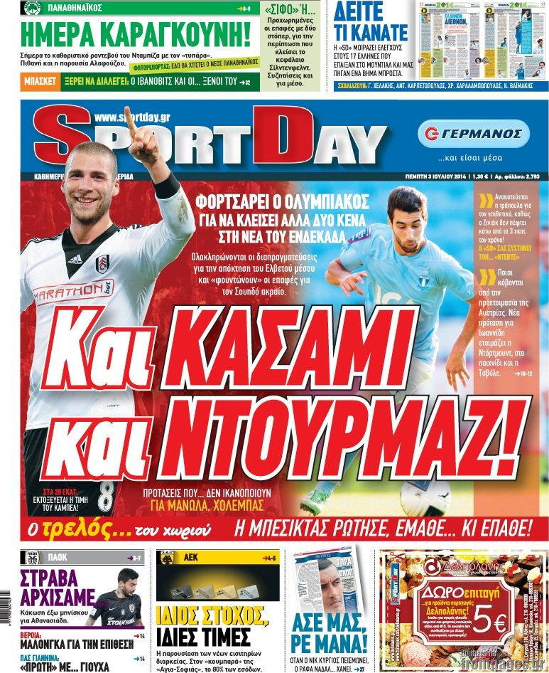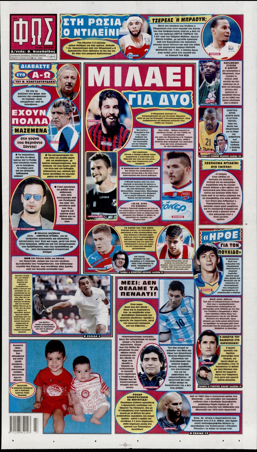 Οι αθλητικές εφημερίδες Enikos Newsroom 08:15, Πέμπτη 03 Ιουλίου 2014 Media Οι αθλητικές εφημερίδες Διαβάστε τα πρωτοσέλιδα των αθλητικών εφημερίδων: ΑΘΛΗΤΙΚΕΣ ΕΦΗΜΕΡΙΔΕΣ ΕΦΗΜΕΡΙΔΕΣ ΠΡΩΤΟΣΕΛΙΔΑ Μοιράσου το: σχολίασε κι εσύ (0 σχόλια) Ακολουθήστε το enikos.gr στο Google News και μάθετε πρώτοι όλες τις ειδήσεις Δείτε όλες τις τελευταίες ειδήσεις από την Ελλάδα και τον Κόσμο στο enikos.gr Ειδήσεις Ροή Ειδήσεων 2 ώρες πριν Αυξάνουν την πίεση προς την κυβέρνηση οι αγρότες: Κλείνουν παρακαμπτήριους και ανοίγουν διόδια – Τι θα γίνει τις γιορτές 50 λεπτά πριν ΟΠΕΚΕΠΕ: Προφυλακιστέος ο φερόμενος αρχηγός και ο λογιστής της εγκληματικής οργάνωσης 2 ώρες πριν Φοινικούντα: Το Σάββατο απολογείται ο 30χρονος γιος γνωστού επιχειρηματία της Πλάκας που παραδόθηκε – Όσα είπε στους αστυνομικούς και ο ρόλος του στο έγκλημα 2 ώρες πριν Μπορεί ο Μαδούρο να αντέξει τον αποκλεισμό του Τραμπ; Τι θα χρειαστεί η Ουάσινγκτον για να τον ανατρέψει 3 ώρες πριν Πρίγκιπας Ουίλιαμ – Κέιτ: Η νέα οικογενειακή φωτογραφία για τις Χριστουγεννιάτικες κάρτες του 2025 3 ώρες πριν Ύπνος: Η απλή βραδινή ρουτίνα για να προστατεύσετε τα μαλλιά σας από το κρύο κατά τη διάρκεια του χειμώνα 4 ώρες πριν Manifesting: Πώς να συναντήσετε τον σύντροφο της ζωής σας, ανάλογα με τον μήνα γέννησής σας 2 ημέρες πριν 20 χρόνια τα Χριστούγεννα ξεκινούν στα Public με μεγάλη ποικιλία σε δώρα! 2 ώρες πριν Αρχαιολόγοι ανακάλυψαν ρωμαϊκά τεχνουργήματα από μια πόλη που δεν υπήρξε ποτέ – Τα τρία εντυπωσιακά κτίρια και ο αμφορέας με τις… σαρδέλες 30 λεπτά πριν ΑΕΚ – Κραϊόβα 3-2: Επική ανατροπή και πρόκριση στους «16» του Conference League η Ένωση 50 λεπτά πριν ΟΠΕΚΕΠΕ: Προφυλακιστέος ο φερόμενος αρχηγός και ο λογιστής της εγκληματικής οργάνωσης 60 λεπτά πριν Αθηνά Μαξίμου: Η τρυφερή ανάρτηση για τα γενέθλια του Αιμίλιου Χειλάκη – «Είναι η εκλεκτική συγγένειά μου, η επιλογή και η ευθύνη μου» 1 ώρα πριν Παναθηναϊκός – Χάποελ Τελ Αβίβ 93-82: Με… φόρα από την Κωνσταντινούπολη 2 ώρες πριν Μπορεί ο Μαδούρο να αντέξει τον αποκλεισμό του Τραμπ; Τι θα χρειαστεί η Ουάσινγκτον για να τον ανατρέψει ENIKOS NETWORK Σε περίοδο αυξημένης δραστηριότητας η γρίπη στην Ελλάδα-Μέτρα προστασίας από τον ΕΟΔΥ Σκέφτεστε συνέχεια συζητήσεις που έχετε κάνει; Τι σημαίνει αυτό, σύμφωνα με ειδικό Στεγαστικό: Τι λέει η ΠΟΜΙΔΑ για τα νέα μέτρα που ανακοίνωσε ο Κυριάκος Μητσοτάκης Λαγκάρντ: Αισιόδοξη για την ανάπτυξη της Ευρωζώνης, αβέβαιη για τον πληθωρισμό Χαρτογραφώντας το «σημείο χωρίς επιστροφή»: Για πρώτη φορά αποκαλύπτεται με λεπτομέρεια το ακανθώδες όριο της ατμόσφαιρας τ... Η Google καταργεί τη λειτουργία «dark web report» – Πώς θα μπορούν οι χρήστες να διαγράφουν τα δεδομένα τους περισσότερα 17:45 , Πέμπτη 18 Δεκεμβρίου 2025 ROUK ZOUK: Εορταστικό επεισόδιο με καλεσμένους τους πρωταγωνιστές του «Γιατί ρε πατέρα» Το Σάββατο 20 Δεκεμβρίου στις 21:00, η Ζέτα Μακρυπούλια υποδέχεται εκλεκτούς ηθοποιούς που όλο... 17:20 , Πέμπτη 18 Δεκεμβρίου 2025 Άγιος έρωτας: Η Χριστίνα εξομολογείται στον πατέρα Νικόλαο, απόψε στις 21:00 στον Alpha Η Νότα αποφασίζει να εκδικηθεί τον Πέτρο και τον Στέφανο, για χάρη του Λούη, όμως τα πράγματα ... 16:50 , Πέμπτη 18 Δεκεμβρίου 2025 Να μ’ αγαπάς: Ζωή και Φωτεινή συμφιλιώνονται ως μάνα με κόρη, απόψε στις 20:00 Η ταυτότητα του Άγγελου αποκαλύπτεται στο νέο επεισόδιο της σειράς “Να μ’ αγαπάς... 15:52 , Πέμπτη 18 Δεκεμβρίου 2025 Το Σπίτι Δίπλα Στο Ποτάμι: Το καθηλωτικό τελευταίο επεισόδιο για το 2025 απόψε στις 22:30 Καθη