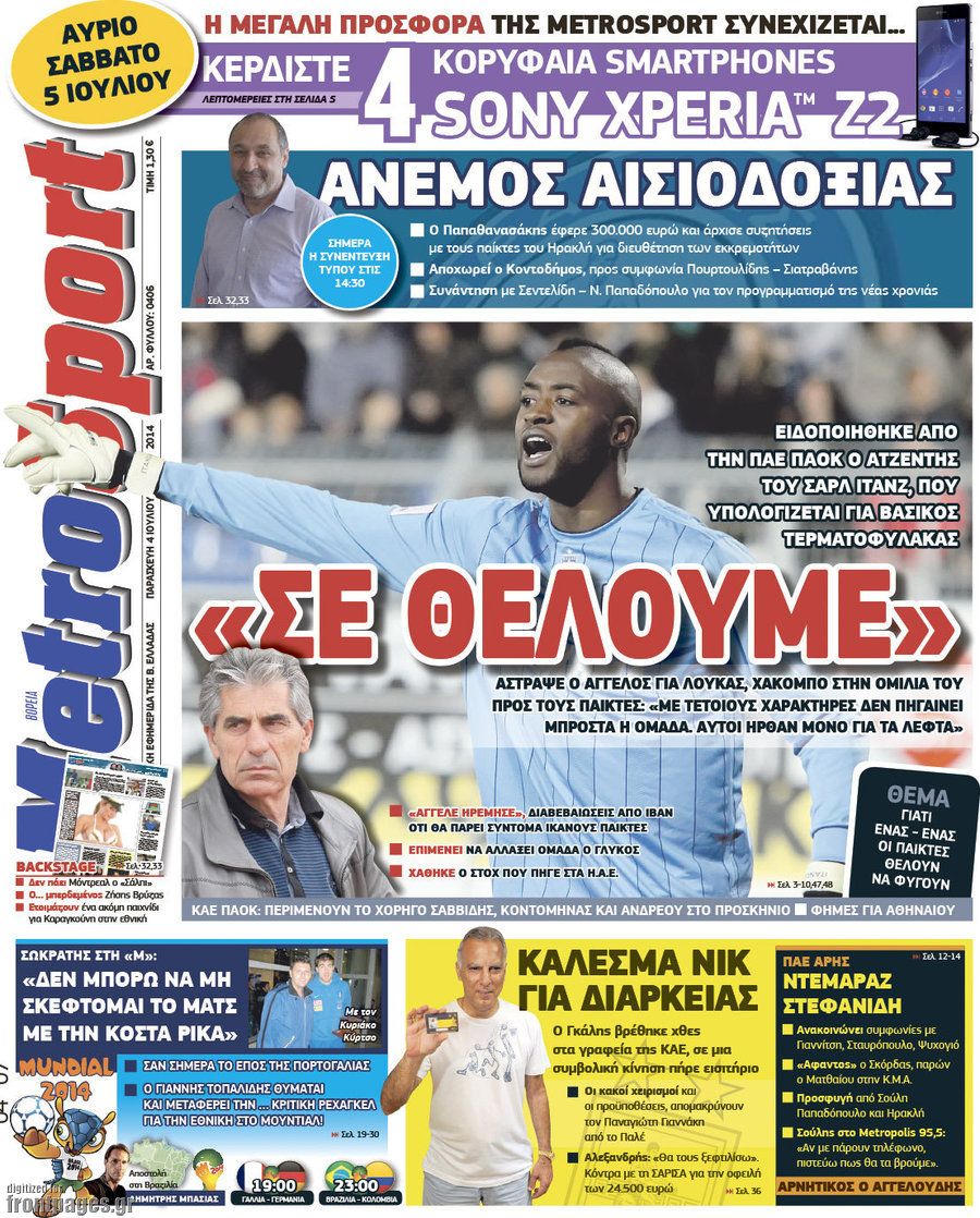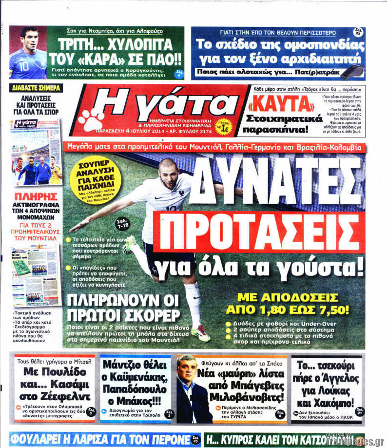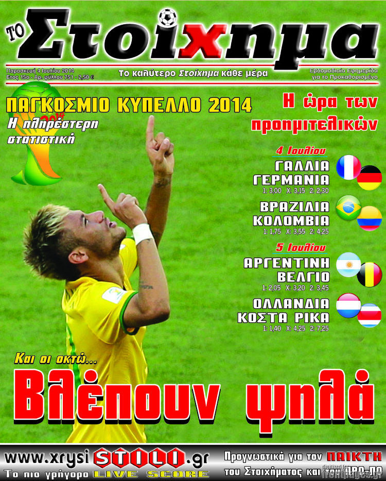 Οι αθλητικές εφημερίδες Enikos Newsroom 07:51, Παρασκευή 04 Ιουλίου 2014 Media Οι αθλητικές εφημερίδες Διαβάστε τα πρωτοσέλιδα των αθλητικών εφημερίδων: ΑΘΛΗΤΙΚΕΣ ΕΦΗΜΕΡΙΔΕΣ ΕΦΗΜΕΡΙΔΕΣ ΠΡΩΤΟΣΕΛΙΔΑ Μοιράσου το: σχολίασε κι εσύ (0 σχόλια) Ακολουθήστε το enikos.gr στο Google News και μάθετε πρώτοι όλες τις ειδήσεις Δείτε όλες τις τελευταίες ειδήσεις από την Ελλάδα και τον Κόσμο στο enikos.gr Ειδήσεις Ροή Ειδήσεων 2 ώρες πριν Χριστούγεννα στα μπλόκα: Επιμένουν στις κινητοποιήσεις τους οι αγρότες – Ανοίγουν τα διόδια το Σαββατοκύριακο 2 ώρες πριν Ουκρανία: Η άνευ προηγουμένου επίθεση σε ρωσικό τάνκερ στη Μεσόγειο και το μήνυμα προς στον Πούτιν – Το «μακρύ χέρι» του Κιέβου 1 ώρα πριν Πούτιν: Τα μηνύματα σε Ευρώπη και ΝΑΤΟ από το μαραθώνιο «σόου» του – Η απαίτηση για «σεβασμό» και η ειρήνη «με τους όρους» της Μόσχας 2 ώρες πριν Τραμπ: Δεν αποκλείει την πιθανότητα ενός πολέμου στη Βενεζουέλα – «Ο Μαδούρο ξέρει καλύτερα από τον καθένα τι ακριβώς θέλω» 3 ώρες πριν Συνεχίζει να προκαλεί ο Μίτσκοσκι: «Για μένα το όνομα Μακεδονία είναι ιερό» 1 ώρα πριν Ανακαλύφθηκαν αρχαία χρυσά νομίσματα 2.200 ετών που απεικονίζουν τον θεό Απόλλωνα – Η άγνωστη σύνδεση με τον Φίλιππο Β΄ της Μακεδονίας 2 ώρες πριν Ύπνος: Μια κρυφή κατάσταση του εγκεφάλου πριν από τον ύπνο μπορεί να είναι το “κλειδί” για υψηλή ευφυΐα και δημιουργικότητα 3 ώρες πριν Αριθμολογία: Οι άνθρωποι που έχουν γεννηθεί αυτές τις 4 ημερομηνίες, συχνά παρεξηγούνται – «Η καλοσύνη τους κρύβει τεράστια δύναμη» 4 ώρες πριν Ξεχάστε το καθάρισμα το Σαββατοκύριακο: Ο «κανόνας των 20 λεπτών» που θα σας λύσει τα χέρια 5 λεπτά πριν Βασίλης Σπανούλης: Δεν εμφανίστηκε ούτε ένας δημοσιογράφος στην συνέντευξη Τύπου – «Καλησπέρα στον… κανέναν», δείτε βίντεο 16 λεπτά πριν Πόλεμος στην Ουκρανία: Εφτά νεκροί από ρωσική πυραυλική επίθεση στο λιμάνι της Οδησσού 20 λεπτά πριν ΗΠΑ: Η κυβέρνηση του Ντόναλντ Τραμπ άρχισε να δημοσιοποιεί τα αρχεία Έπσταϊν 31 λεπτά πριν Σάμος: Άνοιξε το μπλόκο των αγροτών στον κόμβο Κοκκαρίου – Σε νέα συνεδρίαση θα καθορίσουν την στάση τους 40 λεπτά πριν Άνω Λιόσια: Πυροβολισμοί σε επιχείρηση με χαλιά – Εντοπίστηκαν 10 κάλυκες ENIKOS NETWORK Το ΕΚΑΒ τιμήθηκε από την Ακαδημία Αθηνών για τα 40 χρόνια προσφοράς του Έχετε πραγματικά μεγάλη καρδιά; 10 χαρακτηριστικά όσων έχουν καλοσύνη Αναστολή μέτρων αναγκαστικής εκτέλεσης για κτηνοτρόφους που πλήττονται από την ευλογιά των αιγοπροβάτων Πλήρης επάρκεια προϊόντων στις λαϊκές της Αττικής, παρά τις αγροτικές κινητοποιήσεις – Τι απαντούν οι πωλητές Χαρτογραφώντας το «σημείο χωρίς επιστροφή»: Για πρώτη φορά αποκαλύπτεται με λεπτομέρεια το ακανθώδες όριο της ατμόσφαιρας τ... Η Google καταργεί τη λειτουργία «dark web report» – Πώς θα μπορούν οι χρήστες να διαγράφουν τα δεδομένα τους περισσότερα 22:42 , Παρασκευή 19 Δεκεμβρίου 2025 Γιώργος Γιαννόπουλος για “Το σόι σου”: “Είναι ευτυχία και ευλογία αυτή η σειρά” «Είναι ευτυχία και ευλογία η συγκυρία αυτής της σειράς», θα πει ο Γιώργος Γιαννόπουλος -ο αγαπ... 20:37 , Παρασκευή 19 Δεκεμβρίου 2025 Don’t Forget The Lyrics: Η Έλλη Κοκκίνου υποδέχεται 4 παίκτες που θα κάνουν τα πάντα για να μη χάσουν ούτε… μισή λέξη από τους στίχους Το «Don’t Forget The Lyrics» επιστρέφει απόψε, Παρασκευή 19 Δεκεμβρίου, στις 21:00 με νέο επει... 19:31 , Παρασκευή 19 Δεκεμβρίου 2025 GNTM: Απόψε ο μεγάλος τελικός για τους 4 φιναλίστ Έπειτα από μήνες γεμάτους μόδα, δημιουργία και έντονες αναμετρήσεις, το GNTM 2025 κορυ