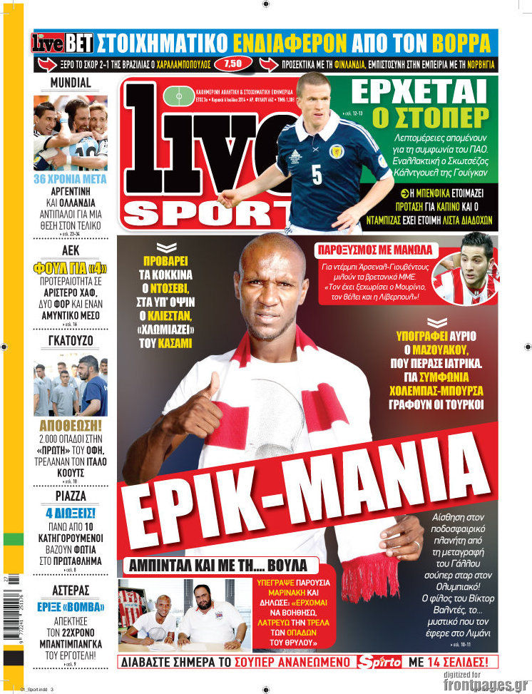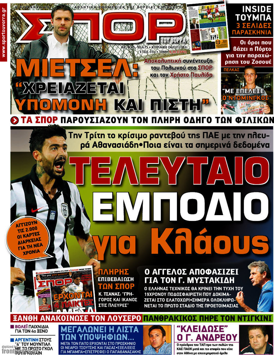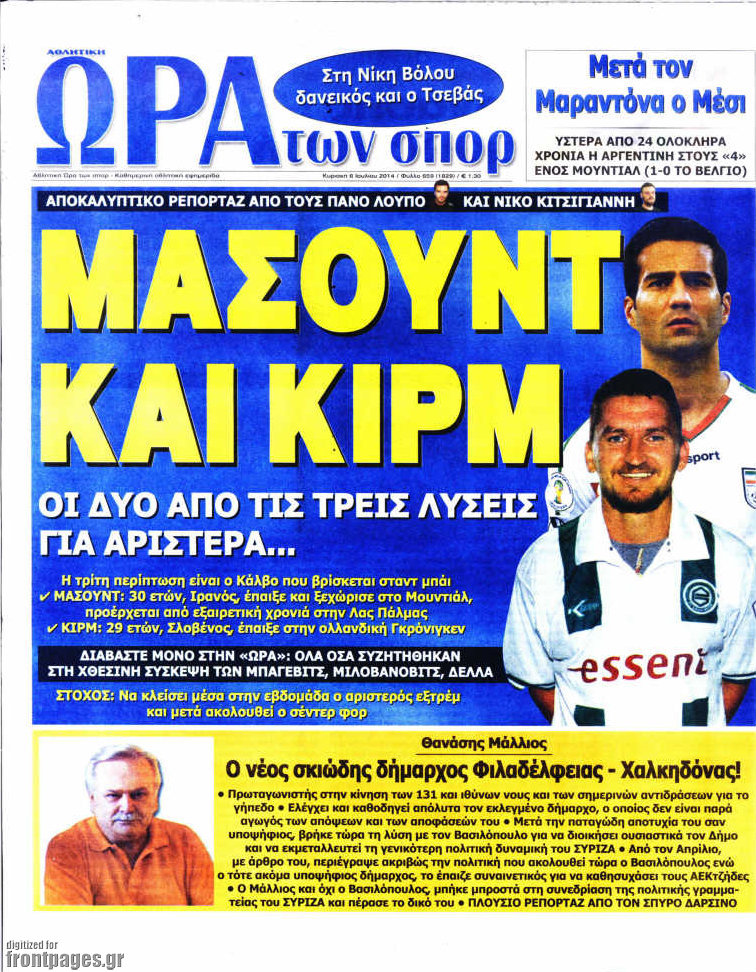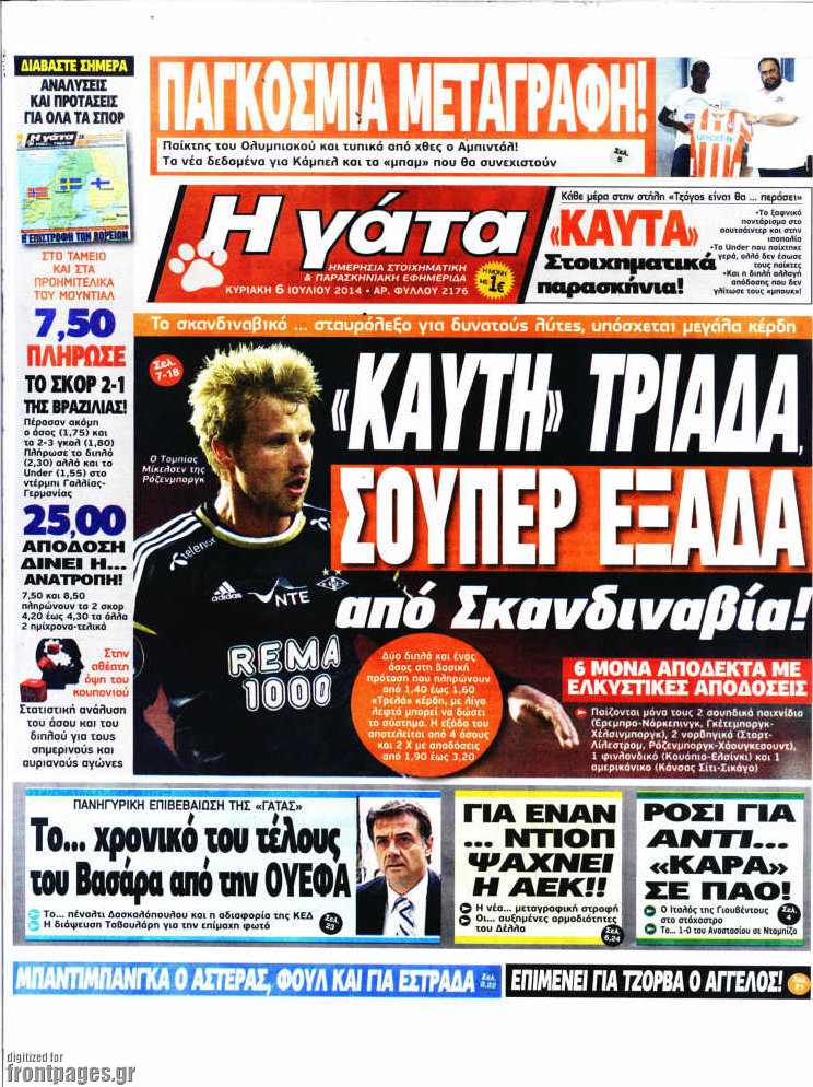 Οι αθλητικές εφημερίδες Enikos Newsroom 08:09, Κυριακή 06 Ιουλίου 2014 Media Οι αθλητικές εφημερίδες Διαβάστε τα πρωτοσέλιδα των αθλητικών εφημερίδων: ΑΘΛΗΤΙΚΕΣ ΕΦΗΜΕΡΙΔΕΣ ΕΦΗΜΕΡΙΔΕΣ ΠΡΩΤΟΣΕΛΙΔΑ Μοιράσου το: σχολίασε κι εσύ (0 σχόλια) Ακολουθήστε το enikos.gr στο Google News και μάθετε πρώτοι όλες τις ειδήσεις Δείτε όλες τις τελευταίες ειδήσεις από την Ελλάδα και τον Κόσμο στο enikos.gr Ειδήσεις Ροή Ειδήσεων 4 ώρες πριν Εκτός ευρωομάδας ΣΥΡΙΖΑ ο Νίκος Παππάς μετά την επίθεση στον δημοσιογράφο Νίκο Γιαννόπουλο – Η μήνυση και οι νέες δηλώσεις 4 ώρες πριν «Αγριεύουν» οι αγρότες: «Δεν συντρέχει λόγος συνάντησης με τον πρωθυπουργό» – Ώρα αποφάσεων στη σύσκεψη της Πέμπτης 4 ώρες πριν Κυψέλη: Χωρίς την οικογένειά της δίπλα της απολογήθηκε η 16χρονη – «Της είχε επιτεθεί κάποιος για να την βιάσει, φοβήθηκε και κυκλοφορούσε με μαχαίρι» 4 ώρες πριν Politico: Το πρόβλημα της Ευρώπης δεν είναι το Βέλγιο αλλά ο Ντόναλντ Τραμπ 5 ώρες πριν Αλεξανδρούπολη: Πολυοργανική ανεπάρκεια λόγω υποσιτισμού η αιτία θανάτου του 3χρονου αγοριού 4 ώρες πριν Μυστήριο με τεράστιες κυκλικές πέτρες 200 κιλών – Ανακαλύφθηκαν τυχαία κατά τη διάρκεια οδικών έργων και κανείς δεν ξέρει από πού προέρχονται 5 ώρες πριν Ύπνος: Ειδικός εξηγεί τον πραγματικό λόγο που ξυπνάτε στις 4 τα ξημερώματα – Ο ρόλος των ορμονών και του κιρκάδιου ρυθμού 6 ώρες πριν Αριθμολογία: Οι άνθρωποι που έχουν γεννηθεί αυτές τις 4 ημερομηνίες, είναι τρυφεροί και αγαπούν ανιδιοτελώς 18 ώρες πριν 20 χρόνια τα Χριστούγεννα ξεκινούν στα Public με μεγάλη ποικιλία σε δώρα! 16 λεπτά πριν Σουδάν: Επιδρομή drone σε χωριό του Νότιου Κορντοφάν – Οκτώ νεκροί 32 λεπτά πριν Αλ Τσαντίρι Νιουζ: Η κόρη της Πάολα στο κοινό – Η ατάκα Λαζόπουλου που την έκανε να «κοκκινήσει» 46 λεπτά πριν Ρωσία: Ουκρανικές δυνάμεις έπληξαν πλοίο στο λιμάνι του Ροστόφ – Αναφορές για θύματα 1 ώρα πριν Βρυξέλλες: Νυχτερινό… μπλόκο αγροτών μπροστά από το κτίριο της Ευρωπαϊκής Επιτροπής – Πάνω από 100 τρακτέρ απέκλεισαν την λεωφόρο 1 ώρα πριν Euroleague: Απρόσμενη ήττα για την Μονακό του Βασίλη Σπανούλη – Η βαθμολογία μετά το τέλος της 16ης αγωνιστικής ENIKOS NETWORK Αϋπνία: Το κόλπο που θα σας βοηθήσει να κοιμηθείτε απόψε – Είναι απλό και έχει αποτέλεσμα 2,6 εκατομμύρια πολίτες έχουν ήδη εμβολιαστεί κατά της γρίπης ΕΛΣΤΑΤ: Τι δείχνουν τα νέα στοιχεία για τις ηλεκτρονικές παραγγελίες των επιχειρήσεων ΚΕΠΕ: Οι 3 διακριτές συμβολές των ΜμΕ και της μεταποίησης στην ελληνική οικονομία Χαρτογραφώντας το «σημείο χωρίς επιστροφή»: Για πρώτη φορά αποκαλύπτεται με λεπτομέρεια το ακανθώδες όριο της ατμόσφαιρας τ... Η Google καταργεί τη λειτουργία «dark web report» – Πώς θα μπορούν οι χρήστες να διαγράφουν τα δεδομένα τους περισσότερα 02:30 , Πέμπτη 18 Δεκεμβρίου 2025 Αλ Τσαντίρι Νιουζ: Η κόρη της Πάολα στο κοινό – Η ατάκα Λαζόπουλου που την έκανε να «κοκκινήσει» Γιορτινή διάθεση και ευχάριστες στιγμές γέμισε η αποψινή, τελευταία για το 2025, εκπομπή του «... 22:24 , Τετάρτη 17 Δεκεμβρίου 2025 Το Σπίτι Δίπλα Στο Ποτάμι: Σε κίνδυνο η υγεία του Απόστολου – Τι θα δούμε απόψε “Το Σπίτι Δίπλα στο Ποτάμι” ξετυλίγει το νήμα της ζωής των πέντε αδελφών με καταισ... 21:14 , Τετάρτη 17 Δεκεμβρίου 2025 Παιχνίδια Εκδίκησης: Θα καταφέρει ο Χρήστος να κλονίσει την εμπιστοσύνη της Μάγιας απέναντι στον Άγη; Τα «Παιχνίδια Εκδίκησης» έρχονται απόψε στις 22:30, στον Αντ1, με το τελευταίο επεισόδιο της χ... 20:57 , Τετάρτη 17 Δεκεμβρίου 2025 Άγιος Έρωτας: Η Χλόη καταθέτει