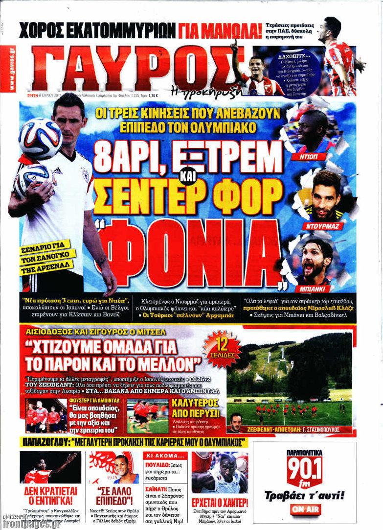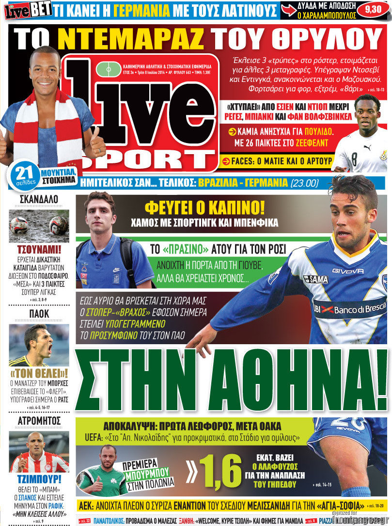 Οι αθλητικές εφημερίδες Enikos Newsroom 08:16, Τρίτη 08 Ιουλίου 2014 Media Οι αθλητικές εφημερίδες Διαβάστε τα πρωτοσέλιδα των αθλητικών εφημερίδων: ΑΘΛΗΤΙΚΕΣ ΕΦΗΜΕΡΙΔΕΣ ΕΦΗΜΕΡΙΔΕΣ ΠΡΩΤΟΣΕΛΙΔΑ Μοιράσου το: σχολίασε κι εσύ (0 σχόλια) Ακολουθήστε το enikos.gr στο Google News και μάθετε πρώτοι όλες τις ειδήσεις Δείτε όλες τις τελευταίες ειδήσεις από την Ελλάδα και τον Κόσμο στο enikos.gr Ειδήσεις Ροή Ειδήσεων 55 λεπτά πριν Νέα Πέραμος: Πού στρέφονται οι έρευνες των αρχών για το άγριο έγκλημα με θύμα τον 27χρονο επιχειρηματία – «Δεν είχε πειράξει κανέναν» λένε οι γονείς του 1 ώρα πριν Μητσοτάκης για τη συνταγματική αναθεώρηση: «Φιλοδοξία μου είναι το 2030 να έχουμε κλείσει όλες τις εκκρεμότητες με το πελατειακό κράτος» 47 λεπτά πριν Εξαφάνιση Λόρας: Ο πατέρας της ήταν αυτός που αποκάλυψε ότι ταξίδεψε στη Γερμανία – Το πρόσωπο-«κλειδί», η νέα μαρτυρία και οι «στοχευμένες» κινήσεις της ανήλικης 4 ώρες πριν Δημοσκόπηση Alco: Στις 13 μονάδες η διαφορά ΝΔ-ΠΑΣΟΚ – Πώς αξιολογούν οι πολίτες τις νέες πολιτικές κινήσεις; 24 λεπτά πριν The Washington Post: Τι έχουμε μάθει ως τώρα από τα νέα στοιχεία στην υπόθεση Επστάιν – «Η αλήθεια να φτάσει στο κόκκαλο» 3 ώρες πριν Ποιος είναι ο έρωτας της ζωή σας; Ανακαλύψτε την αδελφή-ψυχή σας με βάση τον μήνα γέννησή σας 5 ώρες πριν Λευκές περσίδες ξανά: Η απλή μέθοδος για να εξαφανίσετε την κιτρινίλα χωρίς τρίψιμο 1 ώρα πριν Ύπνος: Η βραδινή ρουτίνα που εγγυάται 8 ώρες ξεκούρασης, σύμφωνα με ειδικό 28 λεπτά πριν Ανακαλύφθηκε σπάνιο ψηφιδωτό από τη Βίλα των Αμαζόνων σε αρχαία ελληνιστική πόλη – Η εικονογραφία του Νείλου και η μυστηριώδης σκηνή με το άρμα 5 λεπτά πριν Ιατρική επανάσταση: Πραγματοποιήθηκε στην Ισπανία μεταμόσχευση προσώπου με δότρια γυναίκα που υποβλήθηκε σε ευθανασία 15 λεπτά πριν Συνταγματική Αναθεώρηση: Οι τέσσερις «πυλώνες» της – Σε τι αντιδρούν τα κόμματα 24 λεπτά πριν The Washington Post: Τι έχουμε μάθει ως τώρα από τα νέα στοιχεία στην υπόθεση Επστάιν – «Η αλήθεια να φτάσει στο κόκκαλο» 28 λεπτά πριν Ανακαλύφθηκε σπάνιο ψηφιδωτό από τη Βίλα των Αμαζόνων σε αρχαία ελληνιστική πόλη – Η εικονογραφία του Νείλου και η μυστηριώδης σκηνή με το άρμα 32 λεπτά πριν Ιαπωνία: Παίκτης του βόλεϊ χτύπησε κατά λάθος επόπτη, «βούτηξε» και υποκλίθηκε για να ζητήσει συγγνώμη – Τι είναι το Dogeza – ΒΙΝΤΕΟ ENIKOS NETWORK 5 πράγματα που κάνουν μαζί τα ευτυχισμένα ζευγάρια Δύο παιδιά με γρίπη στις ΜΕΘ – Συνεχίζεται η απειλή των εποχικών λοιμώξεων Επιθεώρηση Εργασίας: Αυξήθηκαν κατά 4% οι έλεγχοι το 2025 – Στα 53,4 εκατ. ευρώ τα πρόστιμα Τα ξενοδοχεία κατέθεσαν αγωγή κατά της Booking για παράνομες ρήτρες Ευπάθεια στο moltbook ai αποκαλύπτει email, tokens σύνδεσης και api keys Αυτός είναι ο ρόλος της μικρής τρύπας στους νυχοκόπτες – «Είμαι ο μόνος που δεν το ήξερε;»» περισσότερα 18:18 , Δευτέρα 02 Φεβρουαρίου 2026 Άγιος Έρωτας: Η μικρή Ελευθερία δεν θέλει τους νέους της γονείς και η Χλόη καταφεύγει στον πατέρα Νικόλαο Όσα θα δούμε απόψε στο νέο επεισόδιο της σειράς “Άγιος Έρωτας” στις 22:00 στον Alp... 18:07 , Δευτέρα 02 Φεβρουαρίου 2026 MasterChef 10: Το πρώτο Mystery Box έχει την παιχνιδιάρικη υπογραφή του Πάνου Ιωαννίδη Μετά τις πρώτες εβδομάδες και τις διαδικασίες, που προηγήθηκαν, 14 διαγωνιζόμενοι της πρώτης μ... 17:45 , Δευτέρα 02 Φεβρουαρίου 2026 Grand Hotel: Ο Πέτρος και η Αλίκη είναι και πάλι μαζί Καταιγιστικές οι εξελίξεις στο νέο διπλό επεισόδιο της σειράς “Grand Hotel” στις 2... 17:15 , Δευτέρα 02 Φεβρουαρίου 2026 Να μ’ αγαπάς: Η Φωτεινή ανακο