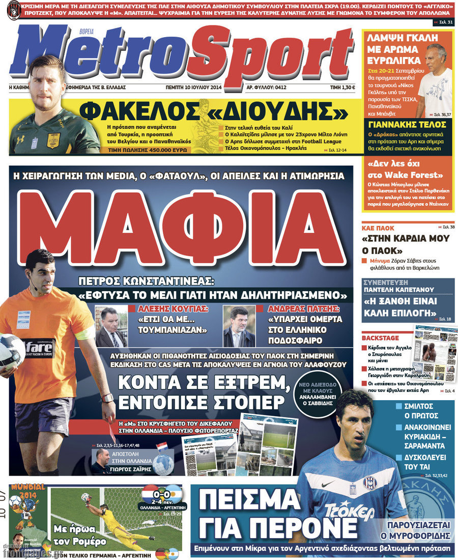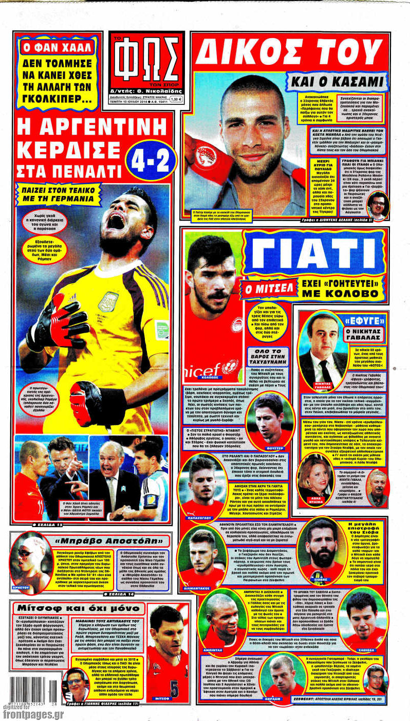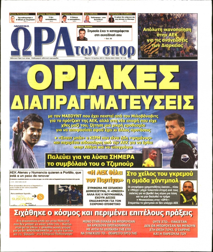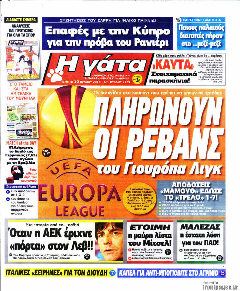 Οι αθλητικές εφημερίδες Enikos Newsroom 08:21, Πέμπτη 10 Ιουλίου 2014 Media Οι αθλητικές εφημερίδες Διαβάστε τα πρωτοσέλιδα των αθλητικών εφημερίδων: ΑΘΛΗΤΙΚΕΣ ΕΦΗΜΕΡΙΔΕΣ ΠΡΩΤΟΣΕΛΙΔΑ Μοιράσου το: σχολίασε κι εσύ (0 σχόλια) Ακολουθήστε το enikos.gr στο Google News και μάθετε πρώτοι όλες τις ειδήσεις Δείτε όλες τις τελευταίες ειδήσεις από την Ελλάδα και τον Κόσμο στο enikos.gr Ειδήσεις Ροή Ειδήσεων 3 ώρες πριν Χριστούγεννα στα μπλόκα: Επιμένουν στις κινητοποιήσεις τους οι αγρότες – Ανοίγουν τα διόδια το Σαββατοκύριακο 3 ώρες πριν Ουκρανία: Η άνευ προηγουμένου επίθεση σε ρωσικό τάνκερ στη Μεσόγειο και το μήνυμα προς στον Πούτιν – Το «μακρύ χέρι» του Κιέβου 2 ώρες πριν Πούτιν: Τα μηνύματα σε Ευρώπη και ΝΑΤΟ από το μαραθώνιο «σόου» του – Η απαίτηση για «σεβασμό» και η ειρήνη «με τους όρους» της Μόσχας 3 ώρες πριν Τραμπ: Δεν αποκλείει την πιθανότητα ενός πολέμου στη Βενεζουέλα – «Ο Μαδούρο ξέρει καλύτερα από τον καθένα τι ακριβώς θέλω» 4 ώρες πριν Συνεχίζει να προκαλεί ο Μίτσκοσκι: «Για μένα το όνομα Μακεδονία είναι ιερό» 2 ώρες πριν Ανακαλύφθηκαν αρχαία χρυσά νομίσματα 2.200 ετών που απεικονίζουν τον θεό Απόλλωνα – Η άγνωστη σύνδεση με τον Φίλιππο Β΄ της Μακεδονίας 3 ώρες πριν Ύπνος: Μια κρυφή κατάσταση του εγκεφάλου πριν από τον ύπνο μπορεί να είναι το “κλειδί” για υψηλή ευφυΐα και δημιουργικότητα 4 ώρες πριν Αριθμολογία: Οι άνθρωποι που έχουν γεννηθεί αυτές τις 4 ημερομηνίες, συχνά παρεξηγούνται – «Η καλοσύνη τους κρύβει τεράστια δύναμη» 5 ώρες πριν Ξεχάστε το καθάρισμα το Σαββατοκύριακο: Ο «κανόνας των 20 λεπτών» που θα σας λύσει τα χέρια 13 λεπτά πριν Ουκρανία: Ολοκληρώθηκαν οι συνομιλίες με τους Αμερικανούς κι Ευρωπαίους διαπραγματευτές 28 λεπτά πριν Μπαρτσελόνα – Μπασκόνια 134-124: Οι «μπλαουγκράνα» πήραν το ματς της χρονιάς ύστερα από τρεις παρατάσεις 43 λεπτά πριν Φαίη Σκορδά: «Παλιότερα τα κομπλιμέντα τα προσπερνούσα, τώρα τα έχω ανάγκη» 58 λεπτά πριν Βασίλης Σπανούλης: Δεν εμφανίστηκε ούτε ένας δημοσιογράφος στην συνέντευξη Τύπου – «Καλησπέρα στον… κανέναν», δείτε βίντεο 1 ώρα πριν Πόλεμος στην Ουκρανία: Εφτά νεκροί από ρωσική πυραυλική επίθεση στο λιμάνι της Οδησσού ENIKOS NETWORK Το ΕΚΑΒ τιμήθηκε από την Ακαδημία Αθηνών για τα 40 χρόνια προσφοράς του Έχετε πραγματικά μεγάλη καρδιά; 10 χαρακτηριστικά όσων έχουν καλοσύνη Αναστολή μέτρων αναγκαστικής εκτέλεσης για κτηνοτρόφους που πλήττονται από την ευλογιά των αιγοπροβάτων Πλήρης επάρκεια προϊόντων στις λαϊκές της Αττικής, παρά τις αγροτικές κινητοποιήσεις – Τι απαντούν οι πωλητές Χαρτογραφώντας το «σημείο χωρίς επιστροφή»: Για πρώτη φορά αποκαλύπτεται με λεπτομέρεια το ακανθώδες όριο της ατμόσφαιρας τ... Η Google καταργεί τη λειτουργία «dark web report» – Πώς θα μπορούν οι χρήστες να διαγράφουν τα δεδομένα τους περισσότερα 22:42 , Παρασκευή 19 Δεκεμβρίου 2025 Γιώργος Γιαννόπουλος για “Το σόι σου”: “Είναι ευτυχία και ευλογία αυτή η σειρά” «Είναι ευτυχία και ευλογία η συγκυρία αυτής της σειράς», θα πει ο Γιώργος Γιαννόπουλος -ο αγαπ... 20:37 , Παρασκευή 19 Δεκεμβρίου 2025 Don’t Forget The Lyrics: Η Έλλη Κοκκίνου υποδέχεται 4 παίκτες που θα κάνουν τα πάντα για να μη χάσουν ούτε… μισή λέξη από τους στίχους Το «Don’t Forget The Lyrics» επιστρέφει απόψε, Παρασκευή 19 Δεκεμβρίου, στις 21:00 με νέο επει... 19:31 , Παρασκευή 19 Δεκεμβρίου 2025 GNTM: Απόψε ο μεγάλος τελικός για τους 4 φιναλίστ Έπειτα από μήνες γεμάτους μόδα, δημιουργία και έντονες αναμετρήσεις, το GNTM 2025 κορυφών