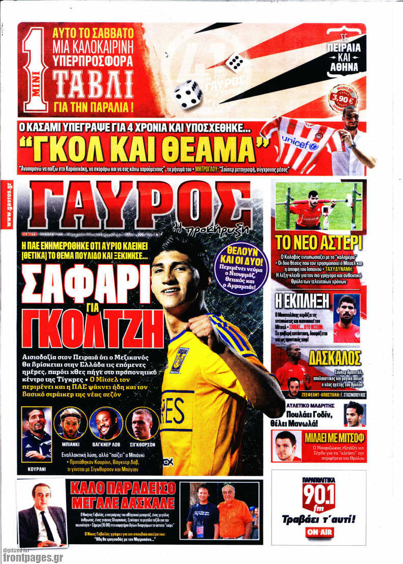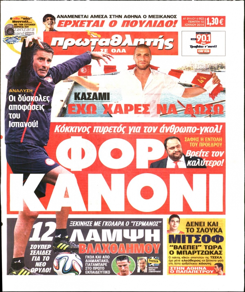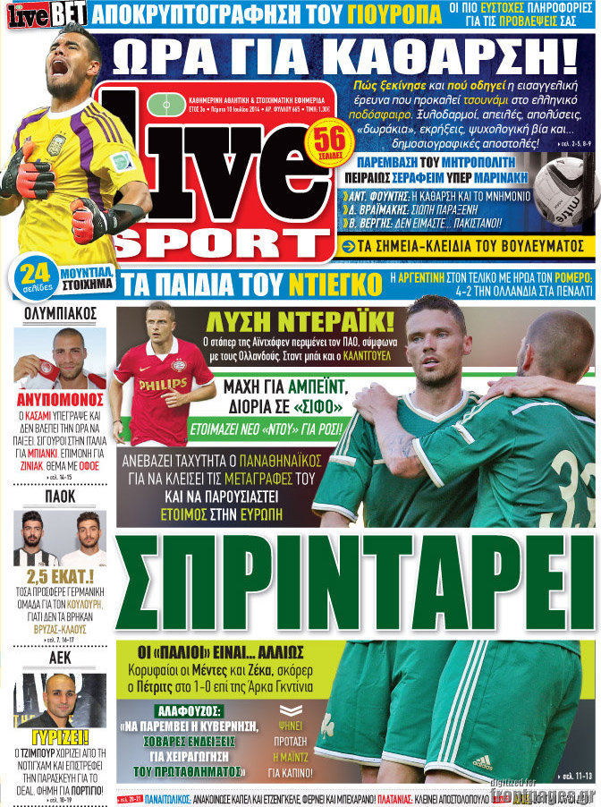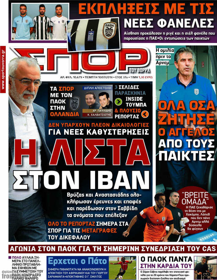 Οι αθλητικές εφημερίδες Enikos Newsroom 08:21, Πέμπτη 10 Ιουλίου 2014 Media Οι αθλητικές εφημερίδες Διαβάστε τα πρωτοσέλιδα των αθλητικών εφημερίδων: ΑΘΛΗΤΙΚΕΣ ΕΦΗΜΕΡΙΔΕΣ ΠΡΩΤΟΣΕΛΙΔΑ Μοιράσου το: σχολίασε κι εσύ (0 σχόλια) Ακολουθήστε το enikos.gr στο Google News και μάθετε πρώτοι όλες τις ειδήσεις Δείτε όλες τις τελευταίες ειδήσεις από την Ελλάδα και τον Κόσμο στο enikos.gr Ειδήσεις Ροή Ειδήσεων 3 ώρες πριν Χριστούγεννα στα μπλόκα: Επιμένουν στις κινητοποιήσεις τους οι αγρότες – Ανοίγουν τα διόδια το Σαββατοκύριακο 3 ώρες πριν Ουκρανία: Η άνευ προηγουμένου επίθεση σε ρωσικό τάνκερ στη Μεσόγειο και το μήνυμα προς στον Πούτιν – Το «μακρύ χέρι» του Κιέβου 2 ώρες πριν Πούτιν: Τα μηνύματα σε Ευρώπη και ΝΑΤΟ από το μαραθώνιο «σόου» του – Η απαίτηση για «σεβασμό» και η ειρήνη «με τους όρους» της Μόσχας 3 ώρες πριν Τραμπ: Δεν αποκλείει την πιθανότητα ενός πολέμου στη Βενεζουέλα – «Ο Μαδούρο ξέρει καλύτερα από τον καθένα τι ακριβώς θέλω» 4 ώρες πριν Συνεχίζει να προκαλεί ο Μίτσκοσκι: «Για μένα το όνομα Μακεδονία είναι ιερό» 2 ώρες πριν Ανακαλύφθηκαν αρχαία χρυσά νομίσματα 2.200 ετών που απεικονίζουν τον θεό Απόλλωνα – Η άγνωστη σύνδεση με τον Φίλιππο Β΄ της Μακεδονίας 3 ώρες πριν Ύπνος: Μια κρυφή κατάσταση του εγκεφάλου πριν από τον ύπνο μπορεί να είναι το “κλειδί” για υψηλή ευφυΐα και δημιουργικότητα 4 ώρες πριν Αριθμολογία: Οι άνθρωποι που έχουν γεννηθεί αυτές τις 4 ημερομηνίες, συχνά παρεξηγούνται – «Η καλοσύνη τους κρύβει τεράστια δύναμη» 5 ώρες πριν Ξεχάστε το καθάρισμα το Σαββατοκύριακο: Ο «κανόνας των 20 λεπτών» που θα σας λύσει τα χέρια 13 λεπτά πριν Ουκρανία: Ολοκληρώθηκαν οι συνομιλίες με τους Αμερικανούς κι Ευρωπαίους διαπραγματευτές 28 λεπτά πριν Μπαρτσελόνα – Μπασκόνια 134-124: Οι «μπλαουγκράνα» πήραν το ματς της χρονιάς ύστερα από τρεις παρατάσεις 43 λεπτά πριν Φαίη Σκορδά: «Παλιότερα τα κομπλιμέντα τα προσπερνούσα, τώρα τα έχω ανάγκη» 58 λεπτά πριν Βασίλης Σπανούλης: Δεν εμφανίστηκε ούτε ένας δημοσιογράφος στην συνέντευξη Τύπου – «Καλησπέρα στον… κανέναν», δείτε βίντεο 1 ώρα πριν Πόλεμος στην Ουκρανία: Εφτά νεκροί από ρωσική πυραυλική επίθεση στο λιμάνι της Οδησσού ENIKOS NETWORK Το ΕΚΑΒ τιμήθηκε από την Ακαδημία Αθηνών για τα 40 χρόνια προσφοράς του Έχετε πραγματικά μεγάλη καρδιά; 10 χαρακτηριστικά όσων έχουν καλοσύνη Αναστολή μέτρων αναγκαστικής εκτέλεσης για κτηνοτρόφους που πλήττονται από την ευλογιά των αιγοπροβάτων Πλήρης επάρκεια προϊόντων στις λαϊκές της Αττικής, παρά τις αγροτικές κινητοποιήσεις – Τι απαντούν οι πωλητές Χαρτογραφώντας το «σημείο χωρίς επιστροφή»: Για πρώτη φορά αποκαλύπτεται με λεπτομέρεια το ακανθώδες όριο της ατμόσφαιρας τ... Η Google καταργεί τη λειτουργία «dark web report» – Πώς θα μπορούν οι χρήστες να διαγράφουν τα δεδομένα τους περισσότερα 22:42 , Παρασκευή 19 Δεκεμβρίου 2025 Γιώργος Γιαννόπουλος για “Το σόι σου”: “Είναι ευτυχία και ευλογία αυτή η σειρά” «Είναι ευτυχία και ευλογία η συγκυρία αυτής της σειράς», θα πει ο Γιώργος Γιαννόπουλος -ο αγαπ... 20:37 , Παρασκευή 19 Δεκεμβρίου 2025 Don’t Forget The Lyrics: Η Έλλη Κοκκίνου υποδέχεται 4 παίκτες που θα κάνουν τα πάντα για να μη χάσουν ούτε… μισή λέξη από τους στίχους Το «Don’t Forget The Lyrics» επιστρέφει απόψε, Παρασκευή 19 Δεκεμβρίου, στις 21:00 με νέο επει... 19:31 , Παρασκευή 19 Δεκεμβρίου 2025 GNTM: Απόψε ο μεγάλος τελικός για τους 4 φιναλίστ Έπειτα από μήνες γεμάτους μόδα, δημιουργία και έντονες αναμετρήσεις, το GNTM 2025 κορυφών