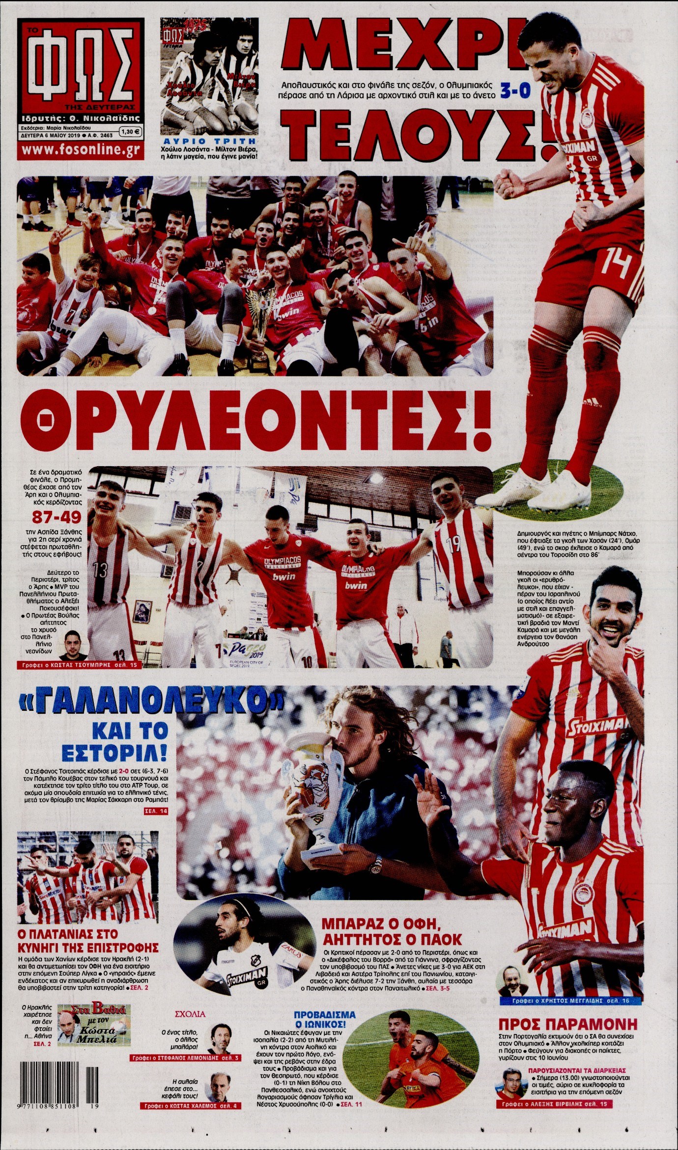 Οι αθλητικές εφημερίδες 6/5/19 Enikos Newsroom 06:48, Δευτέρα 06 Μαΐου 2019 Media Διαβάστε τα πρωτοσέλιδα των αθλητικών εφημερίδων: ΑΘΛΗΤΙΚΕΣ ΕΦΗΜΕΡΙΔΕΣ ΠΡΩΤΟΣΕΛΙΔΑ Μοιράσου το: σχολίασε κι εσύ (0 σχόλια) Ακολουθήστε το enikos.gr στο Google News και μάθετε πρώτοι όλες τις ειδήσεις Δείτε όλες τις τελευταίες ειδήσεις από την Ελλάδα και τον Κόσμο στο enikos.gr Ειδήσεις Ροή Ειδήσεων 8 ώρες πριν Χριστούγεννα στα μπλόκα: Επιμένουν στις κινητοποιήσεις τους οι αγρότες – Ανοίγουν τα διόδια το Σαββατοκύριακο 8 ώρες πριν Ουκρανία: Η άνευ προηγουμένου επίθεση σε ρωσικό τάνκερ στη Μεσόγειο και το μήνυμα προς στον Πούτιν – Το «μακρύ χέρι» του Κιέβου 7 ώρες πριν Πούτιν: Τα μηνύματα σε Ευρώπη και ΝΑΤΟ από το μαραθώνιο «σόου» του – Η απαίτηση για «σεβασμό» και η ειρήνη «με τους όρους» της Μόσχας 6 ώρες πριν ΗΠΑ: Η κυβέρνηση του Ντόναλντ Τραμπ άρχισε να δημοσιοποιεί τα αρχεία Έπσταϊν 7 ώρες πριν Άνω Λιόσια: Πυροβολισμοί σε επιχείρηση με χαλιά – Εντοπίστηκαν 10 κάλυκες 14 λεπτά πριν Αυγά: Πόσα μπορείτε να τρώτε την ημέρα με ασφάλεια για μέγιστη πρόσληψη πρωτεΐνης 44 λεπτά πριν Τα ζώδια σήμερα, Σάββατο 20 Δεκεμβρίου: Παρθένοι, το σύμπαν σας δίνει το κλειδί 7 ώρες πριν Ανακαλύφθηκαν αρχαία χρυσά νομίσματα 2.200 ετών που απεικονίζουν τον θεό Απόλλωνα – Η άγνωστη σύνδεση με τον Φίλιππο Β΄ της Μακεδονίας 8 ώρες πριν Ύπνος: Μια κρυφή κατάσταση του εγκεφάλου πριν από τον ύπνο μπορεί να είναι το “κλειδί” για υψηλή ευφυΐα και δημιουργικότητα 5 λεπτά πριν Σαρωτικοί οι έλεγχοι στους δρόμους ενόψει εορτών – Μπλόκα της τροχαίας σε κεντρικές αρτηρίες της Αττικής 14 λεπτά πριν Αυγά: Πόσα μπορείτε να τρώτε την ημέρα με ασφάλεια για μέγιστη πρόσληψη πρωτεΐνης 20 λεπτά πριν Σαν σήμερα 20 Δεκεμβρίου: Τα σημαντικότερα γεγονότα της ημέρας 25 λεπτά πριν Οι οικονομικές εφημερίδες 20/12/2025 31 λεπτά πριν Οι αθλητικές εφημερίδες 20/12/2025 ENIKOS NETWORK Το ΕΚΑΒ τιμήθηκε από την Ακαδημία Αθηνών για τα 40 χρόνια προσφοράς του Έχετε πραγματικά μεγάλη καρδιά; 10 χαρακτηριστικά όσων έχουν καλοσύνη Αναστολή μέτρων αναγκαστικής εκτέλεσης για κτηνοτρόφους που πλήττονται από την ευλογιά των αιγοπροβάτων Πλήρης επάρκεια προϊόντων στις λαϊκές της Αττικής, παρά τις αγροτικές κινητοποιήσεις – Τι απαντούν οι πωλητές Χαρτογραφώντας το «σημείο χωρίς επιστροφή»: Για πρώτη φορά αποκαλύπτεται με λεπτομέρεια το ακανθώδες όριο της ατμόσφαιρας τ... Η Google καταργεί τη λειτουργία «dark web report» – Πώς θα μπορούν οι χρήστες να διαγράφουν τα δεδομένα τους περισσότερα 05:48 , Σάββατο 20 Δεκεμβρίου 2025 Οι οικονομικές εφημερίδες 20/12/2025 Διαβάστε τα πρωτοσέλιδα από τις οικονομικές εφημερίδες, σήμερα 20/12/2025. 05:43 , Σάββατο 20 Δεκεμβρίου 2025 Οι αθλητικές εφημερίδες 20/12/2025 Διαβάστε τα πρωτοσέλιδα από τις αθλητικές εφημερίδες, σήμερα 20/12/2025. 05:38 , Σάββατο 20 Δεκεμβρίου 2025 Οι πολιτικές εφημερίδες 20/12/2025 Διαβάστε τα πρωτοσέλιδα από τις πολιτικές εφημερίδες, σήμερα 20/12/2025. 04:20 , Σάββατο 20 Δεκεμβρίου 2025 Αγγελική Νικολούλη: Τα συλλυπητήρια για την απώλεια της Ειρήνης Μαρινάκη Τα συλληπητήρια στον πρόεδρο του Mega, τον Βαγγέλη Μαρινάκη, για την απώλεια της μητέρας του Ε... ΤΕΛΕΥΤΑΙΕΣ ΕΙΔΗΣΕΙΣ 5 λεπτά πριν Σαρωτικοί οι έλεγχοι στους δρόμους ενόψει εορτών –... 14 λεπτά πριν Αυγά: Πόσα μπορείτε να τρώτε την ημέρα με ασφάλεια για... 20 λεπτά πριν Σαν σήμερα 20 Δεκεμβρίου: Τα σημαντικότερα γεγονότα... 25 λεπτά πριν Οι οικονομικές εφημερίδες 20/12/2025 31 λεπτά πριν Οι αθλητικές εφημερίδες 20/12/2025 35 λεπτά πριν Ο