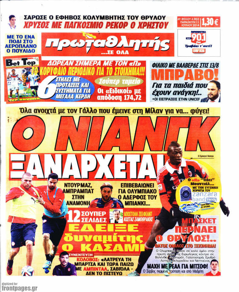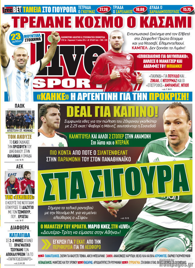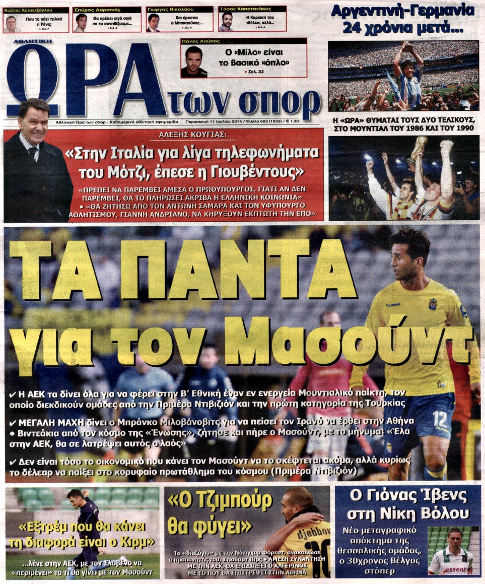 Οι αθλητικές εφημερίδες Enikos Newsroom 08:08, Παρασκευή 11 Ιουλίου 2014 Media Οι αθλητικές εφημερίδες Διαβάστε τα πρωτοσέλιδα των αθλητικών εφημερίδων: ΑΘΛΗΤΙΚΕΣ ΕΦΗΜΕΡΙΔΕΣ ΕΦΗΜΕΡΙΔΕΣ ΠΡΩΤΟΣΕΛΙΔΑ Μοιράσου το: σχολίασε κι εσύ (0 σχόλια) Ακολουθήστε το enikos.gr στο Google News και μάθετε πρώτοι όλες τις ειδήσεις Δείτε όλες τις τελευταίες ειδήσεις από την Ελλάδα και τον Κόσμο στο enikos.gr Ειδήσεις Ροή Ειδήσεων 2 ώρες πριν Αυξάνουν την πίεση προς την κυβέρνηση οι αγρότες: Κλείνουν παρακαμπτήριους και ανοίγουν διόδια – Τι θα γίνει τις γιορτές 44 λεπτά πριν ΟΠΕΚΕΠΕ: Προφυλακιστέος ο φερόμενος αρχηγός και ο λογιστής της εγκληματικής οργάνωσης 2 ώρες πριν Φοινικούντα: Το Σάββατο απολογείται ο 30χρονος γιος γνωστού επιχειρηματία της Πλάκας που παραδόθηκε – Όσα είπε στους αστυνομικούς και ο ρόλος του στο έγκλημα 1 ώρα πριν Μπορεί ο Μαδούρο να αντέξει τον αποκλεισμό του Τραμπ; Τι θα χρειαστεί η Ουάσινγκτον για να τον ανατρέψει 3 ώρες πριν Πρίγκιπας Ουίλιαμ – Κέιτ: Η νέα οικογενειακή φωτογραφία για τις Χριστουγεννιάτικες κάρτες του 2025 2 ώρες πριν Ύπνος: Η απλή βραδινή ρουτίνα για να προστατεύσετε τα μαλλιά σας από το κρύο κατά τη διάρκεια του χειμώνα 3 ώρες πριν Manifesting: Πώς να συναντήσετε τον σύντροφο της ζωής σας, ανάλογα με τον μήνα γέννησής σας 2 ημέρες πριν 20 χρόνια τα Χριστούγεννα ξεκινούν στα Public με μεγάλη ποικιλία σε δώρα! 1 ώρα πριν Αρχαιολόγοι ανακάλυψαν ρωμαϊκά τεχνουργήματα από μια πόλη που δεν υπήρξε ποτέ – Τα τρία εντυπωσιακά κτίρια και ο αμφορέας με τις… σαρδέλες 23 λεπτά πριν ΑΕΚ – Κραϊόβα 3-2: Επική ανατροπή και πρόκριση στους «16» του Conference League η Ένωση 44 λεπτά πριν ΟΠΕΚΕΠΕ: Προφυλακιστέος ο φερόμενος αρχηγός και ο λογιστής της εγκληματικής οργάνωσης 54 λεπτά πριν Αθηνά Μαξίμου: Η τρυφερή ανάρτηση για τα γενέθλια του Αιμίλιου Χειλάκη – «Είναι η εκλεκτική συγγένειά μου, η επιλογή και η ευθύνη μου» 1 ώρα πριν Παναθηναϊκός – Χάποελ Τελ Αβίβ 93-82: Με… φόρα από την Κωνσταντινούπολη 1 ώρα πριν Μπορεί ο Μαδούρο να αντέξει τον αποκλεισμό του Τραμπ; Τι θα χρειαστεί η Ουάσινγκτον για να τον ανατρέψει ENIKOS NETWORK Σε περίοδο αυξημένης δραστηριότητας η γρίπη στην Ελλάδα-Μέτρα προστασίας από τον ΕΟΔΥ Σκέφτεστε συνέχεια συζητήσεις που έχετε κάνει; Τι σημαίνει αυτό, σύμφωνα με ειδικό Στεγαστικό: Τι λέει η ΠΟΜΙΔΑ για τα νέα μέτρα που ανακοίνωσε ο Κυριάκος Μητσοτάκης Λαγκάρντ: Αισιόδοξη για την ανάπτυξη της Ευρωζώνης, αβέβαιη για τον πληθωρισμό Χαρτογραφώντας το «σημείο χωρίς επιστροφή»: Για πρώτη φορά αποκαλύπτεται με λεπτομέρεια το ακανθώδες όριο της ατμόσφαιρας τ... Η Google καταργεί τη λειτουργία «dark web report» – Πώς θα μπορούν οι χρήστες να διαγράφουν τα δεδομένα τους περισσότερα 17:45 , Πέμπτη 18 Δεκεμβρίου 2025 ROUK ZOUK: Εορταστικό επεισόδιο με καλεσμένους τους πρωταγωνιστές του «Γιατί ρε πατέρα» Το Σάββατο 20 Δεκεμβρίου στις 21:00, η Ζέτα Μακρυπούλια υποδέχεται εκλεκτούς ηθοποιούς που όλο... 17:20 , Πέμπτη 18 Δεκεμβρίου 2025 Άγιος έρωτας: Η Χριστίνα εξομολογείται στον πατέρα Νικόλαο, απόψε στις 21:00 στον Alpha Η Νότα αποφασίζει να εκδικηθεί τον Πέτρο και τον Στέφανο, για χάρη του Λούη, όμως τα πράγματα ... 16:50 , Πέμπτη 18 Δεκεμβρίου 2025 Να μ’ αγαπάς: Ζωή και Φωτεινή συμφιλιώνονται ως μάνα με κόρη, απόψε στις 20:00 Η ταυτότητα του Άγγελου αποκαλύπτεται στο νέο επεισόδιο της σειράς “Να μ’ αγαπάς... 15:52 , Πέμπτη 18 Δεκεμβρίου 2025 Το Σπίτι Δίπλα Στο Ποτάμι: Το καθηλωτικό τελευταίο επεισόδιο για το 2025 απόψε στις 22:30 Καθη