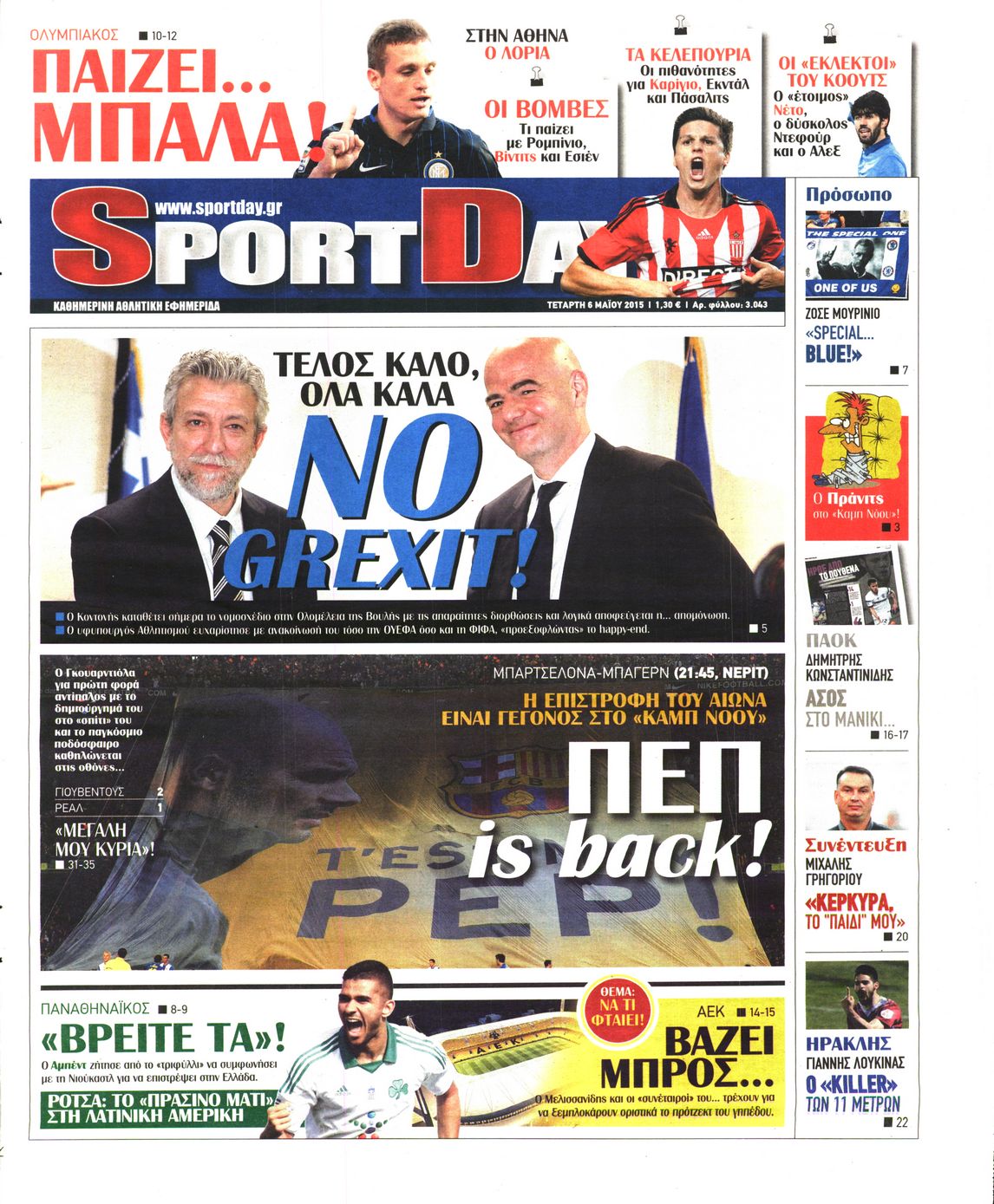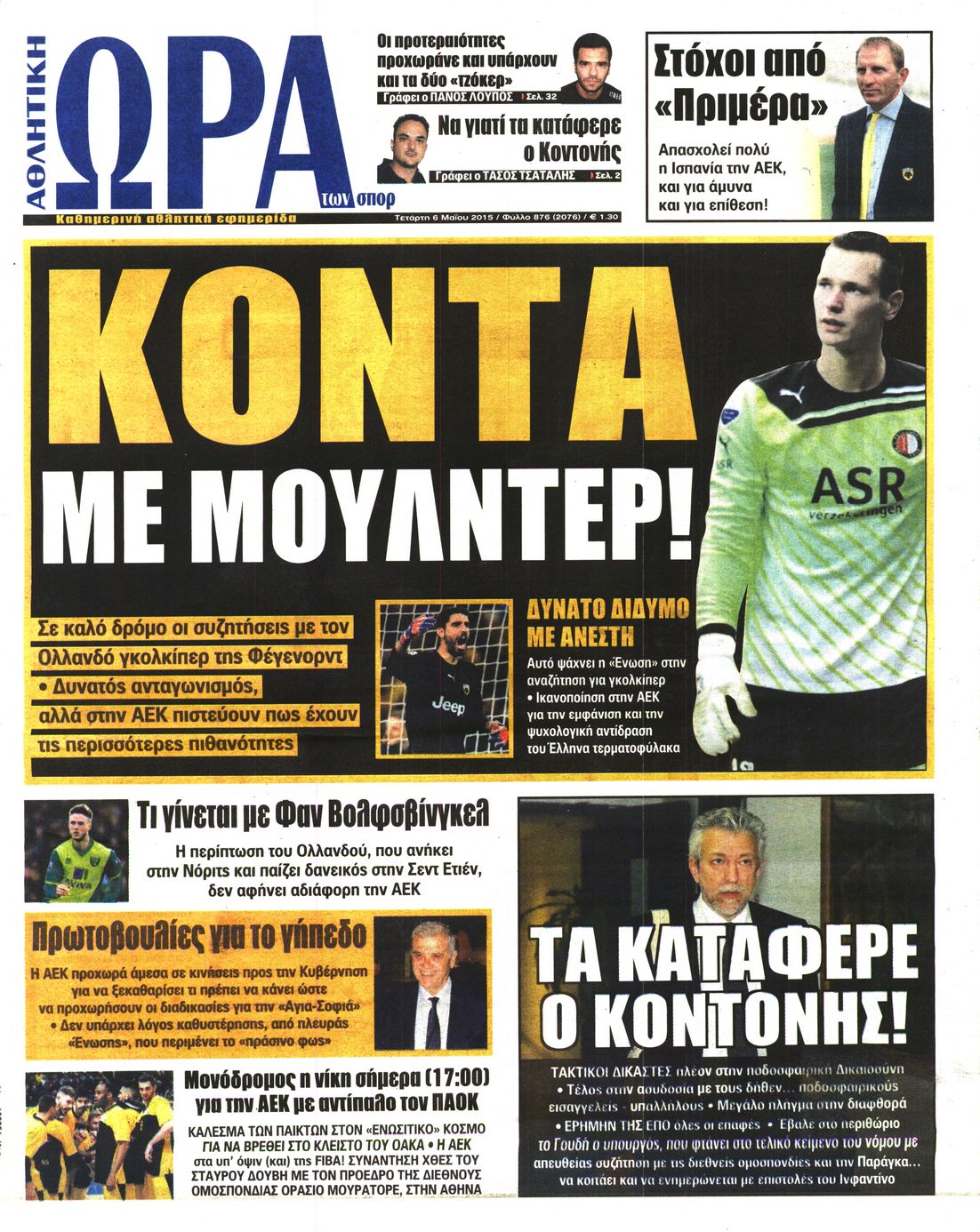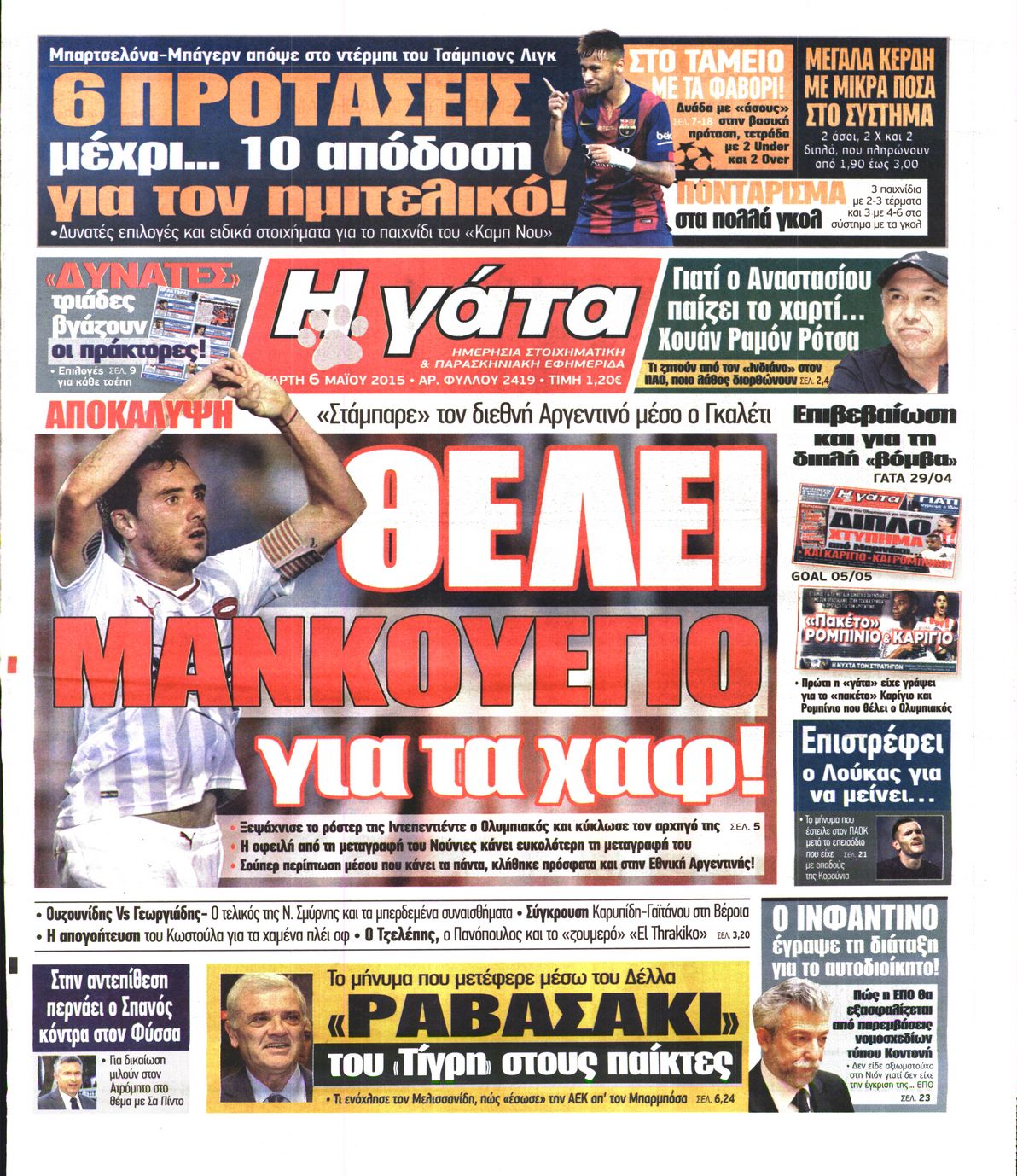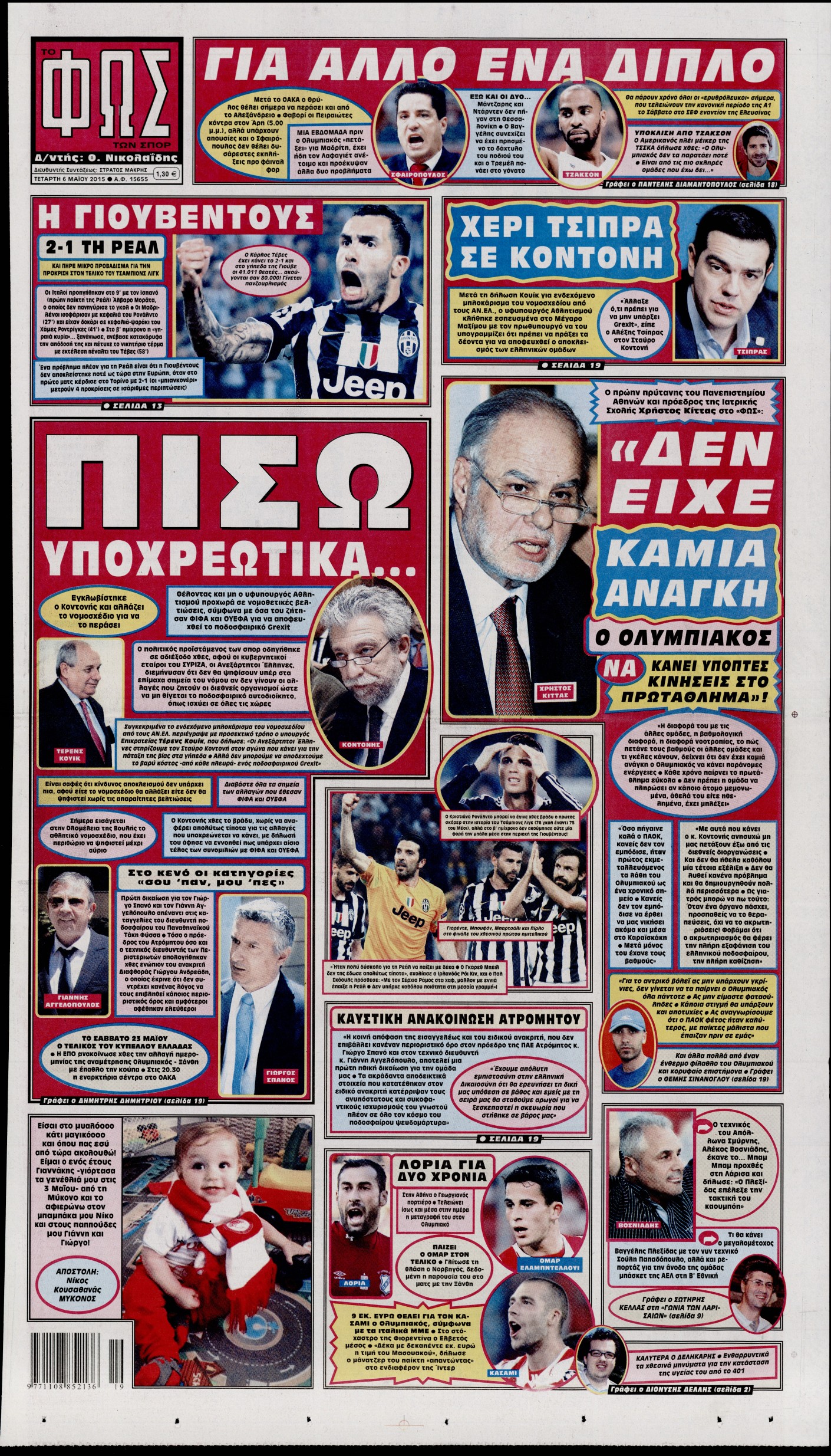 Οι αθλητικές εφημερίδες 6/5/2015 Enikos Newsroom 06:48, Τετάρτη 06 Μαΐου 2015 Media Διαβάστε τα σημερινά πρωτοσέλιδα των αθλητικών εφημερίδων: ΑΘΛΗΤΙΚΕΣ ΕΦΗΜΕΡΙΔΕΣ ΠΡΩΤΟΣΕΛΙΔΑ Μοιράσου το: σχολίασε κι εσύ (0 σχόλια) Ακολουθήστε το enikos.gr στο Google News και μάθετε πρώτοι όλες τις ειδήσεις Δείτε όλες τις τελευταίες ειδήσεις από την Ελλάδα και τον Κόσμο στο enikos.gr Ειδήσεις Ροή Ειδήσεων 4 ώρες πριν Χριστούγεννα στα μπλόκα: Επιμένουν στις κινητοποιήσεις τους οι αγρότες – Ανοίγουν τα διόδια το Σαββατοκύριακο 4 ώρες πριν Ουκρανία: Η άνευ προηγουμένου επίθεση σε ρωσικό τάνκερ στη Μεσόγειο και το μήνυμα προς στον Πούτιν – Το «μακρύ χέρι» του Κιέβου 4 ώρες πριν Πούτιν: Τα μηνύματα σε Ευρώπη και ΝΑΤΟ από το μαραθώνιο «σόου» του – Η απαίτηση για «σεβασμό» και η ειρήνη «με τους όρους» της Μόσχας 5 ώρες πριν Τραμπ: Δεν αποκλείει την πιθανότητα ενός πολέμου στη Βενεζουέλα – «Ο Μαδούρο ξέρει καλύτερα από τον καθένα τι ακριβώς θέλω» 5 ώρες πριν Συνεχίζει να προκαλεί ο Μίτσκοσκι: «Για μένα το όνομα Μακεδονία είναι ιερό» 4 ώρες πριν Ανακαλύφθηκαν αρχαία χρυσά νομίσματα 2.200 ετών που απεικονίζουν τον θεό Απόλλωνα – Η άγνωστη σύνδεση με τον Φίλιππο Β΄ της Μακεδονίας 5 ώρες πριν Ύπνος: Μια κρυφή κατάσταση του εγκεφάλου πριν από τον ύπνο μπορεί να είναι το “κλειδί” για υψηλή ευφυΐα και δημιουργικότητα 6 ώρες πριν Αριθμολογία: Οι άνθρωποι που έχουν γεννηθεί αυτές τις 4 ημερομηνίες, συχνά παρεξηγούνται – «Η καλοσύνη τους κρύβει τεράστια δύναμη» 7 ώρες πριν Ξεχάστε το καθάρισμα το Σαββατοκύριακο: Ο «κανόνας των 20 λεπτών» που θα σας λύσει τα χέρια 9 λεπτά πριν Θεσσαλονίκη: Εξαφανίστηκε 13χρονος από χώρο φιλοξενίας ασυνόδευτων ανηλίκων στο Ωραιόκαστρο 20 λεπτά πριν Ντόναλντ Τραμπ: «Πολύ βαριά αντίποινα» στη Συρία – «Πλήττουμε πολύ δυνατά οχυρά του Ισλαμικού Κράτους» 34 λεπτά πριν Εξάρχεια: Ένταση με μολότοφ, χημικά και κρότου λάμψης 50 λεπτά πριν ΗΠΑ: Τραγωδία στην Αλαμπάμα – Σκότωσε την δημοσιογράφο σύζυγό του και αυτοκτόνησε μπροστά στον 3χρονο γιο τους 1 ώρα πριν Πρόταση γάμου στο ΣΕΦ κατά την διάρκεια του αγώνα Ολυμπιακός-Βιλερμπάν – Δείτε βίντεο ENIKOS NETWORK Το ΕΚΑΒ τιμήθηκε από την Ακαδημία Αθηνών για τα 40 χρόνια προσφοράς του Έχετε πραγματικά μεγάλη καρδιά; 10 χαρακτηριστικά όσων έχουν καλοσύνη Αναστολή μέτρων αναγκαστικής εκτέλεσης για κτηνοτρόφους που πλήττονται από την ευλογιά των αιγοπροβάτων Πλήρης επάρκεια προϊόντων στις λαϊκές της Αττικής, παρά τις αγροτικές κινητοποιήσεις – Τι απαντούν οι πωλητές Χαρτογραφώντας το «σημείο χωρίς επιστροφή»: Για πρώτη φορά αποκαλύπτεται με λεπτομέρεια το ακανθώδες όριο της ατμόσφαιρας τ... Η Google καταργεί τη λειτουργία «dark web report» – Πώς θα μπορούν οι χρήστες να διαγράφουν τα δεδομένα τους περισσότερα 22:42 , Παρασκευή 19 Δεκεμβρίου 2025 Γιώργος Γιαννόπουλος για “Το σόι σου”: “Είναι ευτυχία και ευλογία αυτή η σειρά” «Είναι ευτυχία και ευλογία η συγκυρία αυτής της σειράς», θα πει ο Γιώργος Γιαννόπουλος -ο αγαπ... 20:37 , Παρασκευή 19 Δεκεμβρίου 2025 Don’t Forget The Lyrics: Η Έλλη Κοκκίνου υποδέχεται 4 παίκτες που θα κάνουν τα πάντα για να μη χάσουν ούτε… μισή λέξη από τους στίχους Το «Don’t Forget The Lyrics» επιστρέφει απόψε, Παρασκευή 19 Δεκεμβρίου, στις 21:00 με νέο επει... 19:31 , Παρασκευή 19 Δεκεμβρίου 2025 GNTM: Απόψε ο μεγάλος τελικός για τους 4 φιναλίστ Έπειτα από μήνες γεμάτους μόδα, δημιουργία και έντονες αναμετρήσεις, το GNTM 2025 κορυφώνεται,... 18:11 , Παρασκευή 19 Δεκεμβρίου 2025 Το σόι 