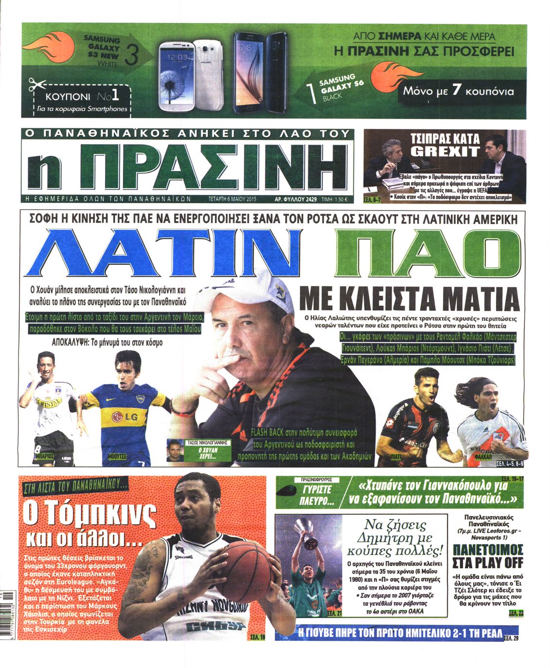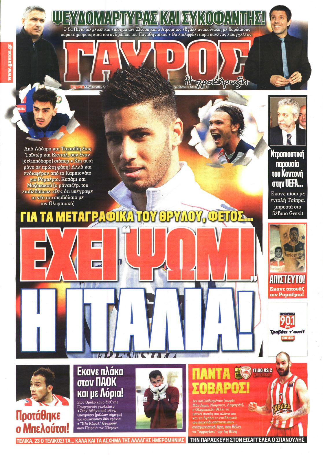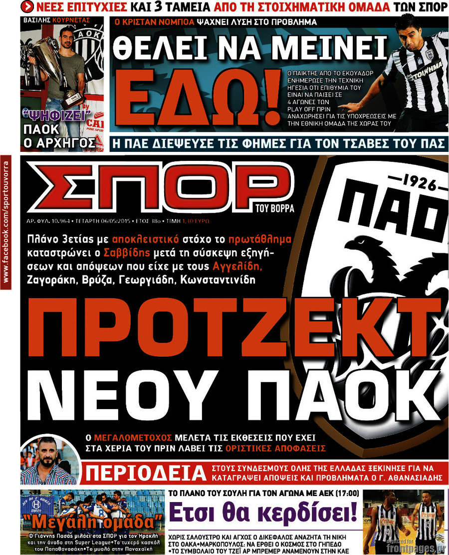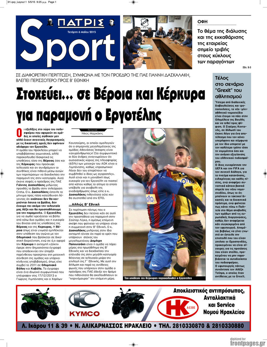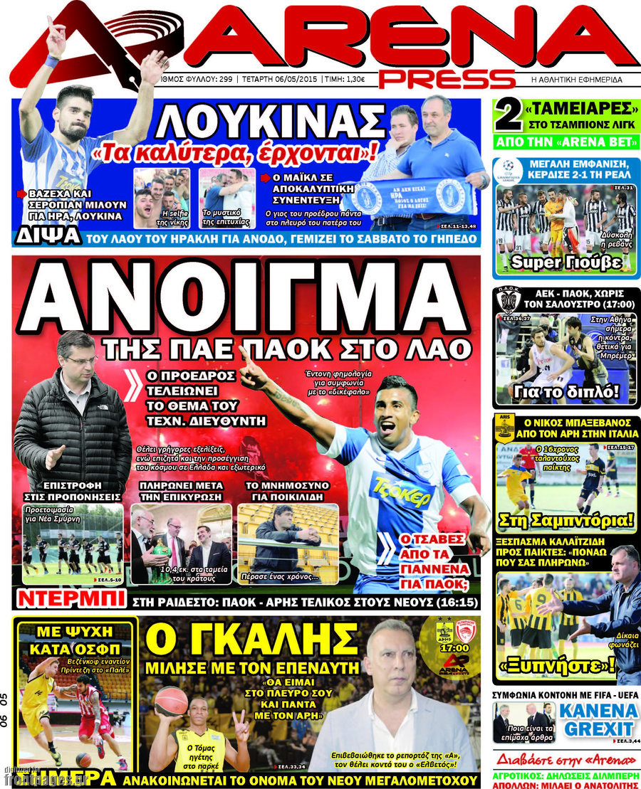 Οι αθλητικές εφημερίδες 6/5/2015 Enikos Newsroom 06:48, Τετάρτη 06 Μαΐου 2015 Media Διαβάστε τα σημερινά πρωτοσέλιδα των αθλητικών εφημερίδων: ΑΘΛΗΤΙΚΕΣ ΕΦΗΜΕΡΙΔΕΣ ΠΡΩΤΟΣΕΛΙΔΑ Μοιράσου το: σχολίασε κι εσύ (0 σχόλια) Ακολουθήστε το enikos.gr στο Google News και μάθετε πρώτοι όλες τις ειδήσεις Δείτε όλες τις τελευταίες ειδήσεις από την Ελλάδα και τον Κόσμο στο enikos.gr Ειδήσεις Ροή Ειδήσεων 4 ώρες πριν Χριστούγεννα στα μπλόκα: Επιμένουν στις κινητοποιήσεις τους οι αγρότες – Ανοίγουν τα διόδια το Σαββατοκύριακο 4 ώρες πριν Ουκρανία: Η άνευ προηγουμένου επίθεση σε ρωσικό τάνκερ στη Μεσόγειο και το μήνυμα προς στον Πούτιν – Το «μακρύ χέρι» του Κιέβου 4 ώρες πριν Πούτιν: Τα μηνύματα σε Ευρώπη και ΝΑΤΟ από το μαραθώνιο «σόου» του – Η απαίτηση για «σεβασμό» και η ειρήνη «με τους όρους» της Μόσχας 5 ώρες πριν Τραμπ: Δεν αποκλείει την πιθανότητα ενός πολέμου στη Βενεζουέλα – «Ο Μαδούρο ξέρει καλύτερα από τον καθένα τι ακριβώς θέλω» 5 ώρες πριν Συνεχίζει να προκαλεί ο Μίτσκοσκι: «Για μένα το όνομα Μακεδονία είναι ιερό» 4 ώρες πριν Ανακαλύφθηκαν αρχαία χρυσά νομίσματα 2.200 ετών που απεικονίζουν τον θεό Απόλλωνα – Η άγνωστη σύνδεση με τον Φίλιππο Β΄ της Μακεδονίας 5 ώρες πριν Ύπνος: Μια κρυφή κατάσταση του εγκεφάλου πριν από τον ύπνο μπορεί να είναι το “κλειδί” για υψηλή ευφυΐα και δημιουργικότητα 6 ώρες πριν Αριθμολογία: Οι άνθρωποι που έχουν γεννηθεί αυτές τις 4 ημερομηνίες, συχνά παρεξηγούνται – «Η καλοσύνη τους κρύβει τεράστια δύναμη» 7 ώρες πριν Ξεχάστε το καθάρισμα το Σαββατοκύριακο: Ο «κανόνας των 20 λεπτών» που θα σας λύσει τα χέρια 9 λεπτά πριν Θεσσαλονίκη: Εξαφανίστηκε 13χρονος από χώρο φιλοξενίας ασυνόδευτων ανηλίκων στο Ωραιόκαστρο 20 λεπτά πριν Ντόναλντ Τραμπ: «Πολύ βαριά αντίποινα» στη Συρία – «Πλήττουμε πολύ δυνατά οχυρά του Ισλαμικού Κράτους» 34 λεπτά πριν Εξάρχεια: Ένταση με μολότοφ, χημικά και κρότου λάμψης 50 λεπτά πριν ΗΠΑ: Τραγωδία στην Αλαμπάμα – Σκότωσε την δημοσιογράφο σύζυγό του και αυτοκτόνησε μπροστά στον 3χρονο γιο τους 1 ώρα πριν Πρόταση γάμου στο ΣΕΦ κατά την διάρκεια του αγώνα Ολυμπιακός-Βιλερμπάν – Δείτε βίντεο ENIKOS NETWORK Το ΕΚΑΒ τιμήθηκε από την Ακαδημία Αθηνών για τα 40 χρόνια προσφοράς του Έχετε πραγματικά μεγάλη καρδιά; 10 χαρακτηριστικά όσων έχουν καλοσύνη Αναστολή μέτρων αναγκαστικής εκτέλεσης για κτηνοτρόφους που πλήττονται από την ευλογιά των αιγοπροβάτων Πλήρης επάρκεια προϊόντων στις λαϊκές της Αττικής, παρά τις αγροτικές κινητοποιήσεις – Τι απαντούν οι πωλητές Χαρτογραφώντας το «σημείο χωρίς επιστροφή»: Για πρώτη φορά αποκαλύπτεται με λεπτομέρεια το ακανθώδες όριο της ατμόσφαιρας τ... Η Google καταργεί τη λειτουργία «dark web report» – Πώς θα μπορούν οι χρήστες να διαγράφουν τα δεδομένα τους περισσότερα 22:42 , Παρασκευή 19 Δεκεμβρίου 2025 Γιώργος Γιαννόπουλος για “Το σόι σου”: “Είναι ευτυχία και ευλογία αυτή η σειρά” «Είναι ευτυχία και ευλογία η συγκυρία αυτής της σειράς», θα πει ο Γιώργος Γιαννόπουλος -ο αγαπ... 20:37 , Παρασκευή 19 Δεκεμβρίου 2025 Don’t Forget The Lyrics: Η Έλλη Κοκκίνου υποδέχεται 4 παίκτες που θα κάνουν τα πάντα για να μη χάσουν ούτε… μισή λέξη από τους στίχους Το «Don’t Forget The Lyrics» επιστρέφει απόψε, Παρασκευή 19 Δεκεμβρίου, στις 21:00 με νέο επει... 19:31 , Παρασκευή 19 Δεκεμβρίου 2025 GNTM: Απόψε ο μεγάλος τελικός για τους 4 φιναλίστ Έπειτα από μήνες γεμάτους μόδα, δημιουργία και έντονες αναμετρήσεις, το GNTM 2025 κορυφώνεται,... 18:11 , Παρασκευή 19 Δεκεμβρίου 2025 Το σόι 