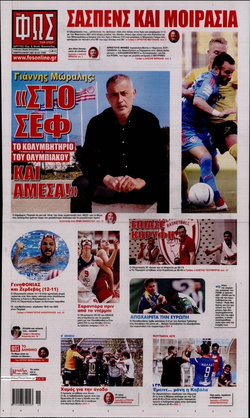 Οι αθλητικές εφημερίδες 6/5/2021 Σήφης Γαρυφαλάκης 06:22, Πέμπτη 06 Μαΐου 2021 Media Διαβάστε τα πρωτοσέλιδα των αθλητικών εφημερίδων… ΑΘΛΗΤΙΚΕΣ ΕΦΗΜΕΡΙΔΕΣ ΕΦΗΜΕΡΙΔΕΣ ΠΡΩΤΟΣΕΛΙΔΑ ΠΡΩΤΟΣΕΛΙΔΑ ΕΦΗΜΕΡΙΔΩΝ Μοιράσου το: σχολίασε κι εσύ (0 σχόλια) Ακολουθήστε το enikos.gr στο Google News και μάθετε πρώτοι όλες τις ειδήσεις Δείτε όλες τις τελευταίες ειδήσεις από την Ελλάδα και τον Κόσμο στο enikos.gr Ειδήσεις Ροή Ειδήσεων 54 λεπτά πριν Νίκος Παππάς: Το παρασκήνιο της αποπομπής του – Οι μπουνιές, τα μηνύματα μετά την επίθεση και η διαγραφή από τον ΣΥΡΙΖΑ 2 ώρες πριν Φοροδιαφυγή: Ποιοι φορολογούμενοι κινδυνεύουν να πληρώσουν «τσουχτερά» πρόστιμα 25 λεπτά πριν Άστατος ο καιρός τα Χριστούγεννα: Βαρομετρικό χαμηλό από τον κόλπο της Σύρτης «ξεκλειδώνει» κακοκαιρίες – Πώς θα εξελιχθεί έως την Πρωτοχρονιά 1 ώρα πριν Φοινικούντα: Παραδόθηκε 30χρονος στην Καλαμάτα για τη διπλή δολοφονία 2 ώρες πριν Αγρότες: Ανυποχώρητοι στα μπλόκα – Στις Σέρρες σήμερα η κρίσιμη συνεδρίαση της Πανελλαδικής Επιτροπής 3 ώρες πριν Καούρα: Το μπαχαρικό που είναι «εξίσου αποτελεσματικό» με την ομεπραζόλη, σύμφωνα με ειδικούς 4 ώρες πριν Τα ζώδια σήμερα, Πέμπτη 18 Δεκεμβρίου: Λέοντες, η καρδιά σας θέλει να εκφραστεί 3 ώρες πριν Οπτική ψευδαίσθηση: Μόνο οι πιο έξυπνοι άνθρωποι θα βρουν 7 ξωτικά 15 δευτερόλεπτα 24 ώρες πριν 20 χρόνια τα Χριστούγεννα ξεκινούν στα Public με μεγάλη ποικιλία σε δώρα! 6 λεπτά πριν Εκατοντάδες τρακτέρ στους δρόμους των Βρυξελλών ενόψει της Συνόδου Κορυφής της ΕΕ 12 λεπτά πριν Βραχάτι: Νεκρός 48χρονος σε τροχαίο – Το αυτοκίνητό του πέρασε στο αντίθετο ρεύμα και «καρφώθηκε» σε δέντρο 17 λεπτά πριν Η σύζυγός του παραπονιέται για τα χρήματα που της δίνει για ψώνια κάθε μήνα – «Λέει ότι νιώθει φτωχή και της είπα να βρει δουλειά» 25 λεπτά πριν Άστατος ο καιρός τα Χριστούγεννα: Βαρομετρικό χαμηλό από τον κόλπο της Σύρτης «ξεκλειδώνει» κακοκαιρίες – Πώς θα εξελιχθεί έως την Πρωτοχρονιά 29 λεπτά πριν Γρίπη: Η υπουργός Υγείας της Γαλλίας καλεί τους πολίτες να ξαναφορέσουν τις μάσκες τους ENIKOS NETWORK 5 ασκήσεις που εξαφανίζουν το «σωσίβιο» πιο γρήγορα από τους κοιλιακούς μετά τα 50 «Έκανα χρόνια μανικιούρ με τζελ μέχρι που κινδύνευσαν να πέσουν» – Πώς ήταν το σημάδι στο νύχι που την προειδοποίησε Οφειλές προς το Δημόσιο: «Φρένο» στα σενάρια για νέα ρύθμιση – Τι απαντά το υπουργείο Εθνικής Οικονομίας και Οικονομικών Φοροδιαφυγή: Ποιοι φορολογούμενοι κινδυνεύουν να πληρώσουν «τσουχτερά» πρόστιμα Χαρτογραφώντας το «σημείο χωρίς επιστροφή»: Για πρώτη φορά αποκαλύπτεται με λεπτομέρεια το ακανθώδες όριο της ατμόσφαιρας τ... Η Google καταργεί τη λειτουργία «dark web report» – Πώς θα μπορούν οι χρήστες να διαγράφουν τα δεδομένα τους περισσότερα 08:00 , Πέμπτη 18 Δεκεμβρίου 2025 Την Κυριακή με τη Realnews: Δωροεπιταγή 10€ Δωροεπιταγή αξίας 10€ για αγορές άνω των 60€ από τα πολυκαταστήματα FactoryOutlet H προσφορά ι... 07:50 , Πέμπτη 18 Δεκεμβρίου 2025 «Το σόι σου»: Backstage στα γυρίσματα για το εορταστικό επεισόδιο «Το σόι σου» φορά τα γιορτινά του για τα Χριστούγεννα και η Όλγα Λαφαζάνη, με την κάμερα του «... 07:36 , Πέμπτη 18 Δεκεμβρίου 2025 Οι αθλητικές μεταδόσεις 18/12/2025 – Πού θα δείτε τον αγώνα της ΑΕΚ με την Κραϊόβα για το Conference League Τα ματς ΑΕΚ – Ουνιβερσιτάτεα Κραϊόβα για το Conference League και Παναθηναϊκός – Χάποελ Τελ Αβ... 05:48 , Πέμπτη 18 Δεκεμβρίου 2025 Οι οικονομικές εφημερίδες 18/12/2025 Διαβάστε τα πρωτοσέλιδα από τις οικονομικές εφημερίδες, σήμερα 18