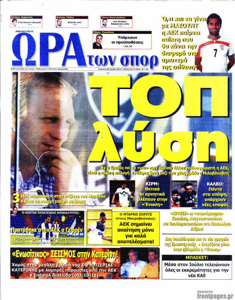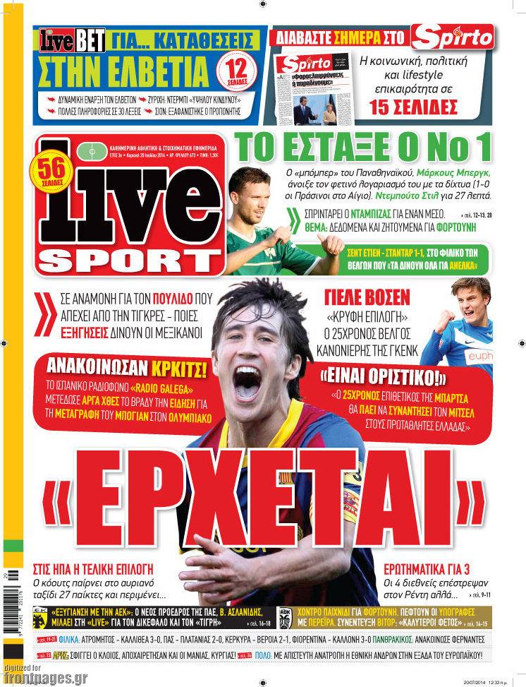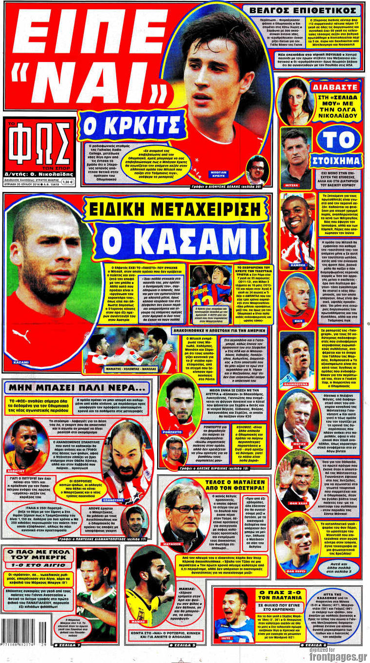 Οι αθλητικές εφημερίδες Enikos Newsroom 08:50, Κυριακή 20 Ιουλίου 2014 Media Οι αθλητικές εφημερίδες Διαβάστε τα πρωτοσέλιδα των αθλητικών εφημερίδων: ΑΘΛΗΤΙΚΕΣ ΕΦΗΜΕΡΙΔΕΣ ΚΥΡΙΑΚΗ ΠΡΩΤΟΣΕΛΙΔΑ Μοιράσου το: σχολίασε κι εσύ (0 σχόλια) Ακολουθήστε το enikos.gr στο Google News και μάθετε πρώτοι όλες τις ειδήσεις Δείτε όλες τις τελευταίες ειδήσεις από την Ελλάδα και τον Κόσμο στο enikos.gr Ειδήσεις Ροή Ειδήσεων 2 ώρες πριν Εκτός ευρωομάδας ΣΥΡΙΖΑ ο Νίκος Παππάς μετά την επίθεση στον δημοσιογράφο Νίκο Γιαννόπουλο – Η μήνυση και οι νέες δηλώσεις 2 ώρες πριν «Αγριεύουν» οι αγρότες: «Δεν συντρέχει λόγος συνάντησης με τον πρωθυπουργό» – Ώρα αποφάσεων στη σύσκεψη της Πέμπτης 2 ώρες πριν Κυψέλη: Χωρίς την οικογένειά της δίπλα της απολογήθηκε η 16χρονη – «Της είχε επιτεθεί κάποιος για να την βιάσει, φοβήθηκε και κυκλοφορούσε με μαχαίρι» 2 ώρες πριν Politico: Το πρόβλημα της Ευρώπης δεν είναι το Βέλγιο αλλά ο Ντόναλντ Τραμπ 4 ώρες πριν Αλεξανδρούπολη: Πολυοργανική ανεπάρκεια λόγω υποσιτισμού η αιτία θανάτου του 3χρονου αγοριού 2 ώρες πριν Μυστήριο με τεράστιες κυκλικές πέτρες 200 κιλών – Ανακαλύφθηκαν τυχαία κατά τη διάρκεια οδικών έργων και κανείς δεν ξέρει από πού προέρχονται 3 ώρες πριν Ύπνος: Ειδικός εξηγεί τον πραγματικό λόγο που ξυπνάτε στις 4 τα ξημερώματα – Ο ρόλος των ορμονών και του κιρκάδιου ρυθμού 4 ώρες πριν Αριθμολογία: Οι άνθρωποι που έχουν γεννηθεί αυτές τις 4 ημερομηνίες, είναι τρυφεροί και αγαπούν ανιδιοτελώς 16 ώρες πριν 20 χρόνια τα Χριστούγεννα ξεκινούν στα Public με μεγάλη ποικιλία σε δώρα! 2 λεπτά πριν Σάρα Εσκενάζυ: Η πρώτη ανάρτηση για το θάνατο του πατέρα της, Αλμπέρτο Εσκενάζυ και η επιθυμία της οικογένειας 18 λεπτά πριν Παρί Σεν Ζερμέν – Φλαμένγκο 2-1 πεν. (1-1 κ.δ.): Οι Γάλλοι σήκωσαν και το Διηπειρωτικό με ήρωα τον Σαφόνοφ που έπιασε 4 πέναλτι 33 λεπτά πριν Βέλγους πολιτικούς και επικεφαλής χρηματοπιστωτικών ιδρυμάτων στοχοποιεί η Μόσχα για τα κατασχεθέντα περιουσιακά στοιχεία 48 λεπτά πριν ΗΠΑ: Αναζητείται δεύτερος ύποπτος για την επίθεση στο πανεπιστήμιο Μπράουν 1 ώρα πριν Λεωφόρος Αλεξάνδρας: Δεν εντοπίστηκε βόμβα έξω από το κολλέγιο – Προσήχθη άνδρας για το προειδοποιητικό σημείωμα ENIKOS NETWORK Αϋπνία: Το κόλπο που θα σας βοηθήσει να κοιμηθείτε απόψε – Είναι απλό και έχει αποτέλεσμα 2,6 εκατομμύρια πολίτες έχουν ήδη εμβολιαστεί κατά της γρίπης ΕΛΣΤΑΤ: Τι δείχνουν τα νέα στοιχεία για τις ηλεκτρονικές παραγγελίες των επιχειρήσεων ΚΕΠΕ: Οι 3 διακριτές συμβολές των ΜμΕ και της μεταποίησης στην ελληνική οικονομία Χαρτογραφώντας το «σημείο χωρίς επιστροφή»: Για πρώτη φορά αποκαλύπτεται με λεπτομέρεια το ακανθώδες όριο της ατμόσφαιρας τ... Η Google καταργεί τη λειτουργία «dark web report» – Πώς θα μπορούν οι χρήστες να διαγράφουν τα δεδομένα τους περισσότερα 22:24 , Τετάρτη 17 Δεκεμβρίου 2025 Το Σπίτι Δίπλα Στο Ποτάμι: Σε κίνδυνο η υγεία του Απόστολου – Τι θα δούμε απόψε “Το Σπίτι Δίπλα στο Ποτάμι” ξετυλίγει το νήμα της ζωής των πέντε αδελφών με καταισ... 21:14 , Τετάρτη 17 Δεκεμβρίου 2025 Παιχνίδια Εκδίκησης: Θα καταφέρει ο Χρήστος να κλονίσει την εμπιστοσύνη της Μάγιας απέναντι στον Άγη; Τα «Παιχνίδια Εκδίκησης» έρχονται απόψε στις 22:30, στον Αντ1, με το τελευταίο επεισόδιο της χ... 20:57 , Τετάρτη 17 Δεκεμβρίου 2025 Άγιος Έρωτας: Η Χλόη καταθέτει εναντίον του πατέρα της και ο Χάρης αποκαλύπτει στον Κλεάνθη ότι δεν είναι ο βιολογικός του πατέρας. Γεμάτο αποκαλύψεις είναι το νέο επεισόδιο της σειράς