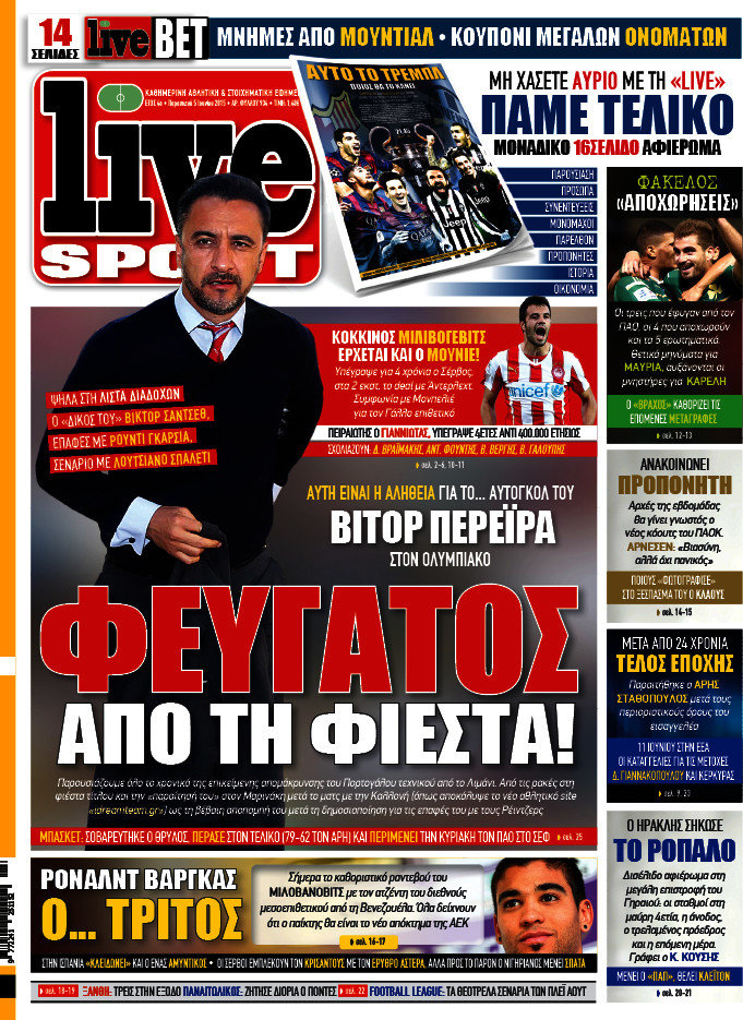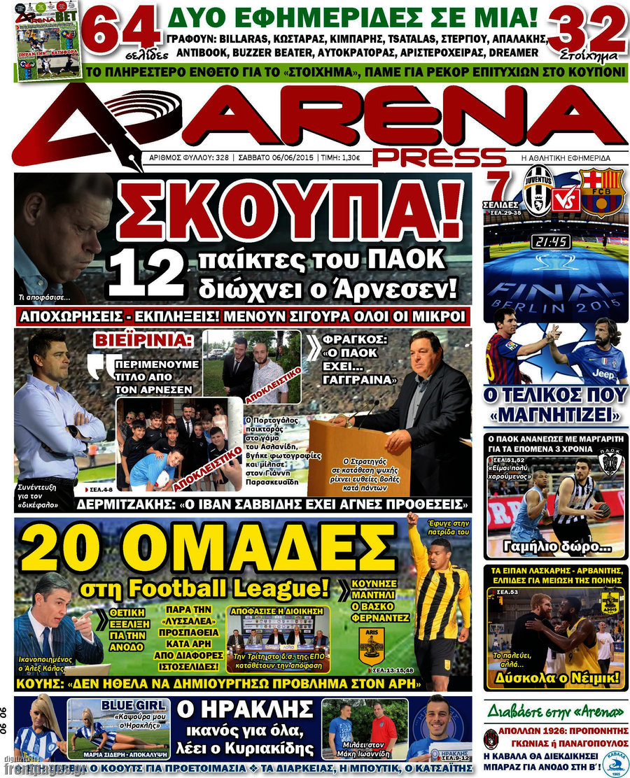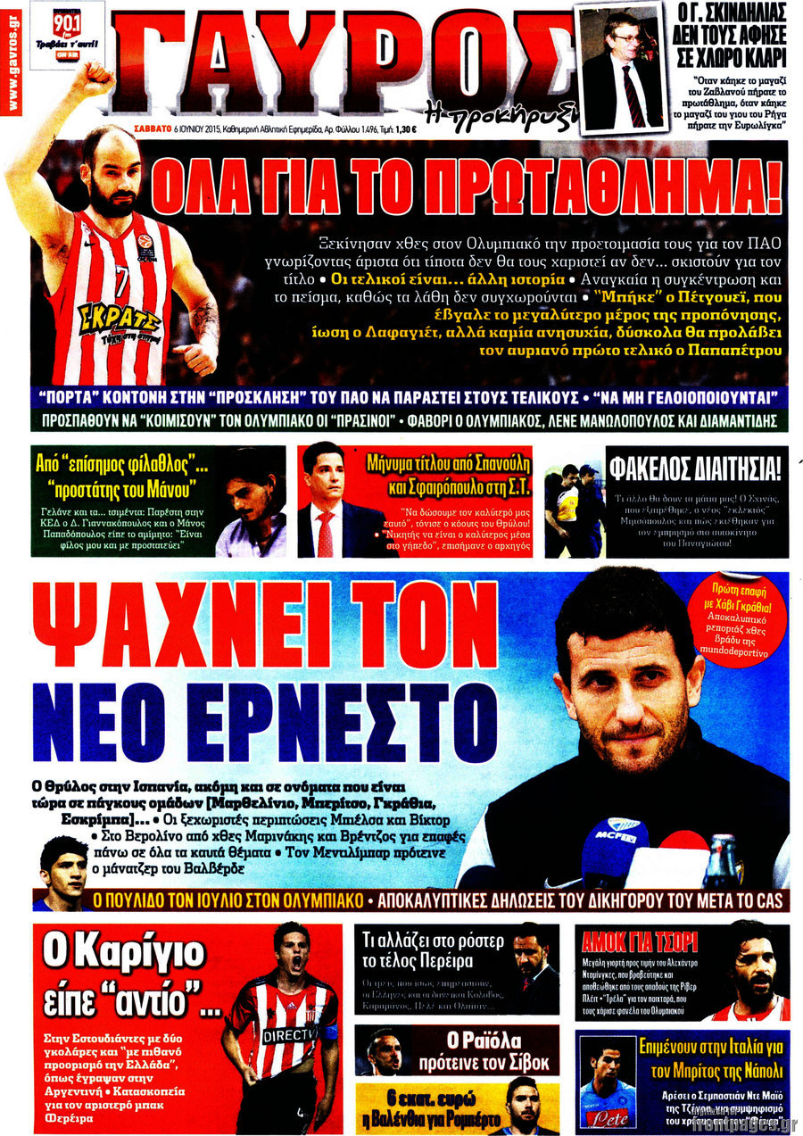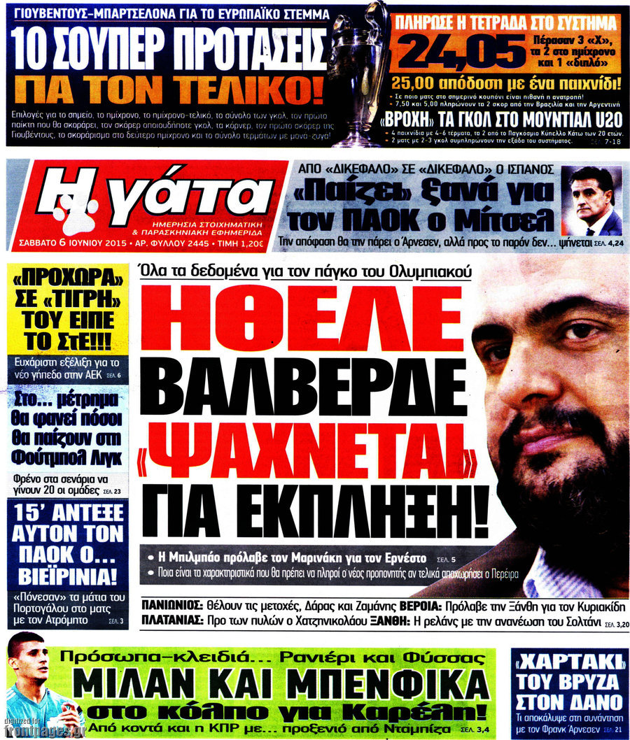 Οι αθλητικές εφημερίδες 6/6/2015 Enikos Newsroom 08:26, Σάββατο 06 Ιουνίου 2015 Media Διαβάστε τα σημερινά πρωτοσέλιδα των αθλητικών εφημερίδων. ΑΘΛΗΤΙΚΕΣ ΕΦΗΜΕΡΙΔΕΣ ΕΦΗΜΕΡΙΔΕΣ ΠΡΩΤΟΣΕΛΙΔΑ Μοιράσου το: σχολίασε κι εσύ (0 σχόλια) Ακολουθήστε το enikos.gr στο Google News και μάθετε πρώτοι όλες τις ειδήσεις Δείτε όλες τις τελευταίες ειδήσεις από την Ελλάδα και τον Κόσμο στο enikos.gr Ειδήσεις Ροή Ειδήσεων 44 λεπτά πριν ΑΑΔΕ: Στον Εισαγγελέα οι πρώτες 50 μαζικές διαγραφές αγρών στο Ε9 – Εξετάζονται συνολικά 3.000 περιπτώσεις 4 ώρες πριν Καιρός: Νέο έκτακτο δελτίο επιδείνωσης από την ΕΜΥ – Ποιες περιοχές θα «χτυπήσει» η κακοκαιρία τα Χριστούγεννα 37 λεπτά πριν Ζελένσκι: Πέρασε στην αντεπίθεση με το σχέδιο ειρήνης – Ζητεί συνάντηση με Τραμπ για το εδαφικό 5 ώρες πριν Live – Έξοδος Χριστουγέννων: Αυξημένη η κίνηση στις Εθνικές Οδούς – Εικόνα αποσυμφόρησης με νέες λωρίδες κυκλοφορίας στα αγροτικά μπλόκα 5 ώρες πριν Αεροπορικό δυστύχημα στην Τουρκία: Στο μικροσκόπιο ο καταγραφέας ήχου και το μαύρο κουτί – Η αεροσυνοδός Maria Pappa ανάμεσα στα θύματα 28 λεπτά πριν Τα 5 ζώδια που έχουν μεγάλες πιθανότητες να πλουτίσουν το 2026 – «Οι οικονομικές δυσκολίες ανήκουν στο παρελθόν» 1 ώρα πριν Επιστήμονες ανακάλυψαν κάτι συγκλονιστικό – Η μάζα μπορεί να προέρχεται από αόρατες διαστάσεις 5 ώρες πριν Γυναίκα που έχασε 30 κιλά αποκαλύπτει τα μυστικά της επιτυχίας της – «Οι υδατάνθρακες είναι καύσιμο του οργανισμού, όχι εχθρός» 4 ώρες πριν Οι άνθρωποι που αποφεύγουν να γιορτάσουν τα Χριστούγεννα με την οικογένειά τους, συνήθως είχαν αυτές τις 8 εμπειρίες στην παιδική ηλικία 1 λεπτό πριν Φωτιά σε αυτοκίνητο στην Αττική Οδό – Πού υπάρχουν καθυστερήσεις – ΦΩΤΟ αναγνώστη 8 λεπτά πριν Τουρκία: Συζητήσεις Φιντάν με αξιωματούχους της Χαμάς για τη δεύτερη φάση της συμφωνίας εκεχειρίας στη Γάζα 15 λεπτά πριν ALPHA: Παραμονή Χριστουγέννων με τον Κωνσταντίνο Αργυρό 22 λεπτά πριν Κίμπερλι Γκίλφοϊλ: «Ο Θεός να ευλογεί την Ελλάδα και τις ΗΠΑ» – Οι ευχές της για τα Χριστούγεννα 28 λεπτά πριν Τα 5 ζώδια που έχουν μεγάλες πιθανότητες να πλουτίσουν το 2026 – «Οι οικονομικές δυσκολίες ανήκουν στο παρελθόν» ENIKOS NETWORK New Year’s Resolutions: Μικρές αποφάσεις για μια καλή χρονιά 14χρονη βγήκε να πει τα κάλαντα και βρέθηκε τραυματισμένη στο δρόμο-Νοσηλεύεται στο Παίδων «Αγία Σοφία» Αλλάζουν οι διατάξεις του Κτιριοδομικού του Κτιριοδομικού Κανονισμού – Τι είπε ο Ταγαράς Επίδομα θέρμανσης: Πότε θα δοθεί η επόμενη δόση Ο Google Assistant θα παραμείνει λίγο περισσότερο για ορισμένους χρήστες Android Τεστ προσωπικότητας: Το βάζο που θα επιλέξετε αποκαλύπτει πώς λύνετε προβλήματα στη ζωή σας περισσότερα 16:12 , Τετάρτη 24 Δεκεμβρίου 2025 ALPHA: Παραμονή Χριστουγέννων με τον Κωνσταντίνο Αργυρό Ο Alpha παρουσιάζει απόψε σε πρώτη τηλεοπτική μετάδοση τη συναρπαστική και sold out εμφάνιση ... 15:51 , Τετάρτη 24 Δεκεμβρίου 2025 ‘Αγιος Έρωτας: Ο σεισμός που έκοψε την ανάσα – Δείτε τις συγκλονιστικές σκηνές Με έναν συγκλονιστικό τρόπο έκλεισε χθες βράδυ το τελευταίο επεισόδιο του 2025 της σειράς R... 13:27 , Τετάρτη 24 Δεκεμβρίου 2025 Ο Χριστουγεννιάτικος Τηλεμαραθώνιος του ΑΝΤ1 ένωσε τους πολιτικούς αρχηγούς – Τα εγκωμιαστικά σχόλια για τον Θοδωρή Κυριακού Σπάνια ομοφωνία: Όλοι οι πολιτικοί αρχηγοί αποθεώνουν τον Θοδωρή Κυριακού Ο Χριστουγεννιάτικος... 12:05 , Τετάρτη 24 Δεκεμβρίου 2025 Έξοδος εκδρομέων για τα Χριστούγεννα: Στείλε βίντεο ή φωτογραφίες στο enikos.gr – Αποθήκευσε τον αριθμό 694