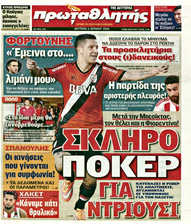 Οι αθλητικές εφημερίδες 6/6/2016 Enikos Newsroom 04:50, Δευτέρα 06 Ιουνίου 2016 Media Διαβάστε τα σημερινά πρωτοσέλιδα των αθλητικών εφημερίδων: ΑΘΛΗΤΙΚΕΣ ΕΦΗΜΕΡΙΔΕΣ ΠΡΩΤΟΣΕΛΙΔΑ Μοιράσου το: σχολίασε κι εσύ (0 σχόλια) Ακολουθήστε το enikos.gr στο Google News και μάθετε πρώτοι όλες τις ειδήσεις Δείτε όλες τις τελευταίες ειδήσεις από την Ελλάδα και τον Κόσμο στο enikos.gr Ειδήσεις Ροή Ειδήσεων 1 ώρα πριν Αγρότες: Πολύωροι αποκλεισμοί στα τελωνεία Προμαχώνα, Εξοχής, Ευζώνων και Νίκης – Κλείνουν τον κόμβο Φιλώτα οι παραγωγοί στη Δυτική Μακεδονία 35 λεπτά πριν Νίκος Παππάς: Ζητώ συγγνώμη για αυτό το επεισόδιο – Δεν τον γρονθοκόπησα 3 ώρες πριν Ευρωπαϊκό Συμβούλιο: Όλες οι λεπτομέρειες για το δάνειο των 90 δισ. ευρώ στην Ουκρανία – Τα συμπεράσματα της Συνόδου Κορυφής 2 ώρες πριν Αίγιο: 22χρονη κατήγγειλε ότι έπεσε θύμα βιασμού και ληστείας από συγγενικά της πρόσωπα 2 ώρες πριν Σφοδρές βροχές και καταιγίδες πλήττουν τα Ηνωμένα Αραβικά Εμιράτα: Ακυρώσεις πτήσεων, προβλήματα στην κυκλοφορία 1 ώρα πριν Αλλαγή σελίδας για 3 ζώδια – «Μία δύσκολη περίοδος φτάνει στο τέλος της» 3 ώρες πριν Πώς το αρχαίο DNA του κυνηγού – συλλέκτη ξεκλείδωσε τα μυστικά της μακροζωίας 2 ημέρες πριν 20 χρόνια τα Χριστούγεννα ξεκινούν στα Public με μεγάλη ποικιλία σε δώρα! 2 ώρες πριν Ο σύζυγός της συμπεριφέρεται όπως το παιδί τους – «Χρησιμοποιεί αστείες δικαιολογίες για να μην κάνει δουλειές και να ξοδεύει λεφτά» 1 λεπτό πριν Βλαντίμιρ Πούτιν: LIVE η συνέντευξη Τύπου για τον απολογισμό της χρονιάς 7 λεπτά πριν Αλμπέρτο Εσκενάζυ: Υπό τους ήχους του τραγουδιού «Του Αιγαίου τα μπλουζ» το τελευταίο αντίο στο αποτεφρωτήριο της Ριτσώνας 12 λεπτά πριν TikTok: Ο ιδιοκτήτης του υπέγραψε συμφωνία για να αποφύγει την απαγόρευση στις ΗΠΑ 17 λεπτά πριν Τομ Κρουζ: Χορεύει με ένα φτυάρι στη νέα ταινία του Αλεχάντρο Γκονζάλες Ινιάριτου, «Digger» 22 λεπτά πριν Γεμάτος νεροχύτης; 5 σοβαρές ευθύνες που «φοβίζουν» όσους αφήνουν άπλυτα πιάτα ENIKOS NETWORK Καρκίνος του πνεύμονα: Έως 8.000 ζωές μπορούν να σωθούν με την έγκαιρη διάγνωση Καρδιοπαθείς: Οι νέες συστάσεις για τα εμβόλια που πρέπει να κάνουν τον χειμώνα Απειλή για τον Προϋπολογισμό τα ληξιπρόθεσμα χρέη των ιδιωτών προς την εφορία – Τι δείχνουν τα στοιχεία Συντάξεις: Οι κερδισμένοι και οι χαμένοι από τις αυξήσεις – Αναλυτικός οδηγός Χαρτογραφώντας το «σημείο χωρίς επιστροφή»: Για πρώτη φορά αποκαλύπτεται με λεπτομέρεια το ακανθώδες όριο της ατμόσφαιρας τ... Η Google καταργεί τη λειτουργία «dark web report» – Πώς θα μπορούν οι χρήστες να διαγράφουν τα δεδομένα τους περισσότερα 08:00 , Παρασκευή 19 Δεκεμβρίου 2025 Την Κυριακή με τη Realnews: Δωροεπιταγή 10€ Δωροεπιταγή αξίας 10€ για αγορές άνω των 60€ από τα πολυκαταστήματα FactoryOutlet H προσφορά ι... 05:48 , Παρασκευή 19 Δεκεμβρίου 2025 Οι οικονομικές εφημερίδες 19/12/2025 Διαβάστε τα πρωτοσέλιδα από τις οικονομικές εφημερίδες, σήμερα 19/12/2025. 05:43 , Παρασκευή 19 Δεκεμβρίου 2025 Οι αθλητικές εφημερίδες 19/12/2025 Διαβάστε τα πρωτοσέλιδα από τις αθλητικές εφημερίδες, σήμερα 19/12/2025. 05:38 , Παρασκευή 19 Δεκεμβρίου 2025 Οι πολιτικές εφημερίδες 19/12/2025 Διαβάστε τα πρωτοσέλιδα από τις πολιτικές εφημερίδες, σήμερα 19/12/2025. ΤΕΛΕΥΤΑΙΕΣ ΕΙΔΗΣΕΙΣ 1 λεπτό πριν Βλαντίμιρ Πούτιν: LIVE η συνέντευξη Τύπου για τον... 7 λεπτά πριν Αλμπέρτο Εσκενάζυ: Υπό τους ήχους του τραγουδιού «Του... 12 λεπτά πριν TikTok: Ο ιδιοκτήτης του υπέγραψε συμφωνία για να... 17 λεπτά πριν Τομ Κρουζ: Χορεύει με ένα φτυάρι στη νέα ταινία του... 22 λ